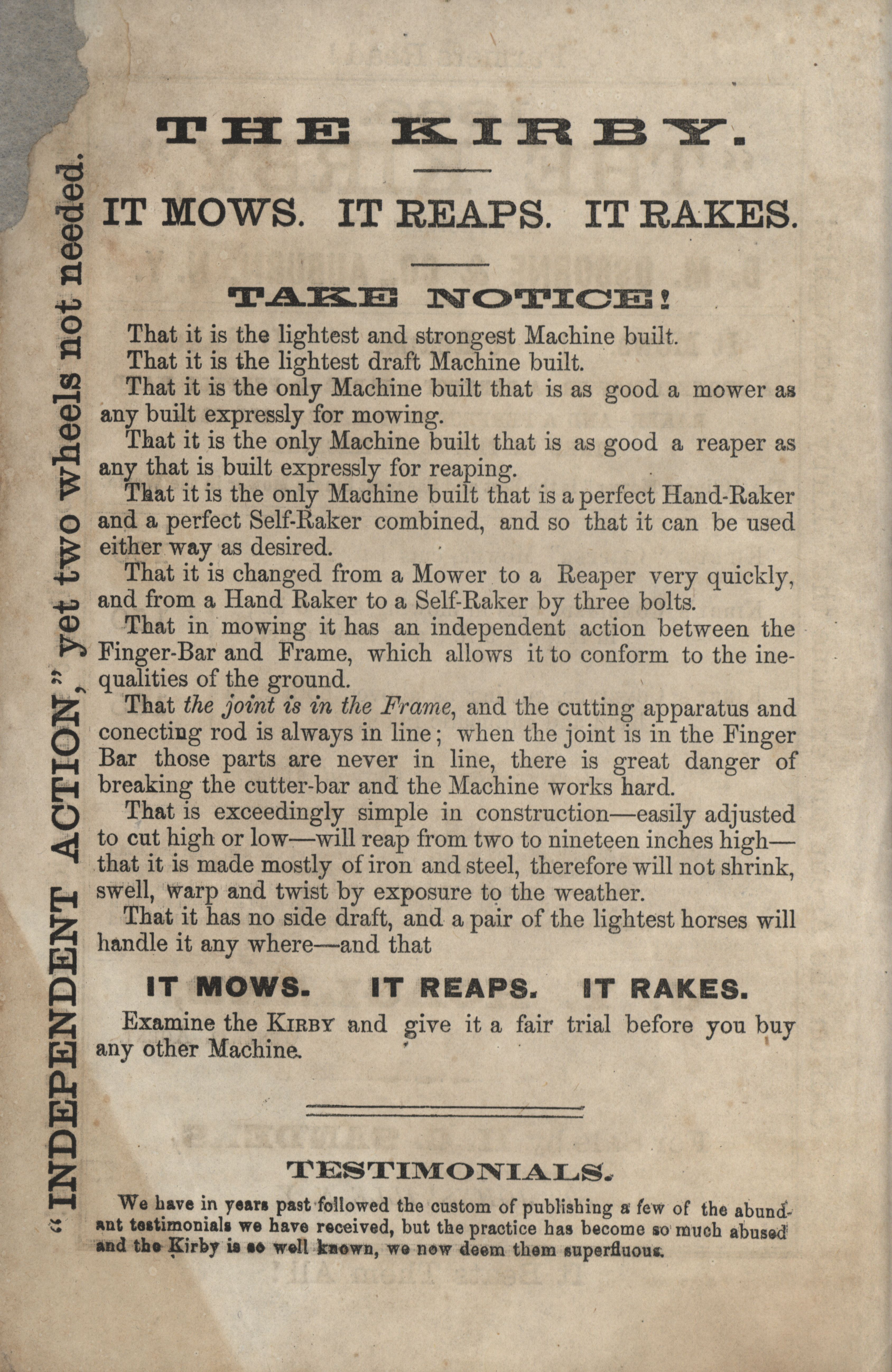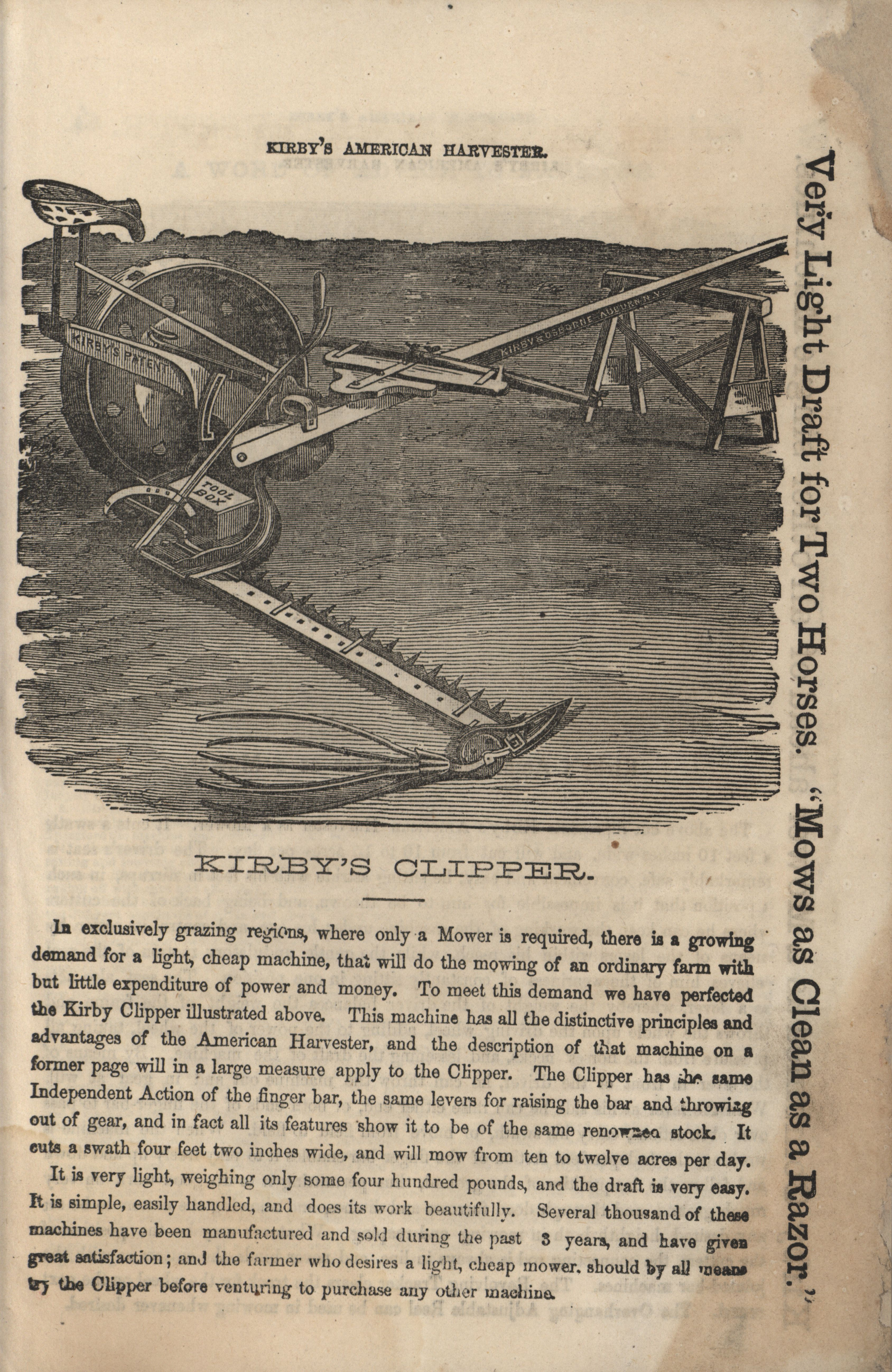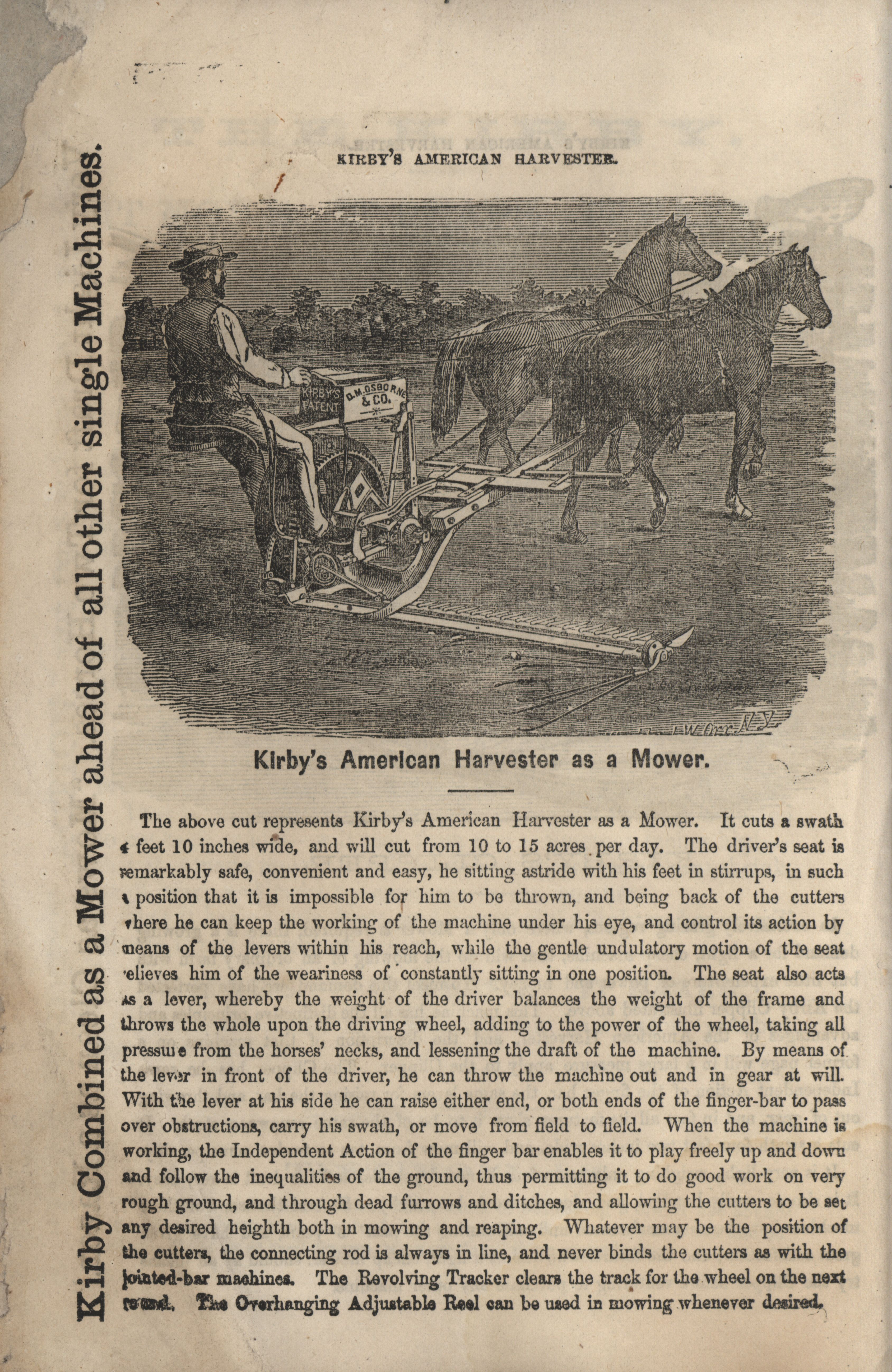 - "Advertisement for the "The Kirby" manufactured by D.M Osborne Company", Agricultural Machinery Literature Collection, Iowa State University Library Digital Collections