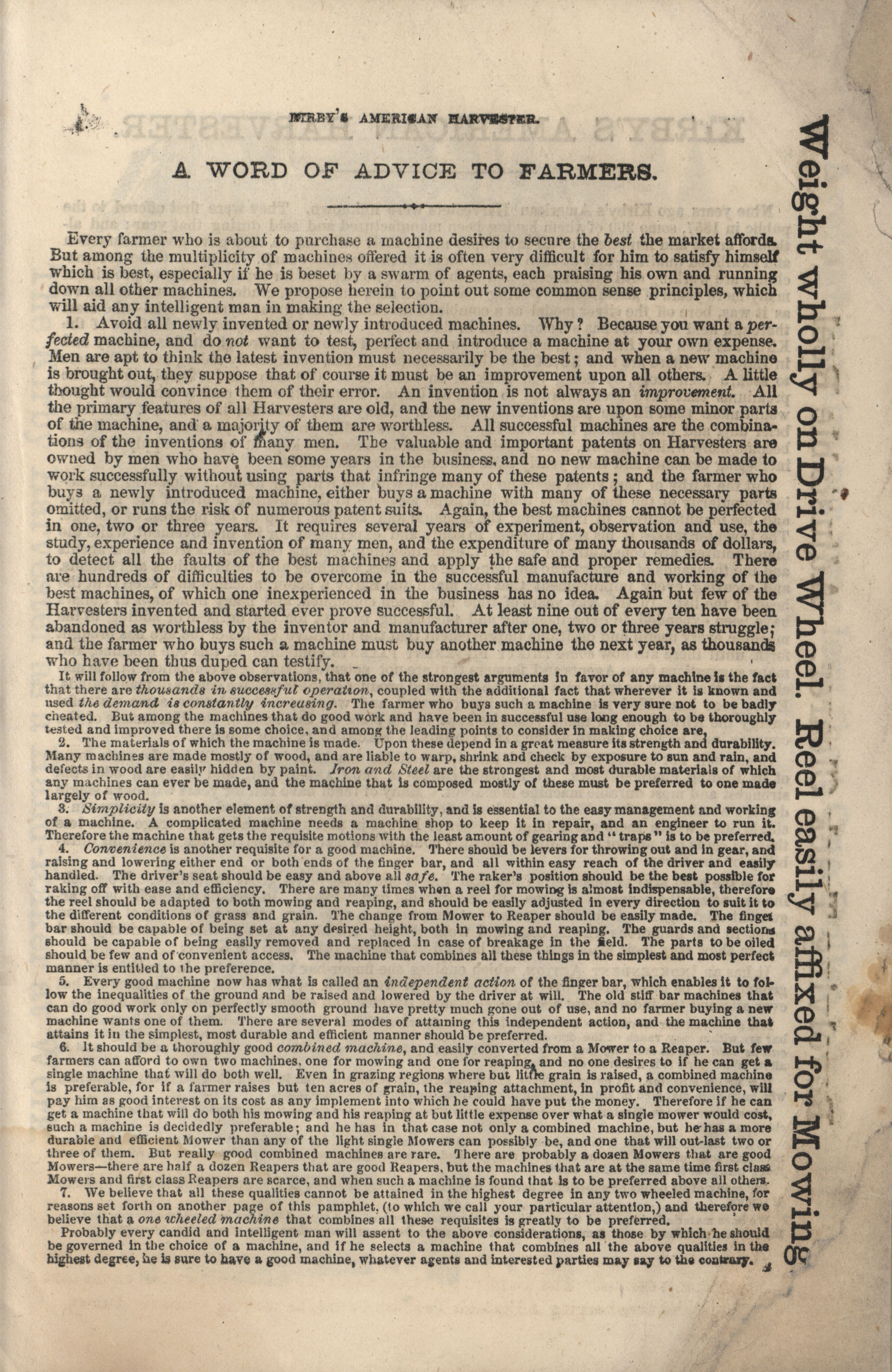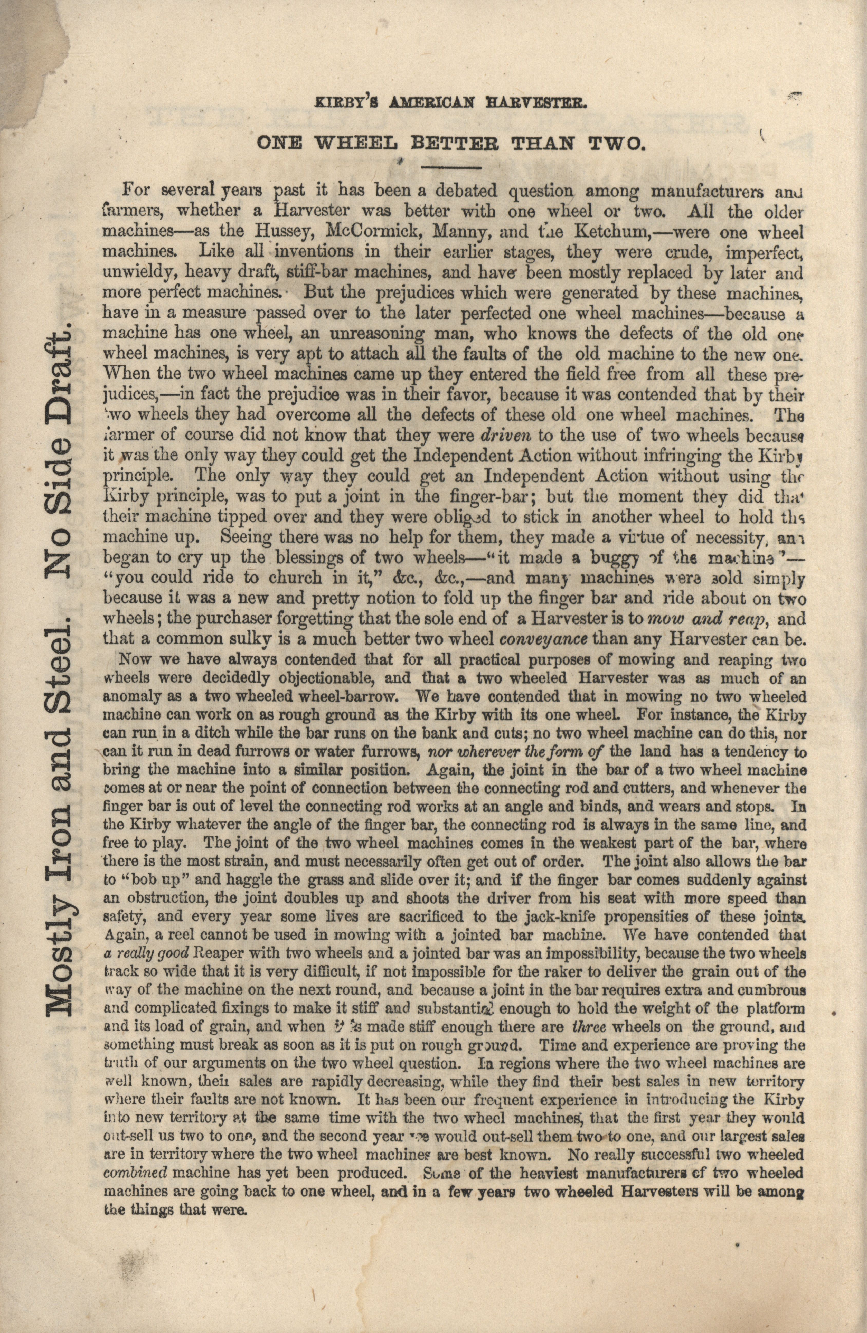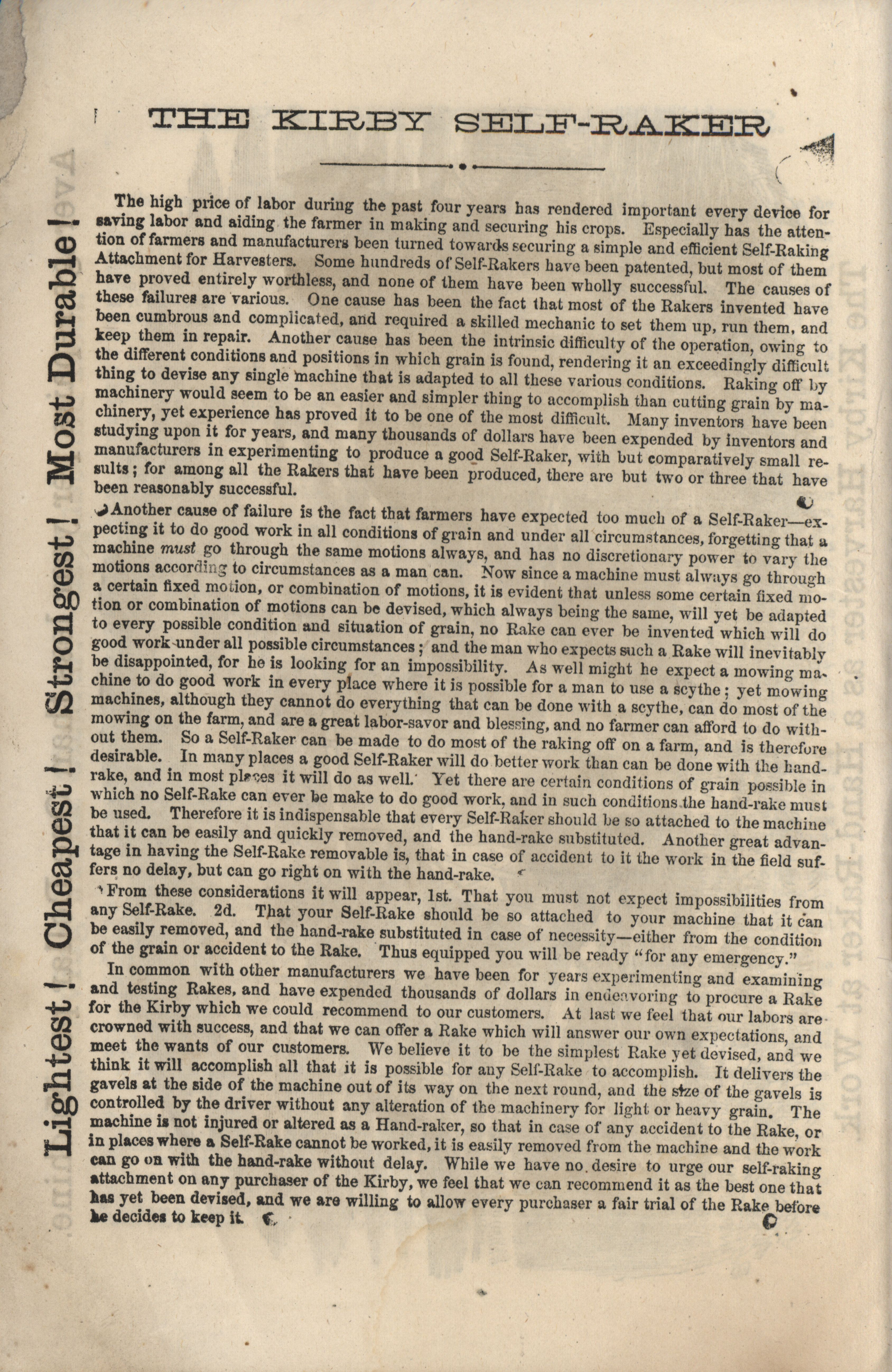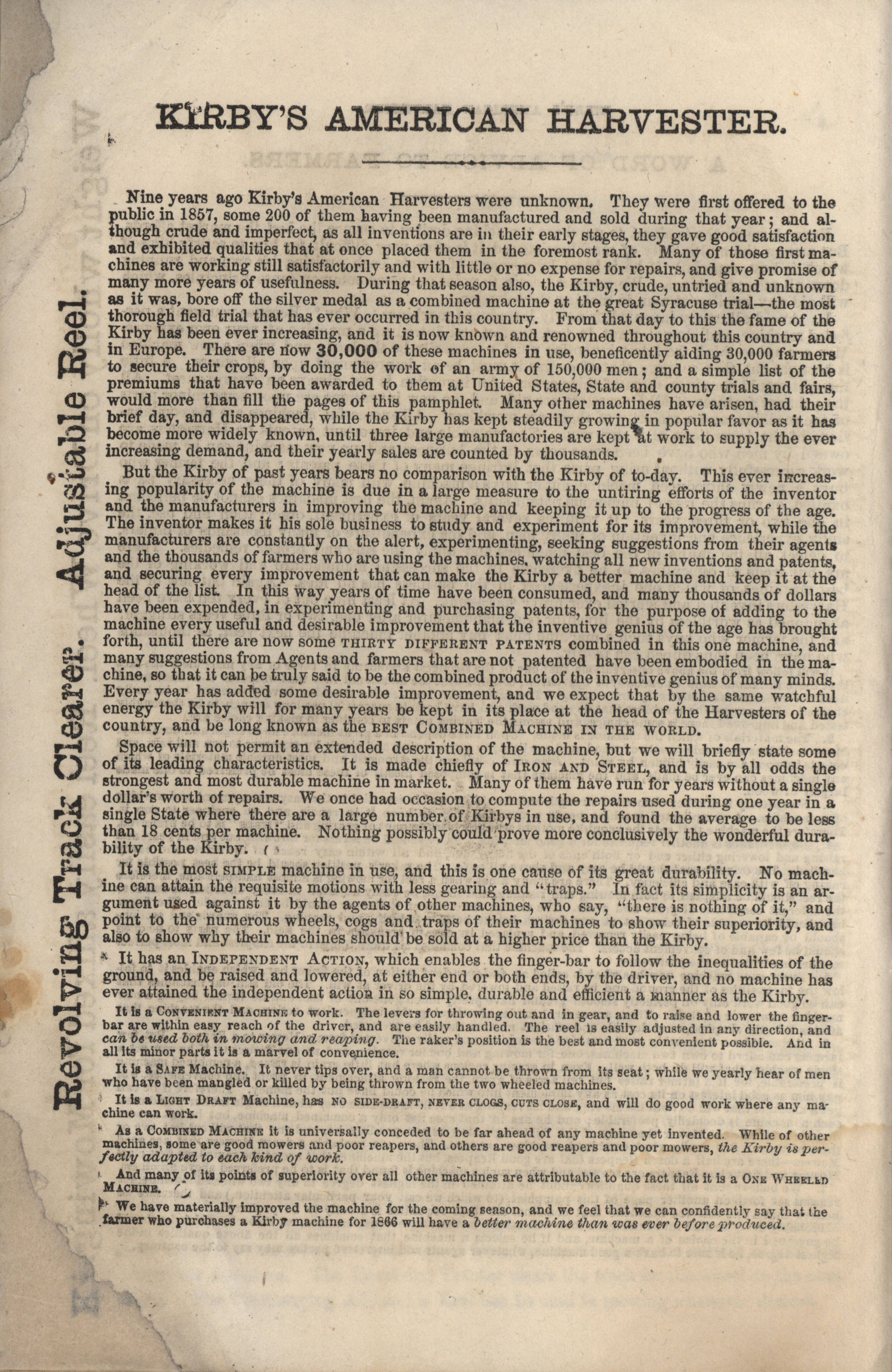 - "Advertisement for the "The Kirby" manufactured by D.M Osborne Company", Agricultural Machinery Literature Collection, Iowa State University Library Digital Collections