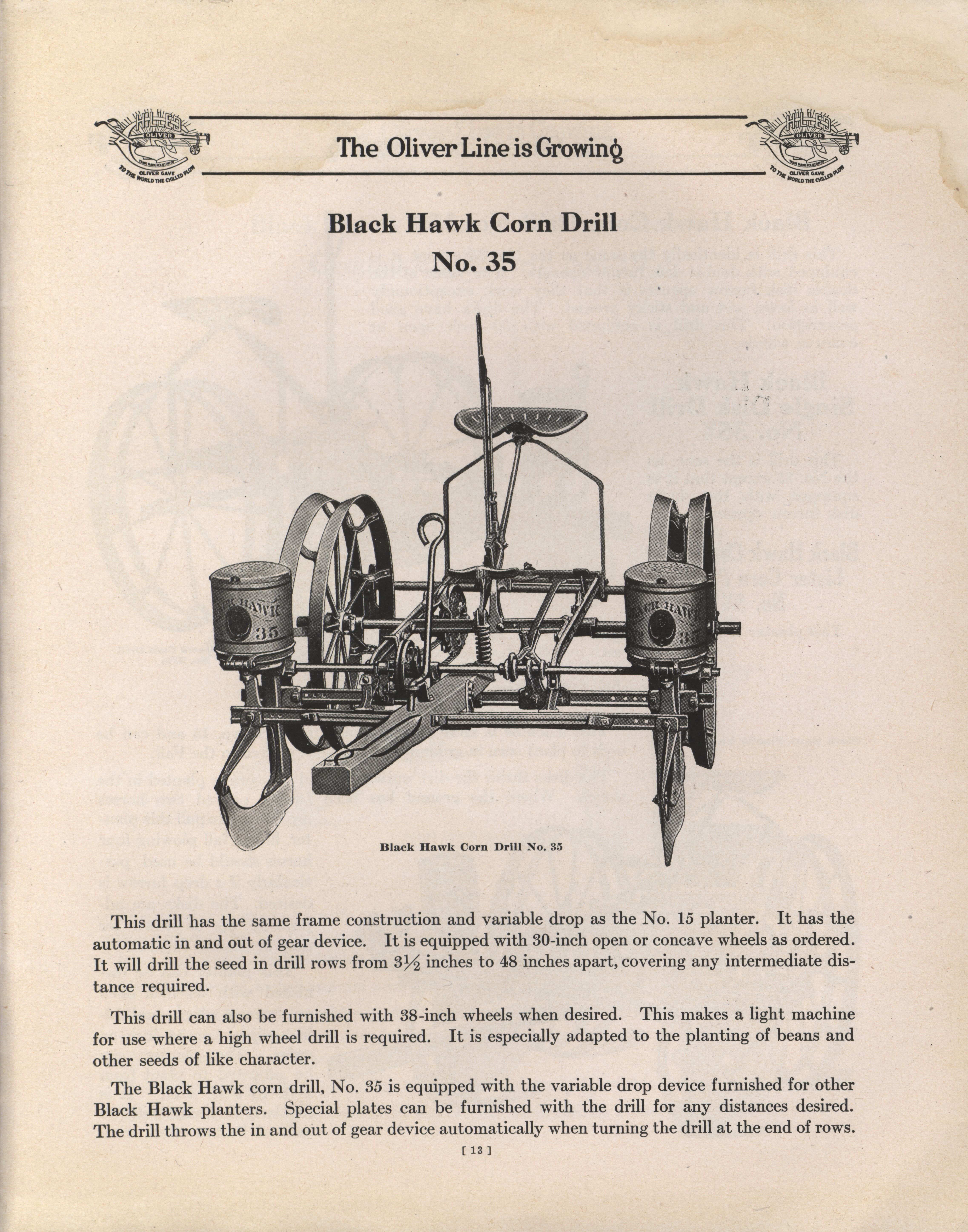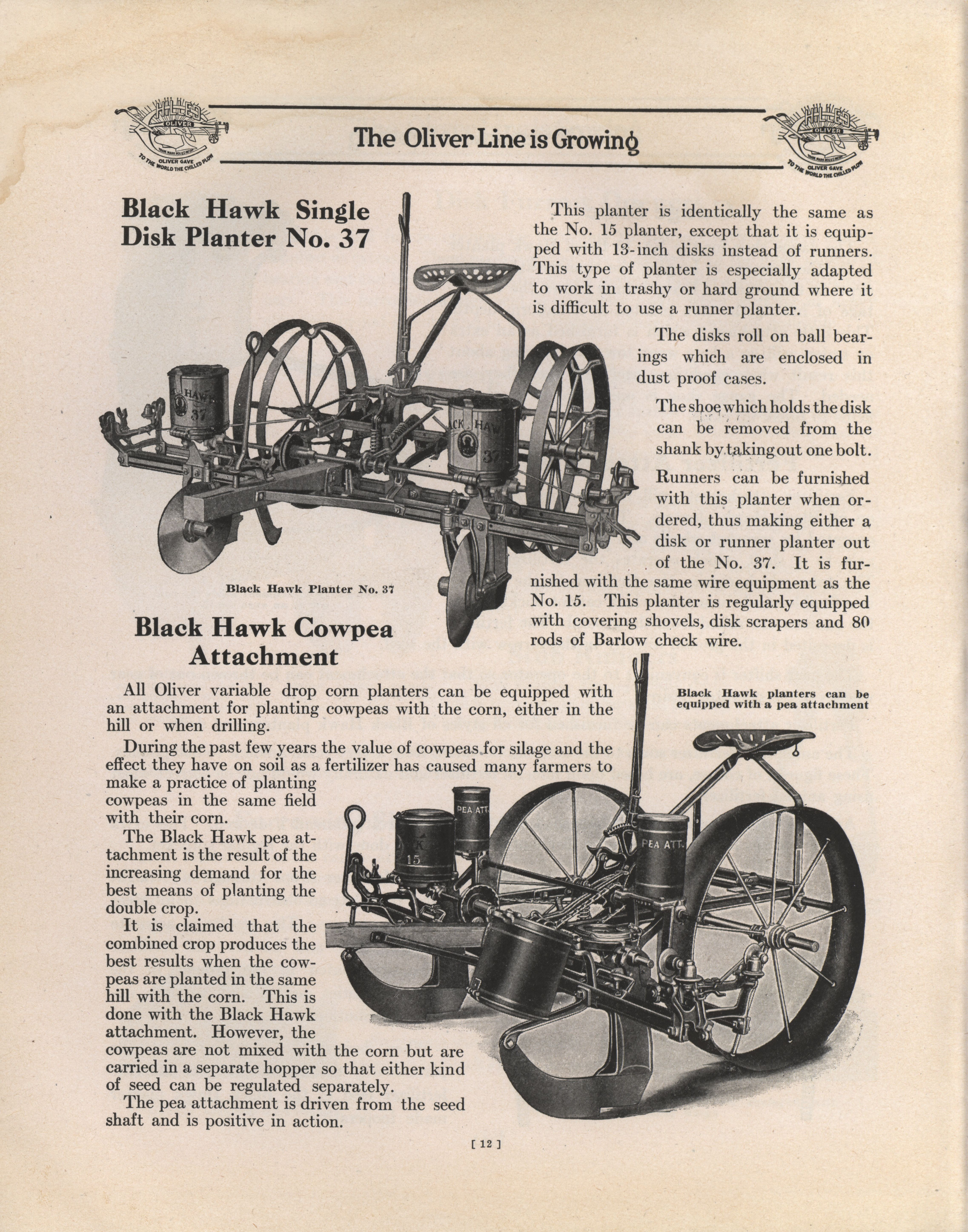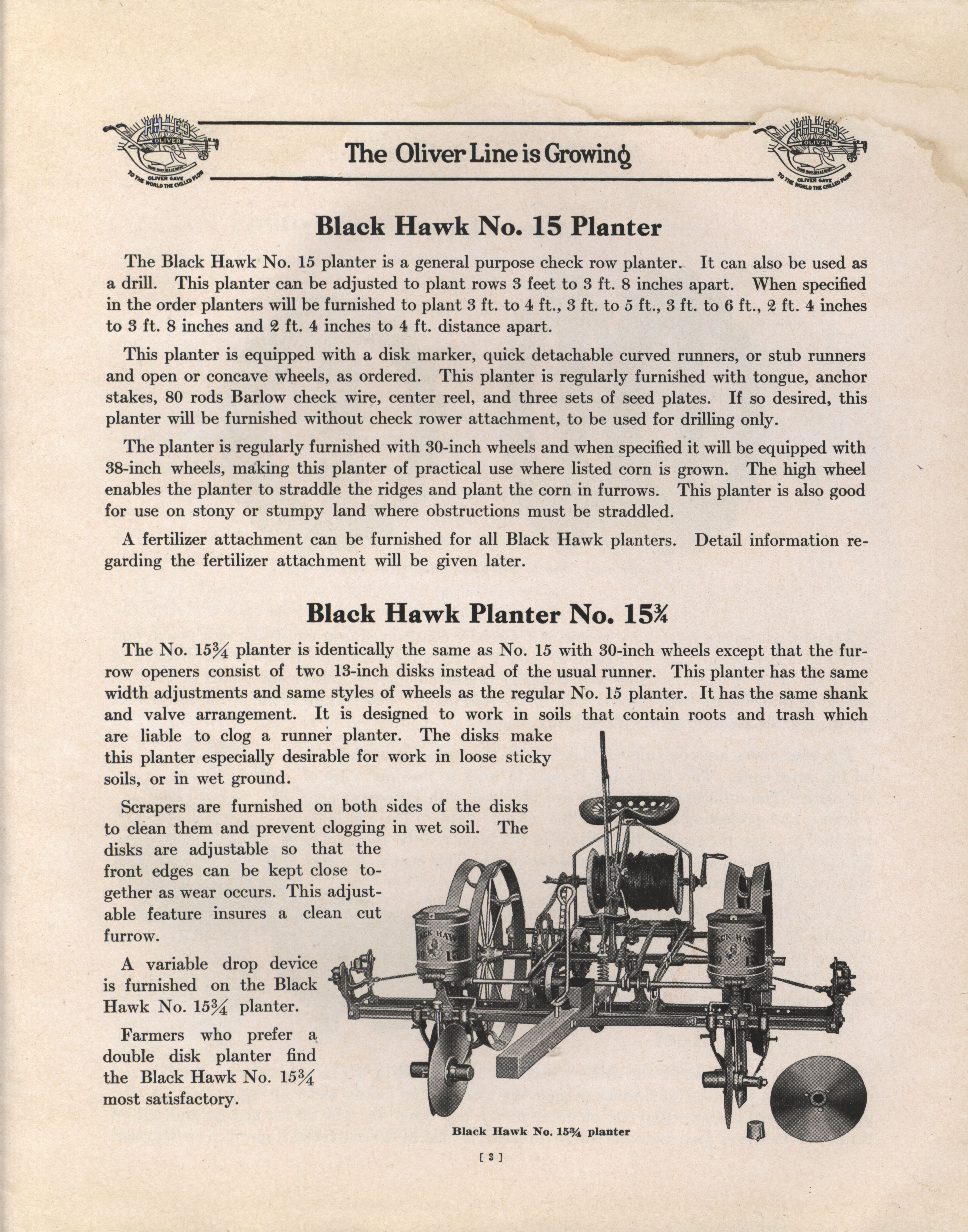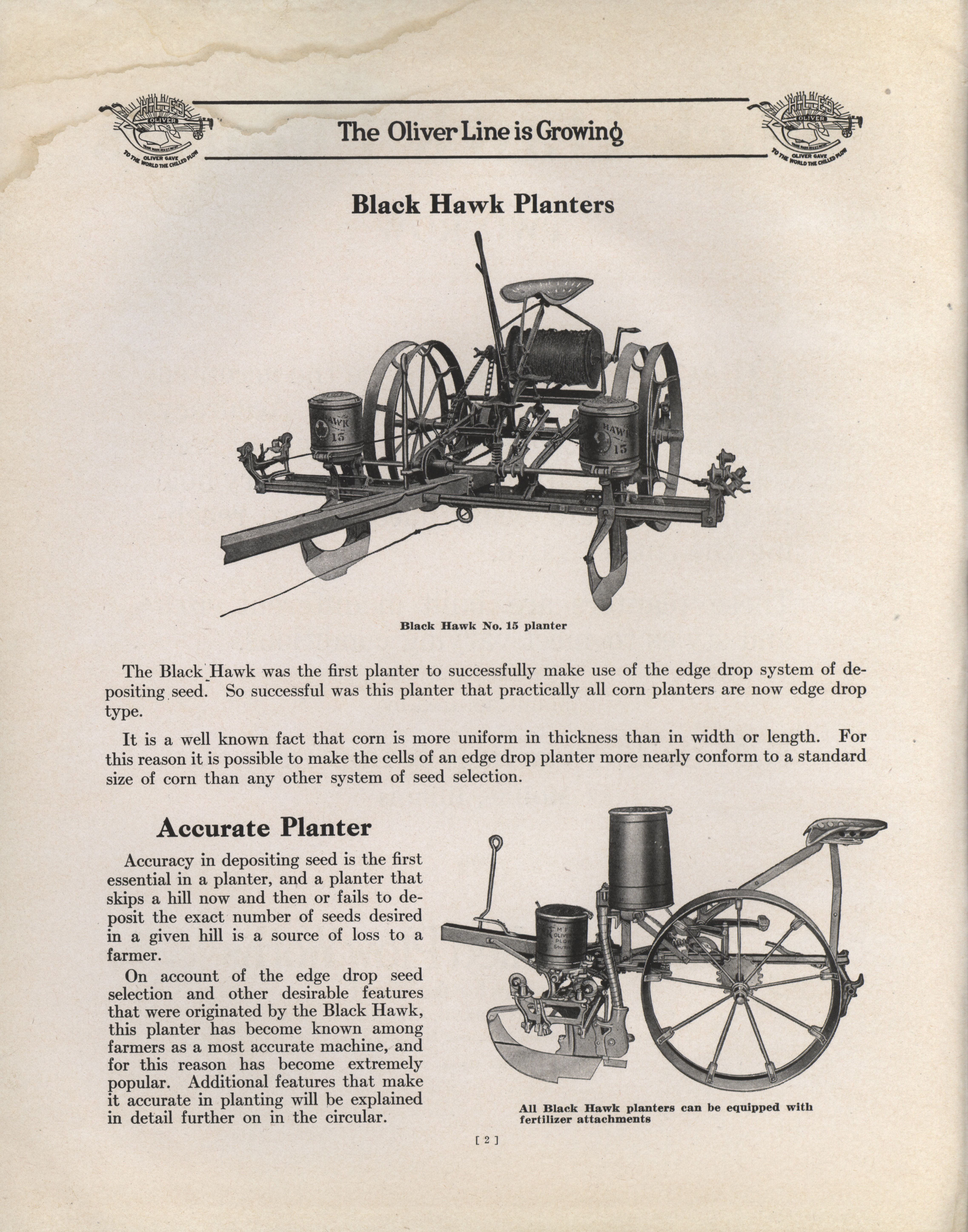 - Illustrated catalog describing the Black Hawk Planters offered by Oliver Chilled Plow Works.