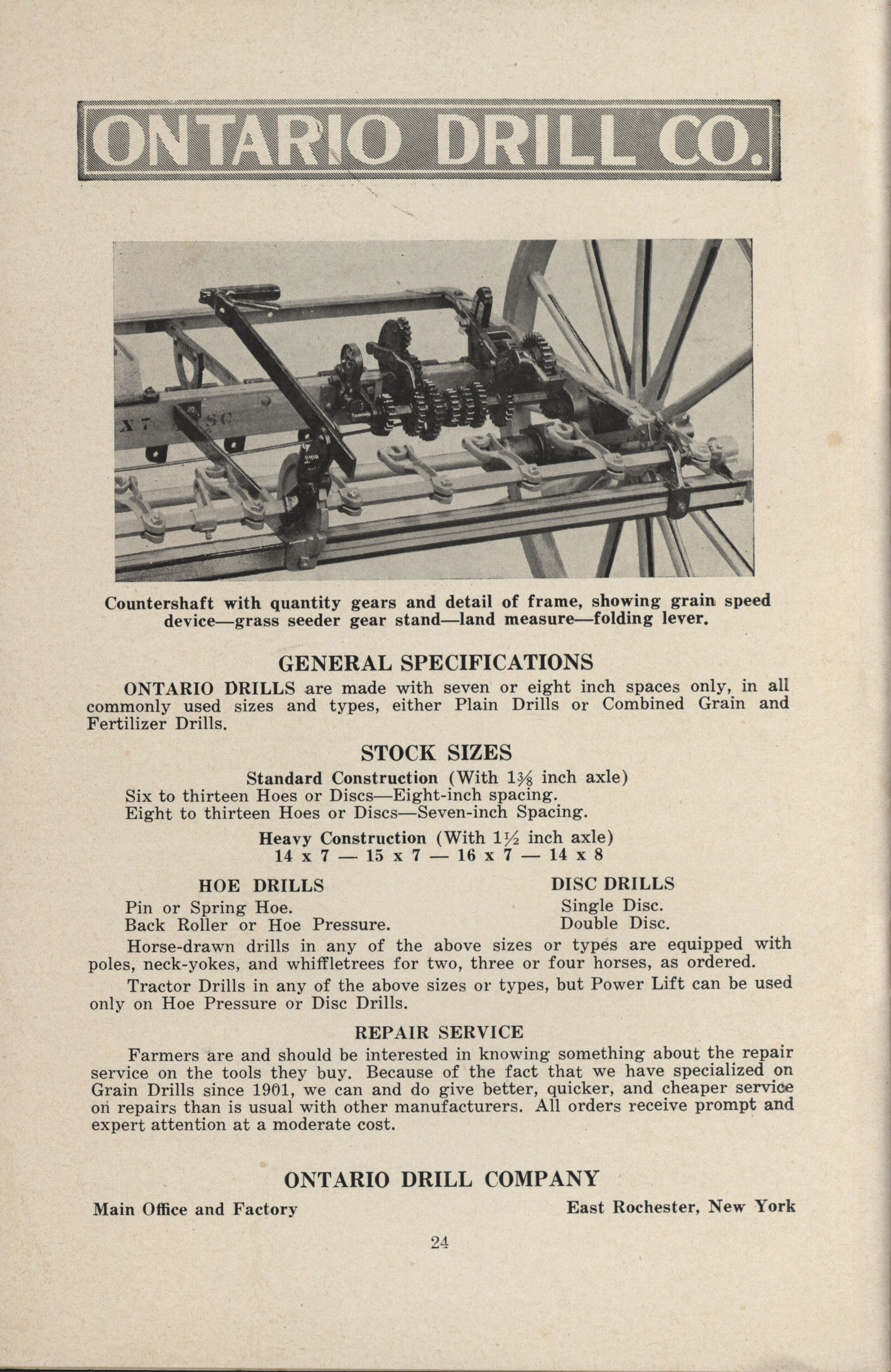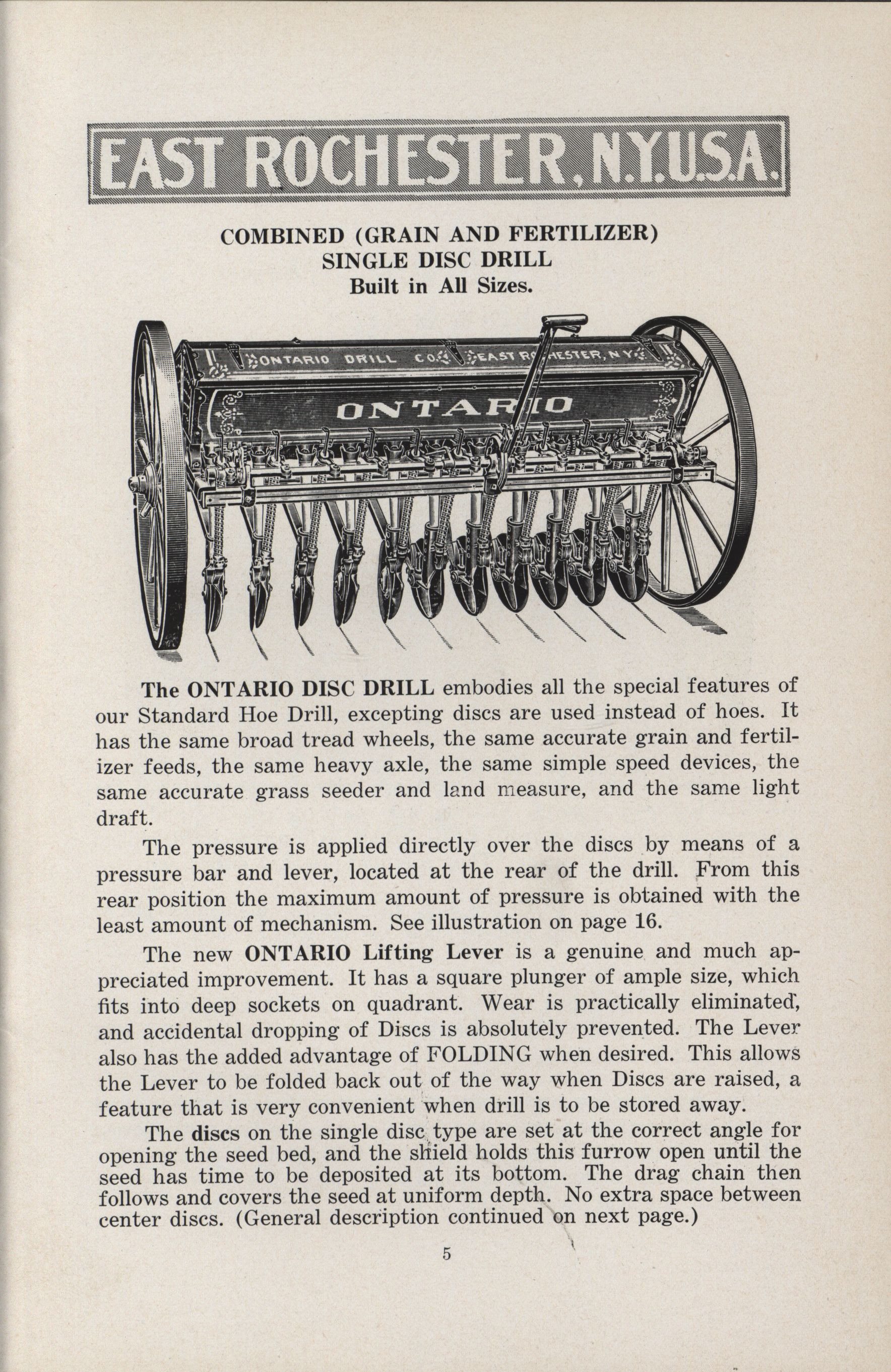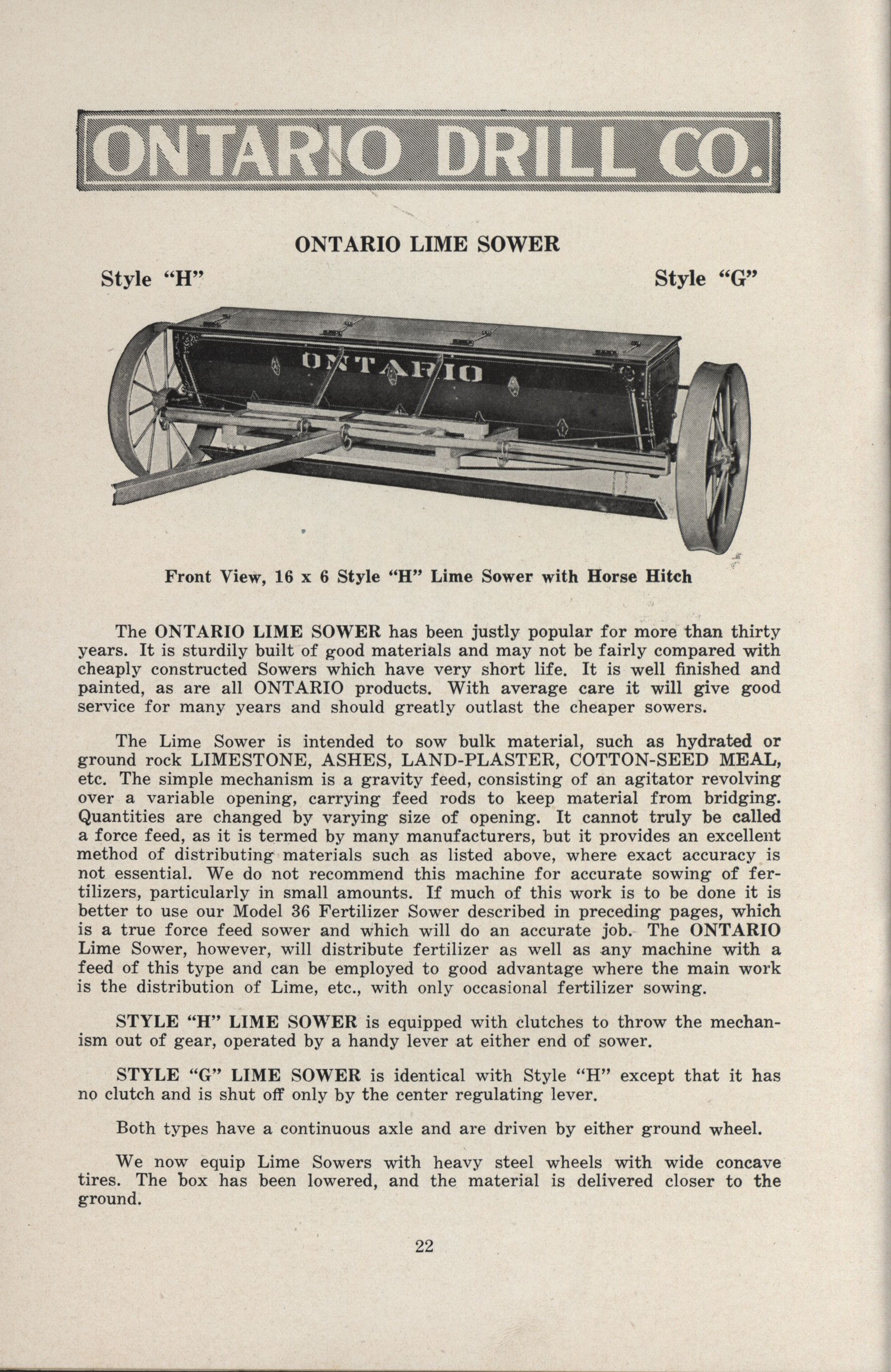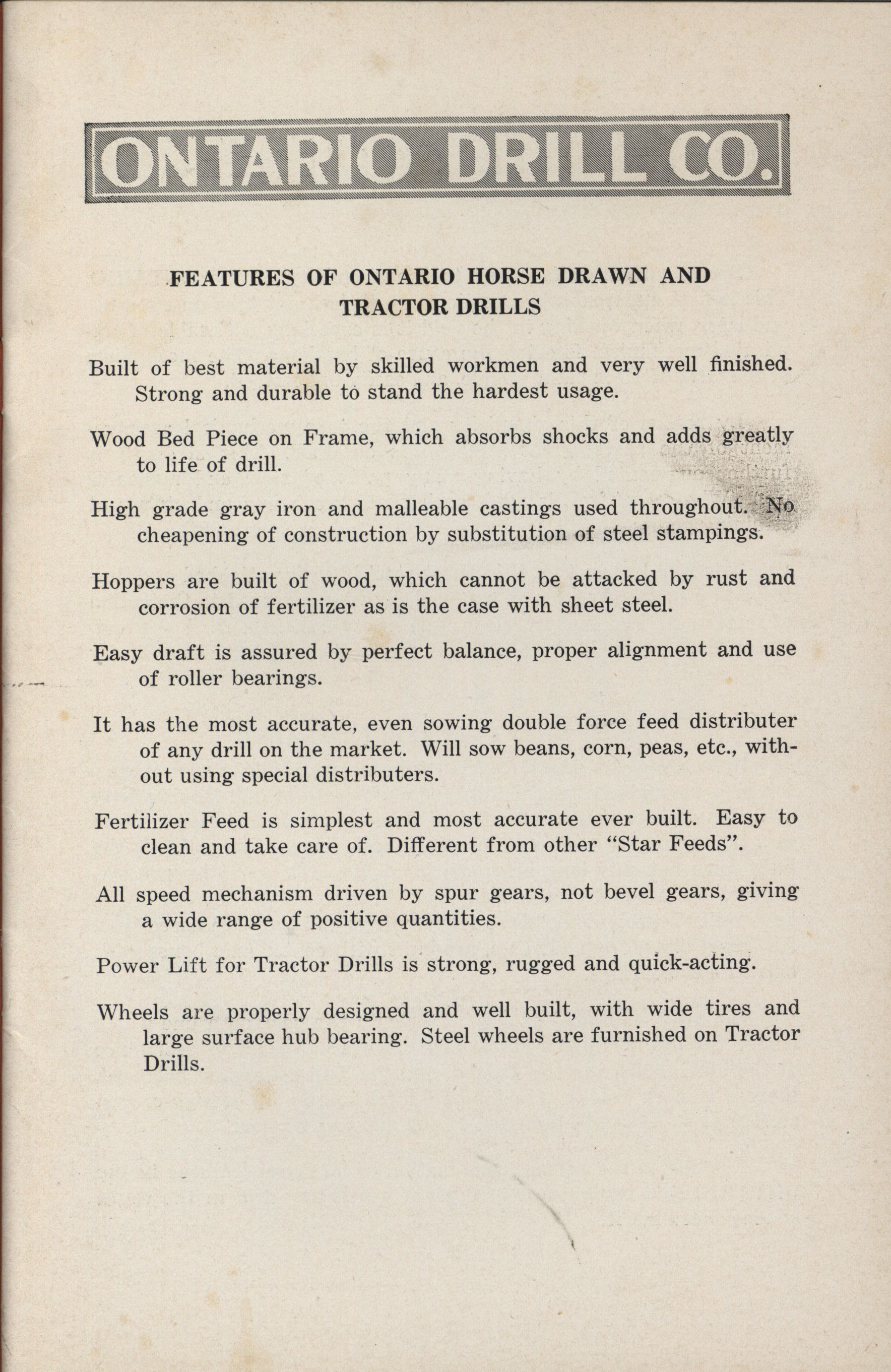- Ontario Grain and Fertilizer Drills Company catalog