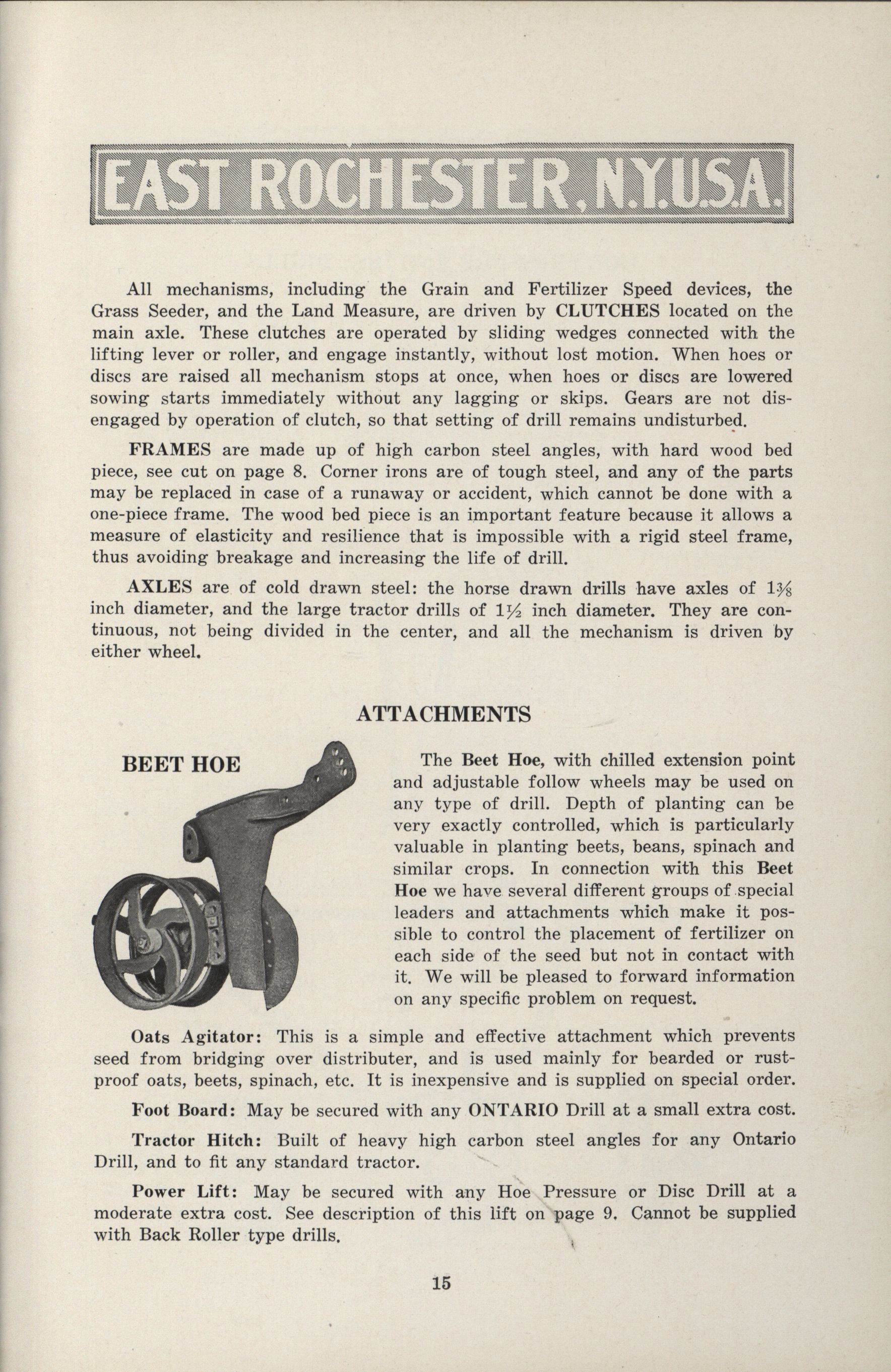 Ontario Grain and Fertilizer Drills Company catalog Item Info