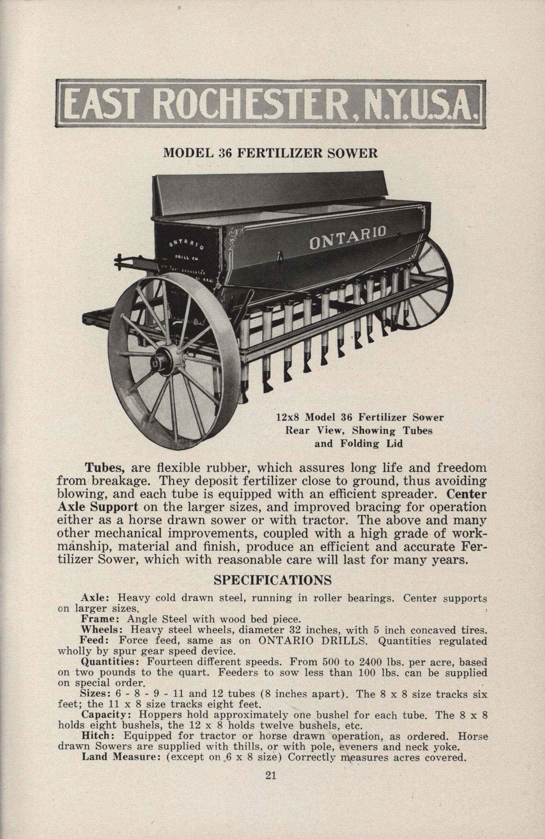 - "Ontario Grain and Fertilizer Drills Company catalog", Agricultural Machinery Literature Collection, Iowa State University Library Digital Collections