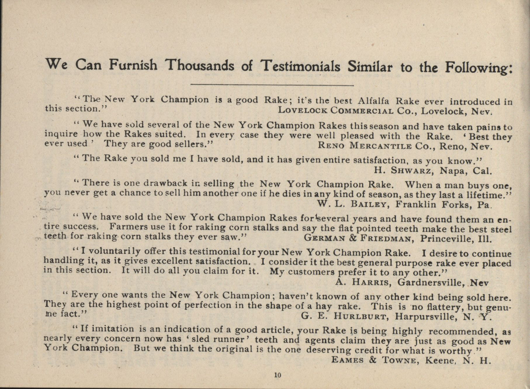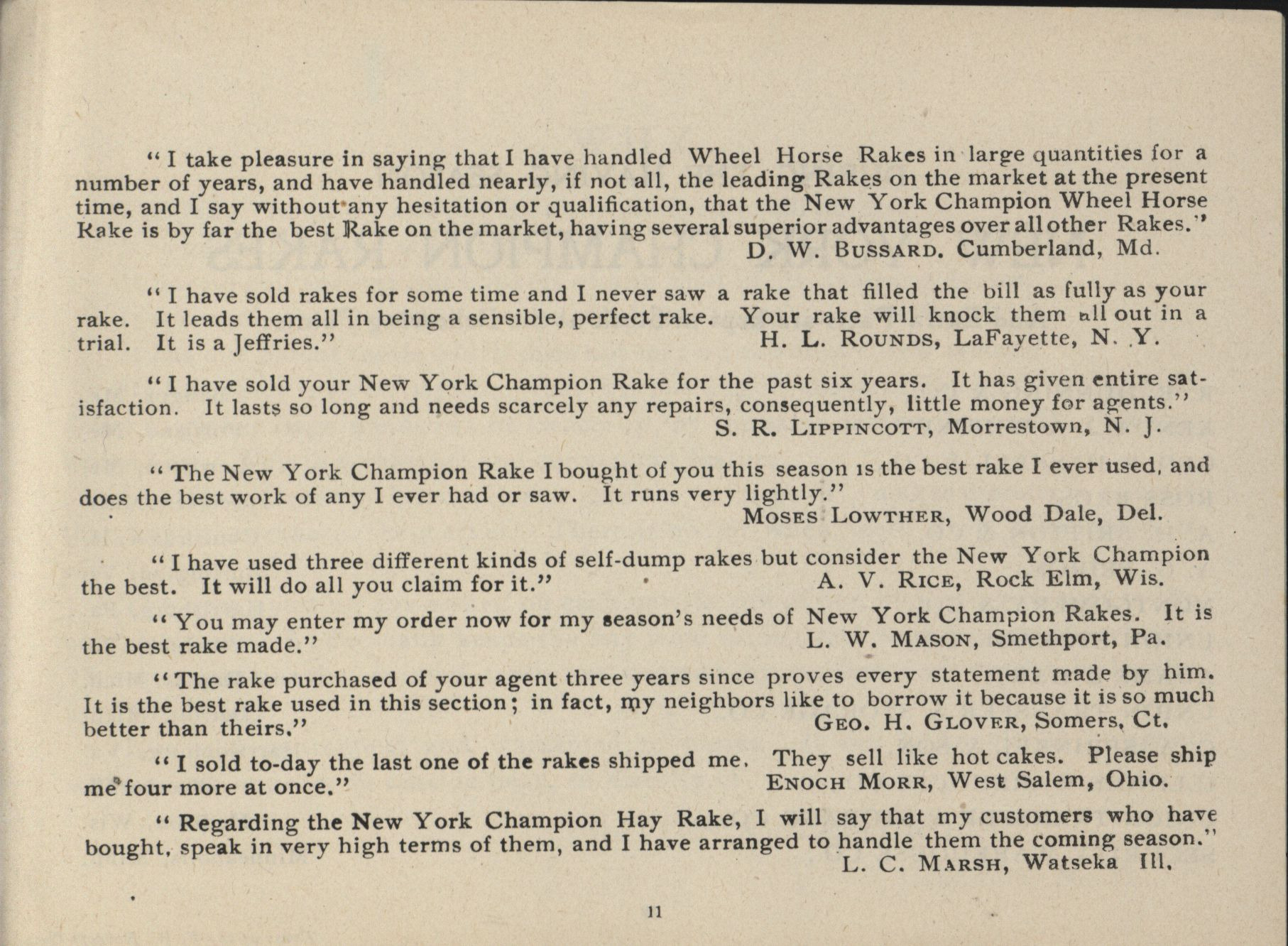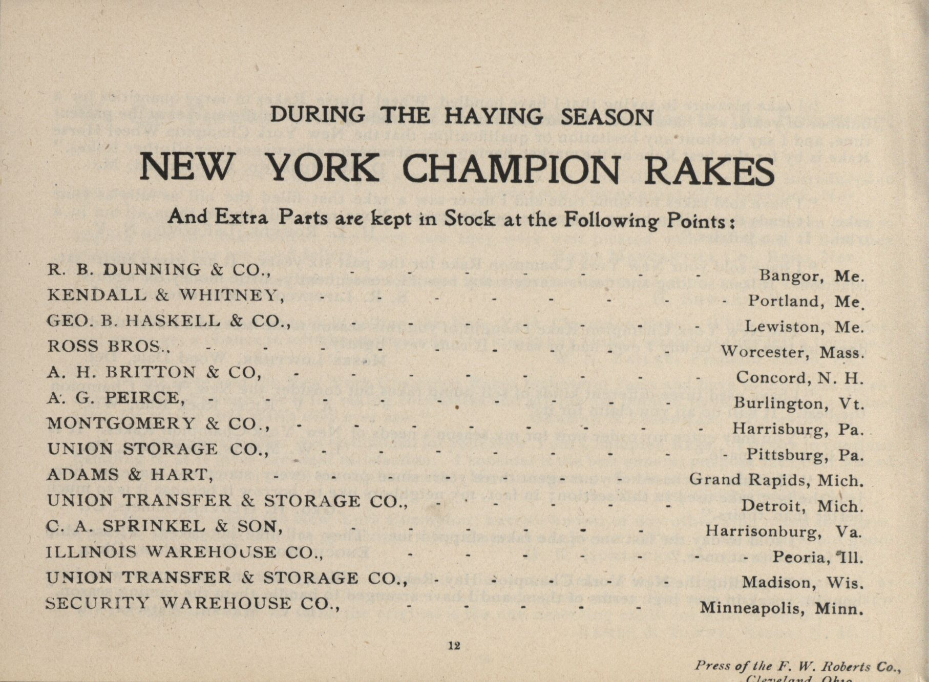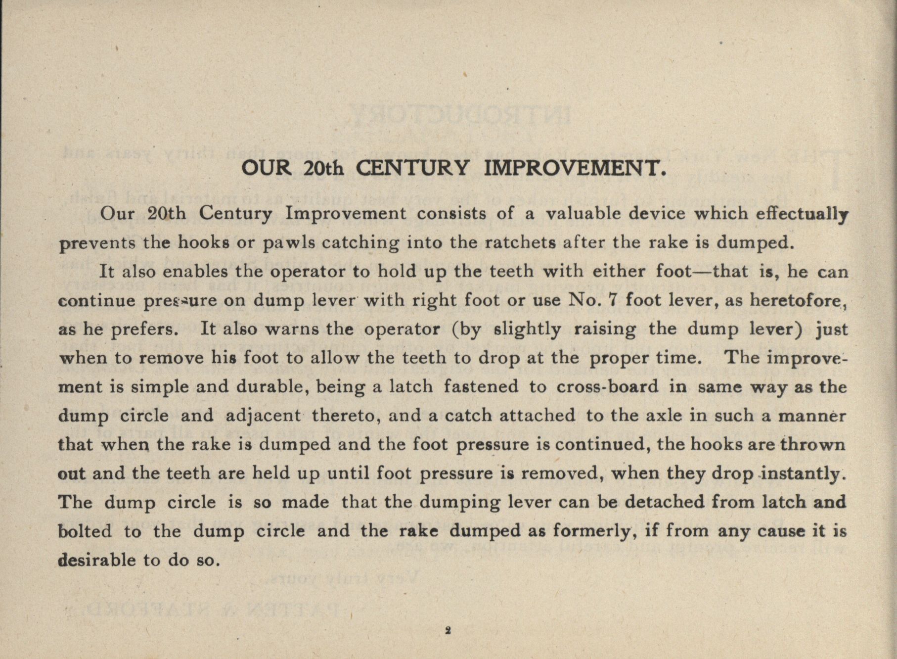 - "Patten and Stafford New York Champion Rakes catalog", Agricultural Machinery Literature Collection, Iowa State University Library Digital Collections