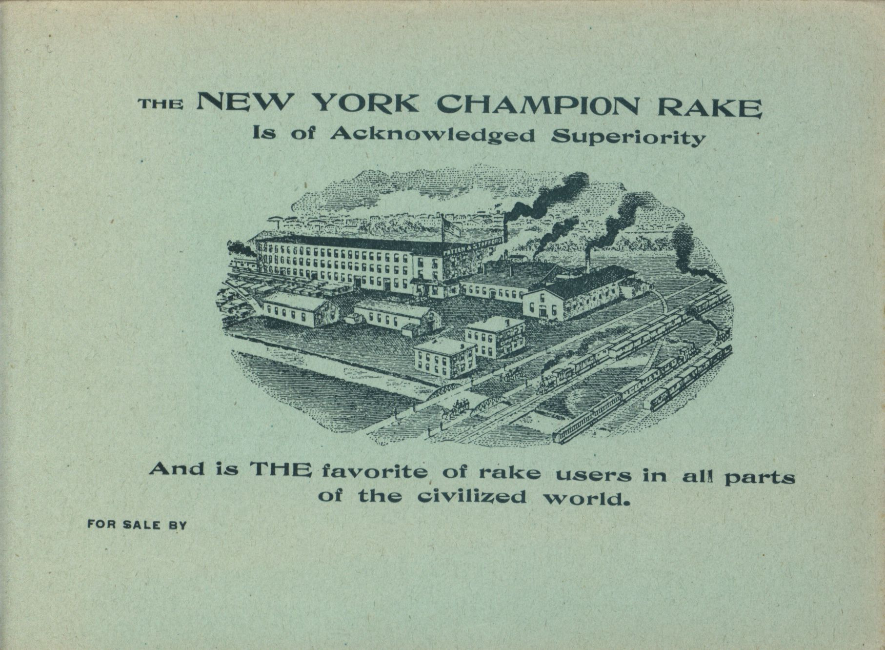 - Illustrated catalog describing the New York Champion Rakes offered by Patten and Stafford.