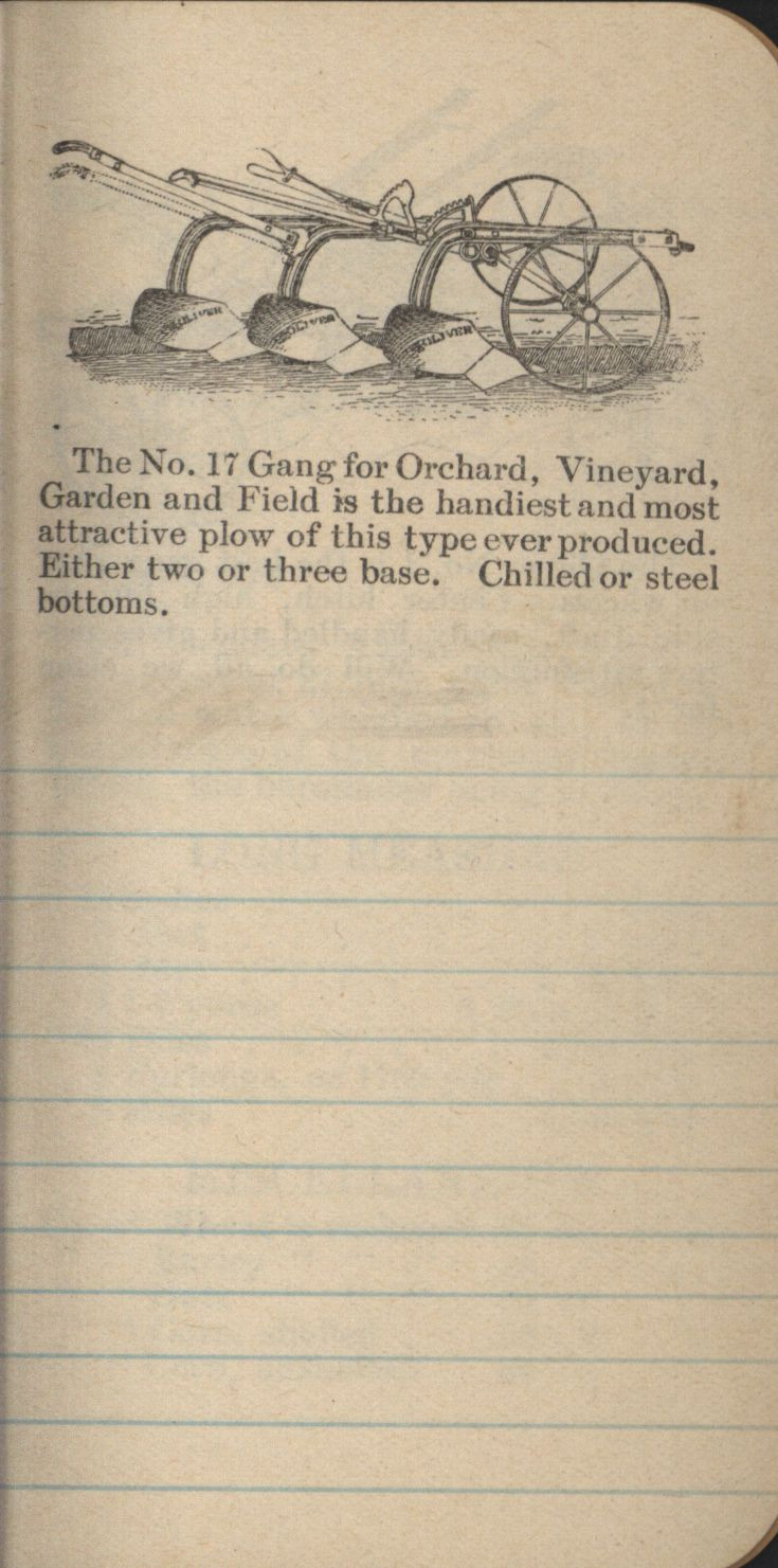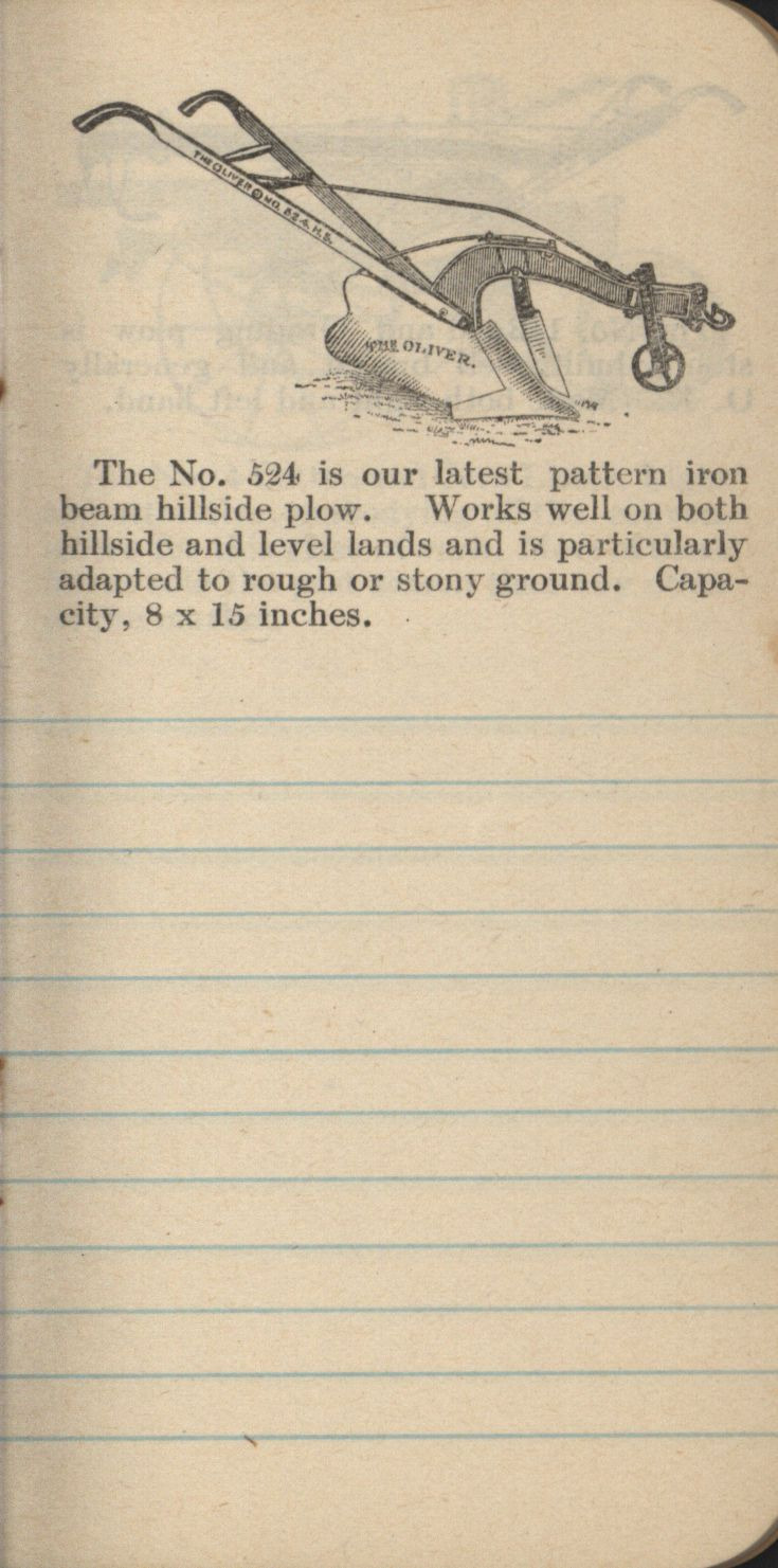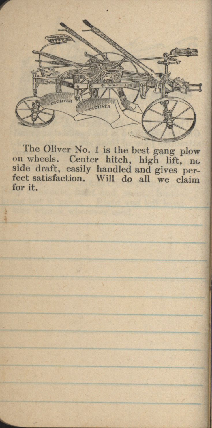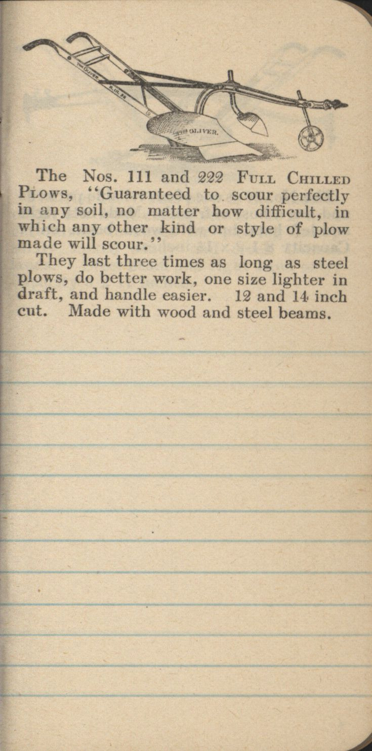 - "Oliver Chilled Plow Works pocket book", Agricultural Machinery Literature Collection, Iowa State University Library Digital Collections