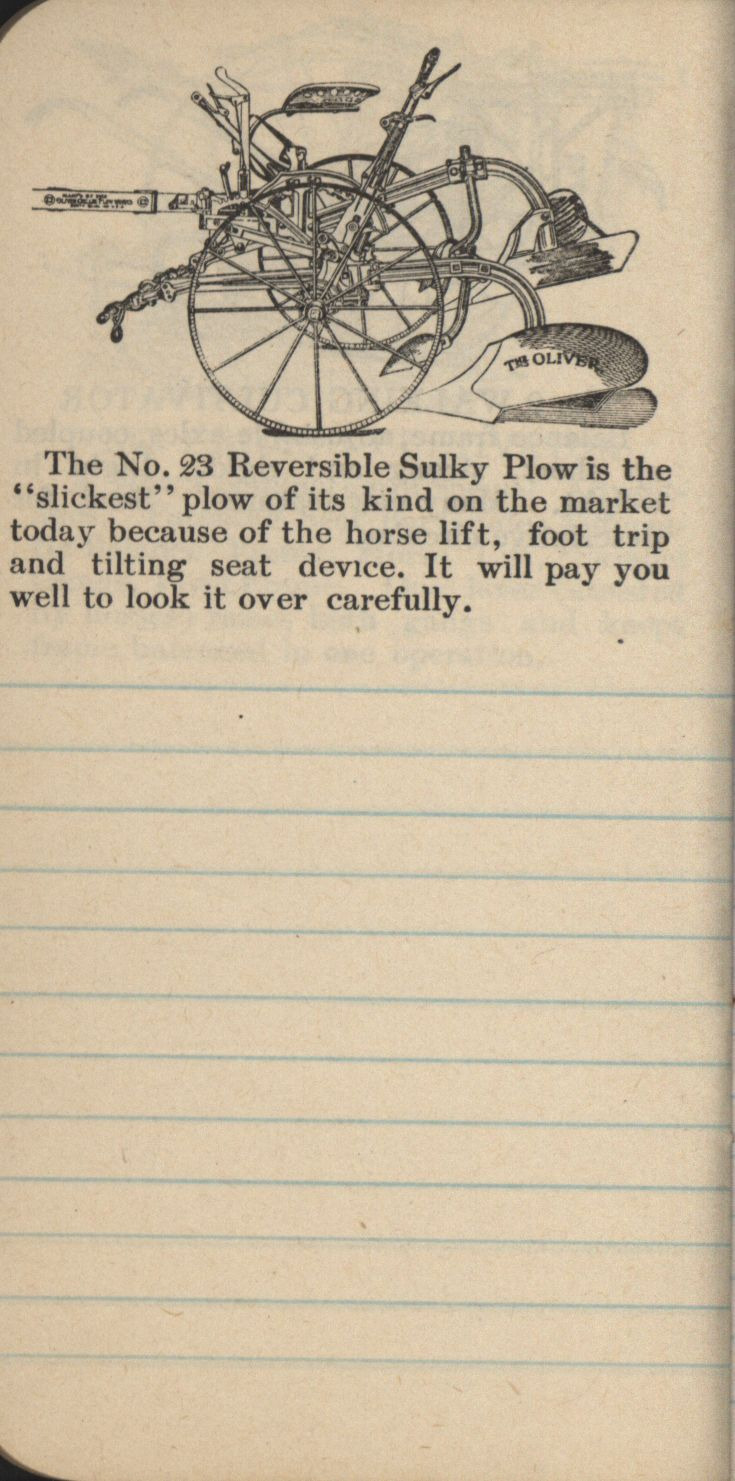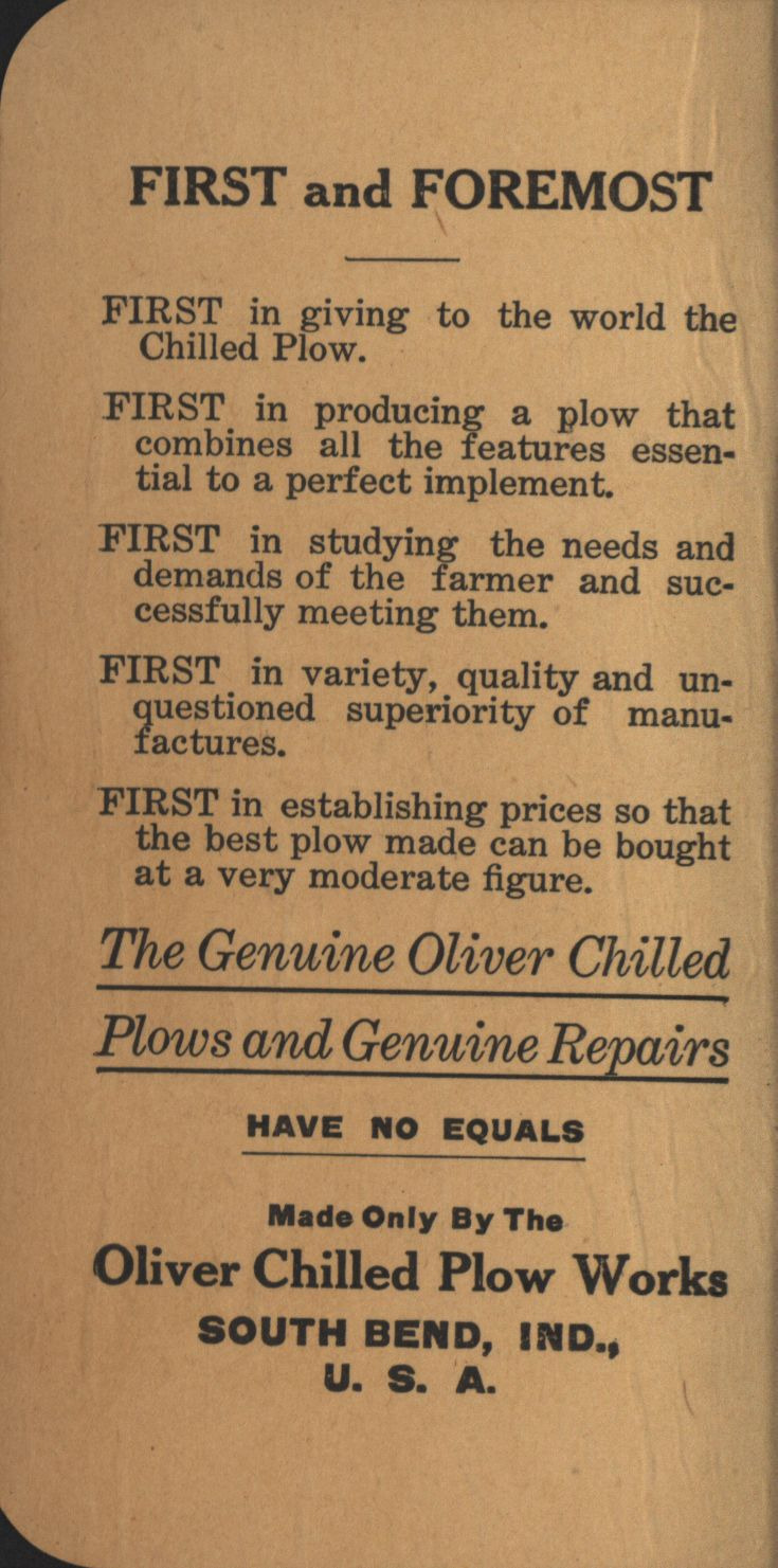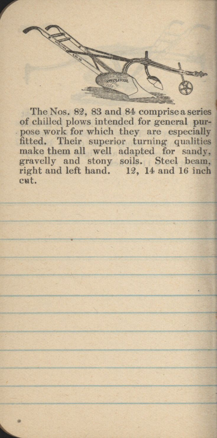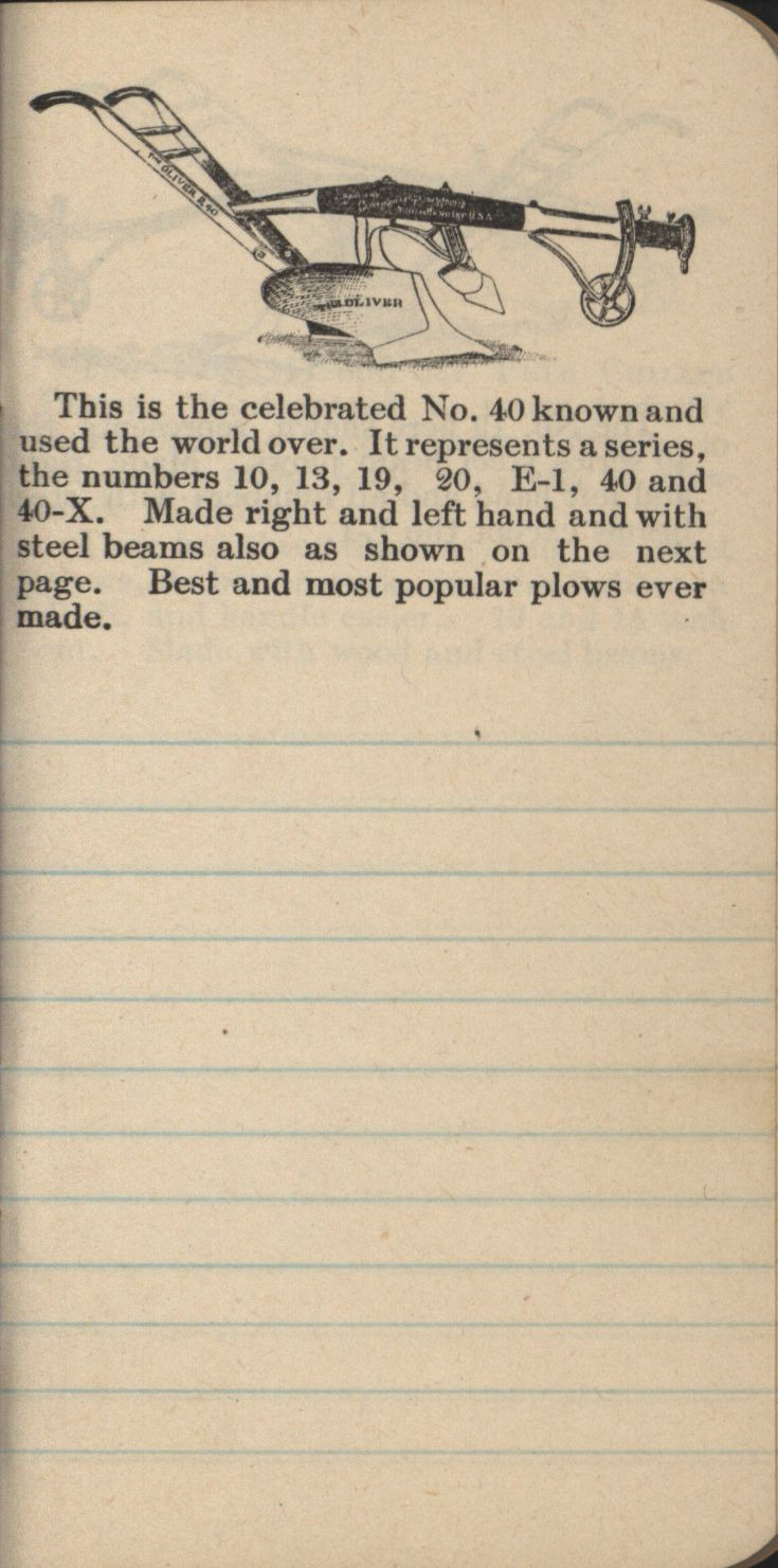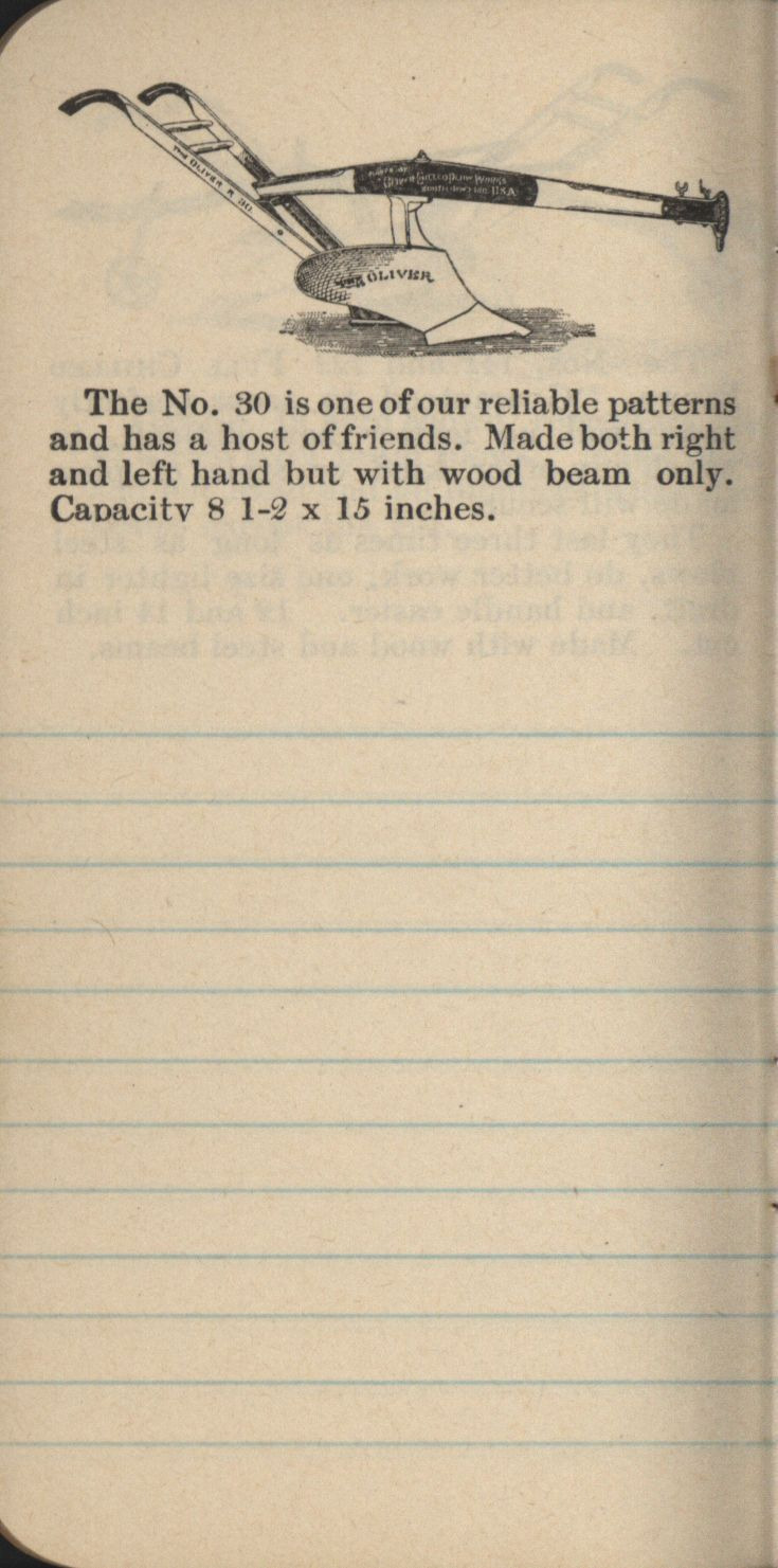 - "Oliver Chilled Plow Works pocket book", Agricultural Machinery Literature Collection, Iowa State University Library Digital Collections