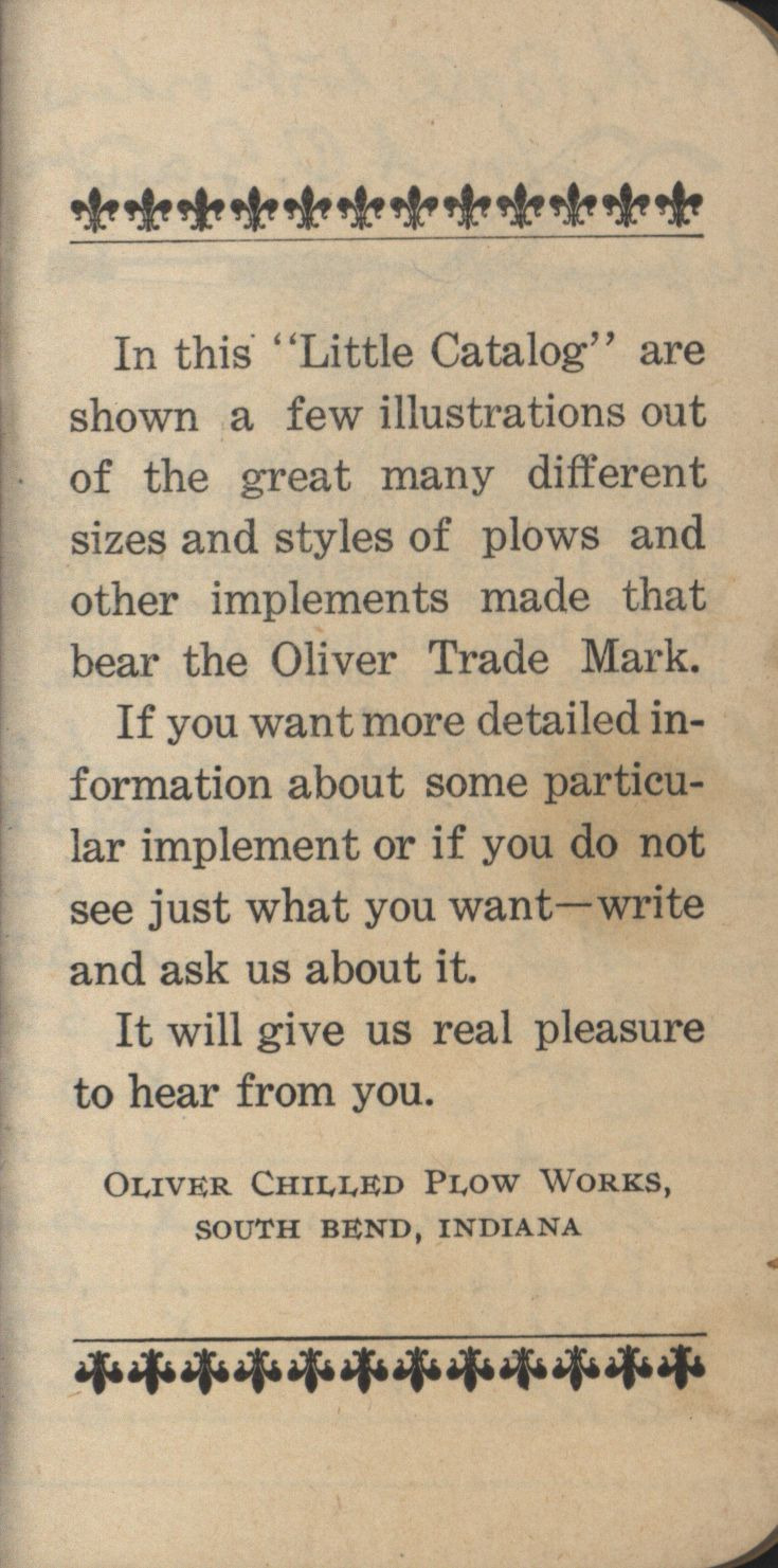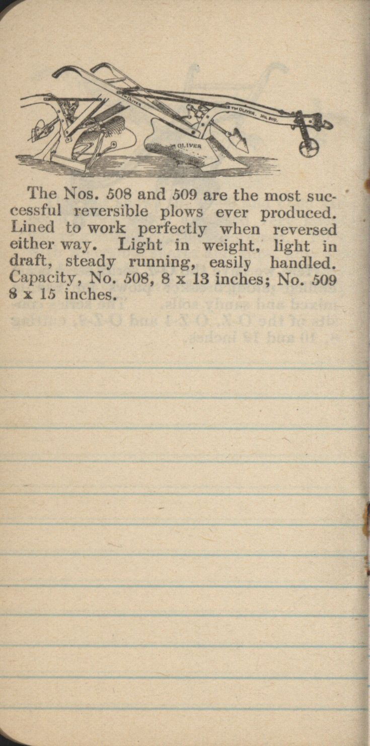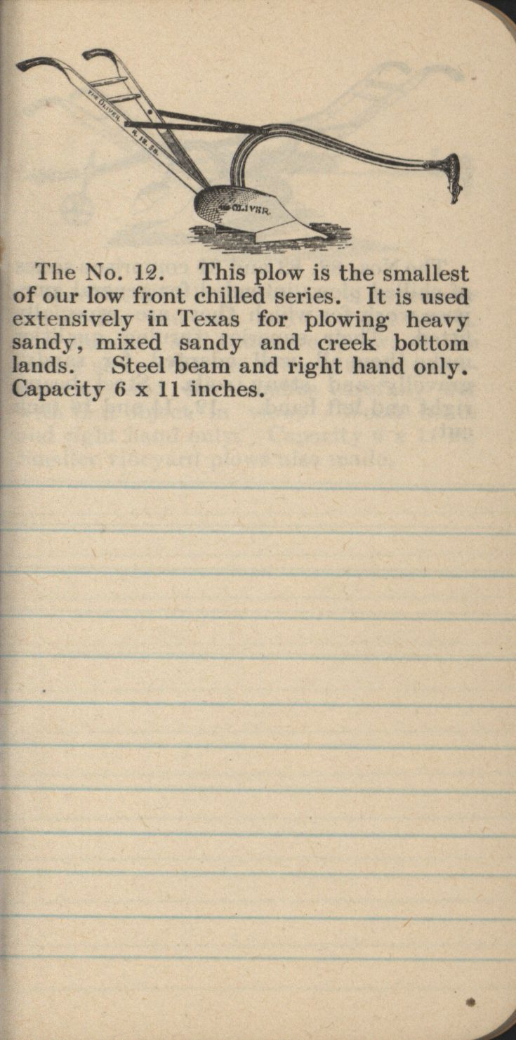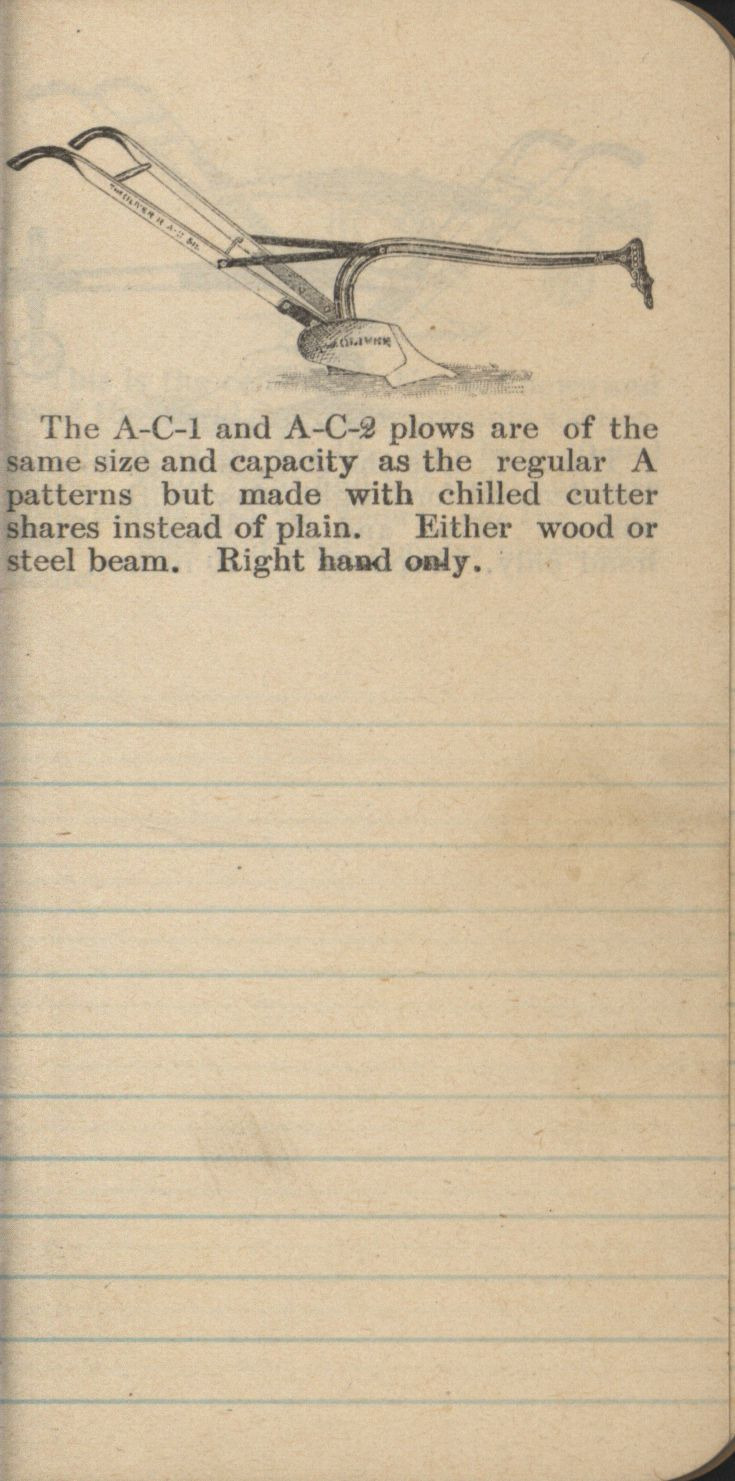 - "Oliver Chilled Plow Works pocket book", Agricultural Machinery Literature Collection, Iowa State University Library Digital Collections