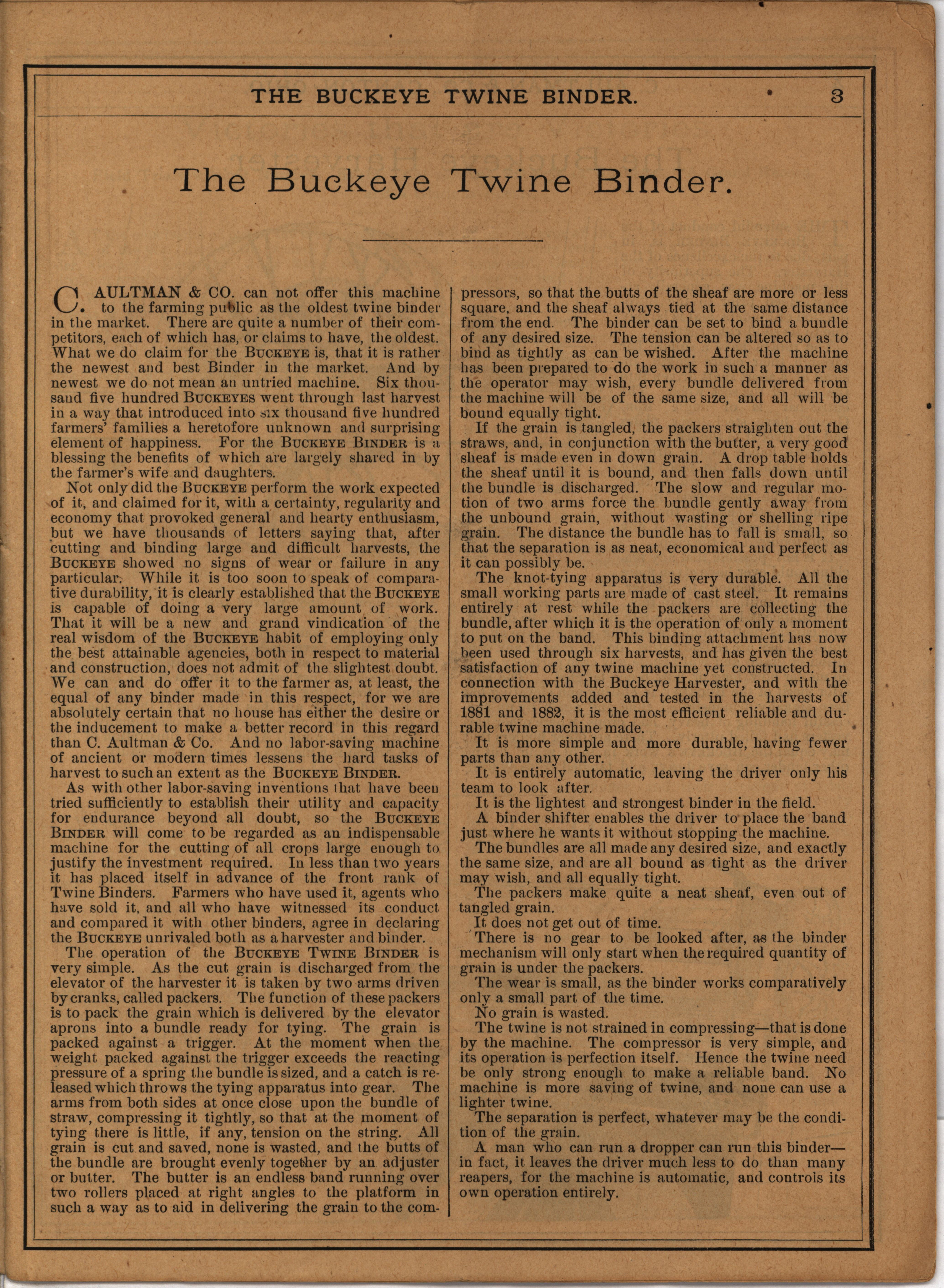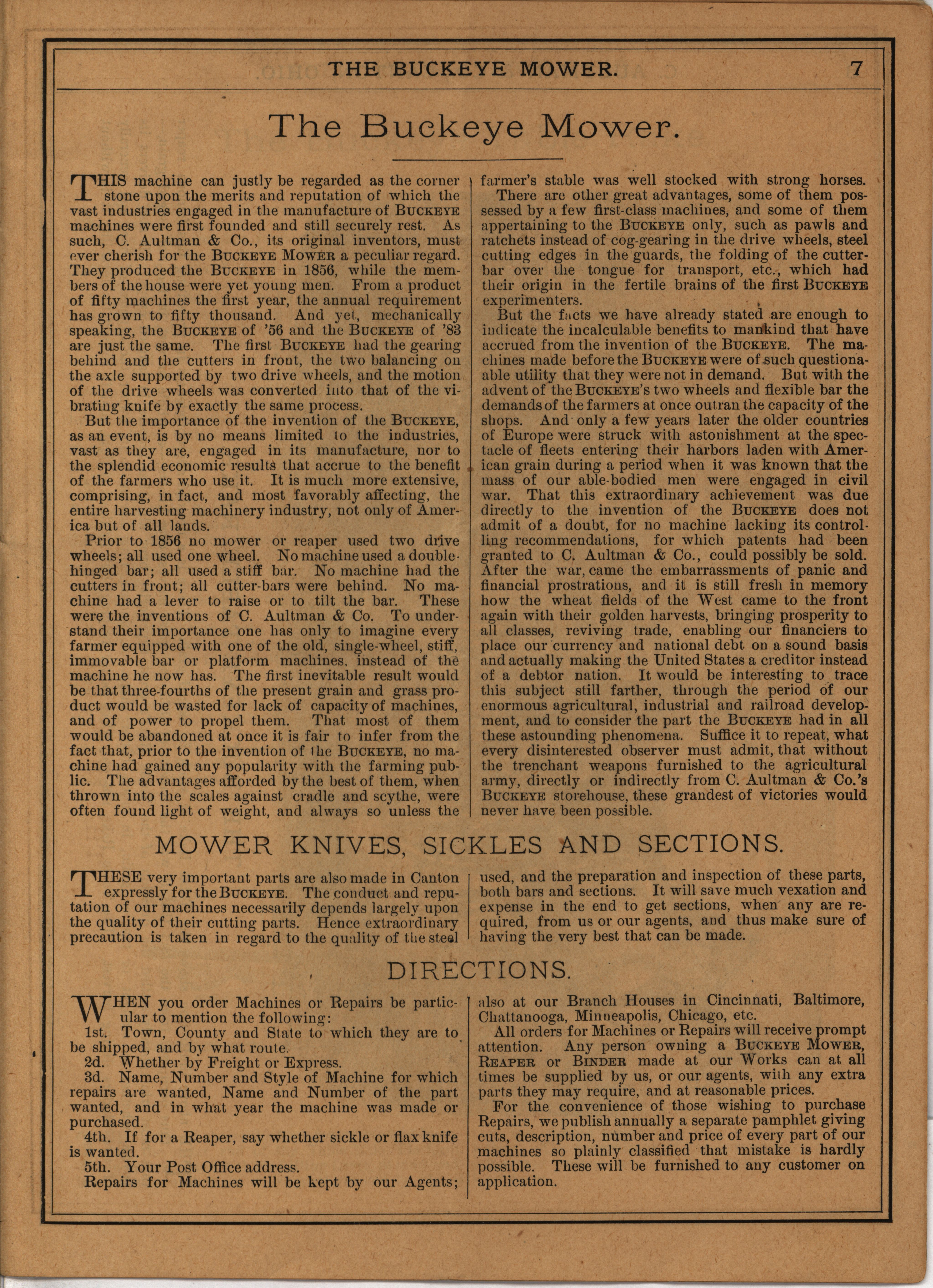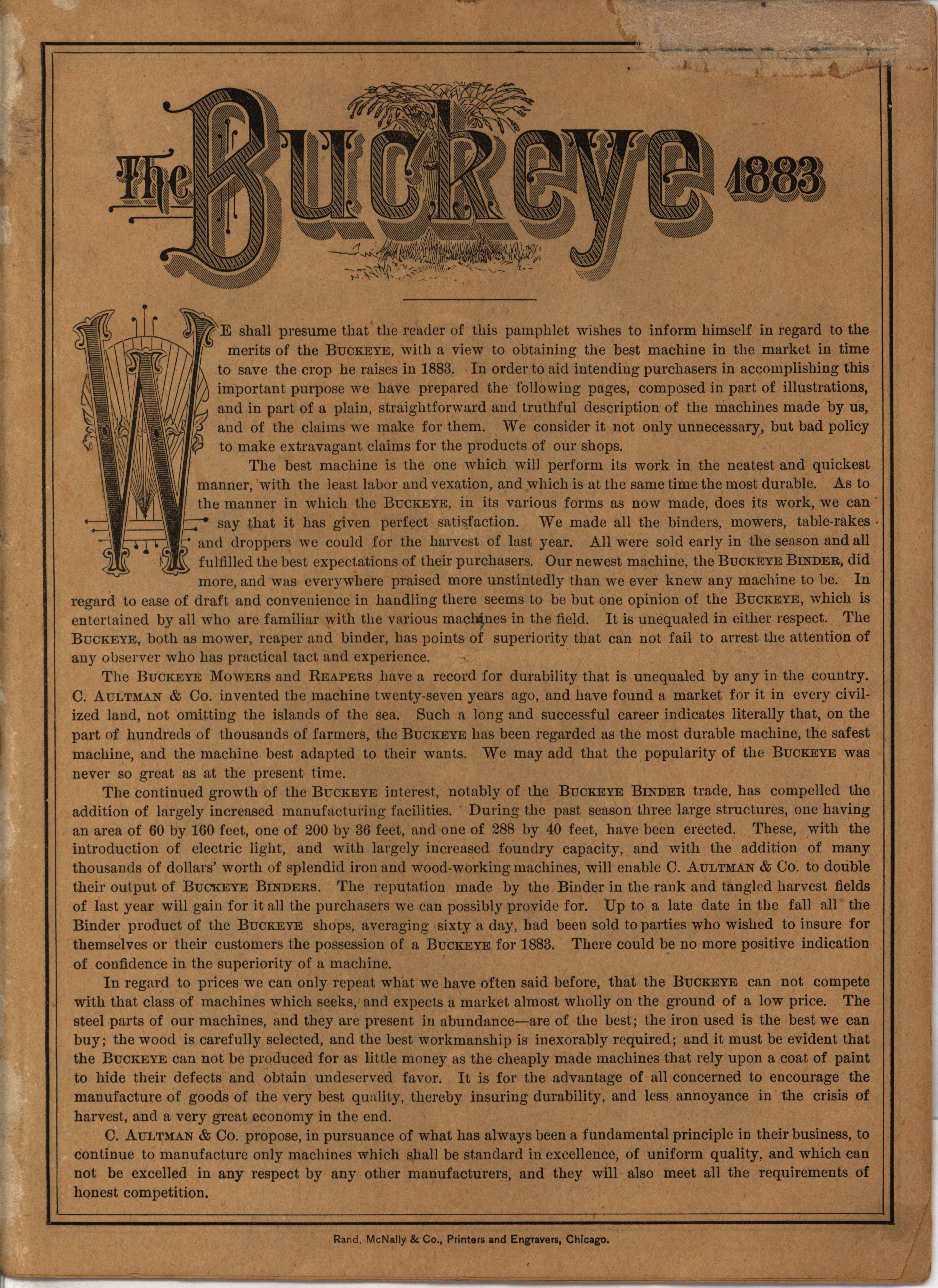 - "C. Aultman and Company Buckeye annual catalog", Agricultural Machinery Literature Collection, Iowa State University Library Digital Collections