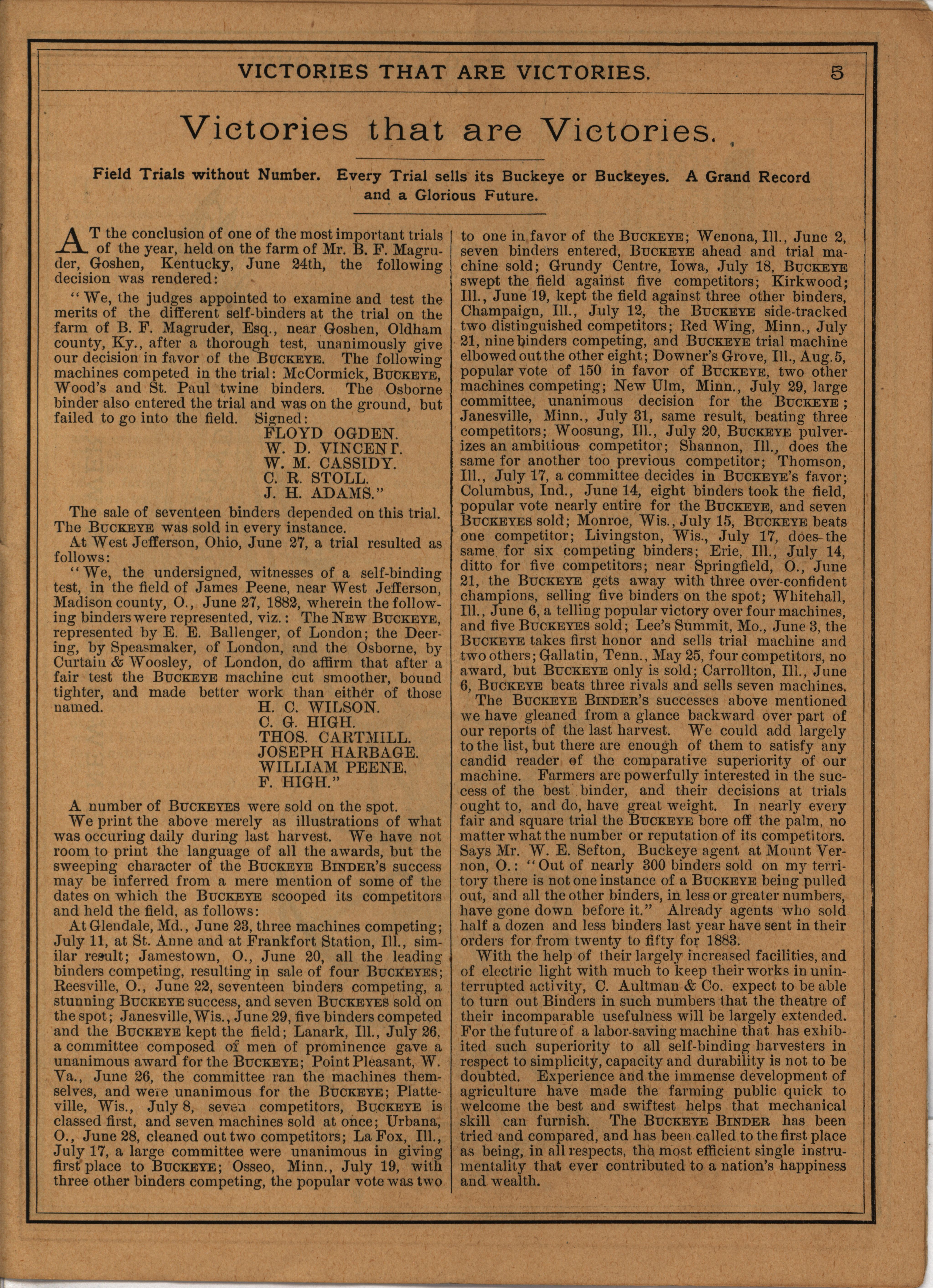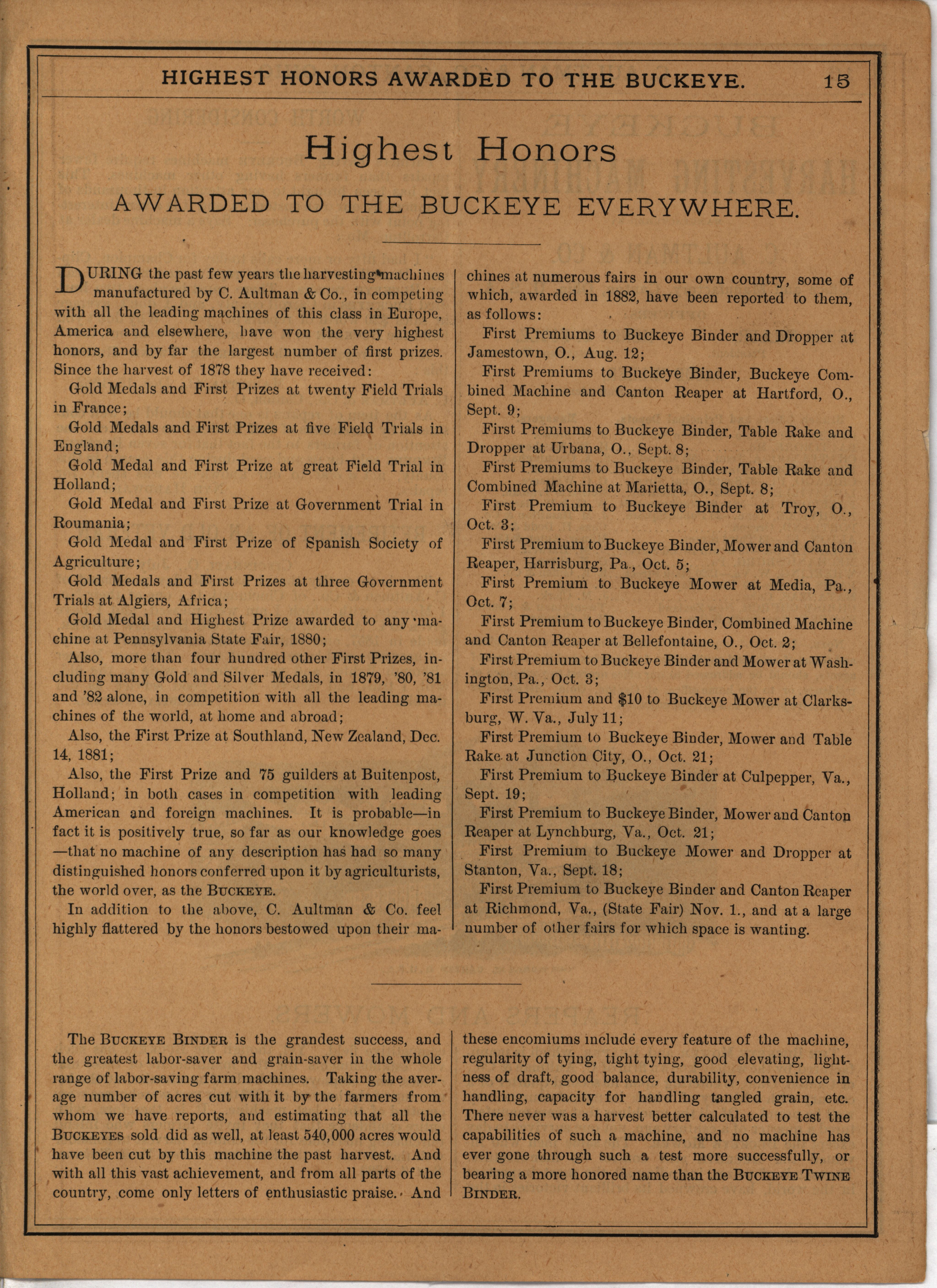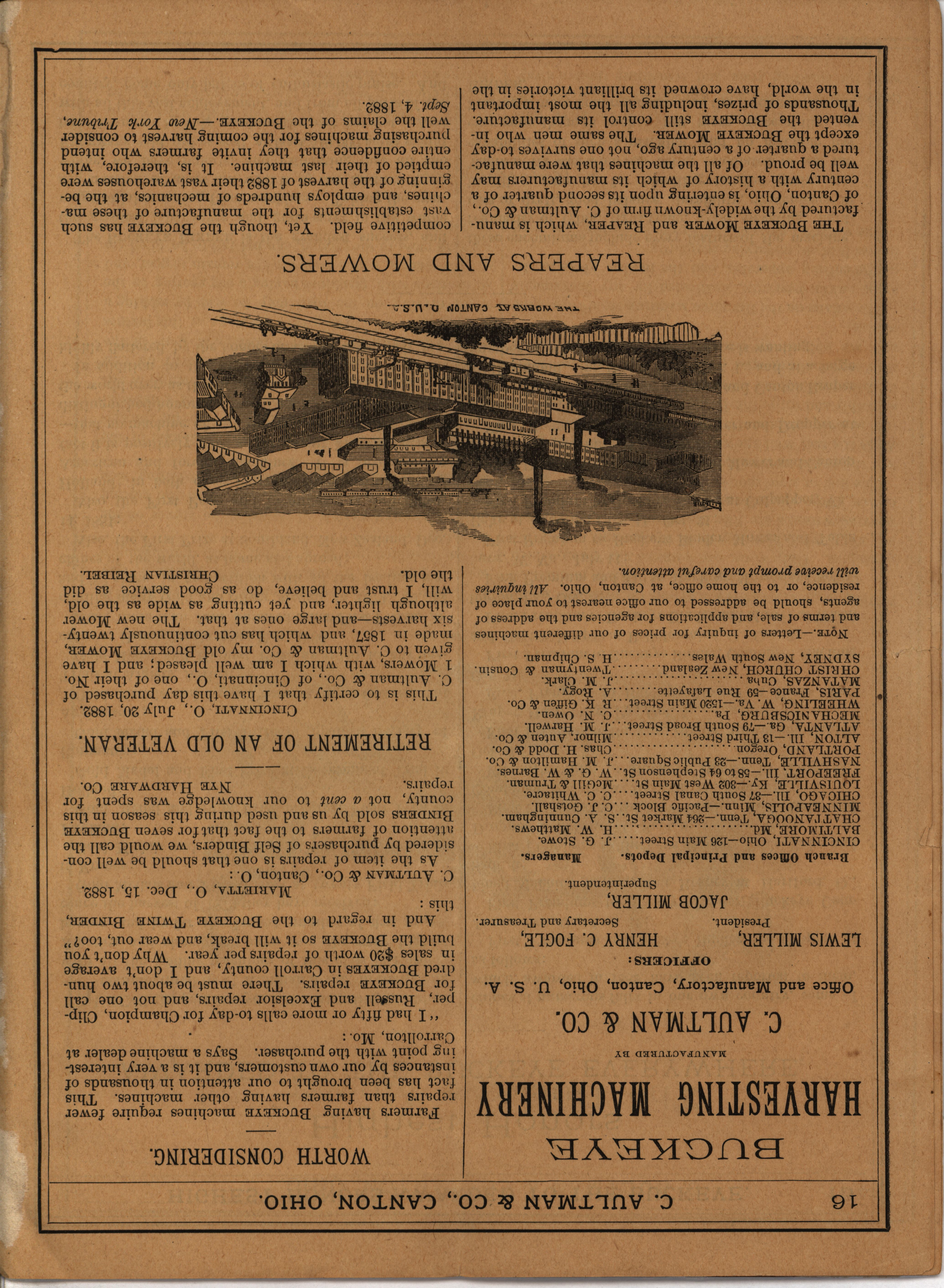 - "C. Aultman and Company Buckeye annual catalog", Agricultural Machinery Literature Collection, Iowa State University Library Digital Collections