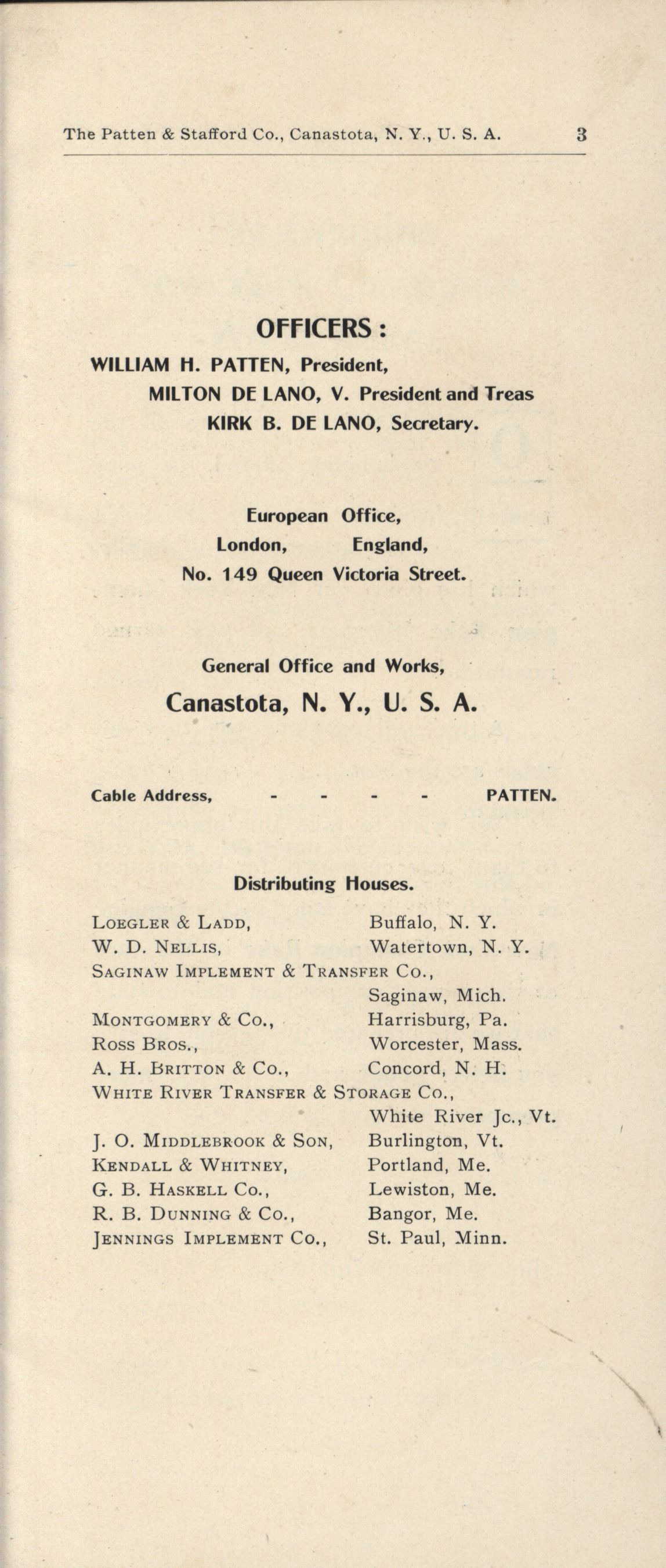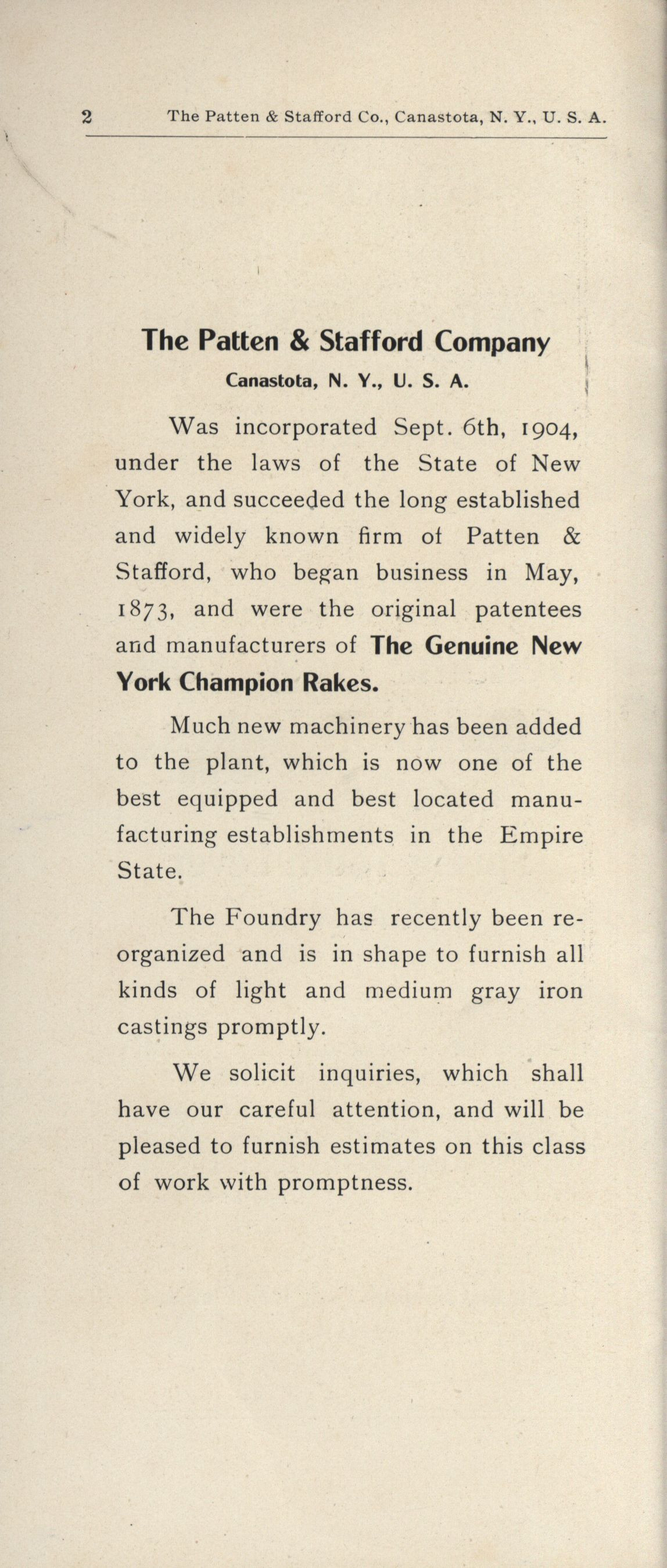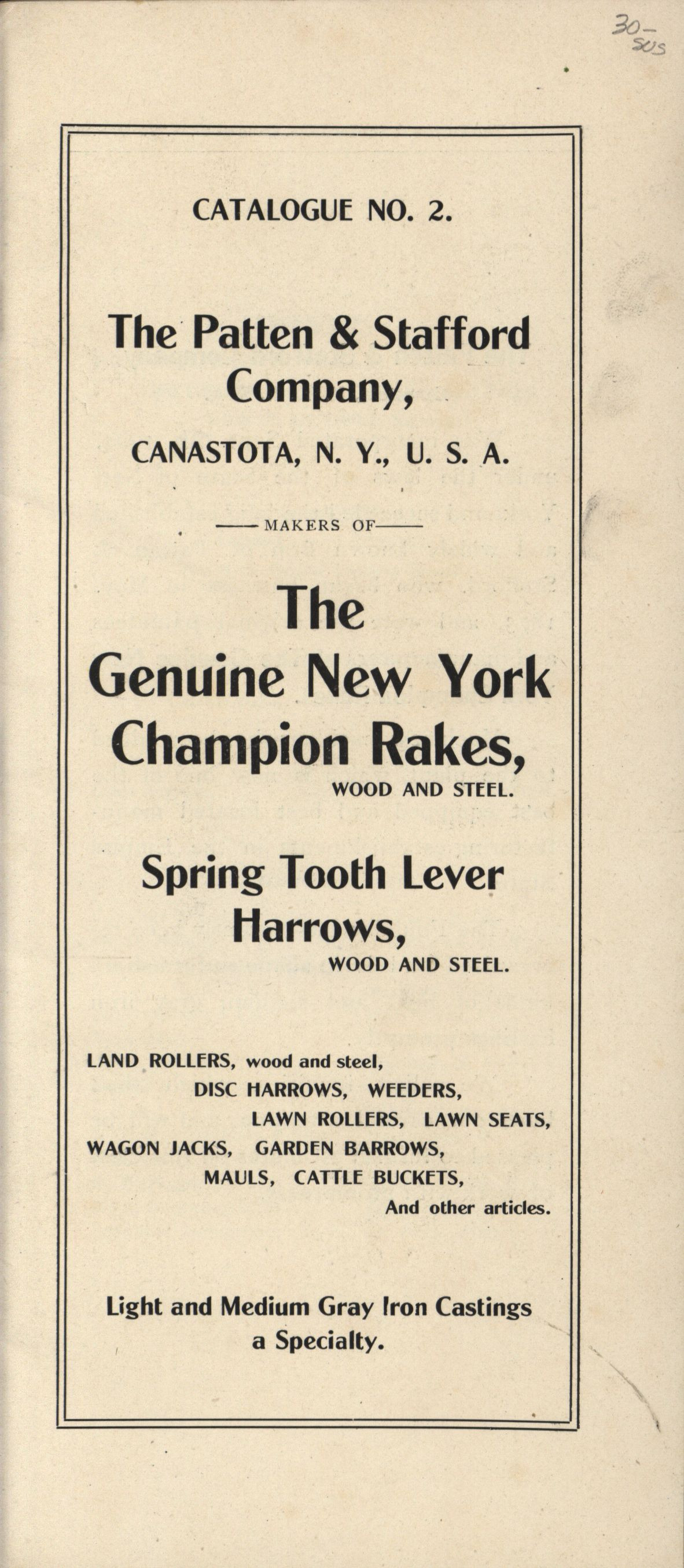 - "Patten and Stafford Company catalog", Agricultural Machinery Literature Collection, Iowa State University Library Digital Collections