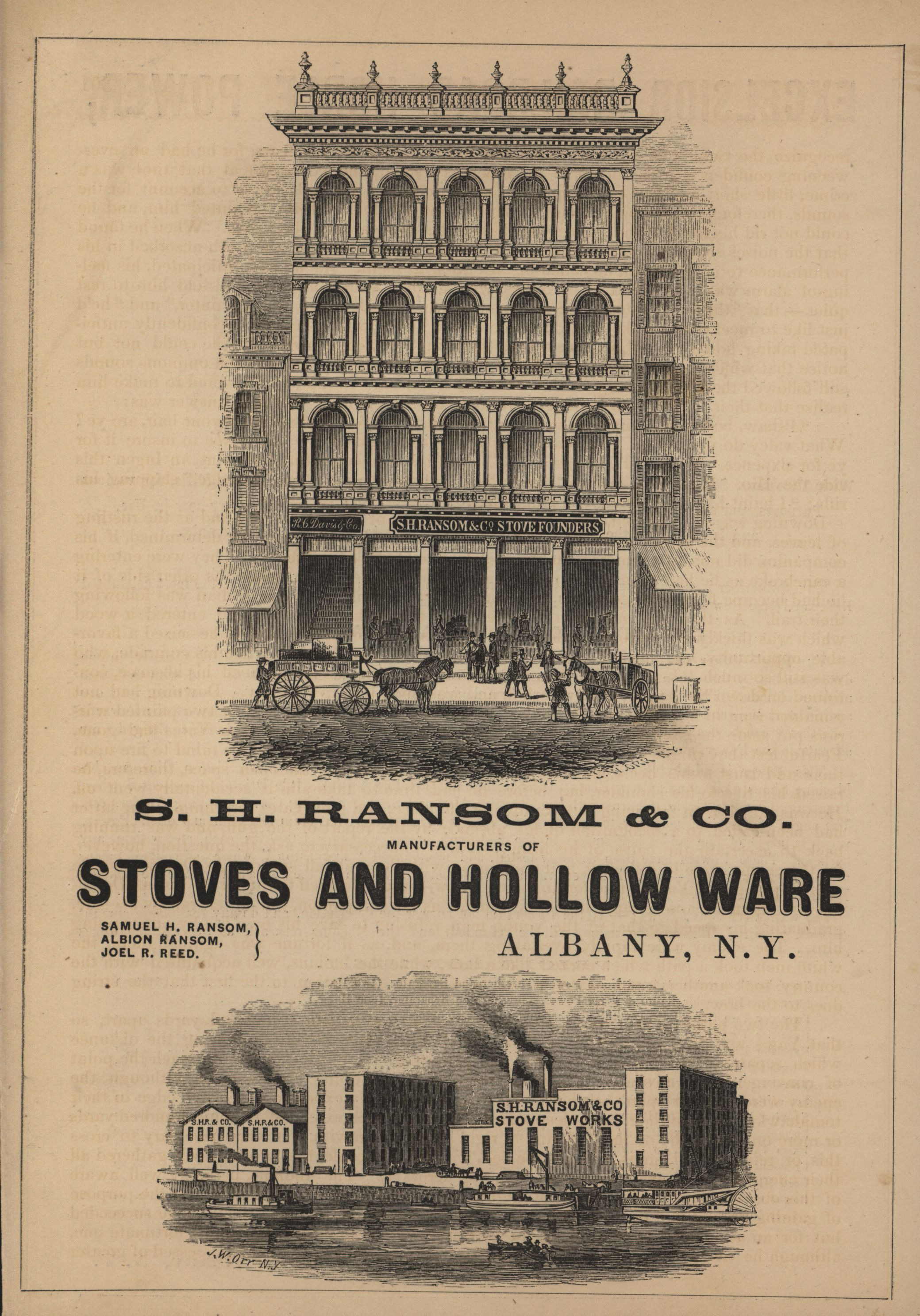 - Illustrated advertisement for the stoves and hollow ware offered by S. H. Ransom and Company.