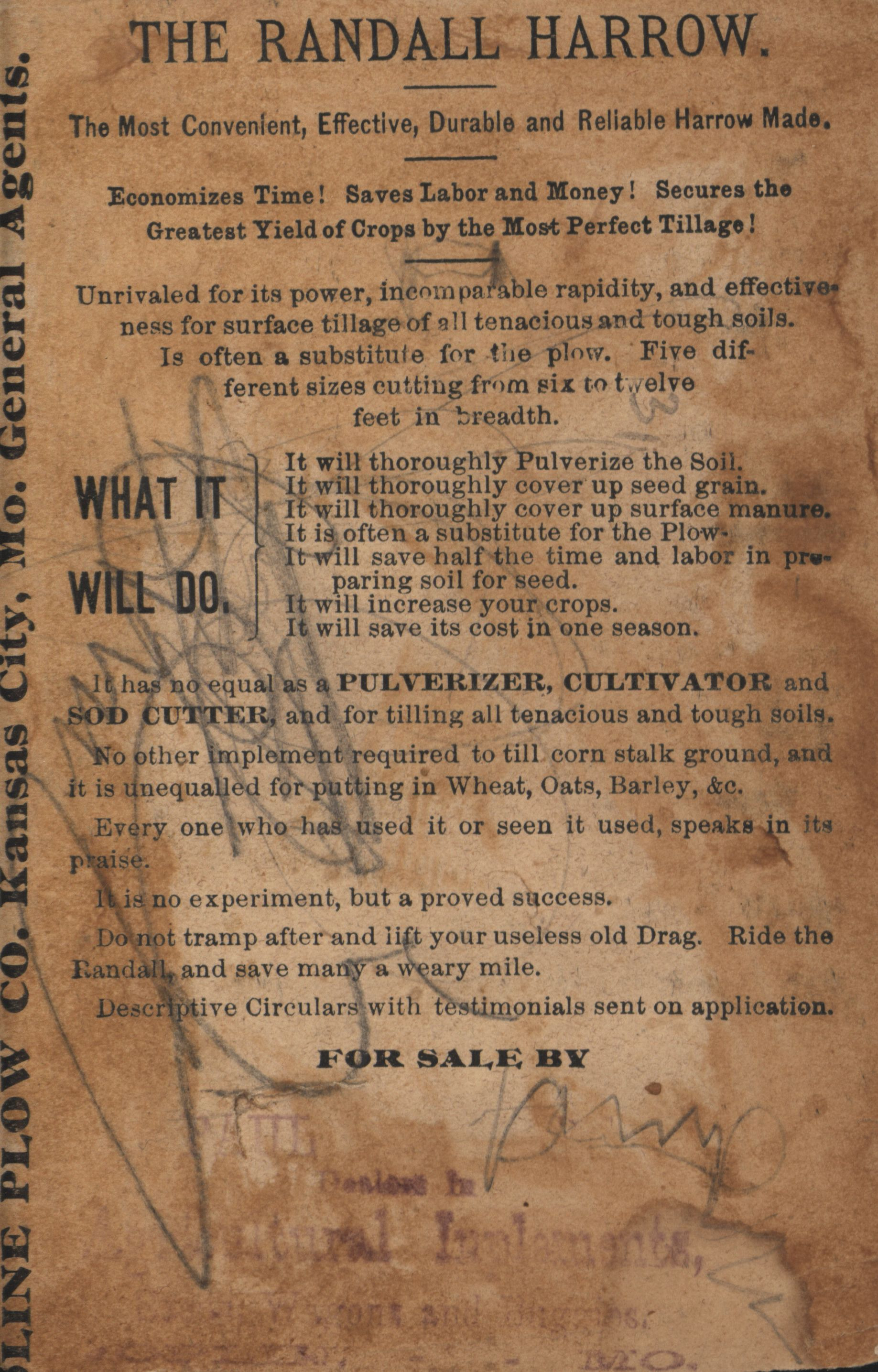 - "J. W. Stoddard and Company Randall Pulverizing Harrow advertisement card", Agricultural Machinery Literature Collection, Iowa State University Library Digital Collections