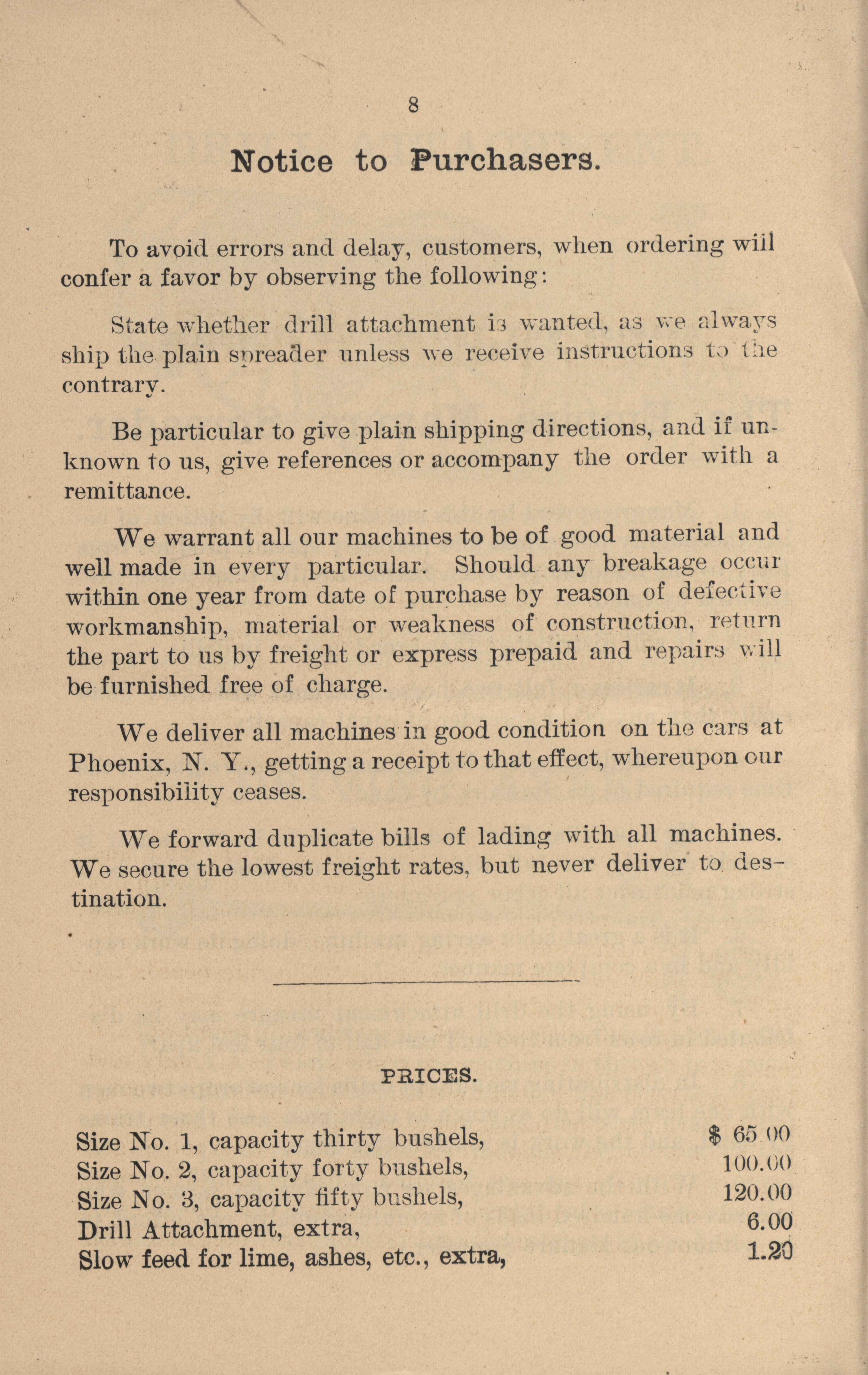 The Phoenix Spreader Company Empire Manure Spreader catalog Item Info