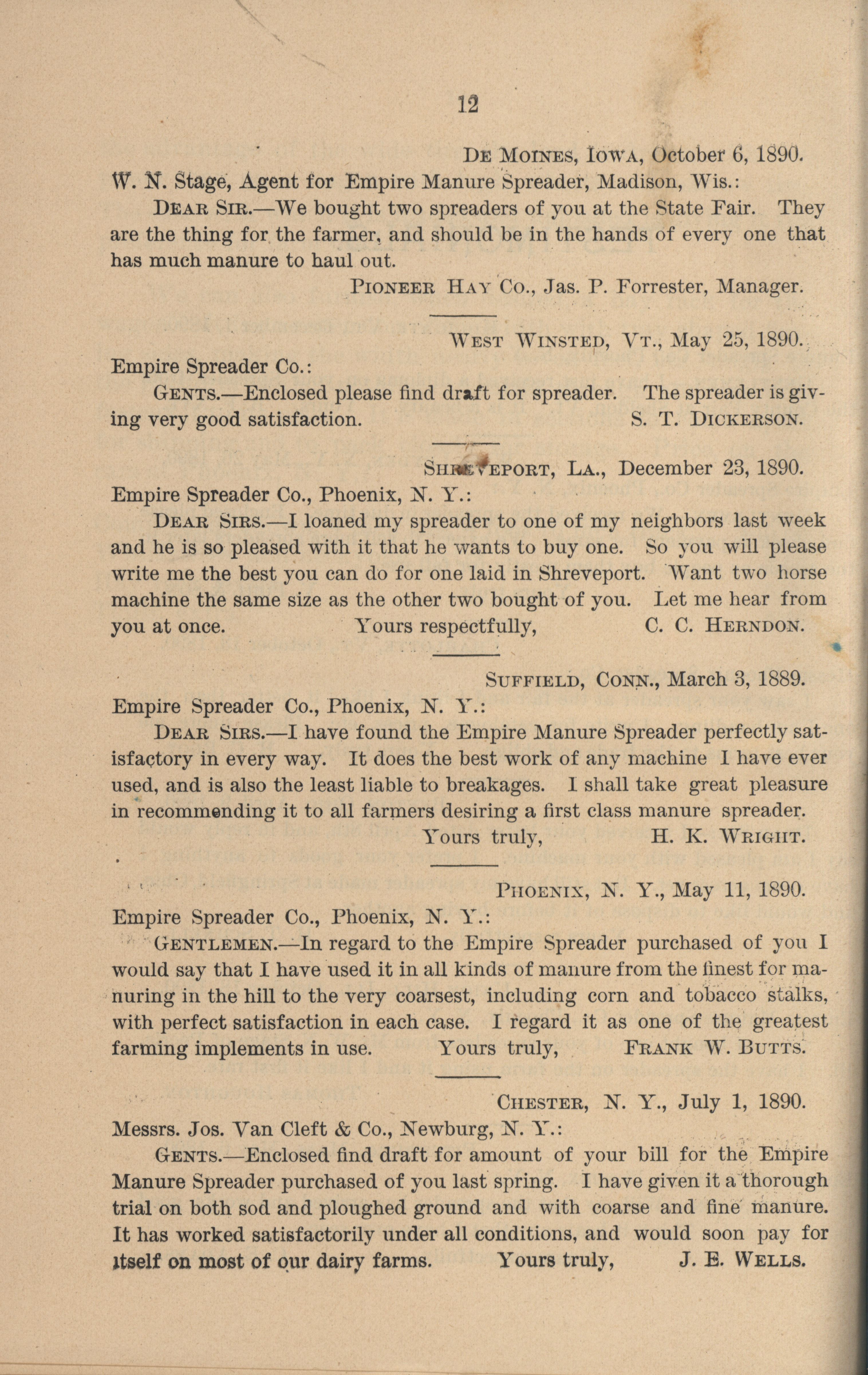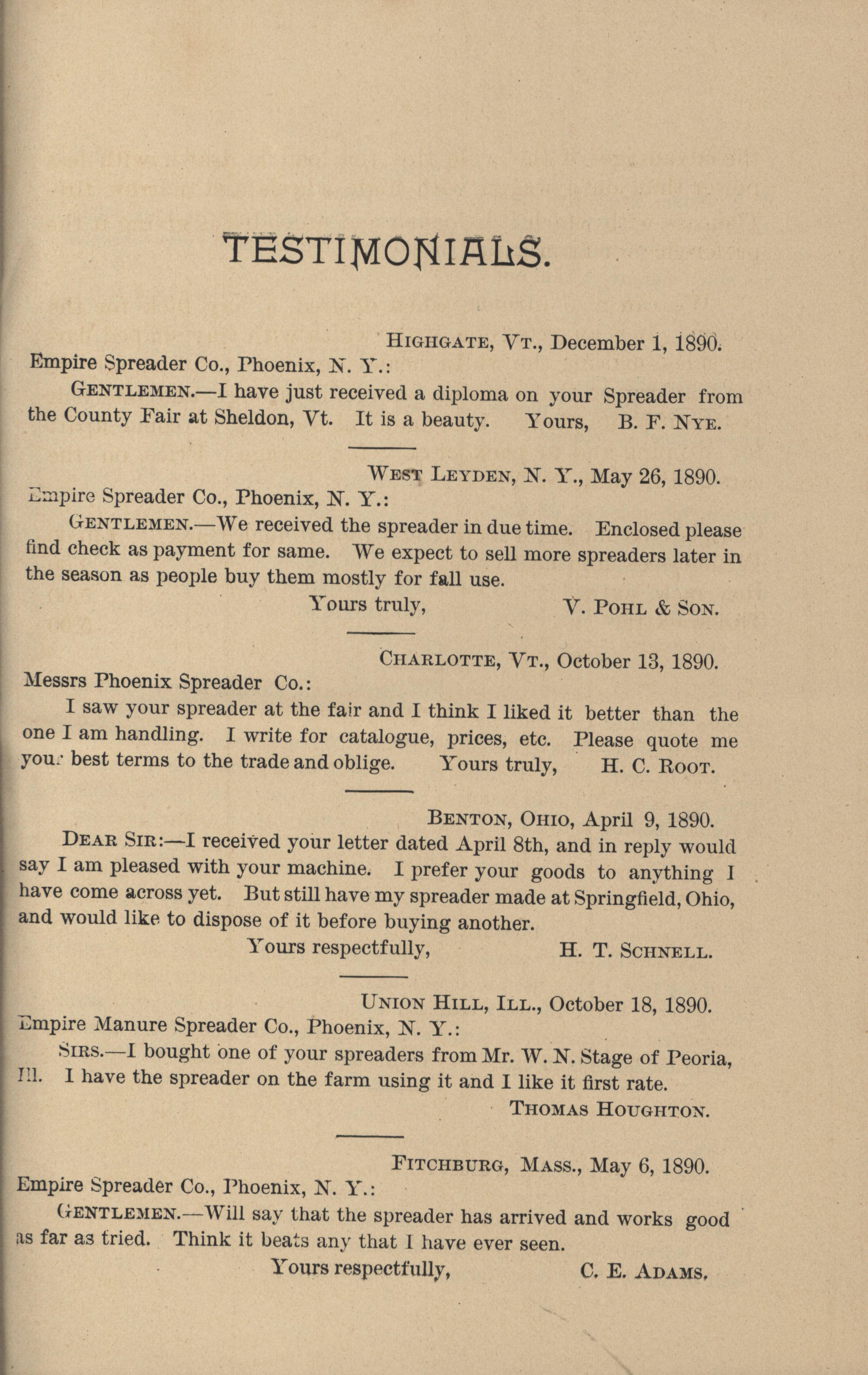 - "The Phoenix Spreader Company Empire Manure Spreader catalog", Agricultural Machinery Literature Collection, Iowa State University Library Digital Collections