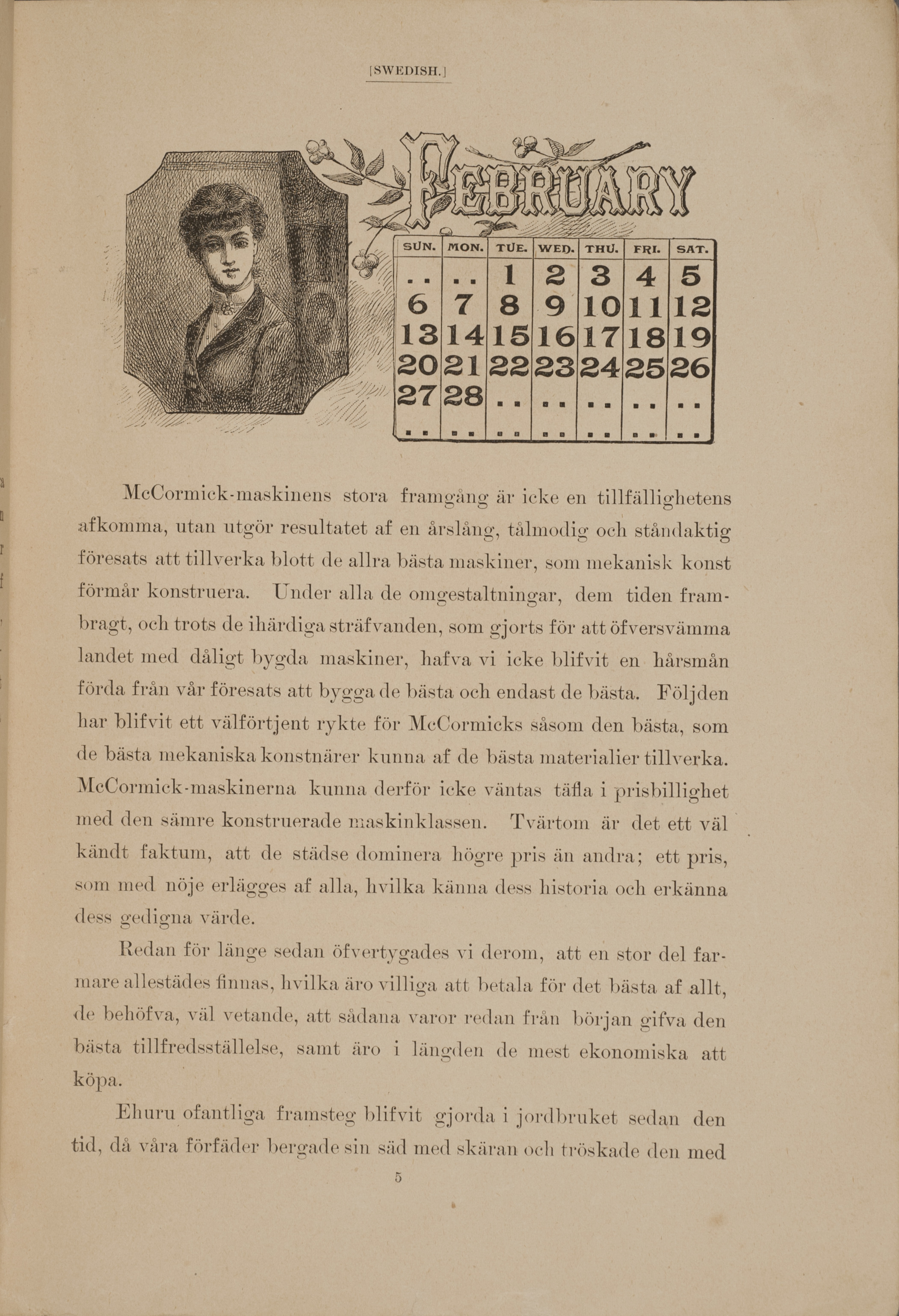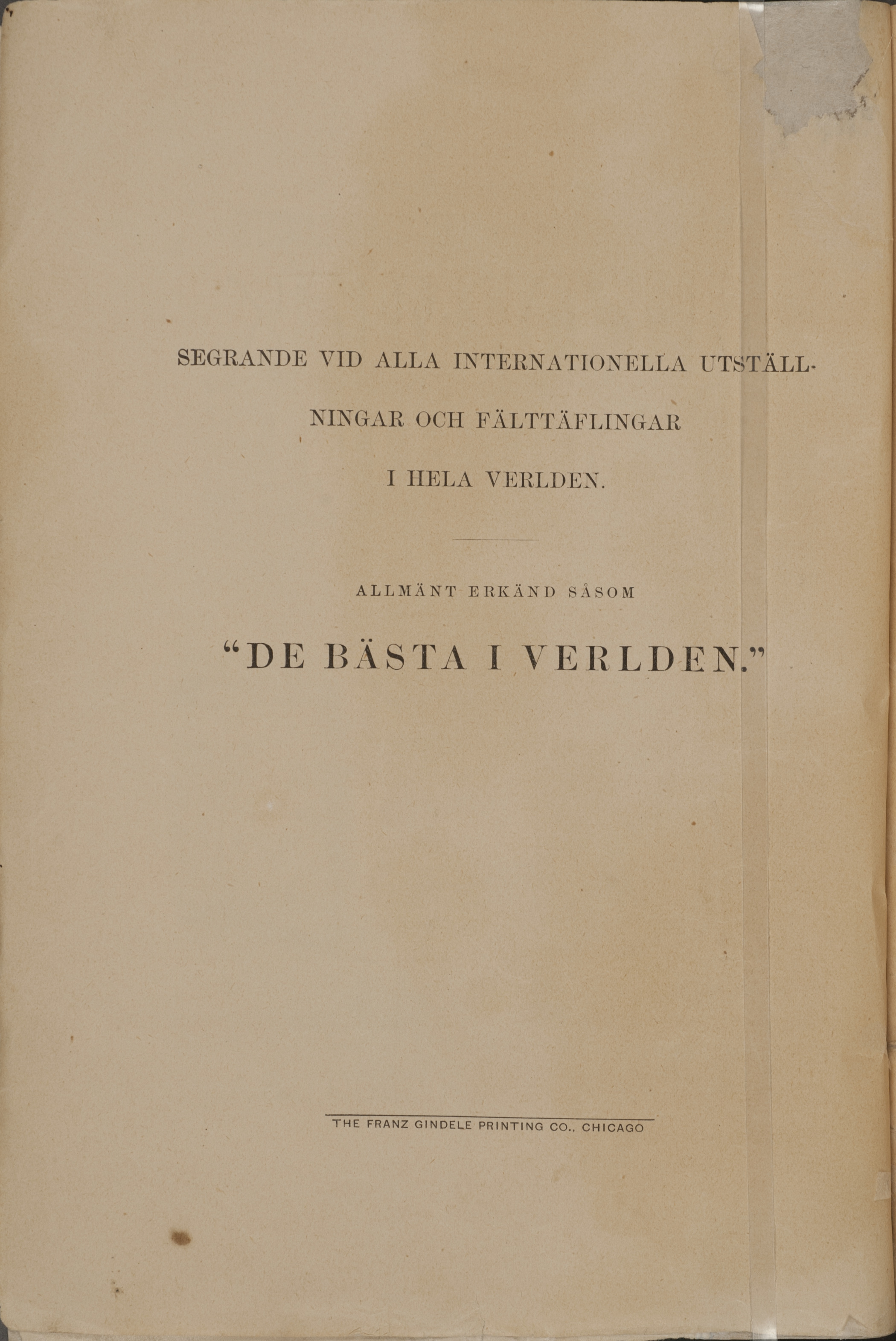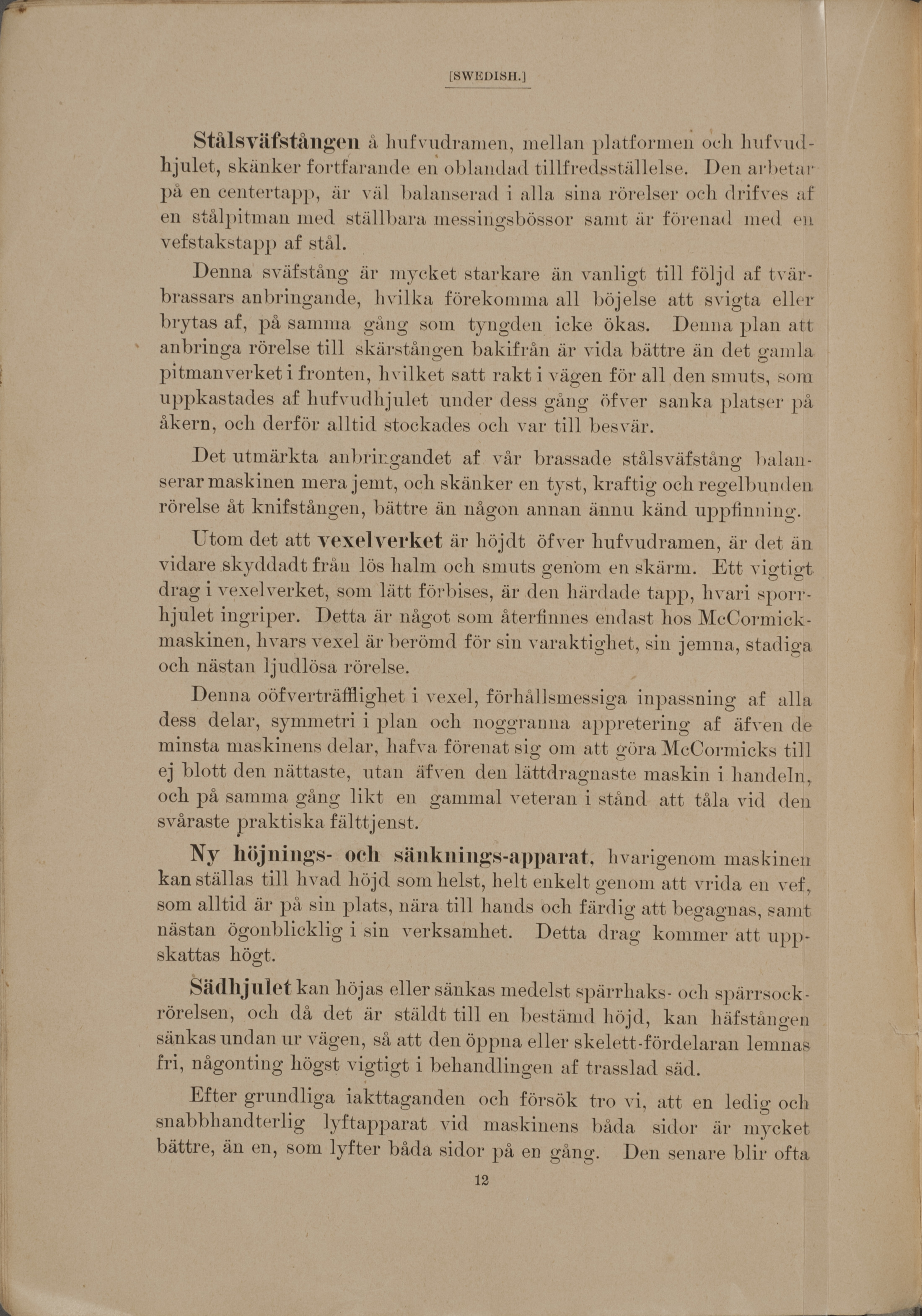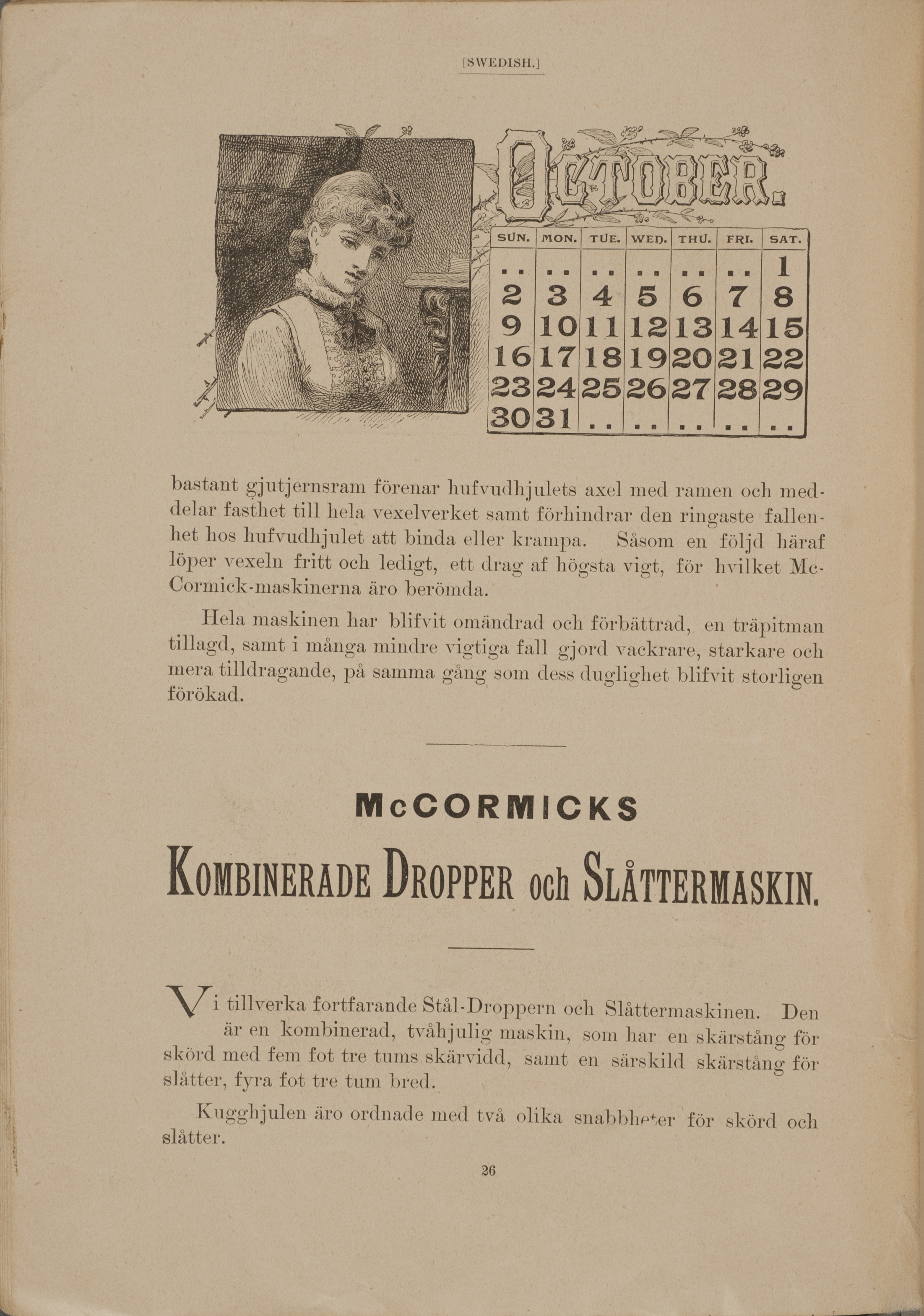 - Illustrated catalog in Swedish advertising the products manufactured by McCormick Machine Company.