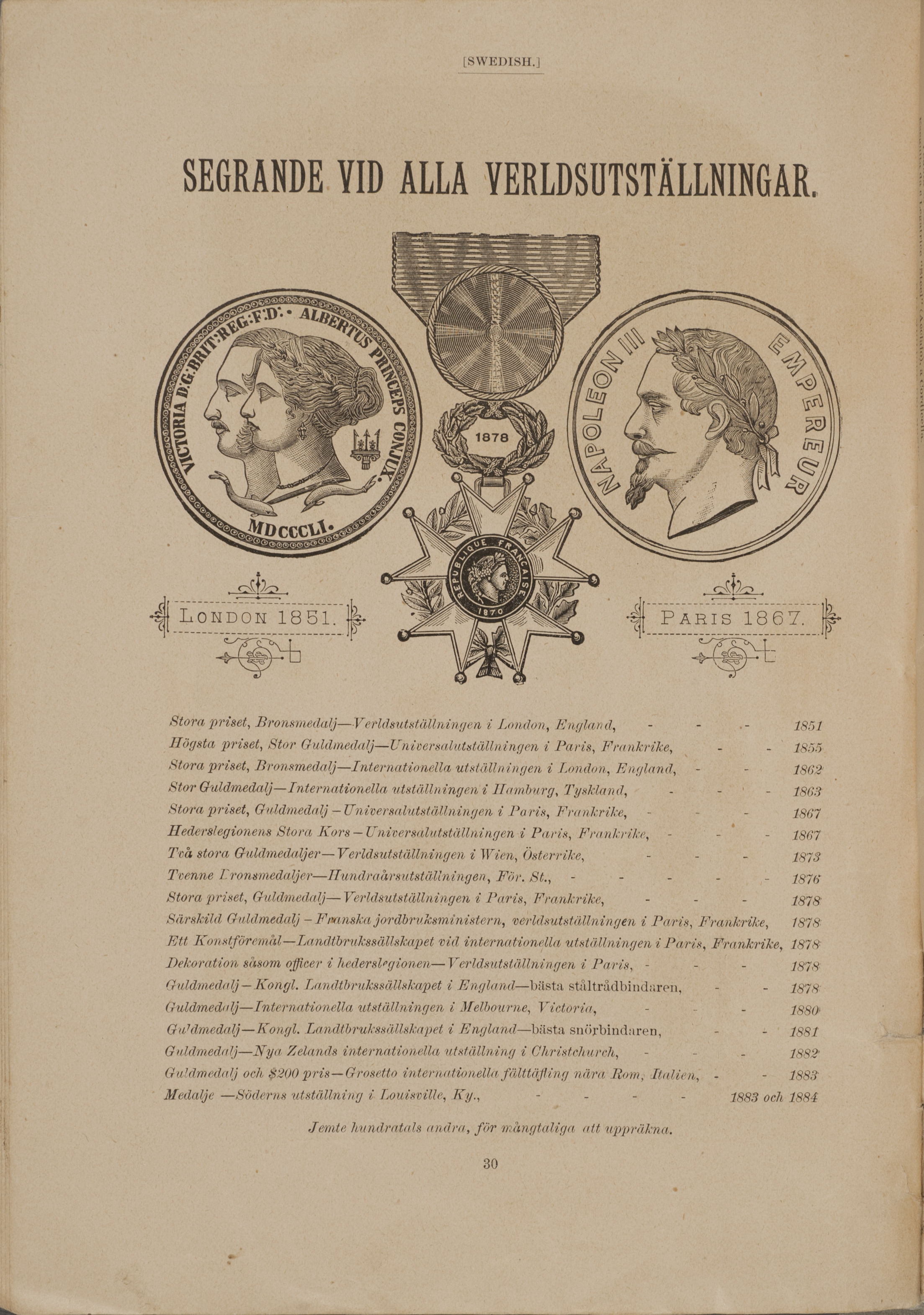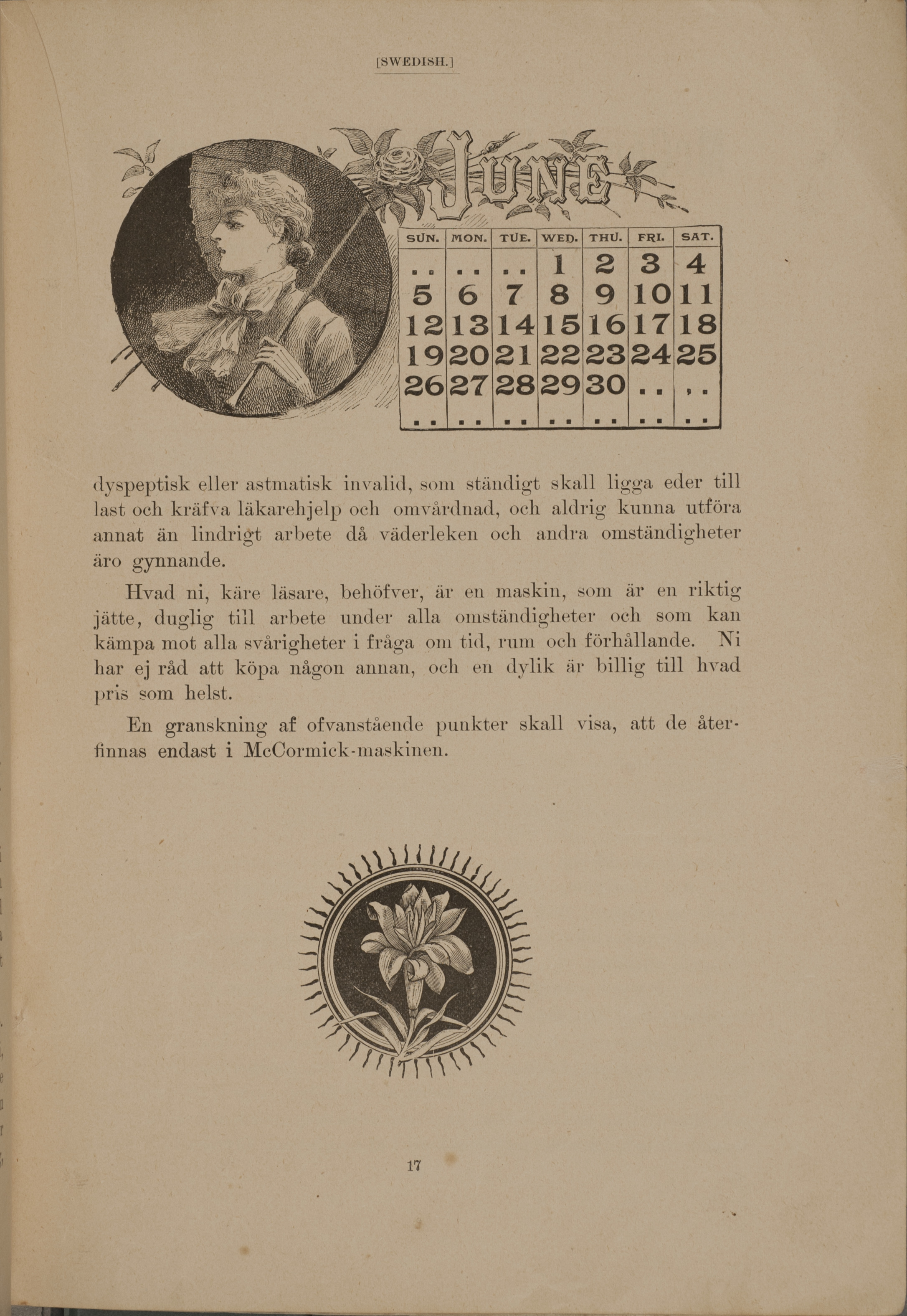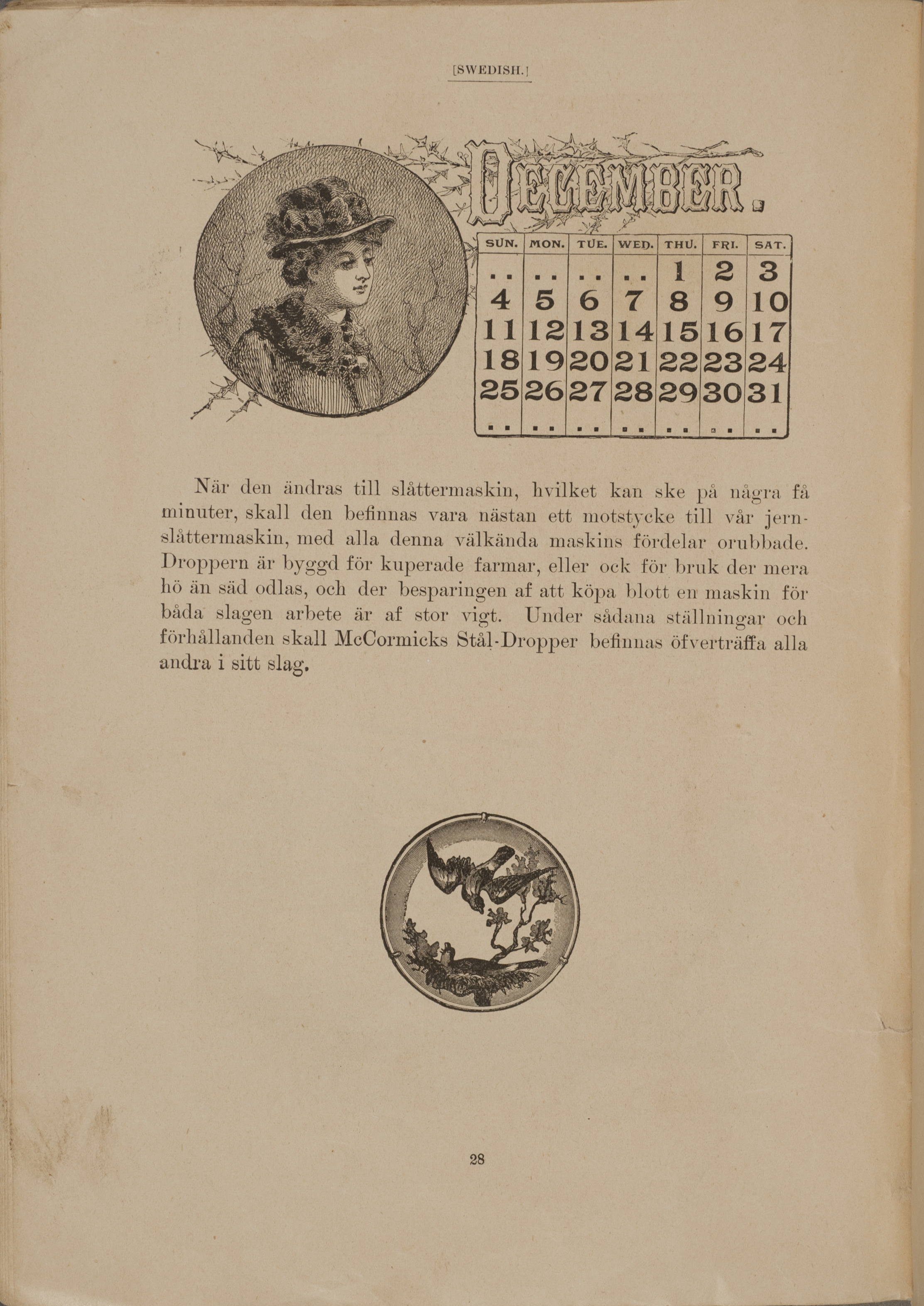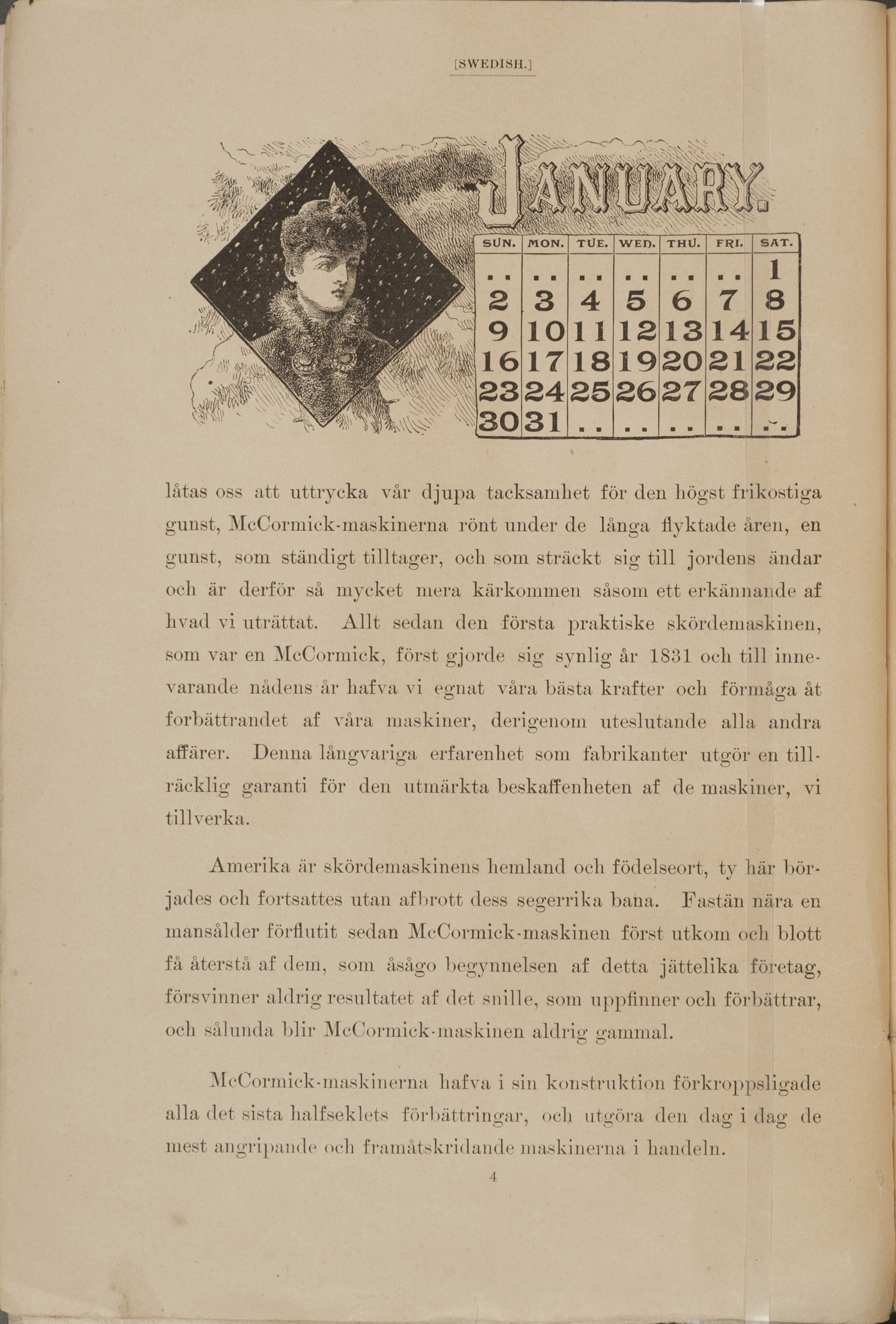 - Illustrated catalog in Swedish advertising the products manufactured by McCormick Machine Company.