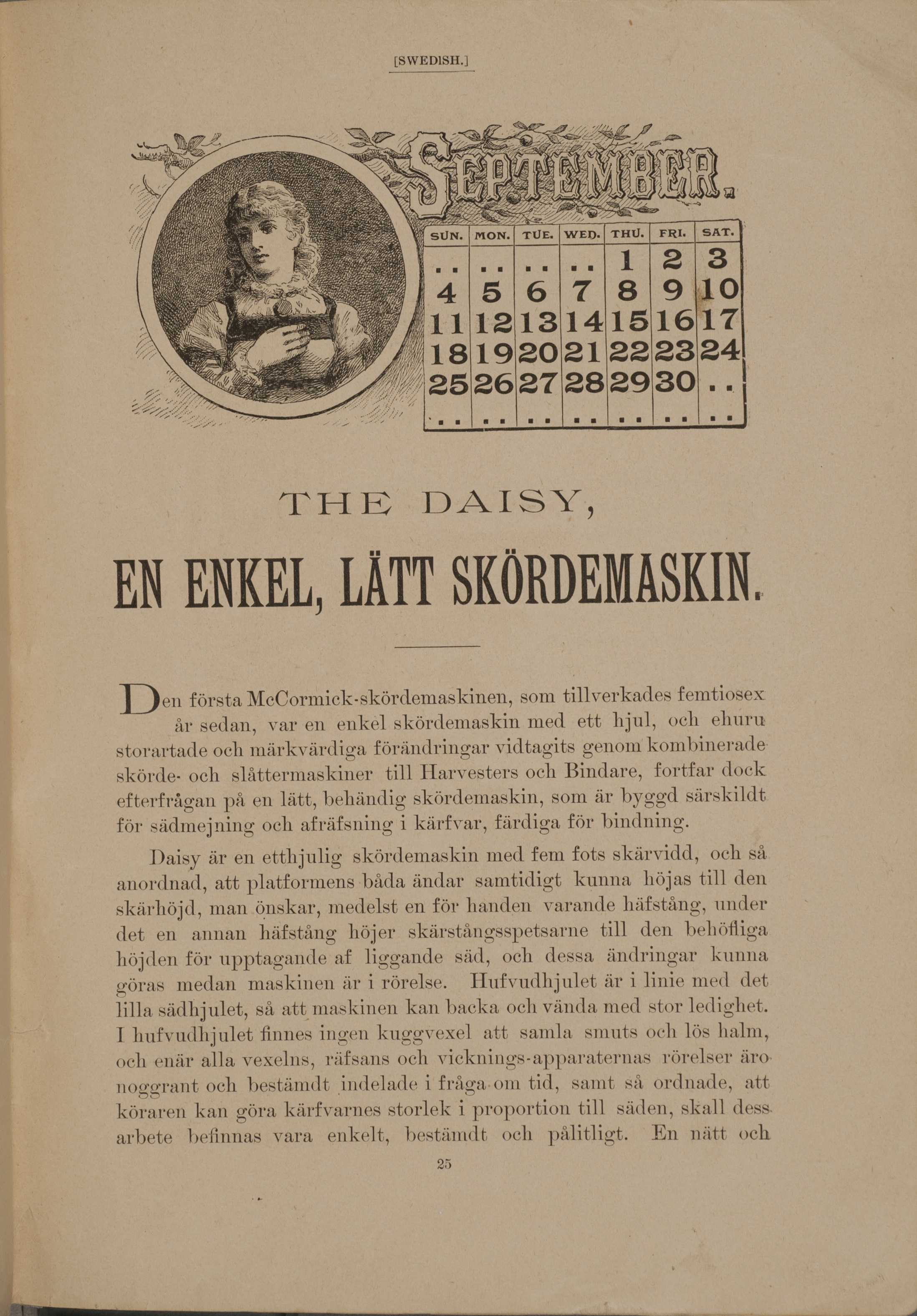 - "Swedish McCormick Harvesting Machine Company catalog", Agricultural Machinery Literature Collection, Iowa State University Library Digital Collections