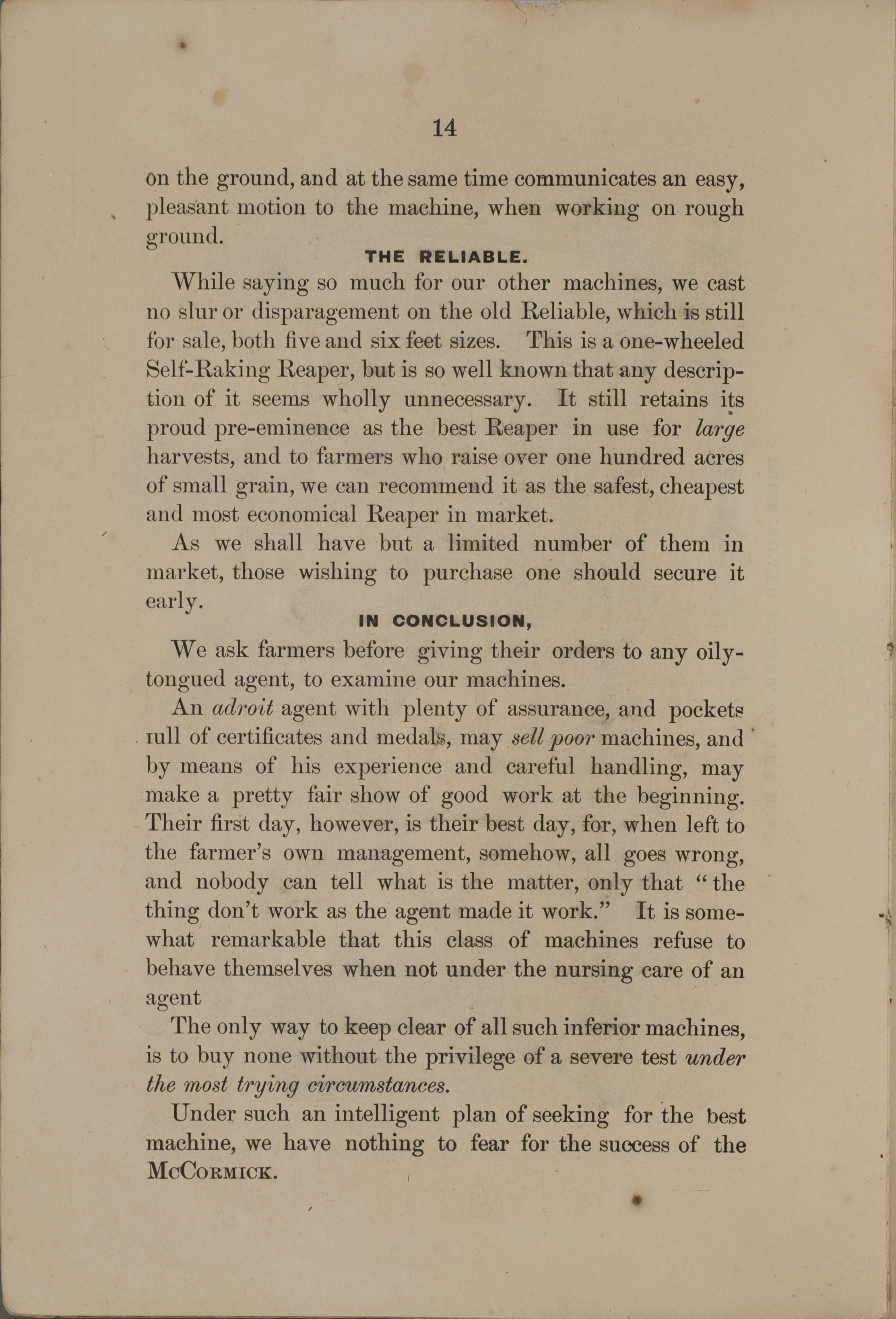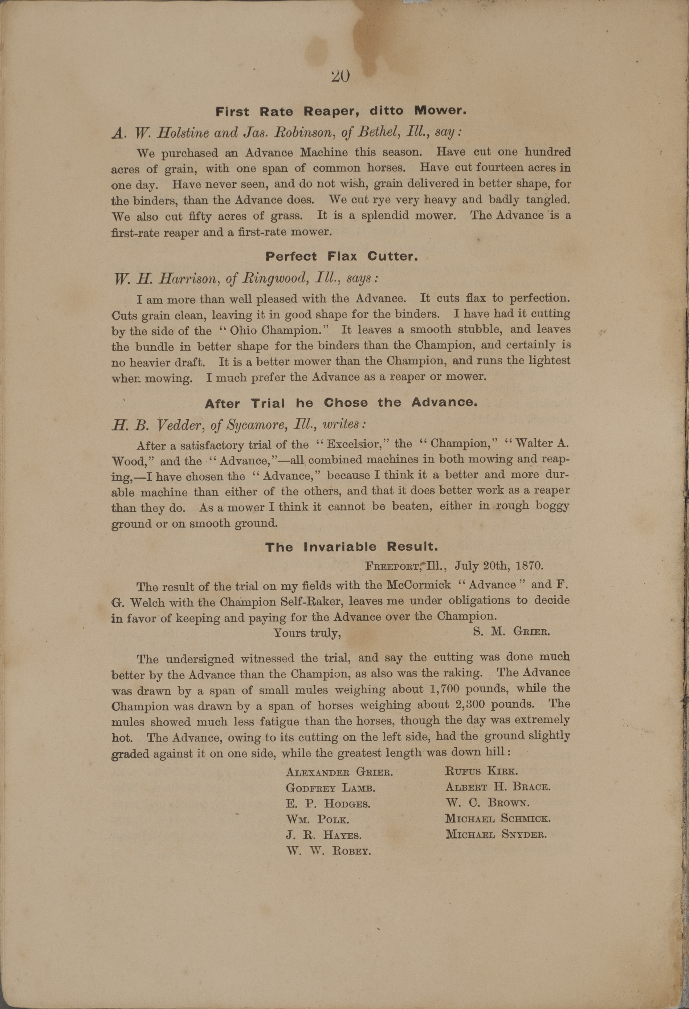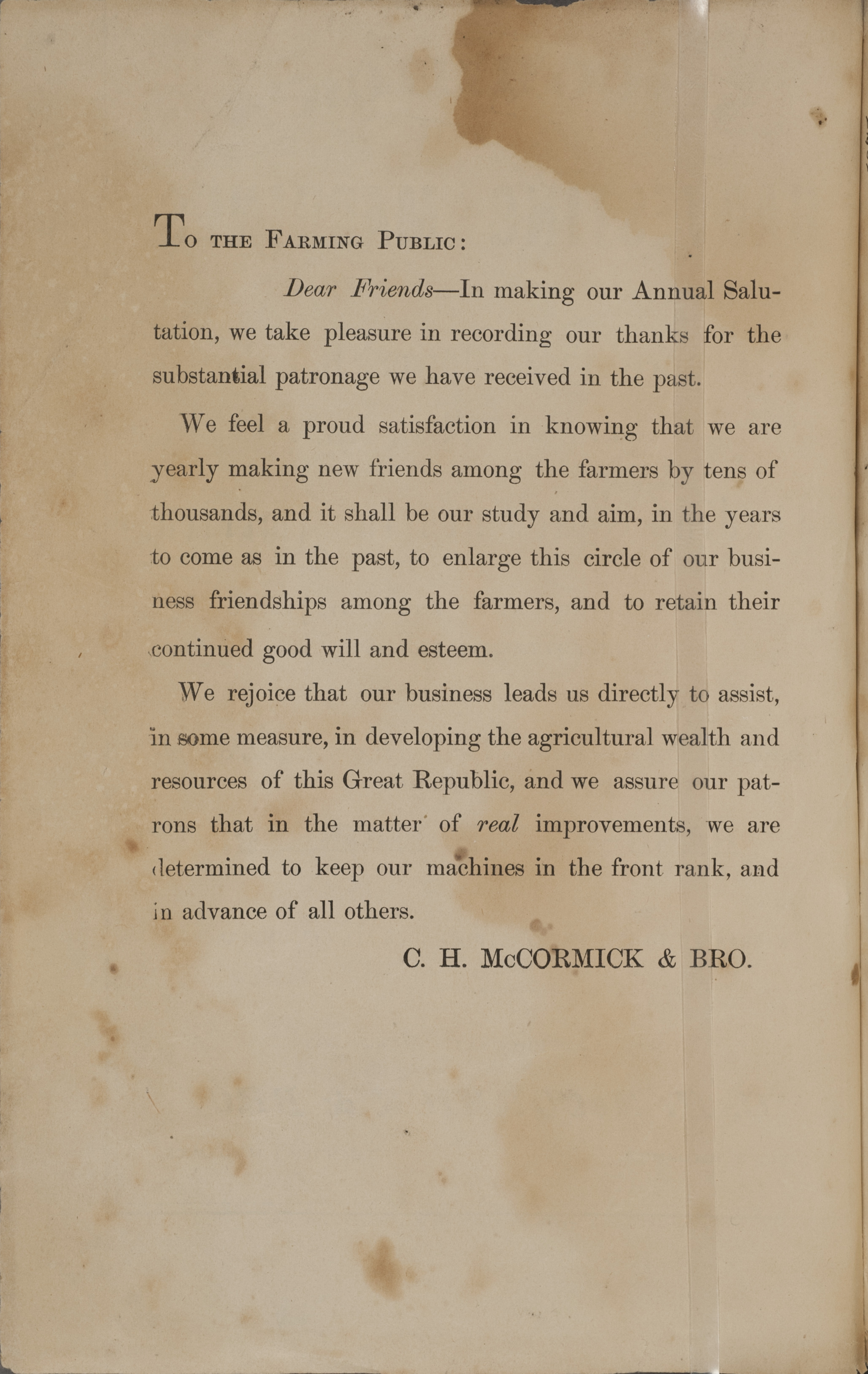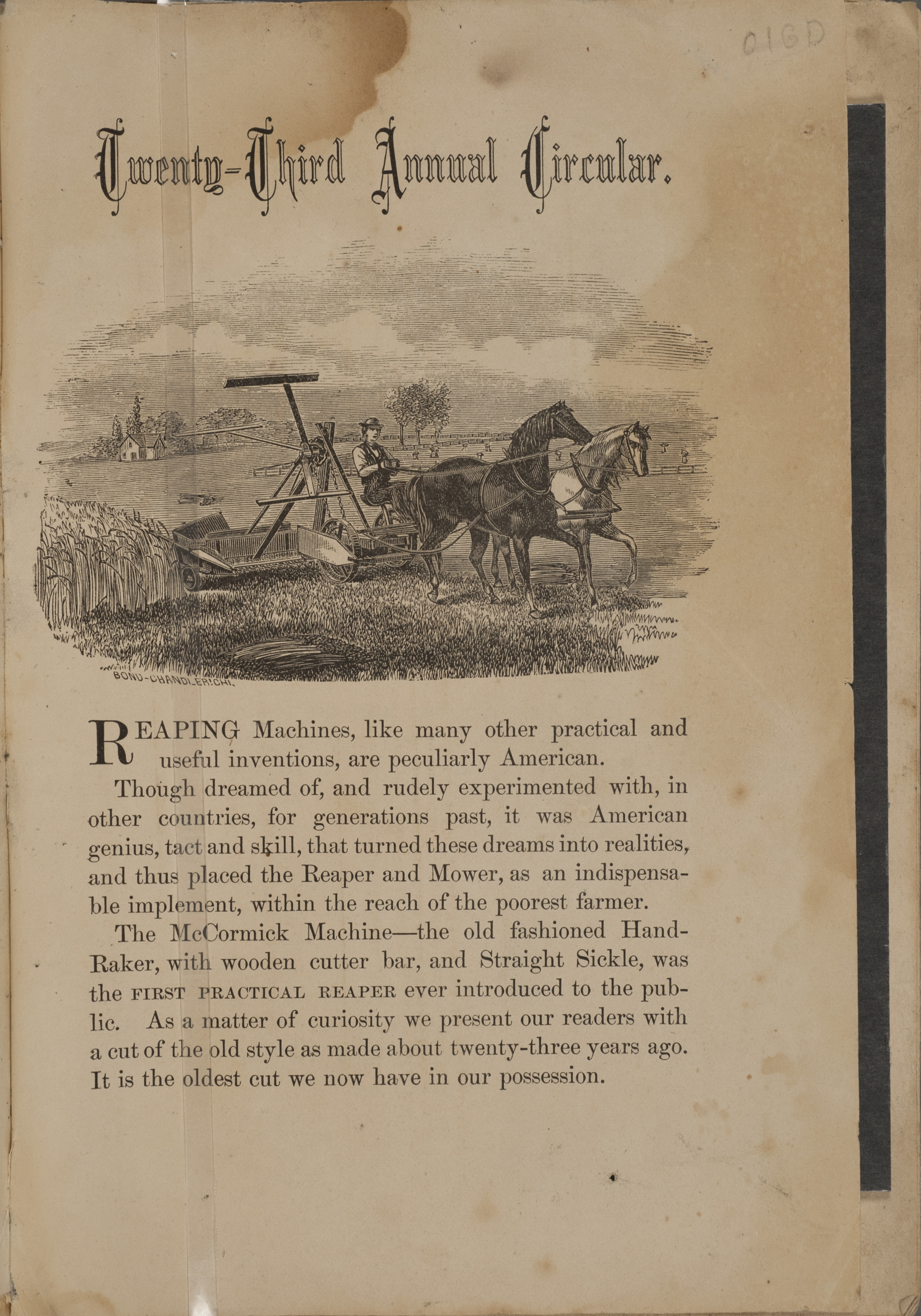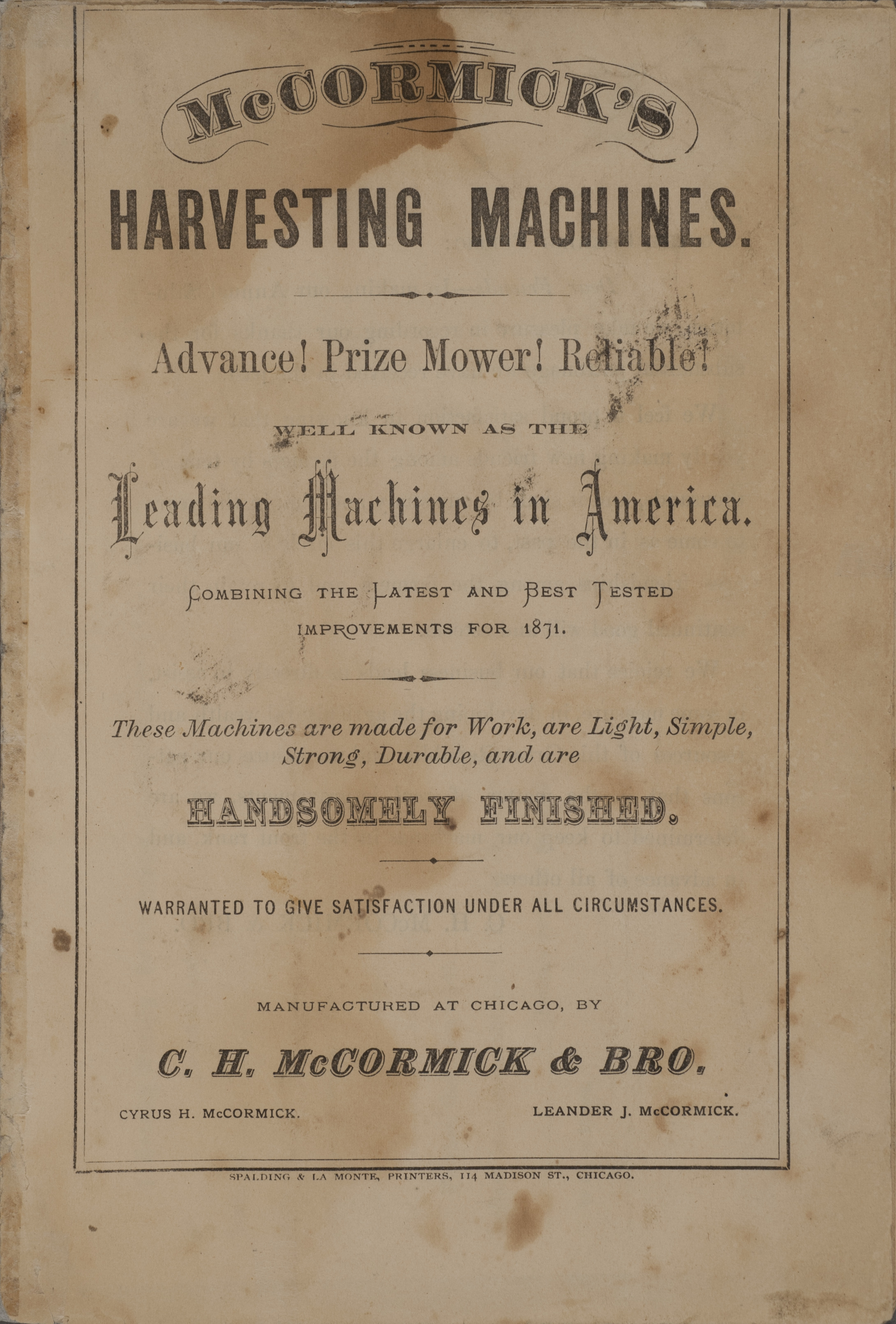 - "Illustrated catalog for C.H. McCormick and Bro.", Agricultural Machinery Literature Collection, Iowa State University Library Digital Collections