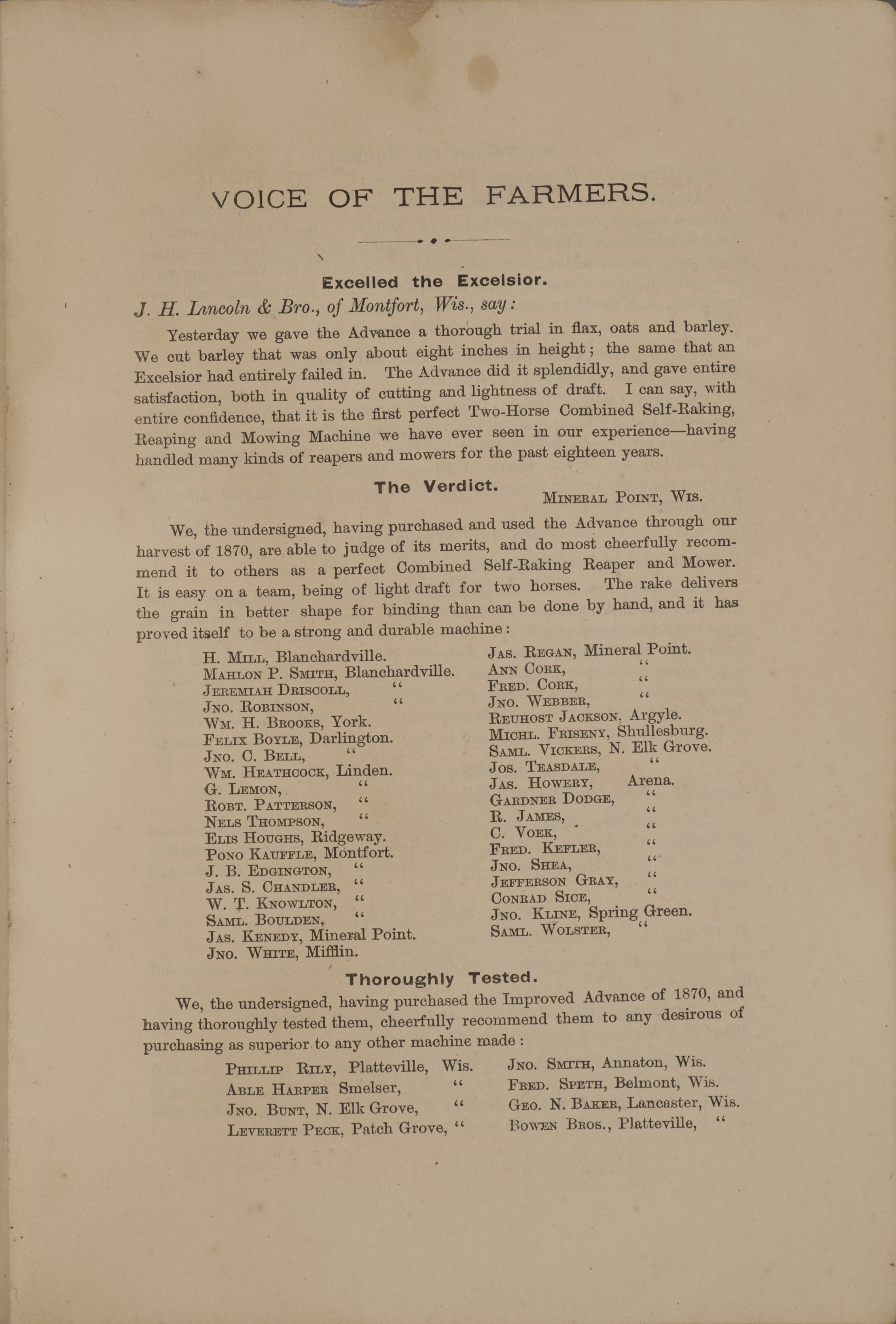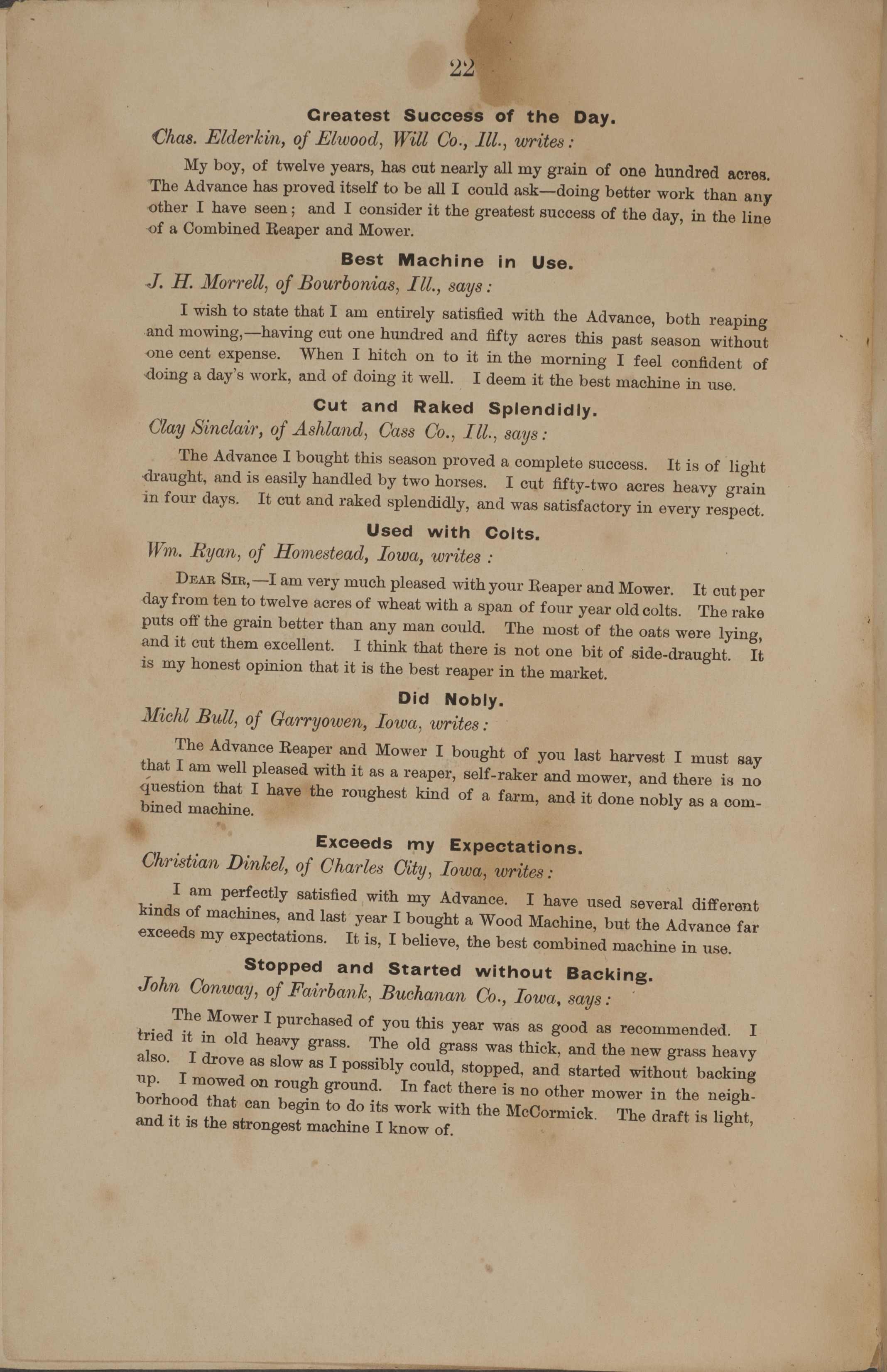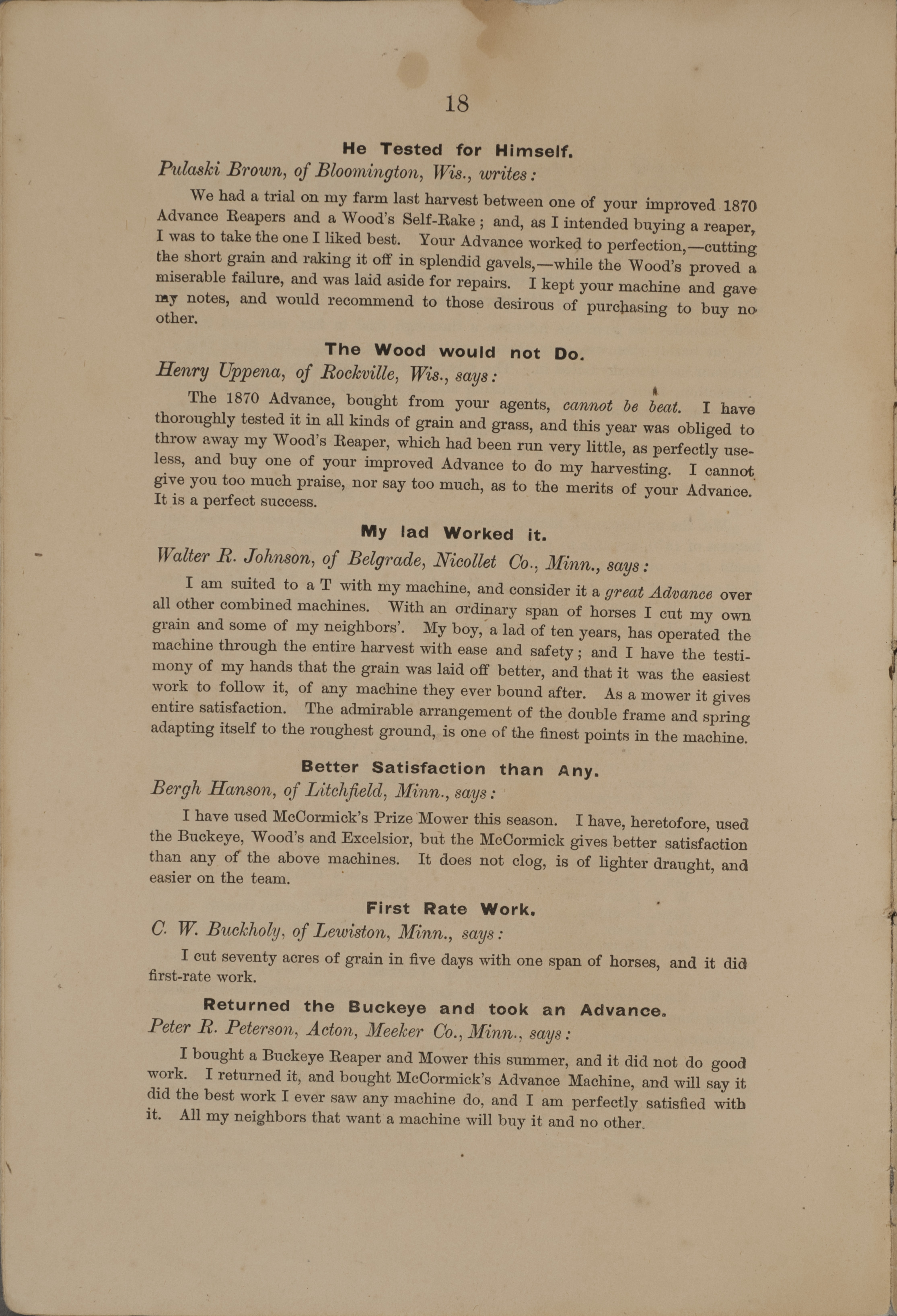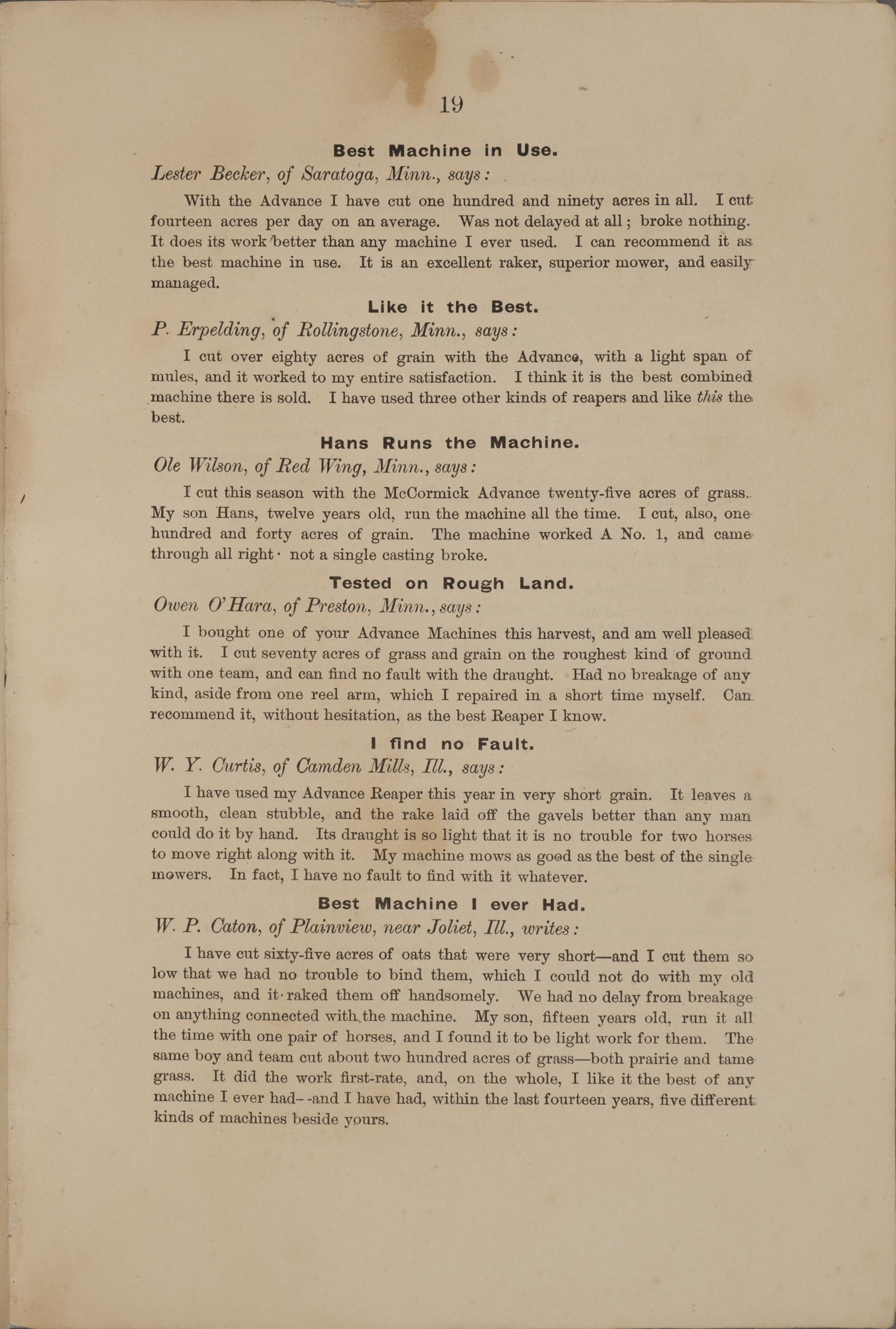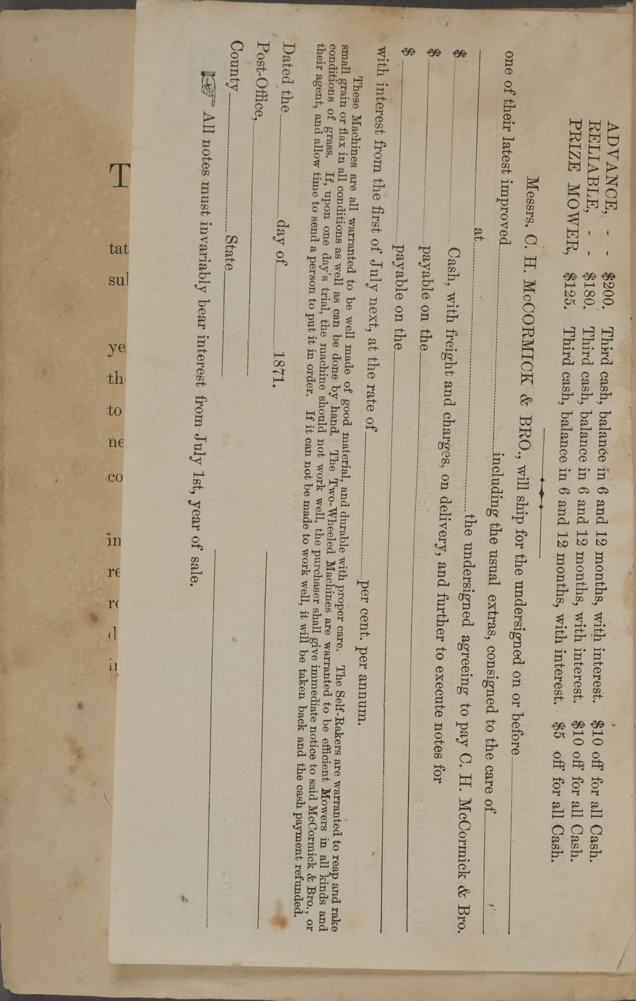 - "Illustrated catalog for C.H. McCormick and Bro.", Agricultural Machinery Literature Collection, Iowa State University Library Digital Collections