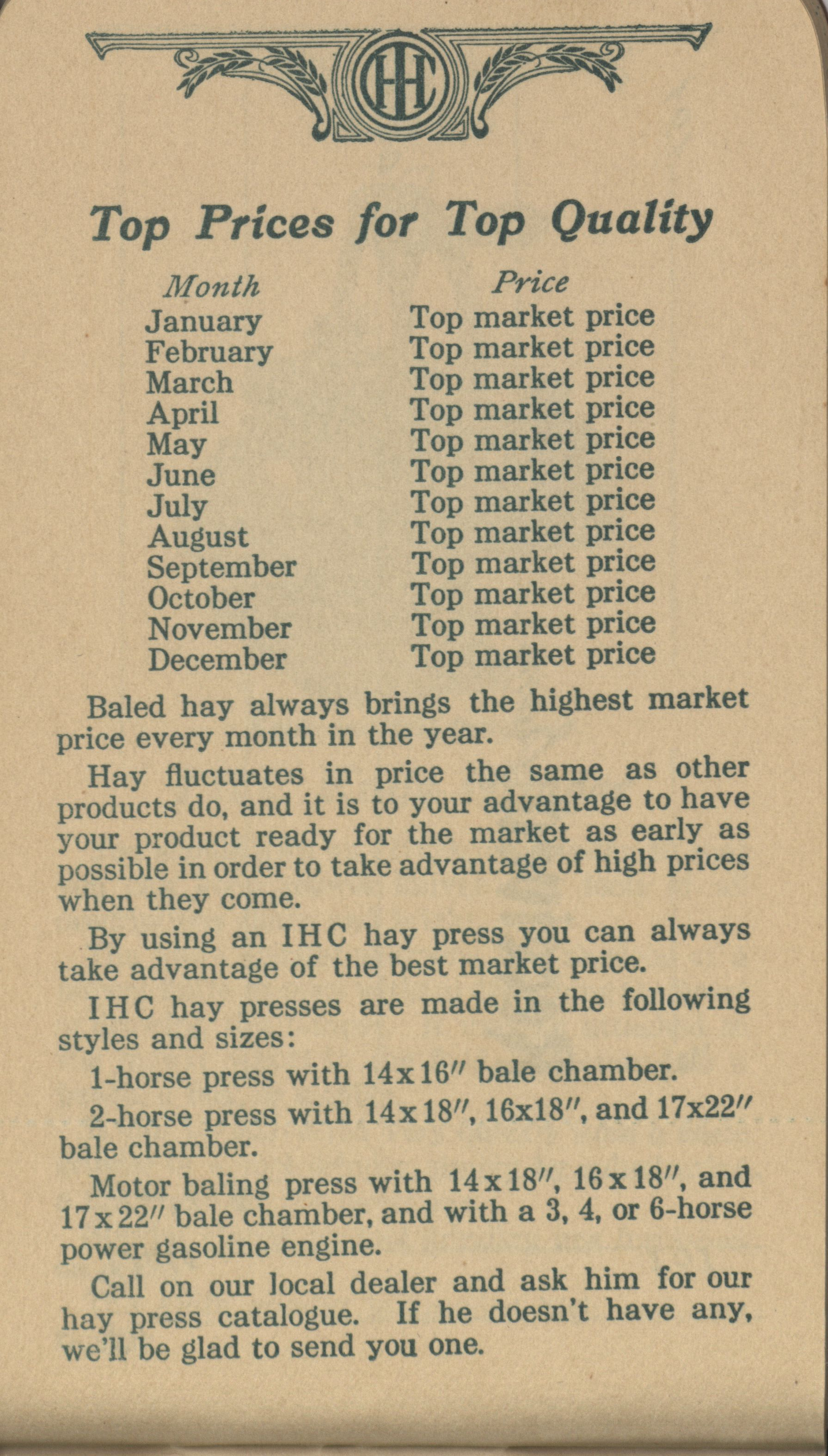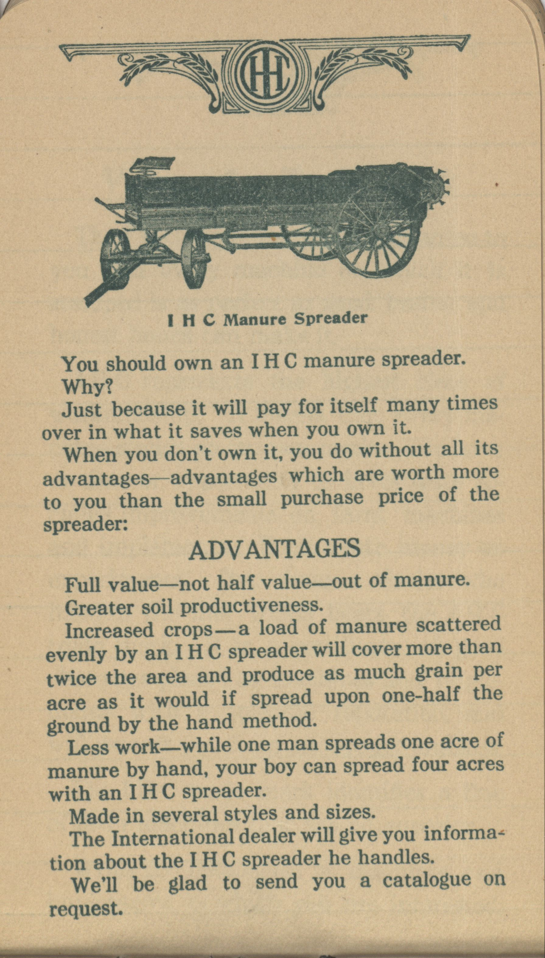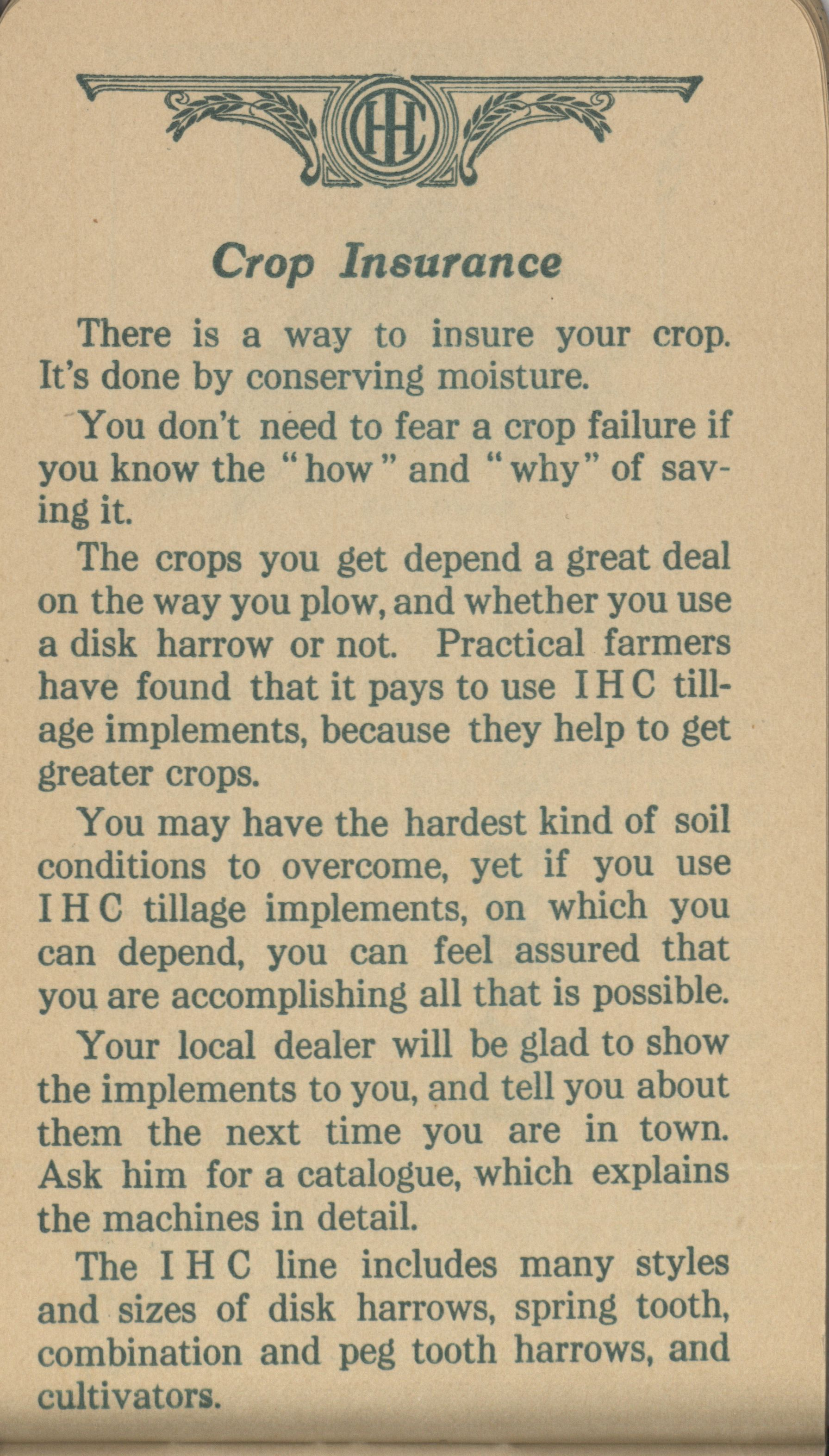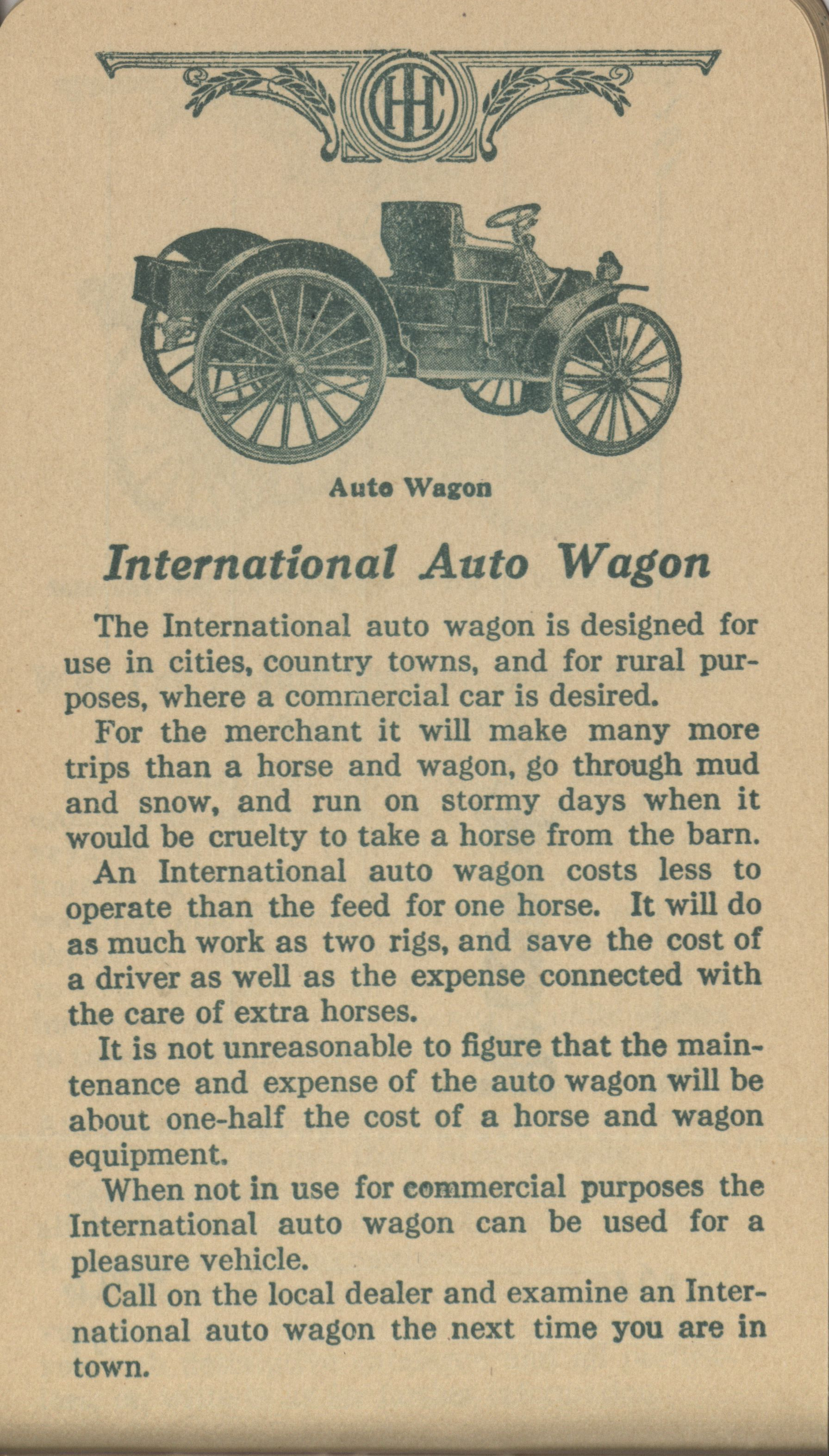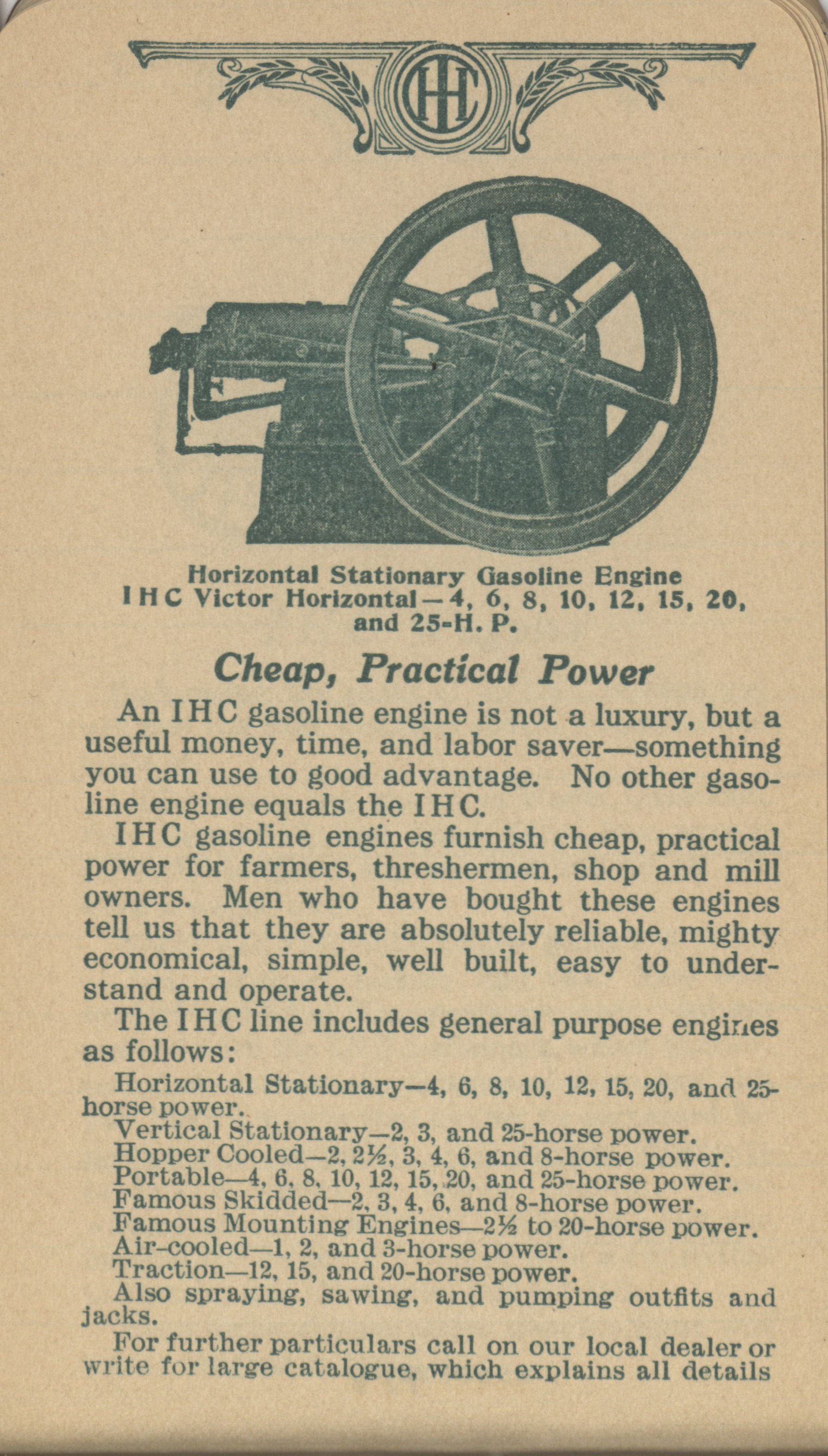 - "International Harvester Company of America 1901 pocket book", Agricultural Machinery Literature Collection, Iowa State University Library Digital Collections