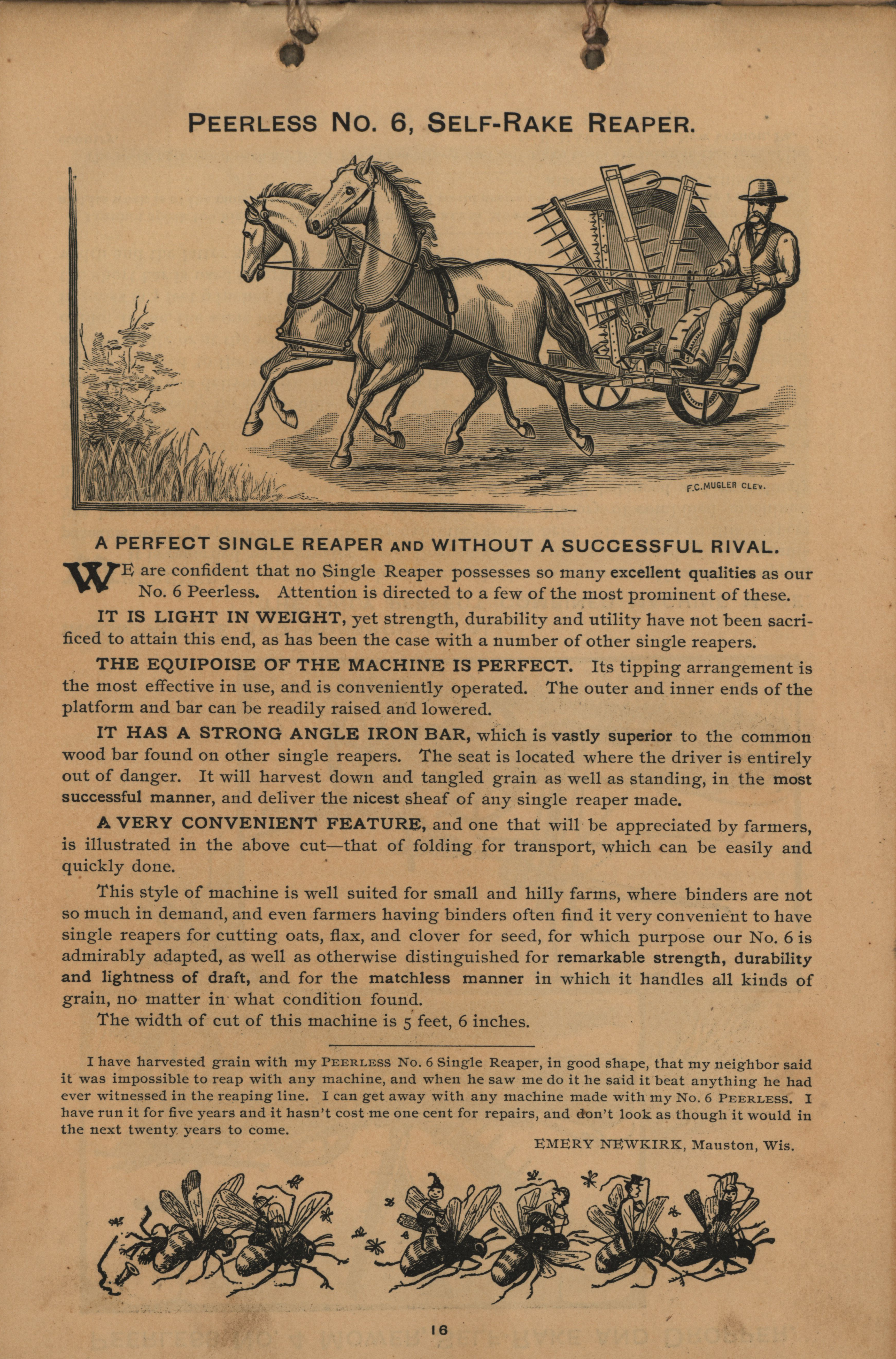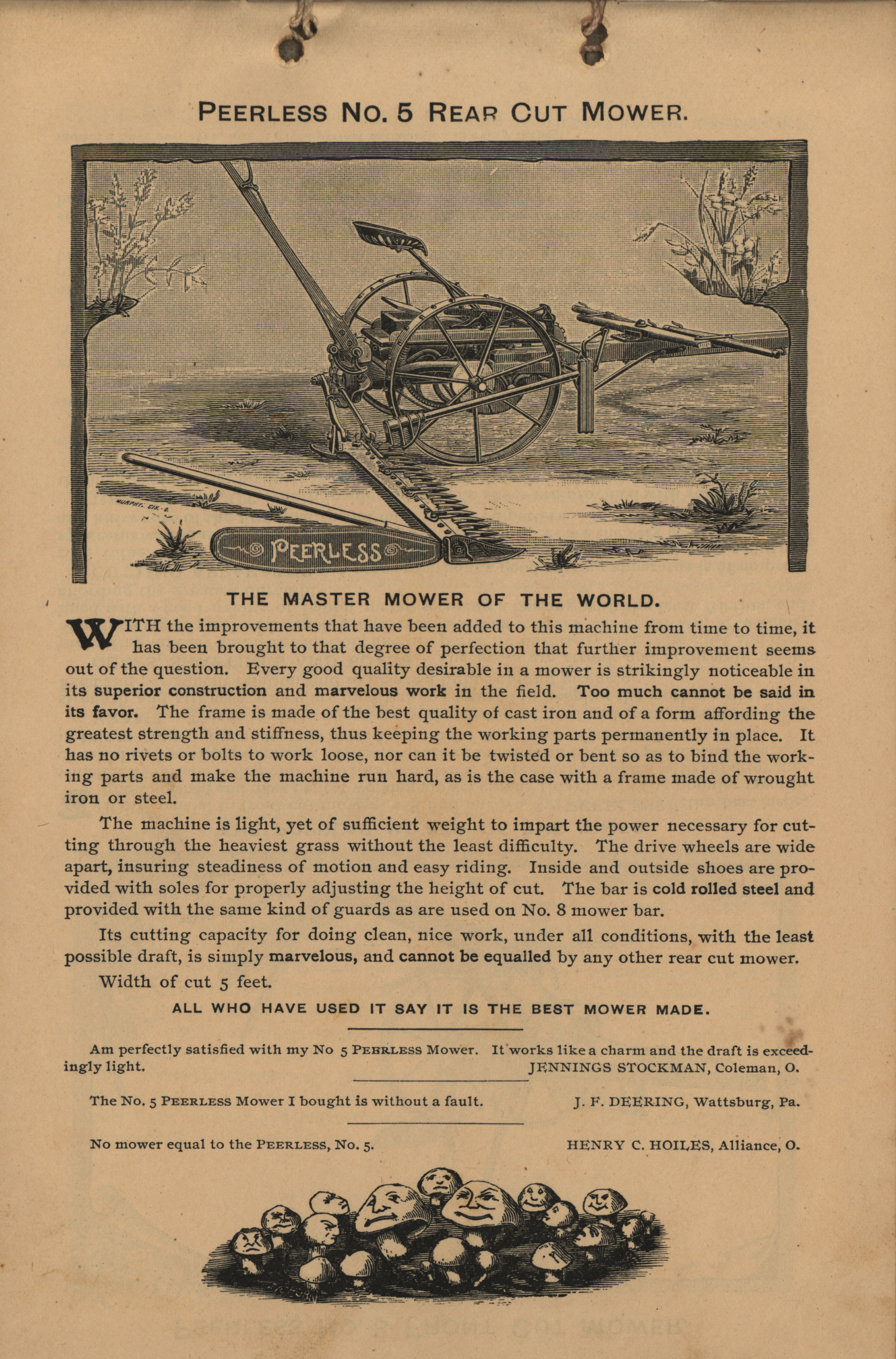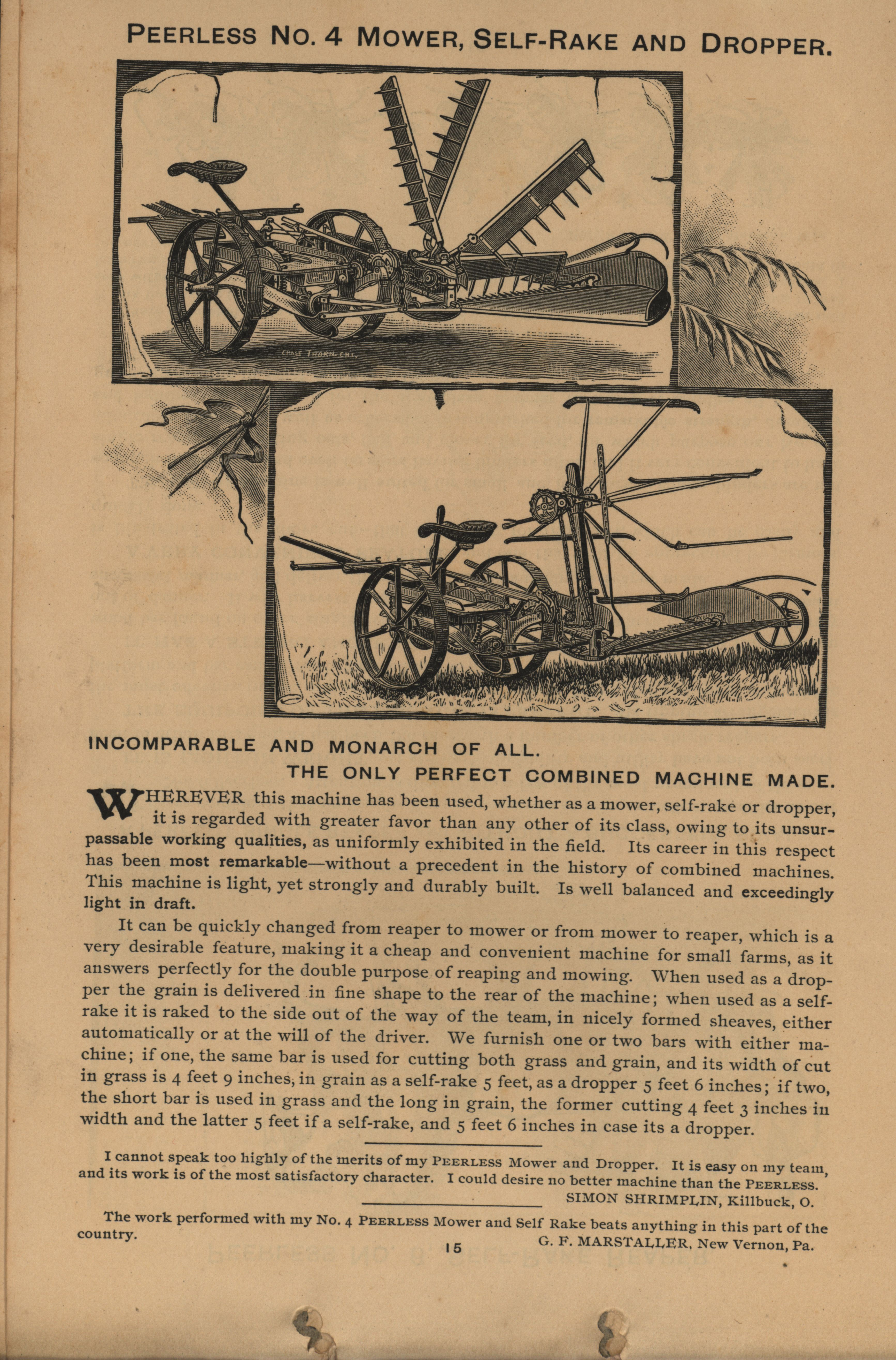- "Illustrated catalog for the Peerless Reaper Company", Agricultural Machinery Literature Collection, Iowa State University Library Digital Collections