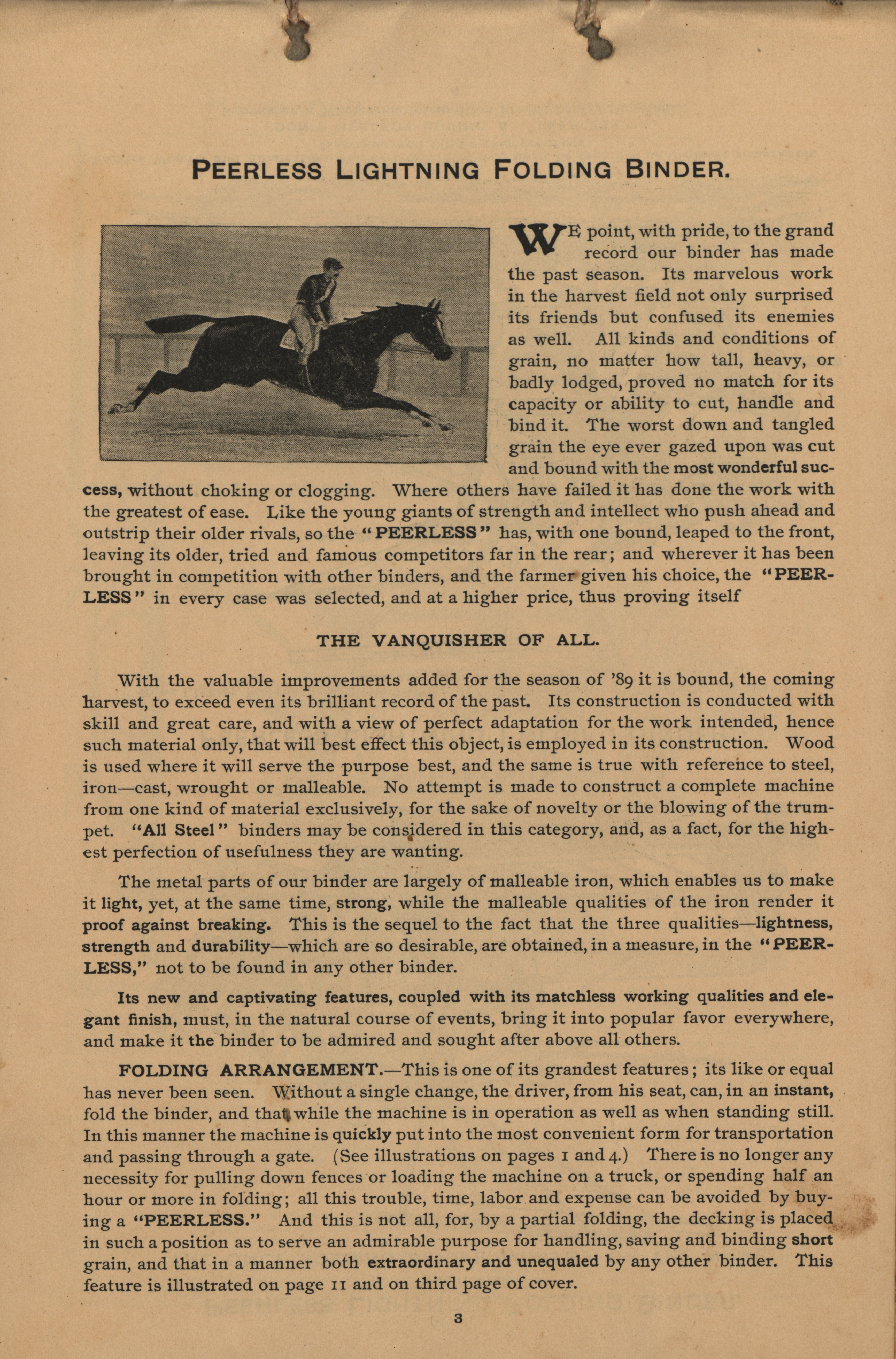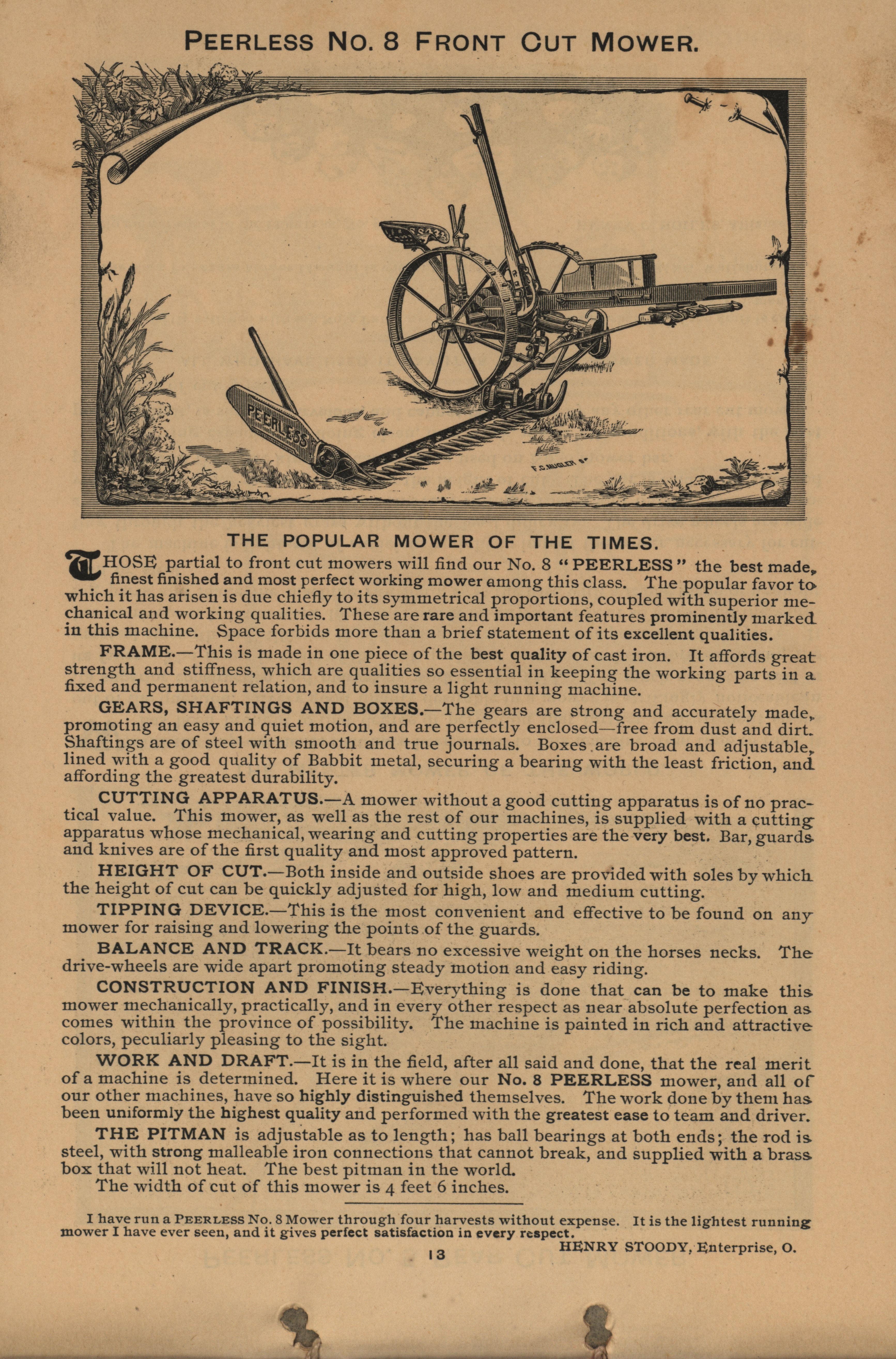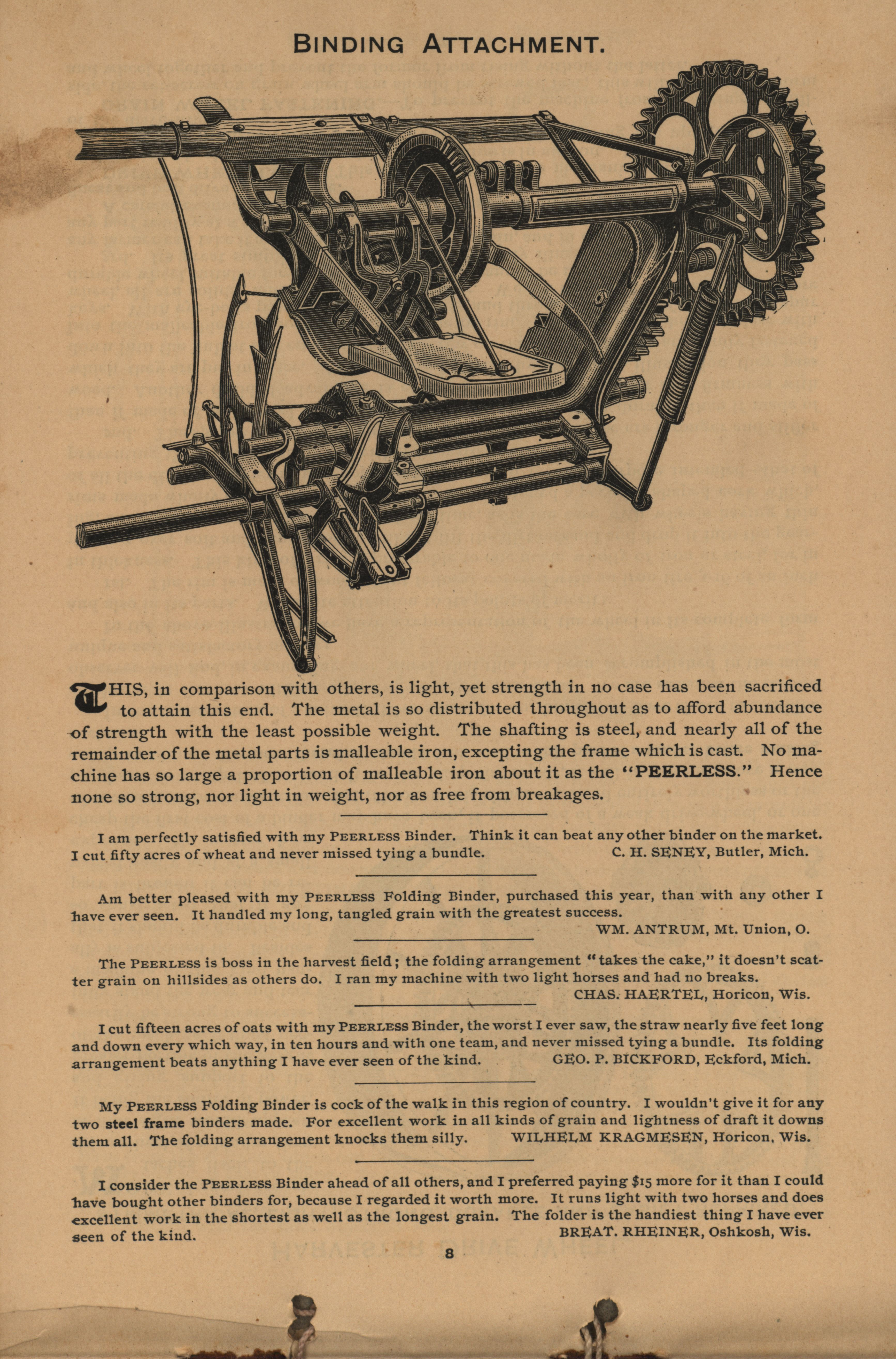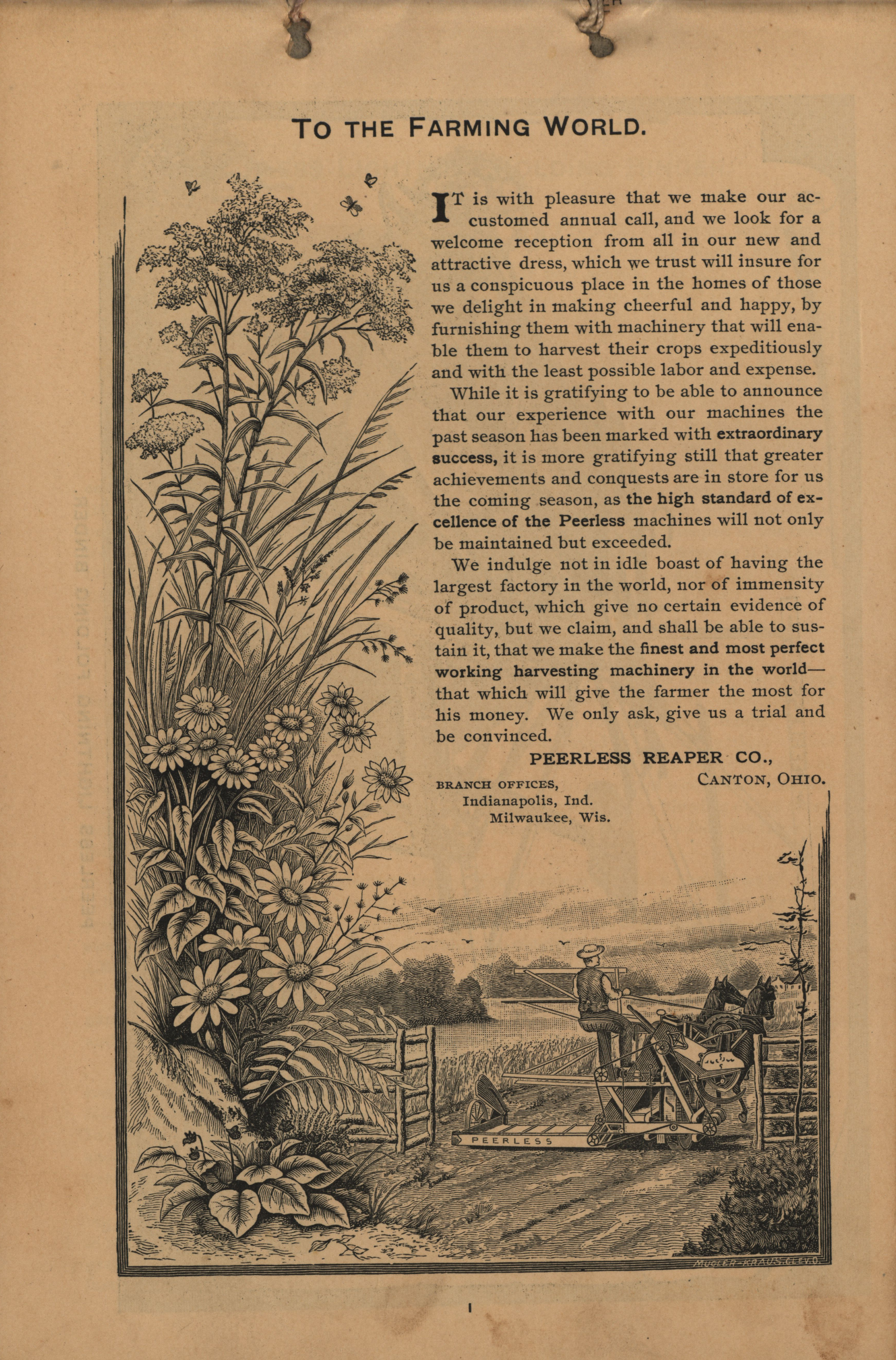 - "Illustrated catalog for the Peerless Reaper Company", Agricultural Machinery Literature Collection, Iowa State University Library Digital Collections
