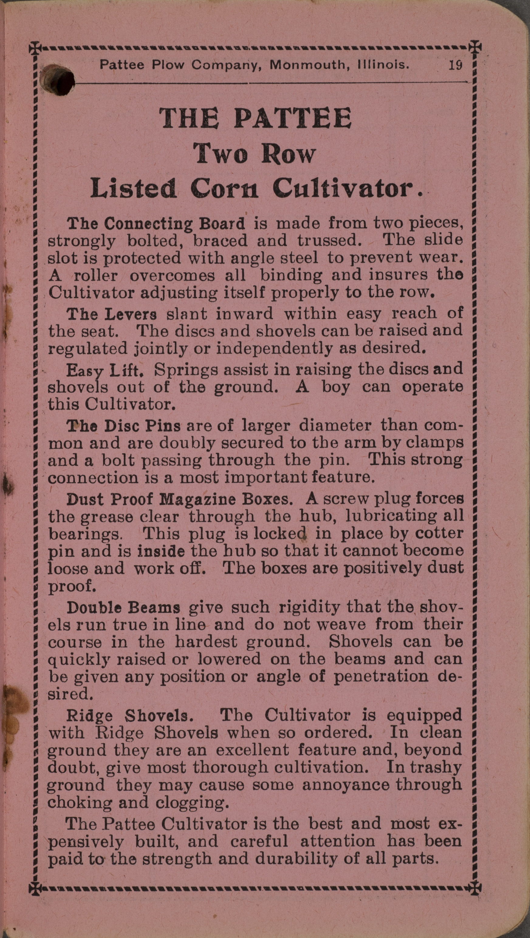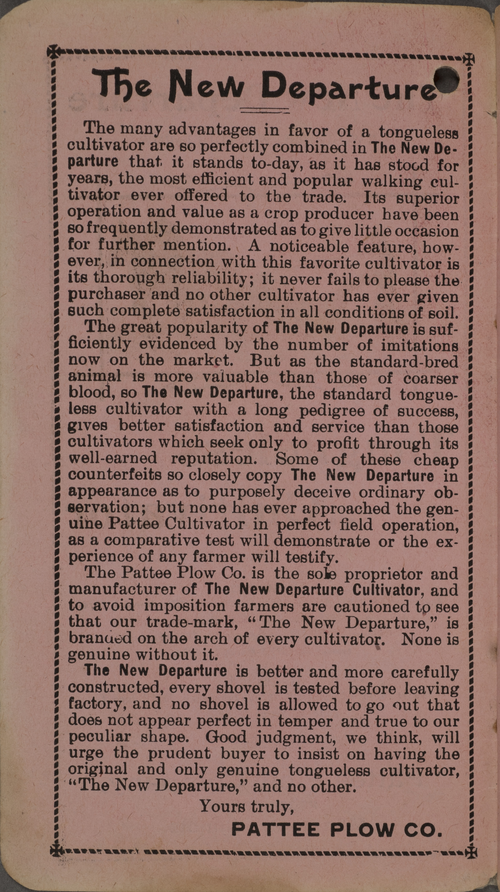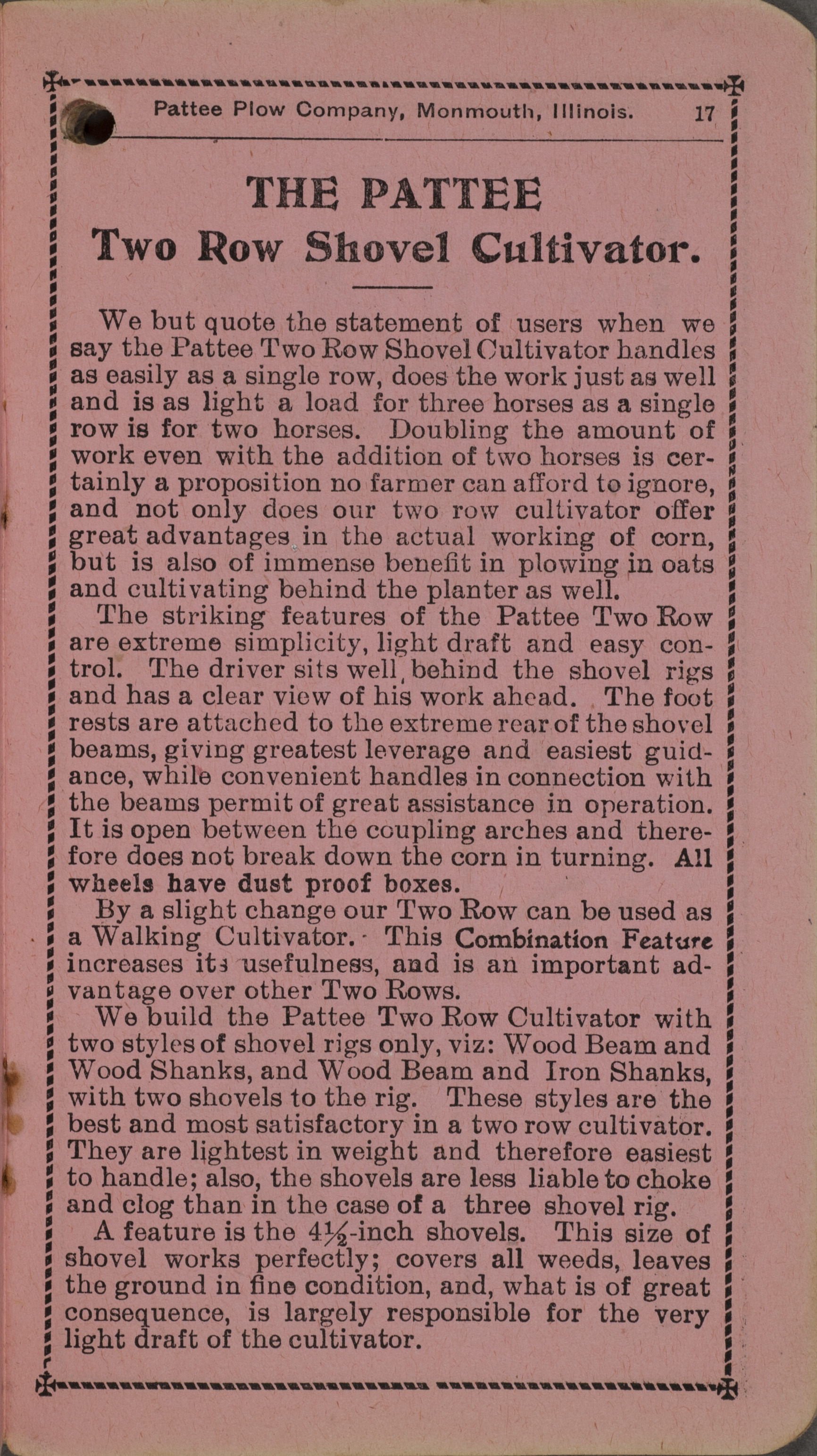 - "Illustrated catalog for Pattee Plow Company", Agricultural Machinery Literature Collection, Iowa State University Library Digital Collections