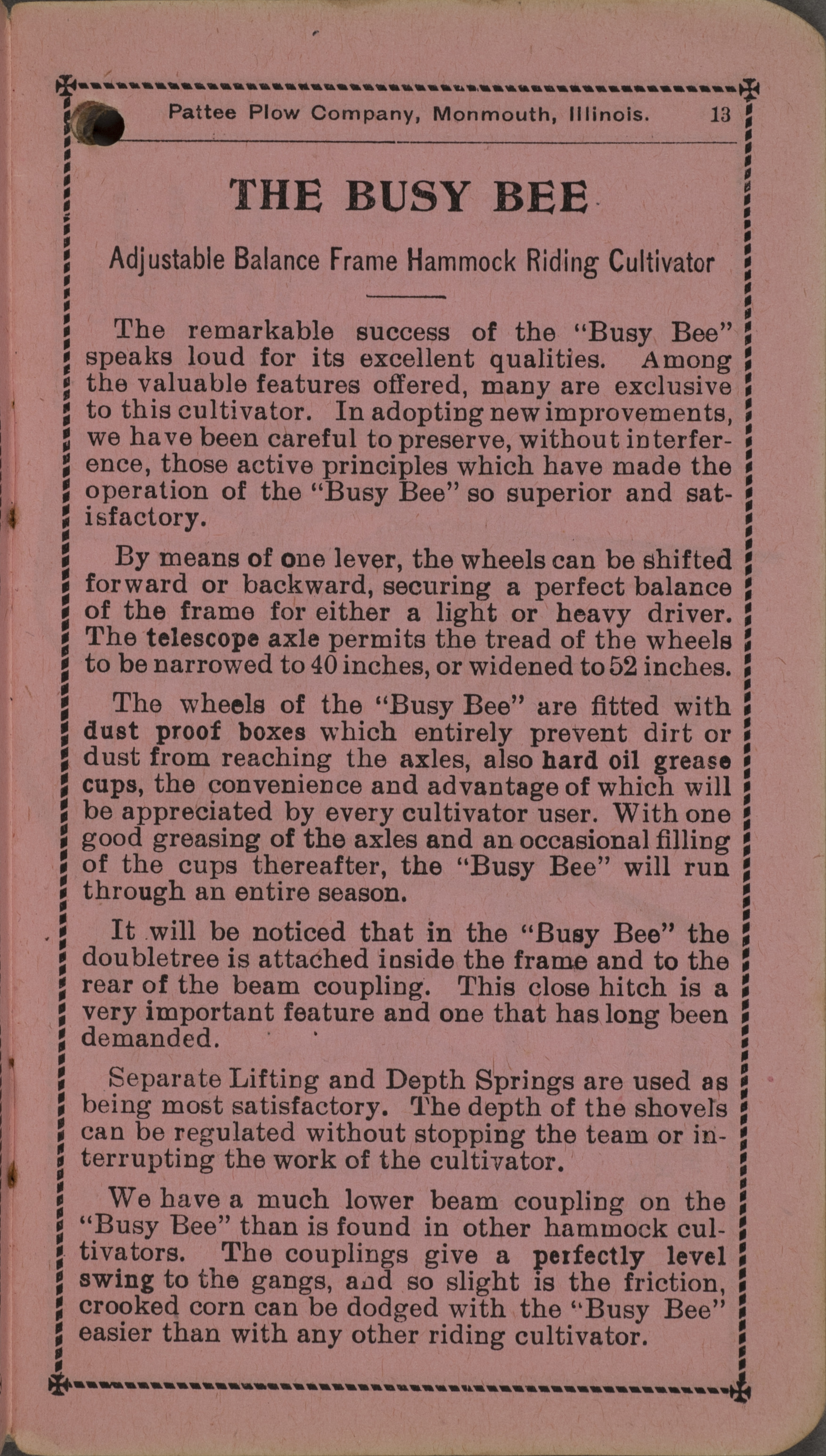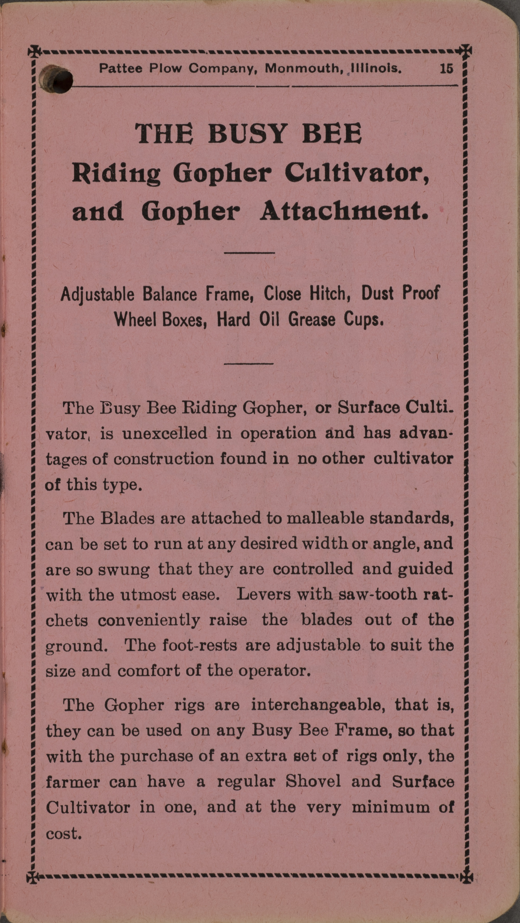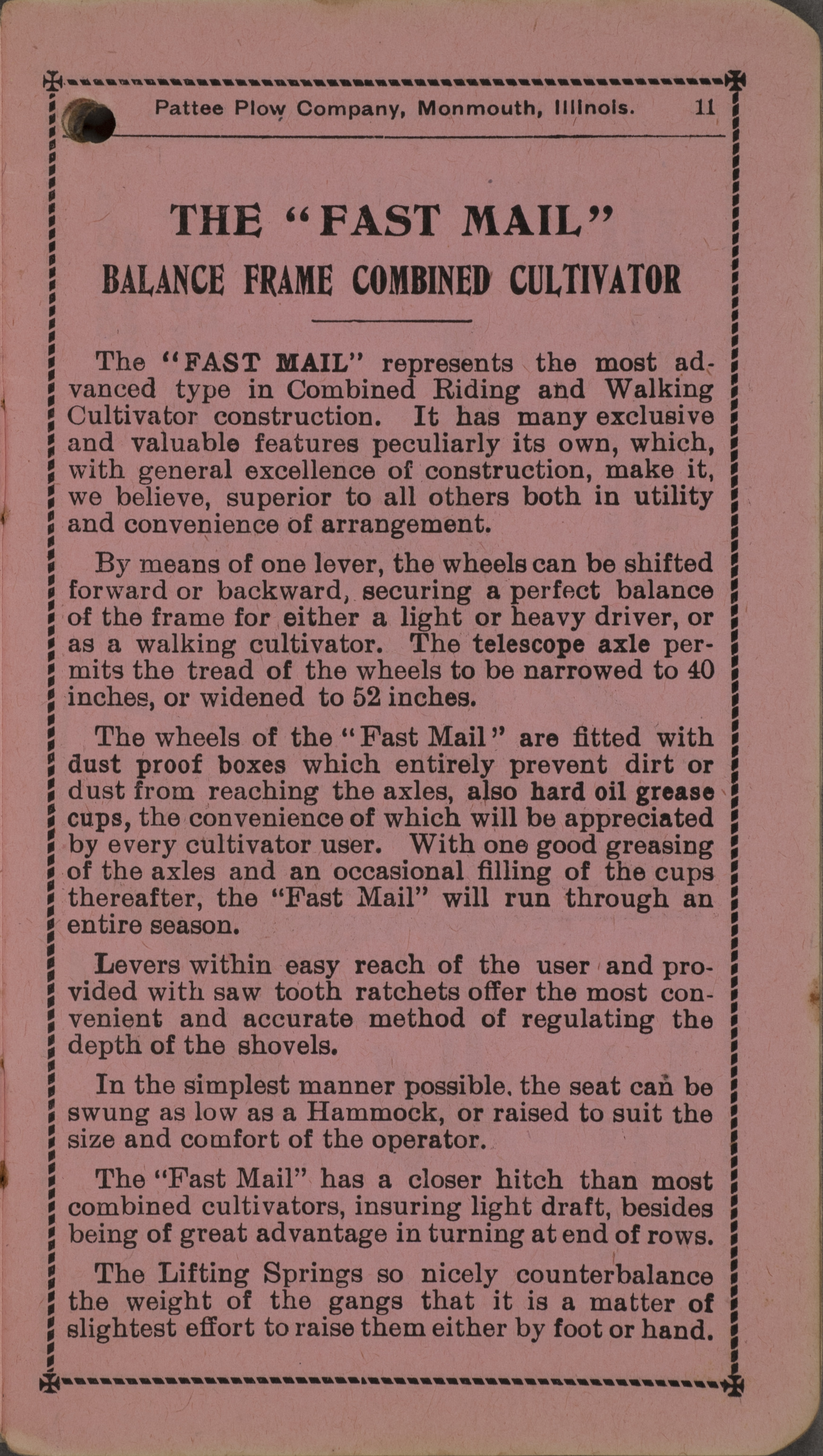 - "Illustrated catalog for Pattee Plow Company", Agricultural Machinery Literature Collection, Iowa State University Library Digital Collections