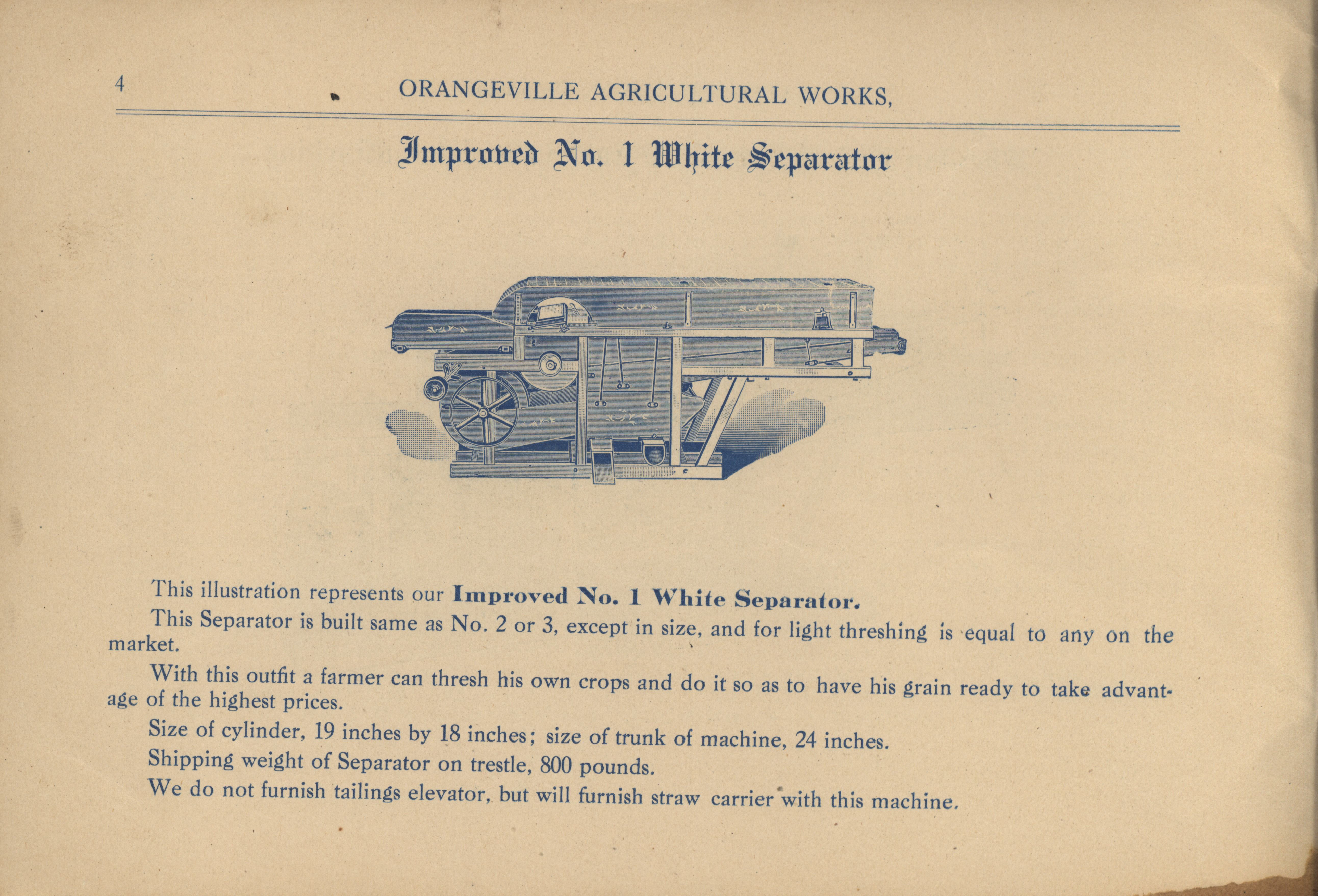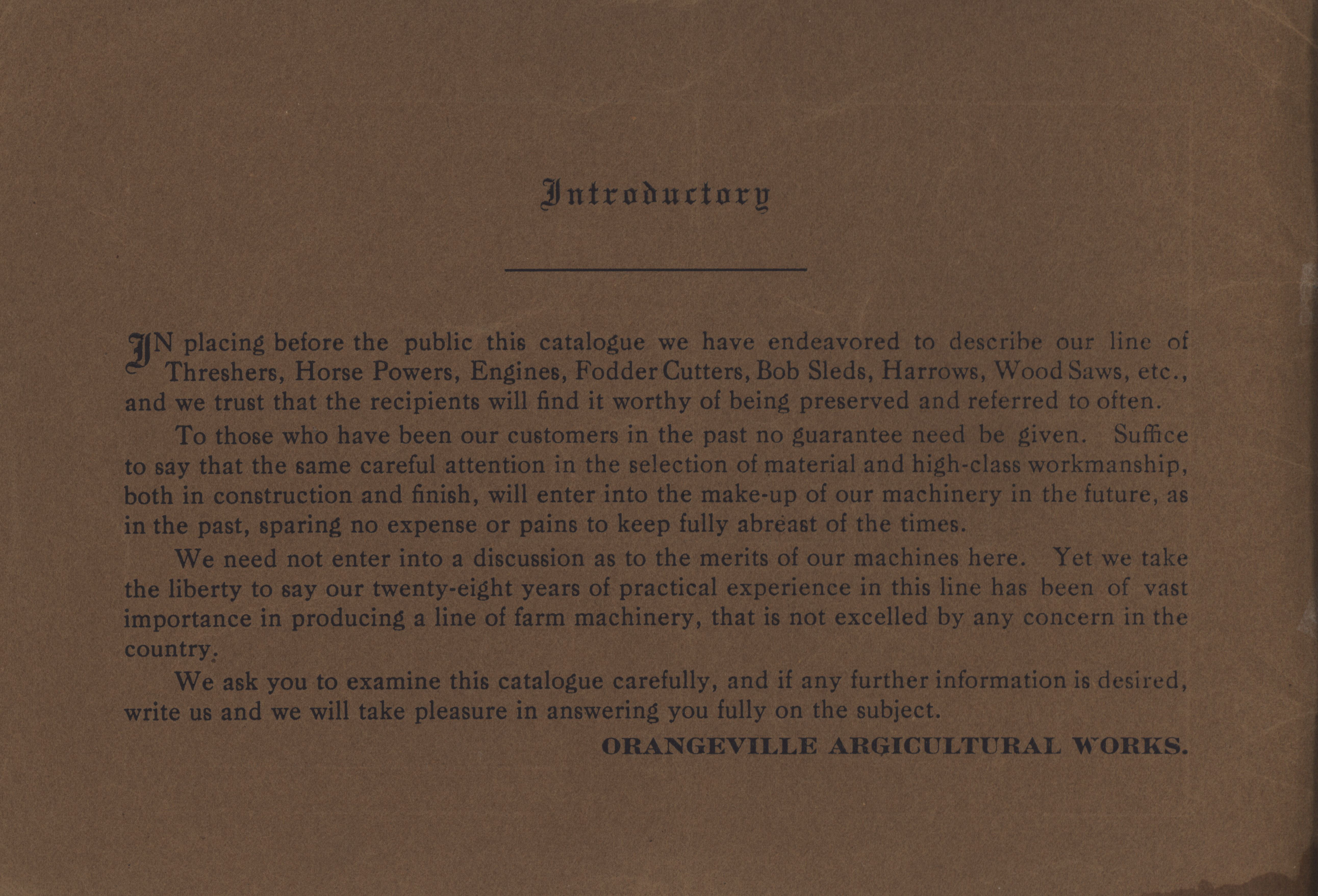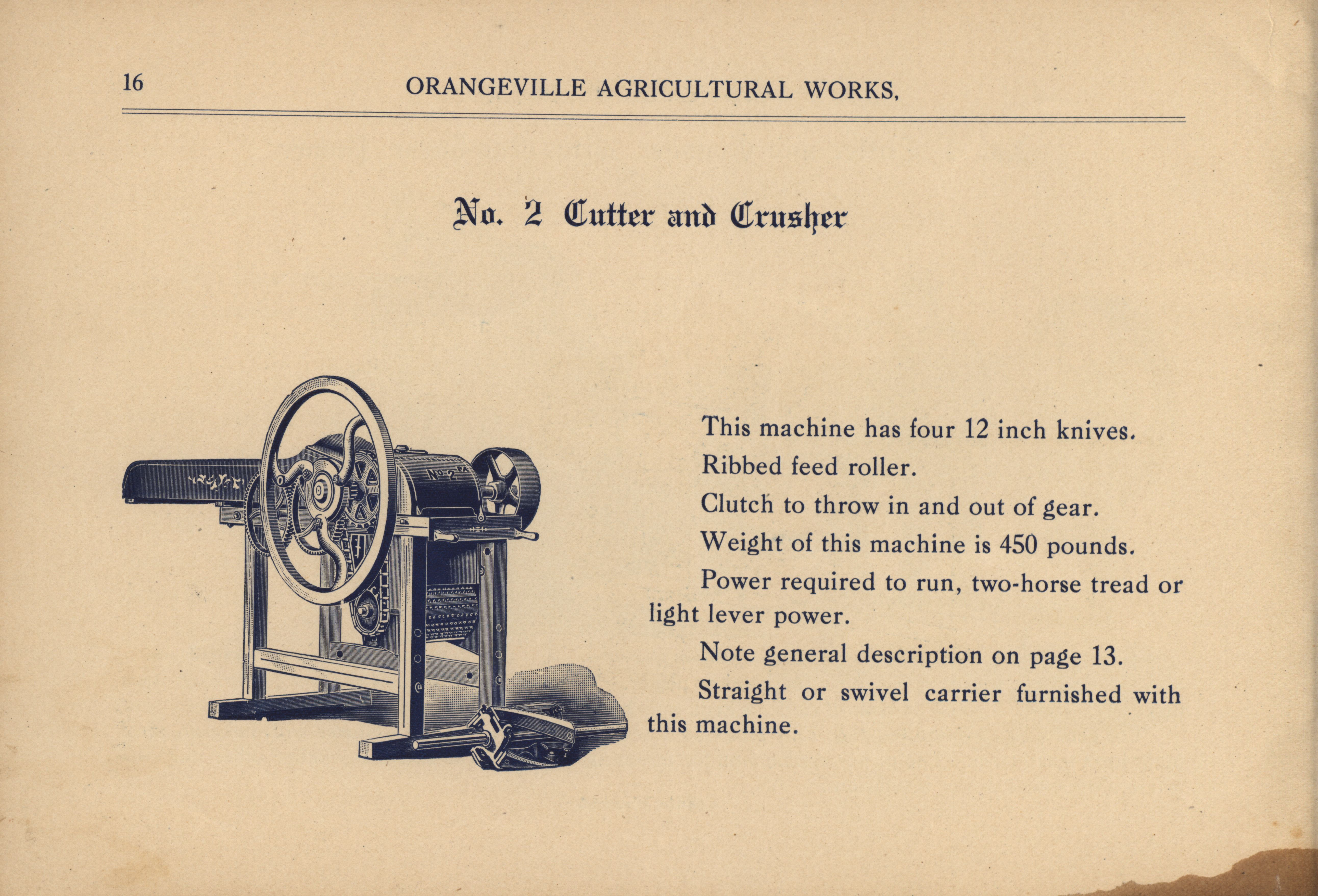 - "Orangeville Agricultural Works catalog", Agricultural Machinery Literature Collection, Iowa State University Library Digital Collections