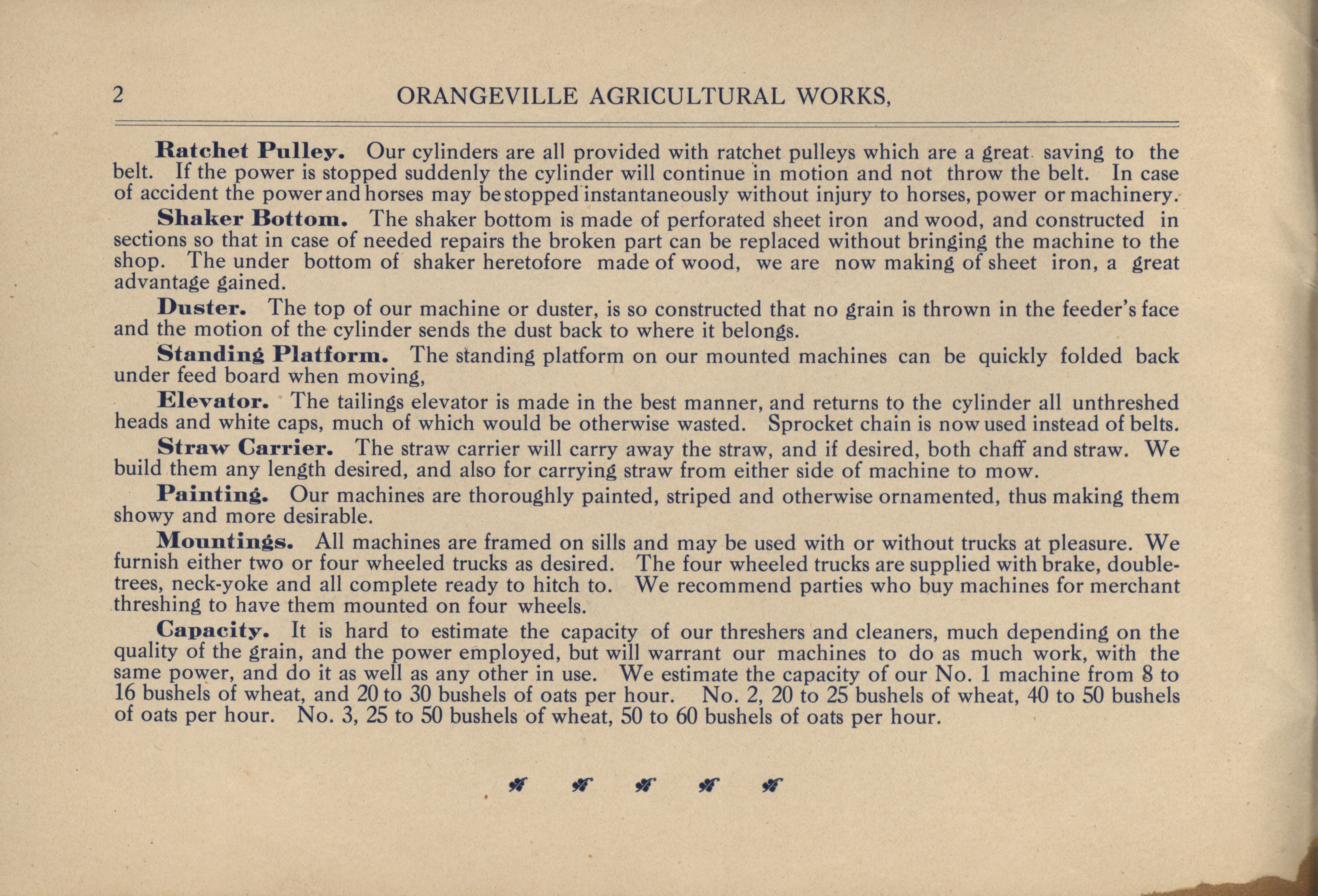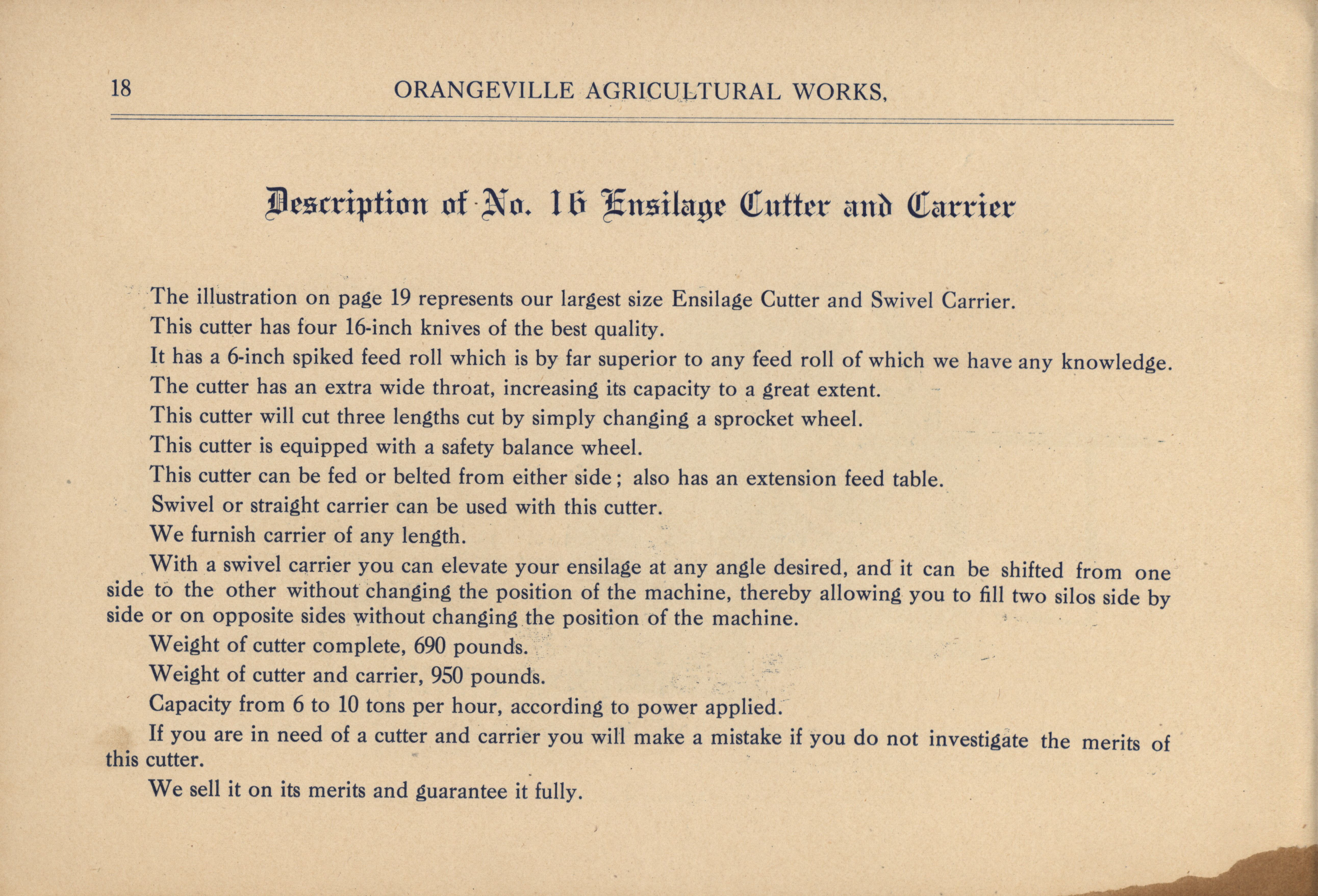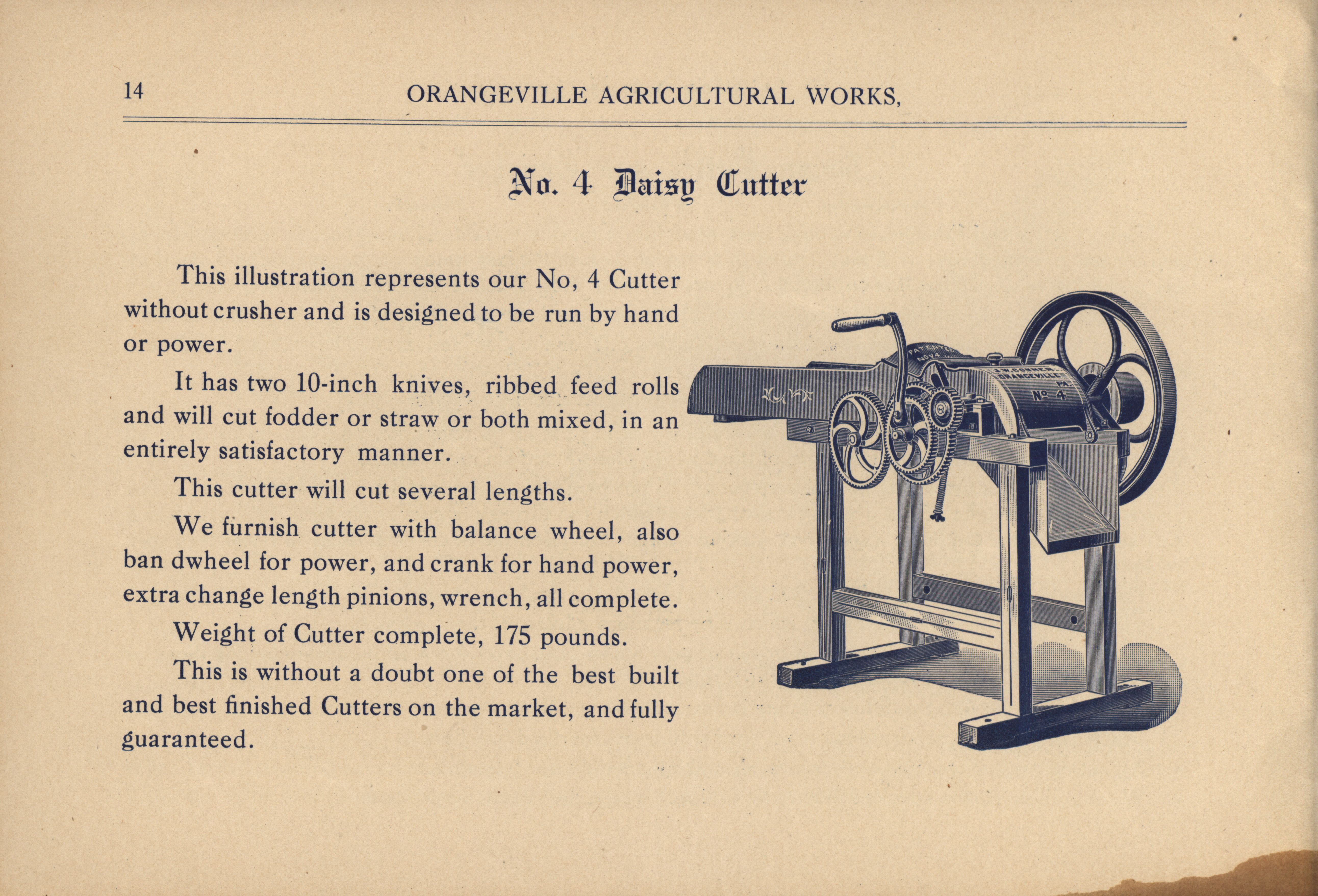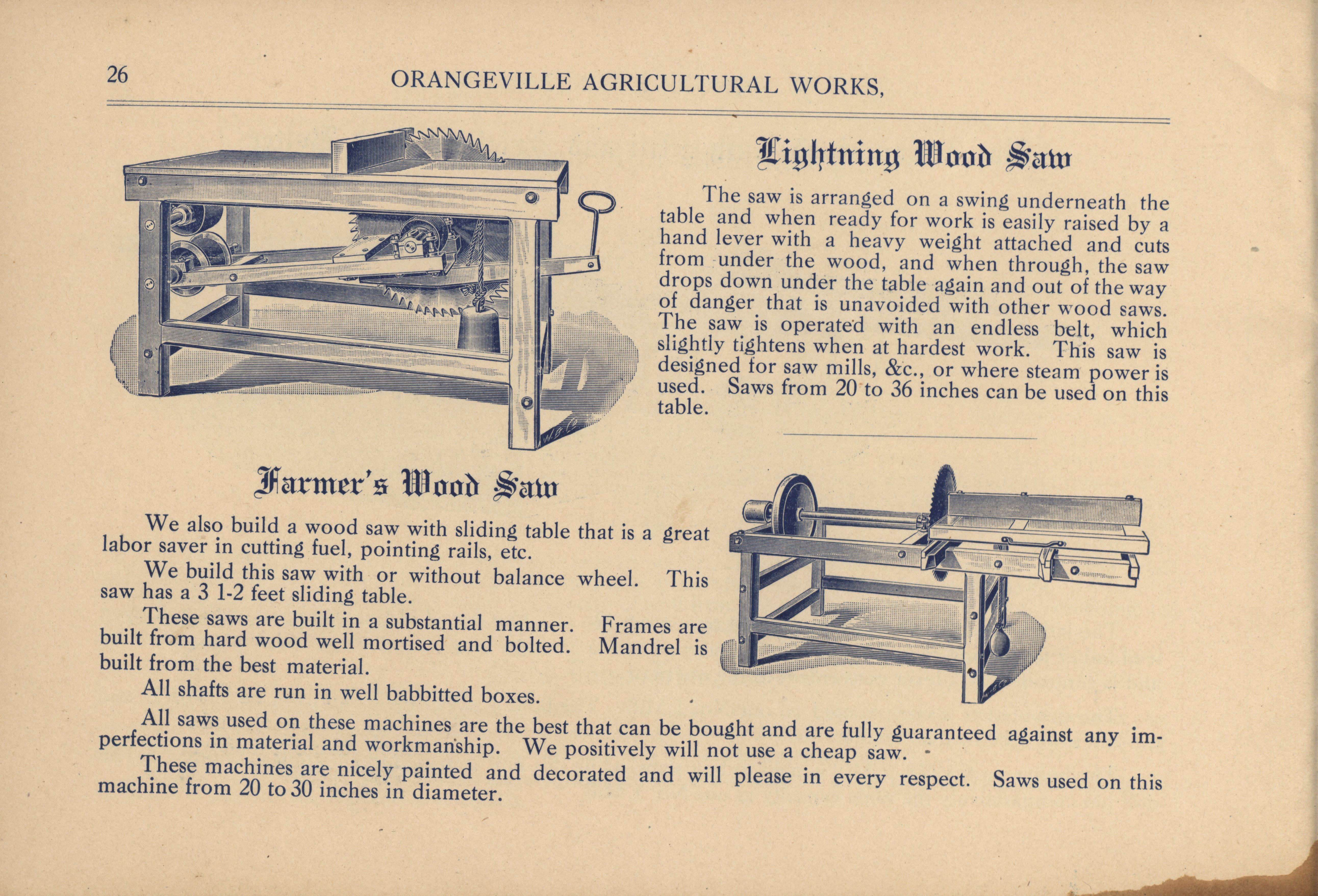 - "Orangeville Agricultural Works catalog", Agricultural Machinery Literature Collection, Iowa State University Library Digital Collections