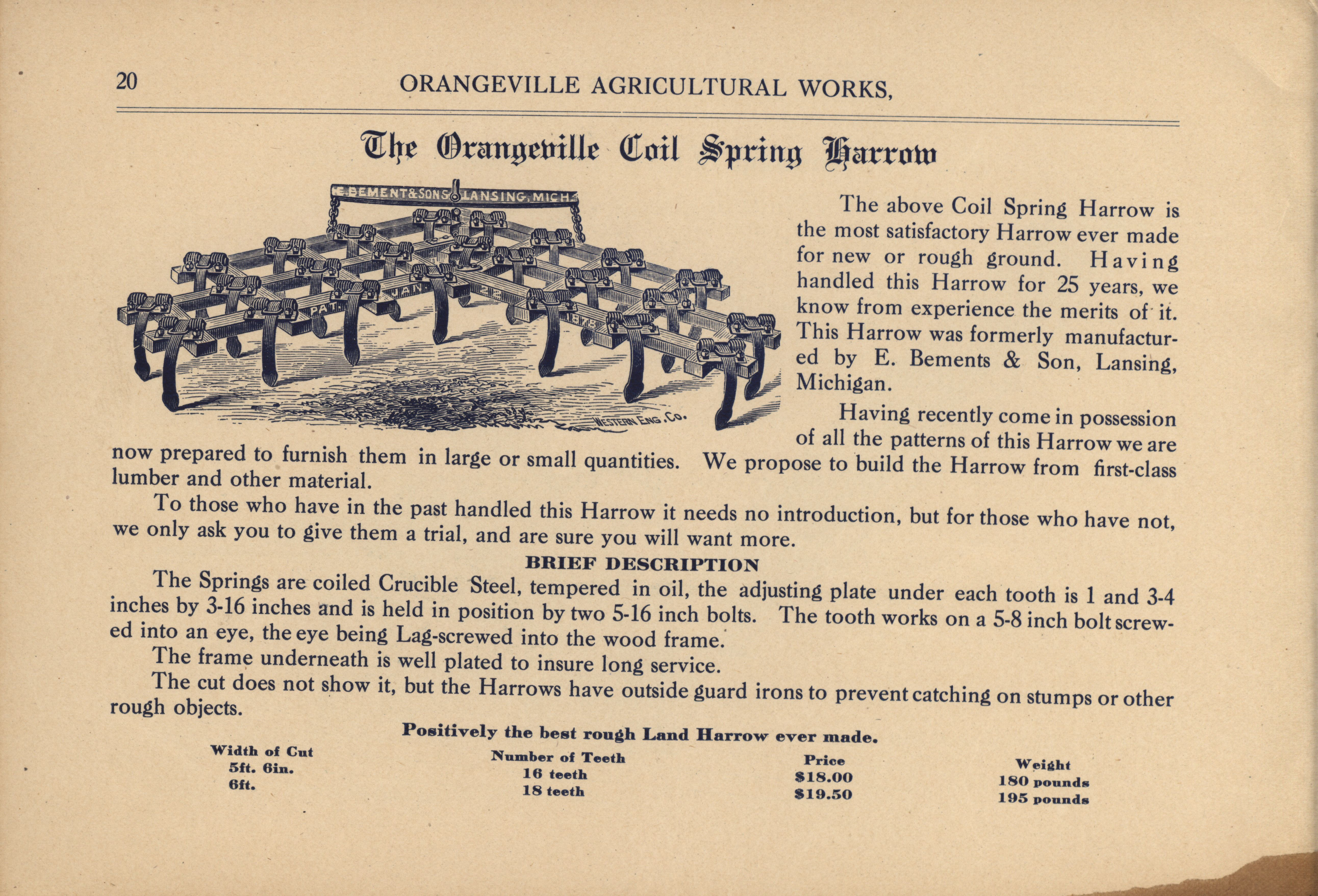 Orangeville Agricultural Works catalog Item Info