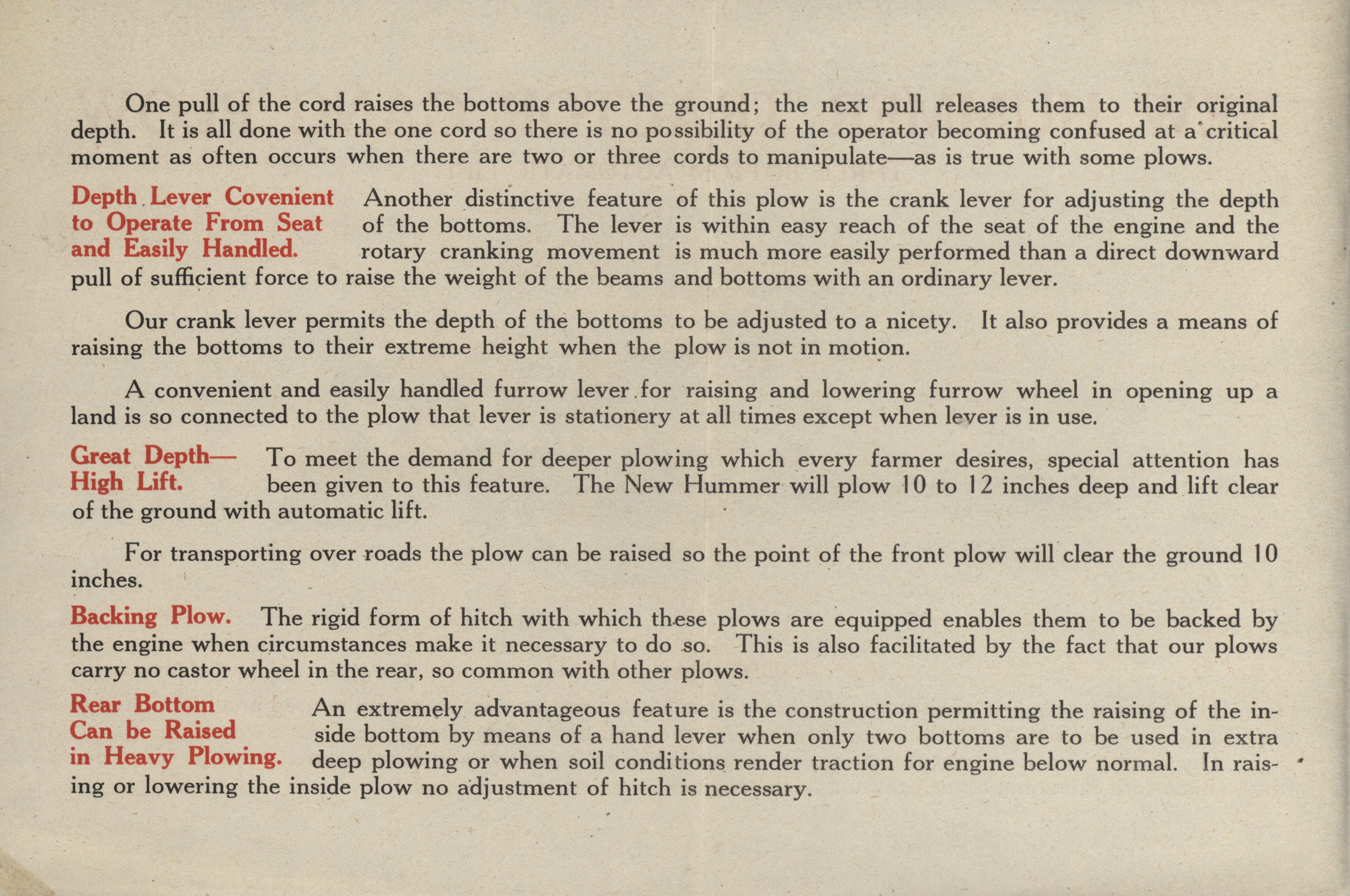 - "New Hummer Tractor Gang Plow advertisement", Agricultural Machinery Literature Collection, Iowa State University Library Digital Collections