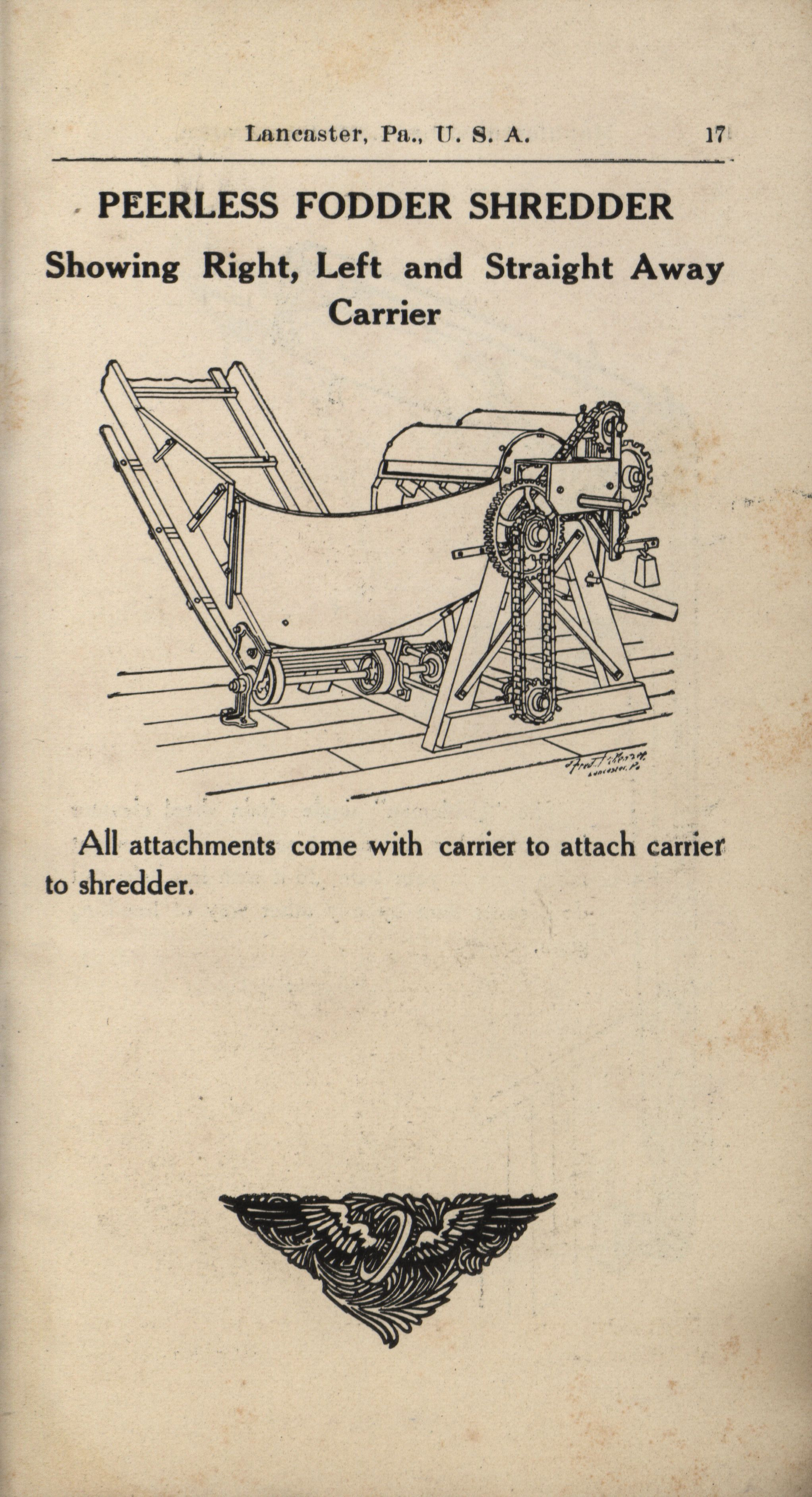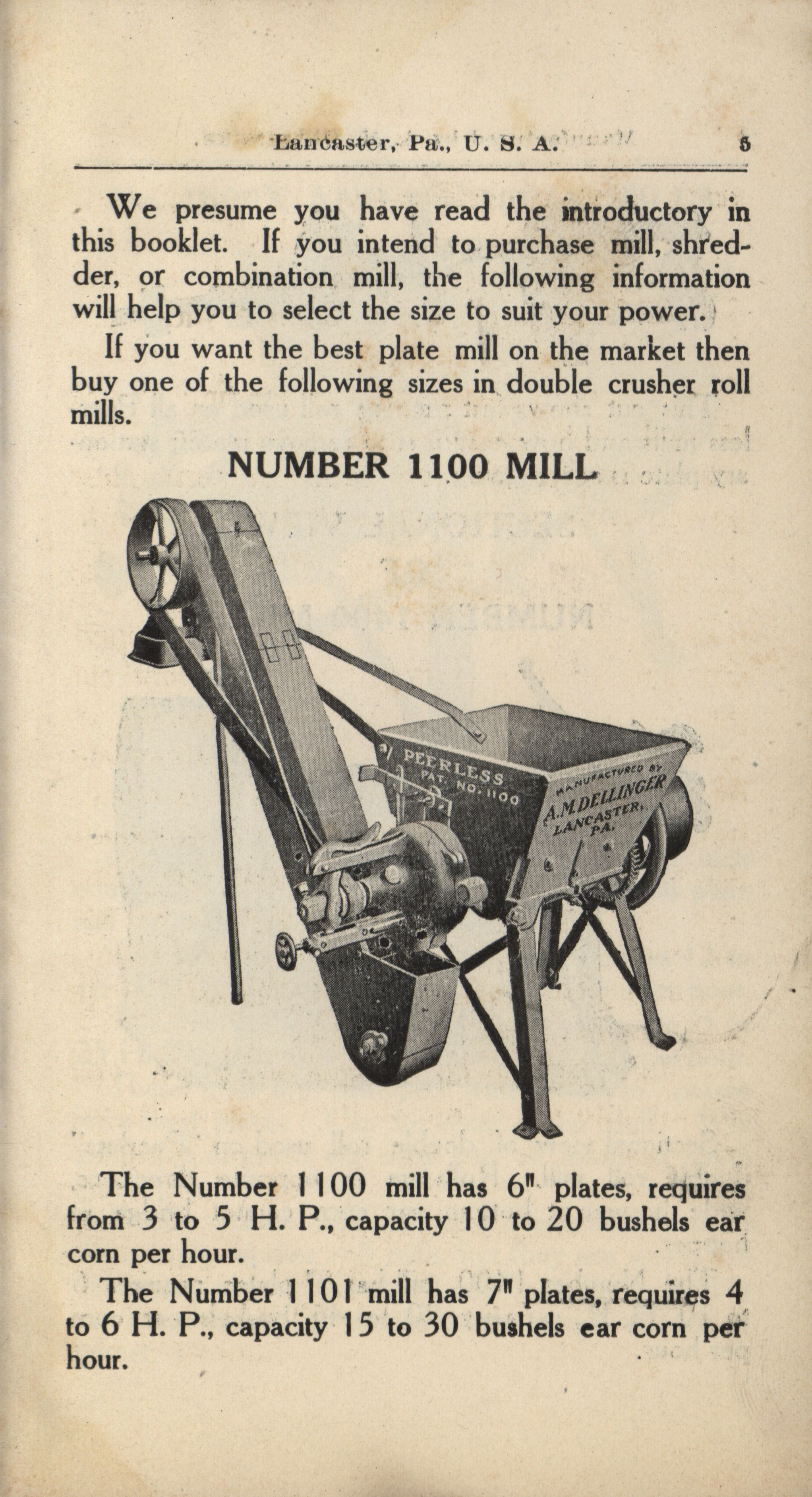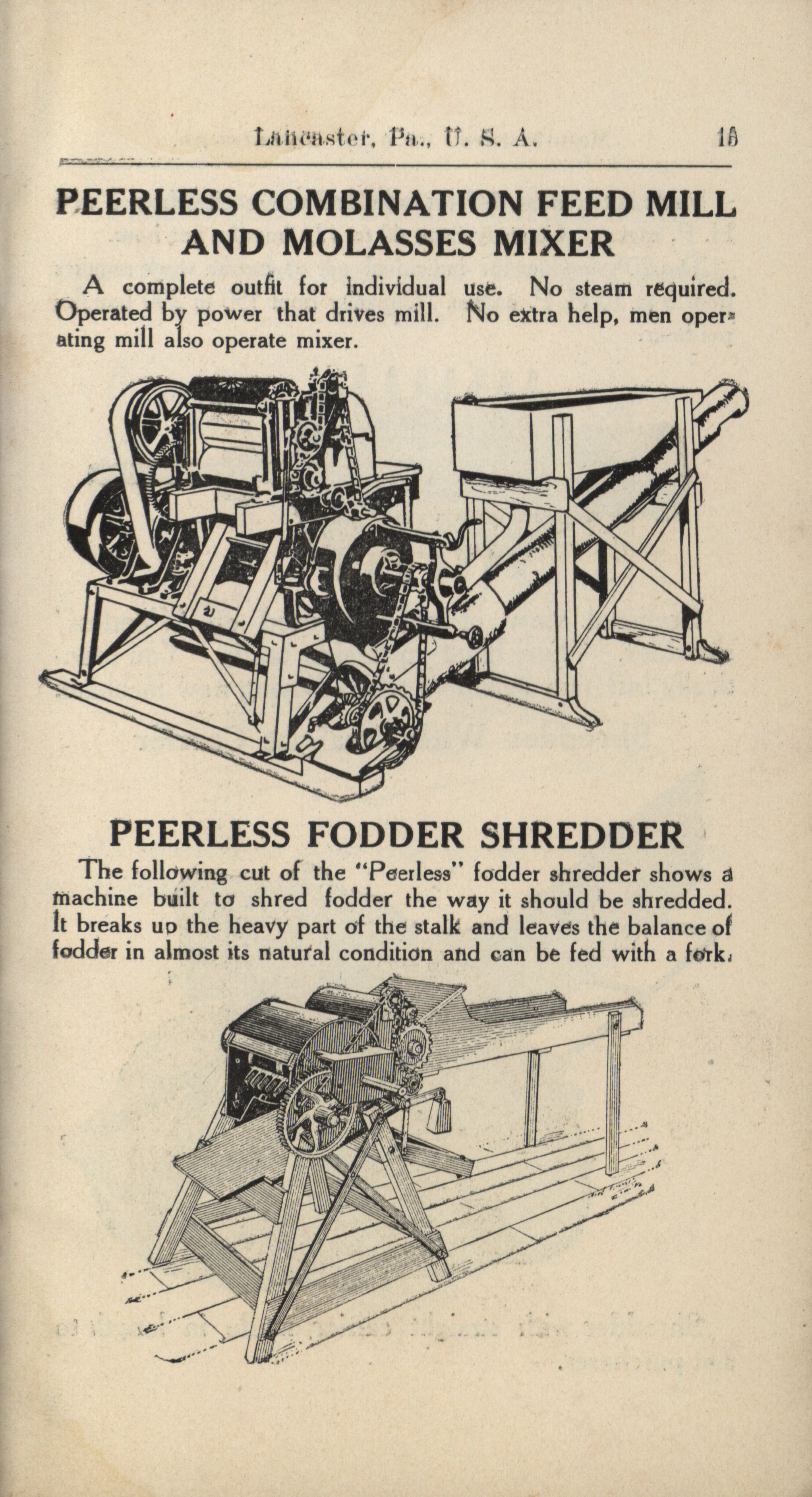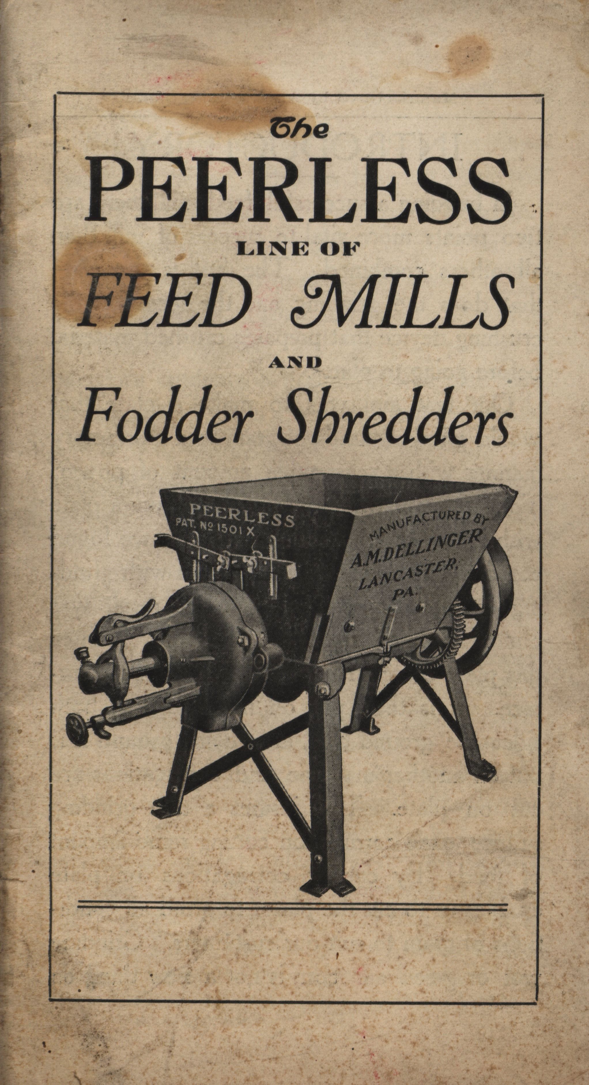 - Illustrated catalog describing the Peerless line of feed mills and fodder shredders, offered by A. M. Dellinger.