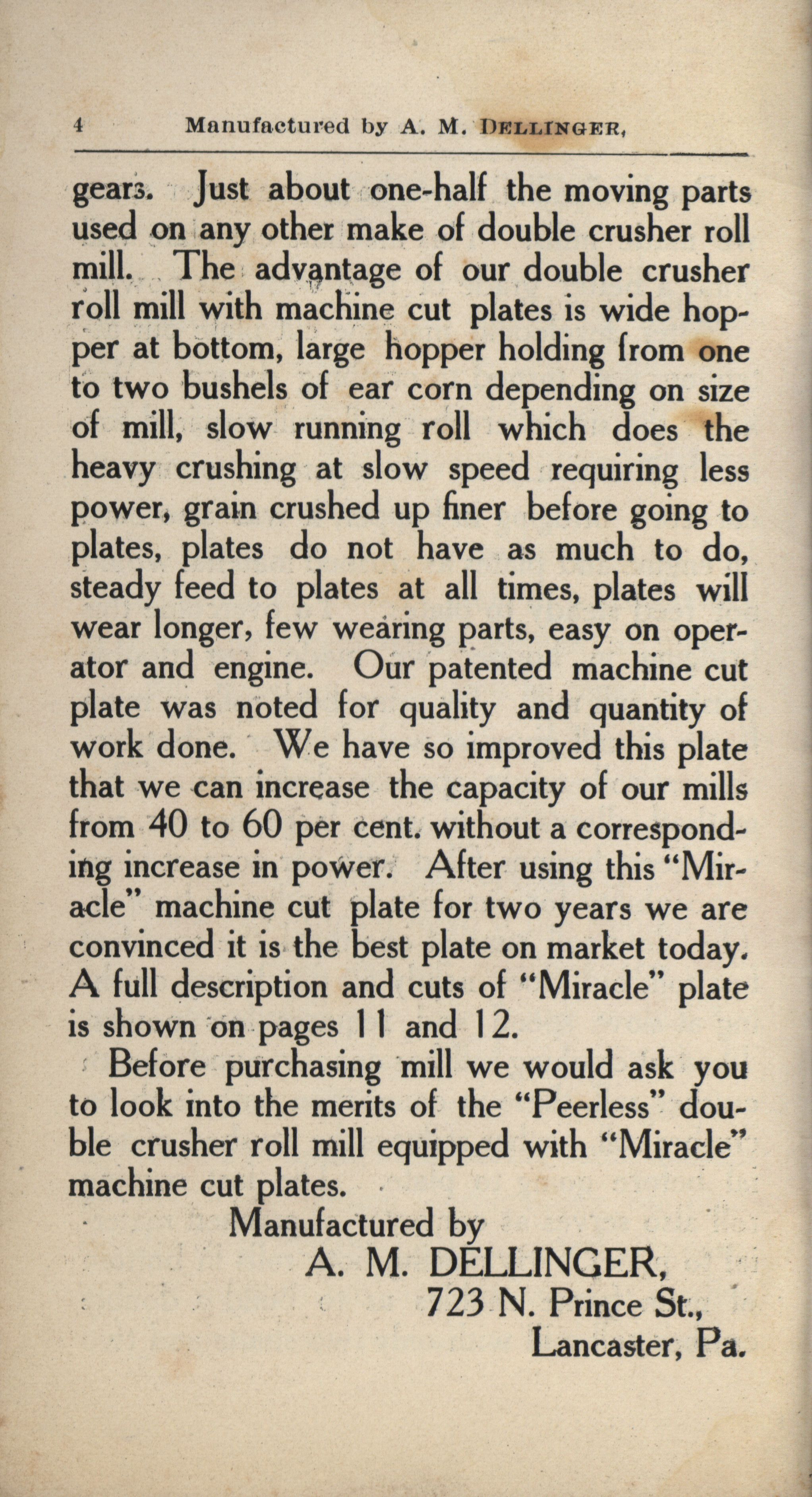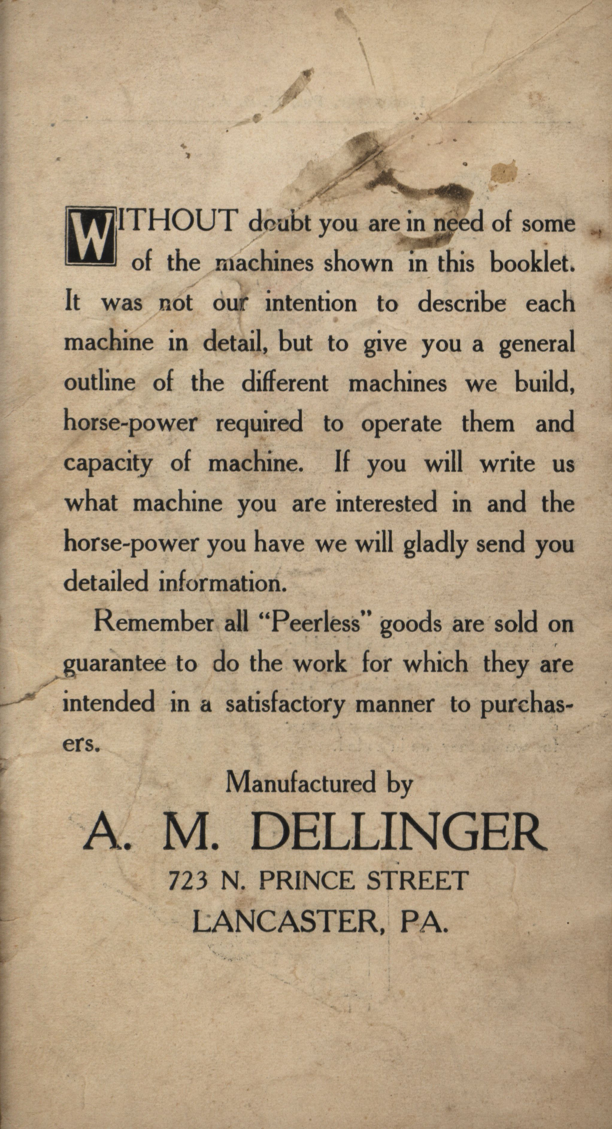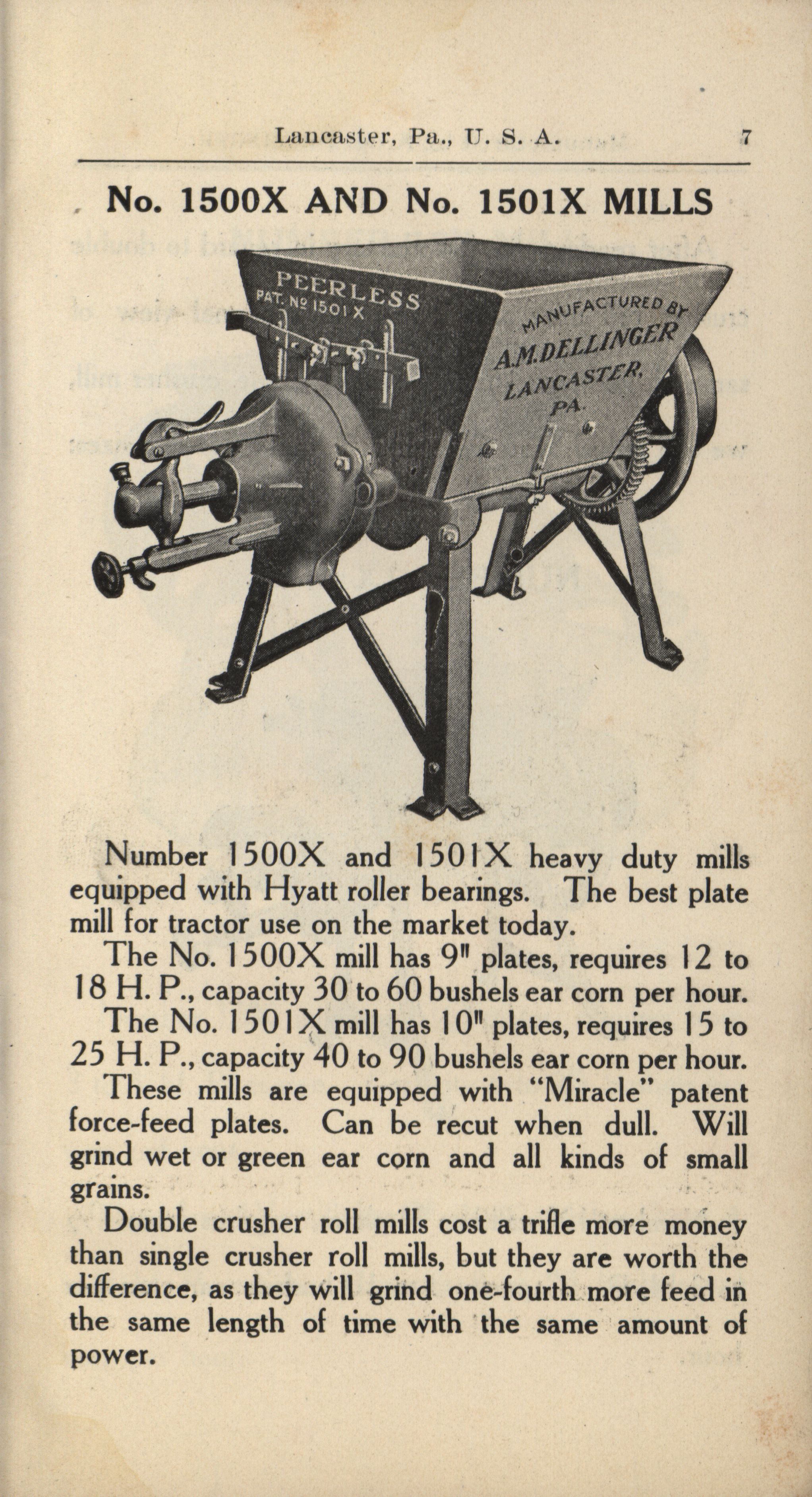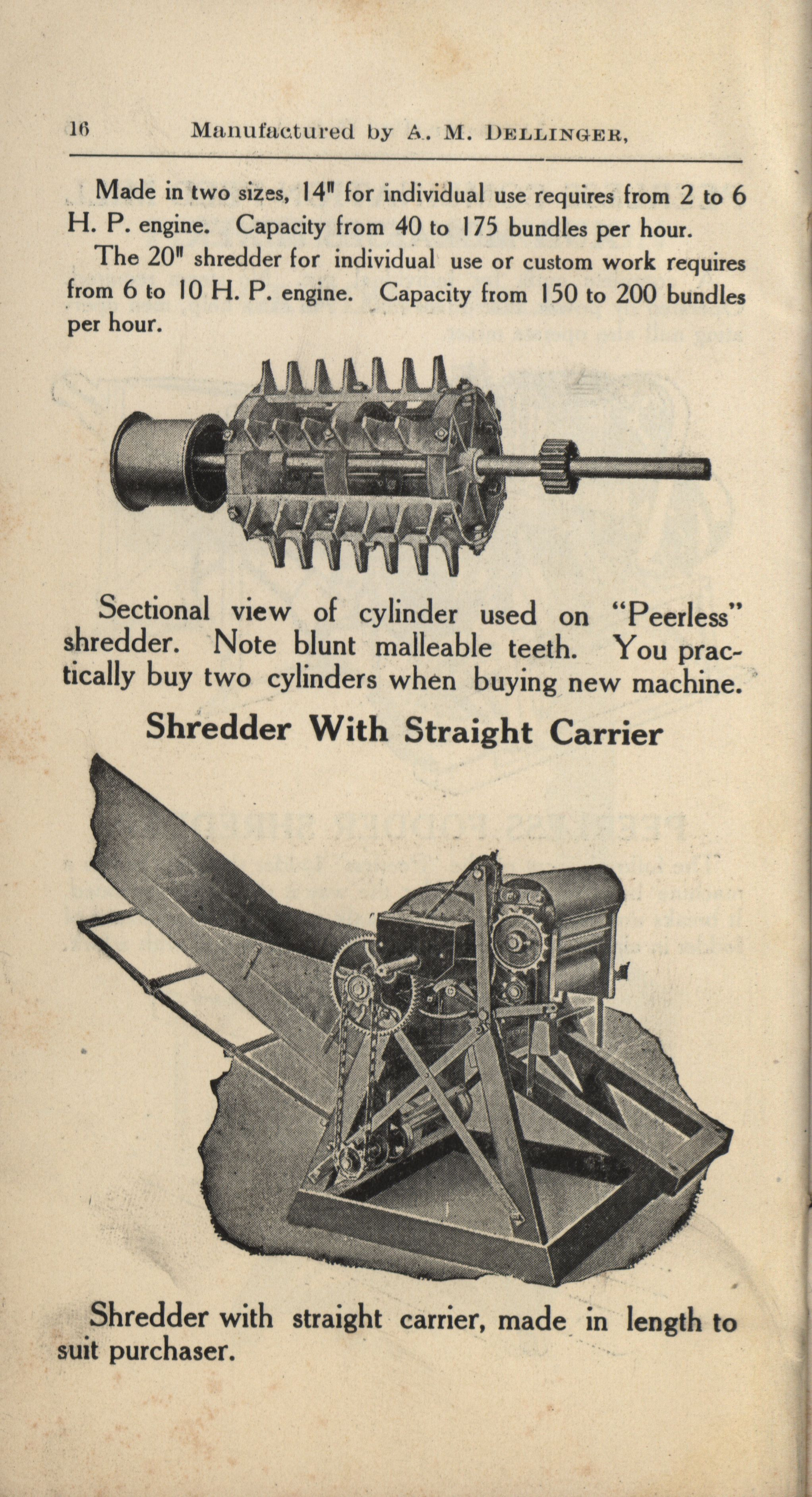 - "A. M. Dellinger Peerless line of feed mills and fodder shredders catalog", Agricultural Machinery Literature Collection, Iowa State University Library Digital Collections