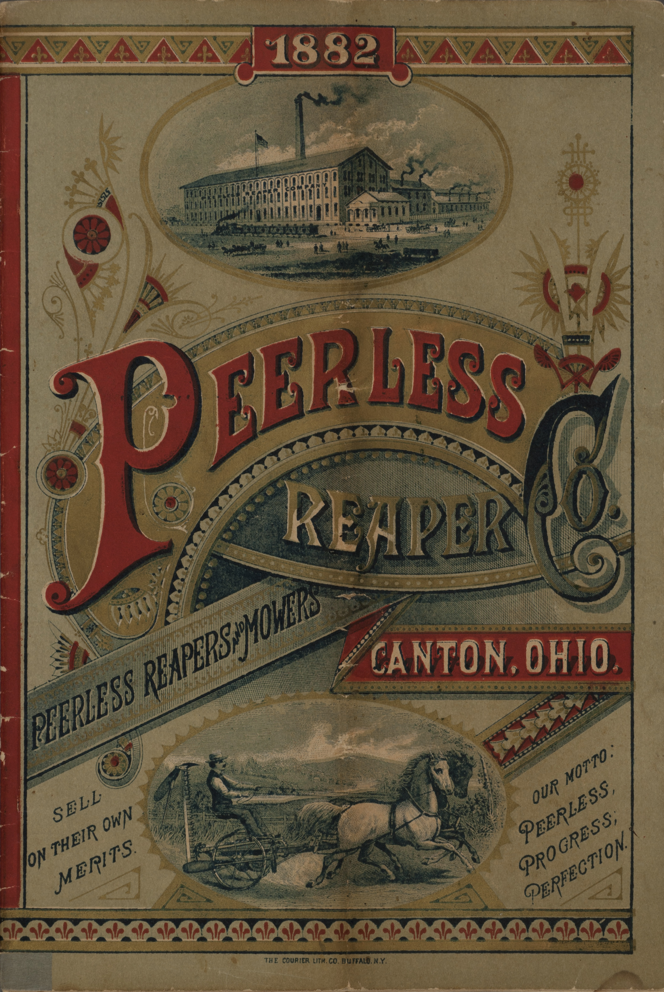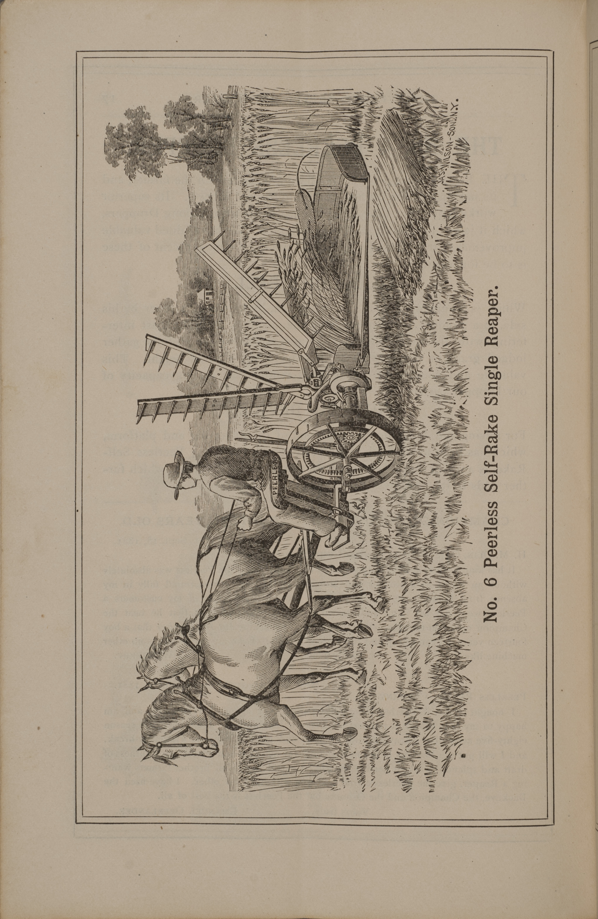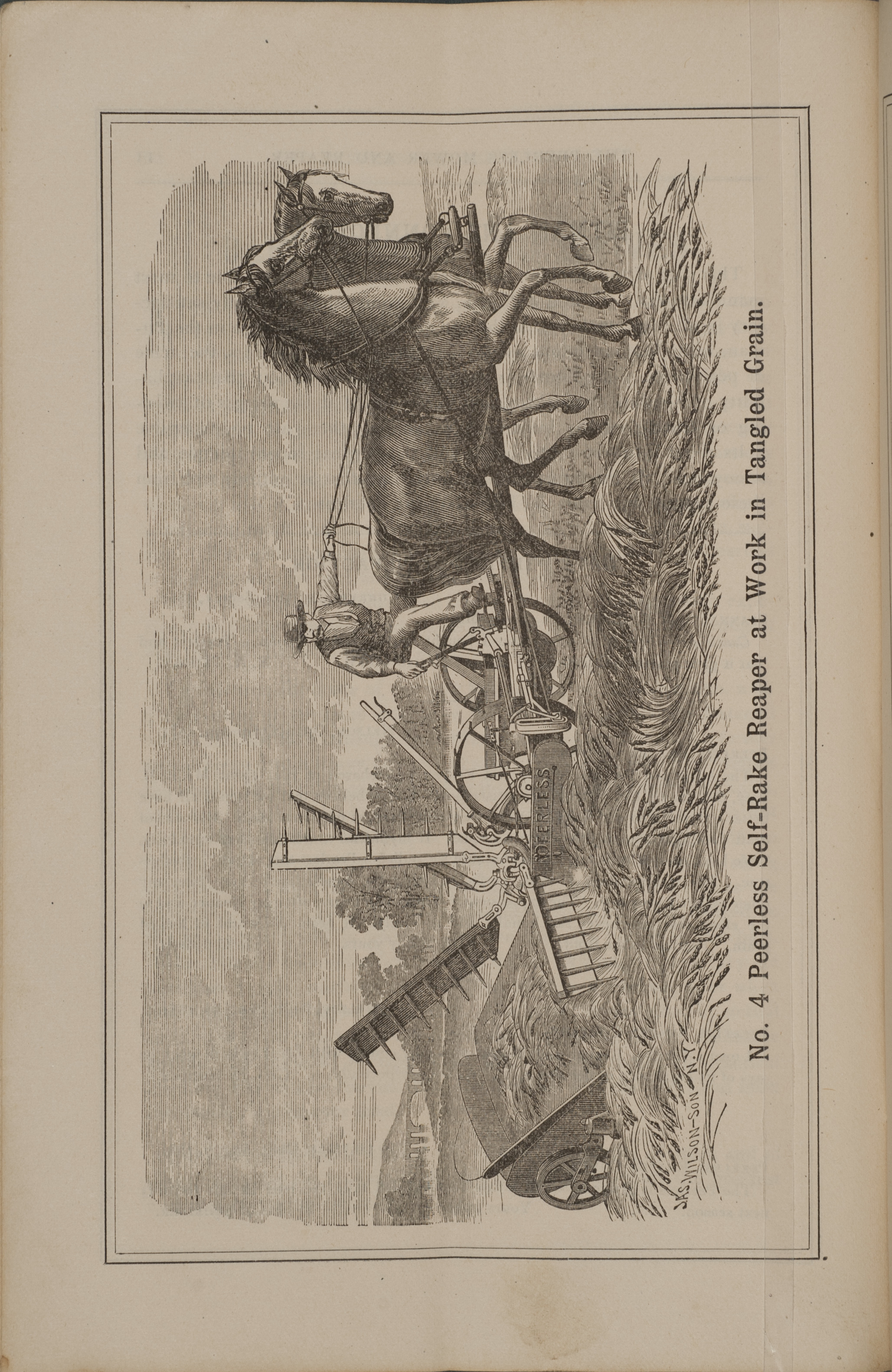 - Illustrated catalog describing the agricultural implements offered by Peerless Reaper Company in 1882.