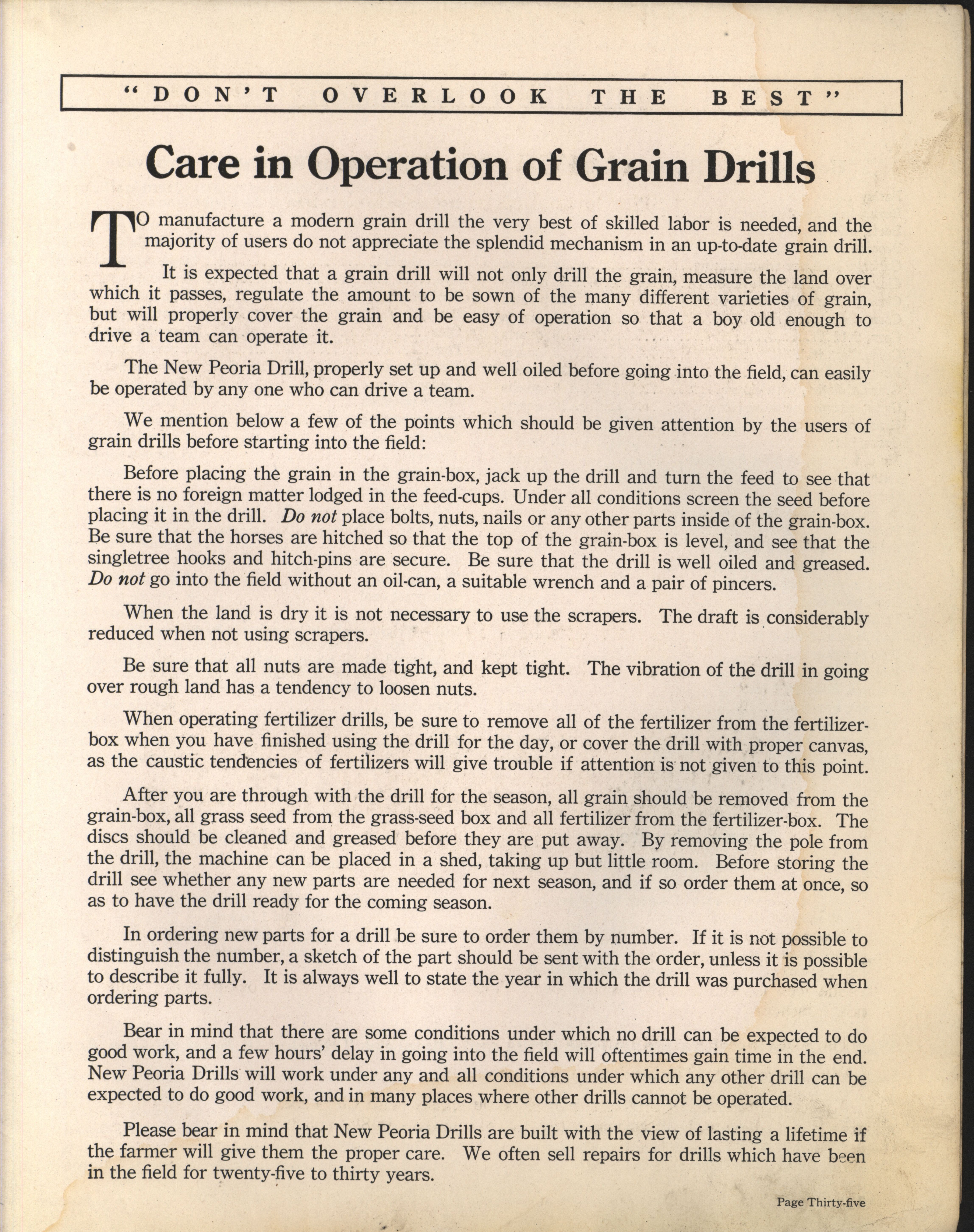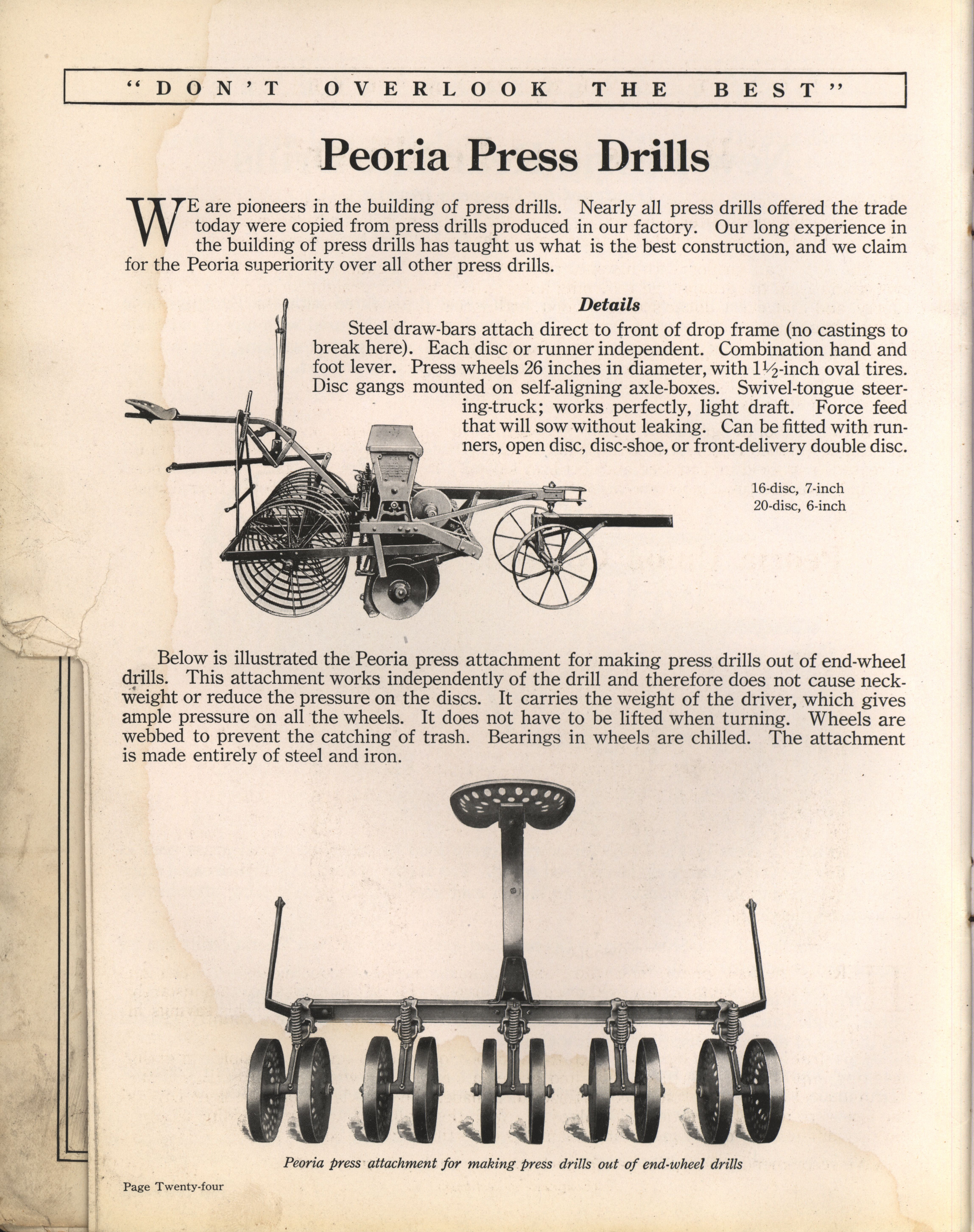 - "Peoria Drills catalog", Agricultural Machinery Literature Collection, Iowa State University Library Digital Collections