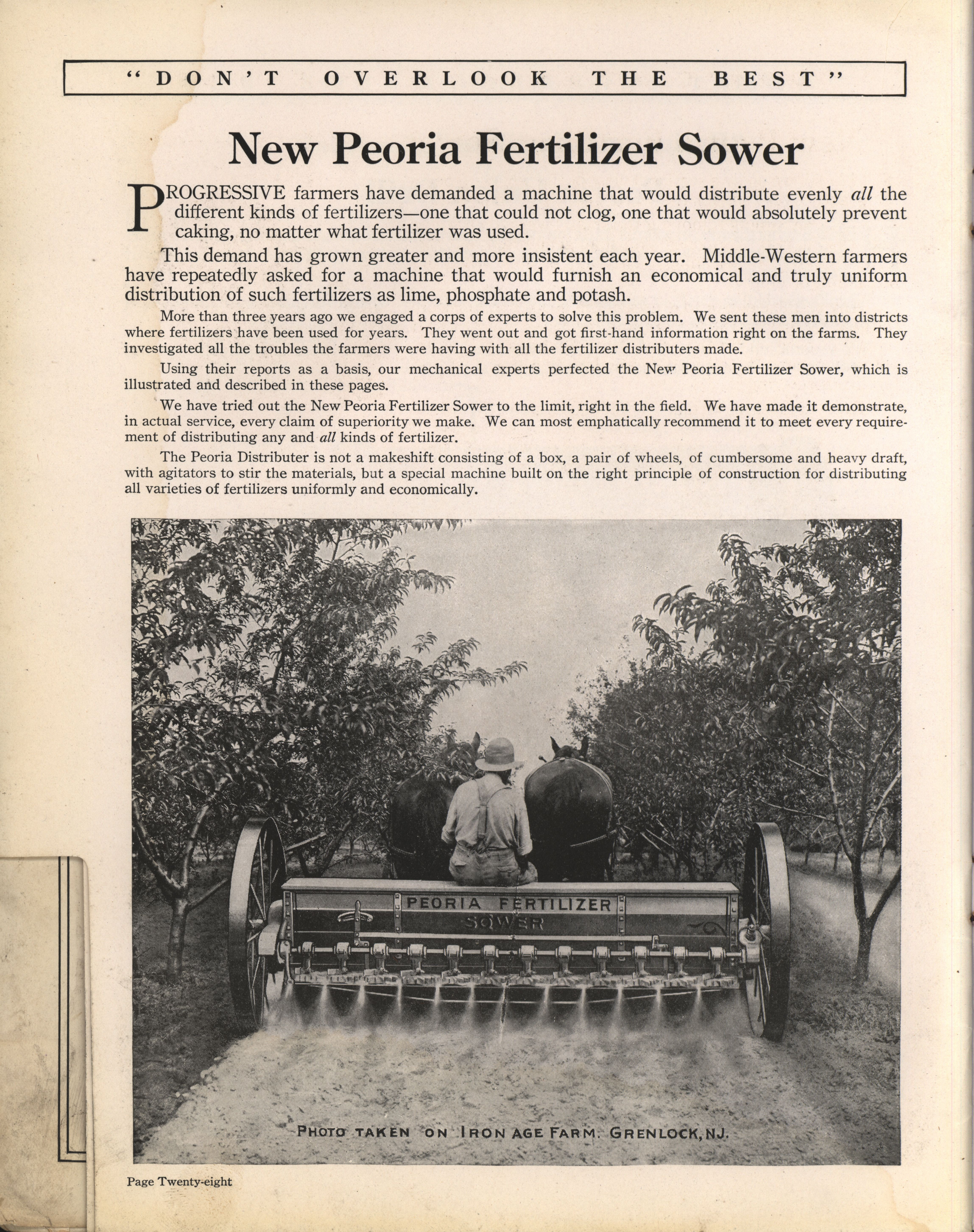 - Illustrated catalog advertising the products manufactured by the Peoria Drill Company.