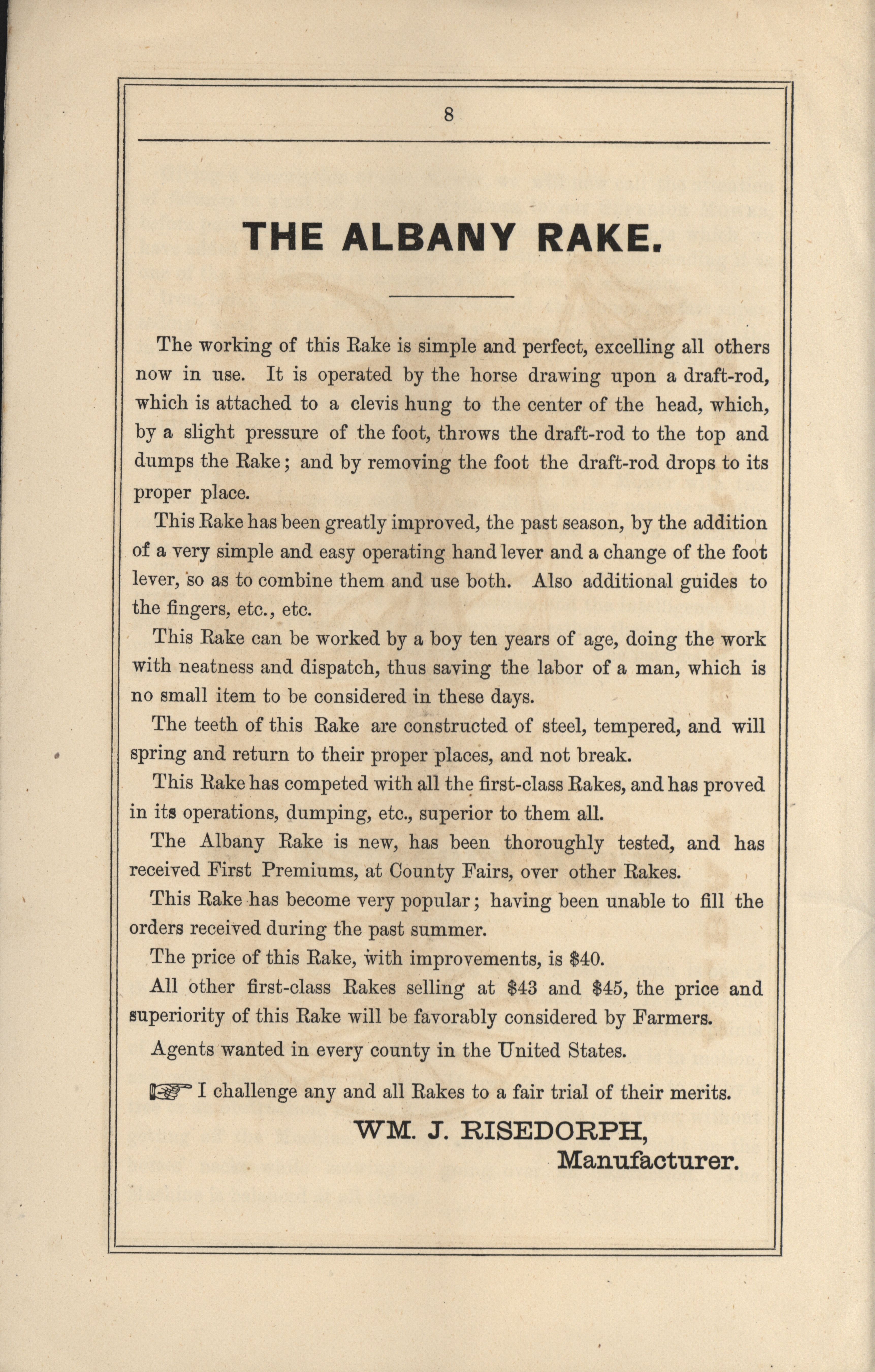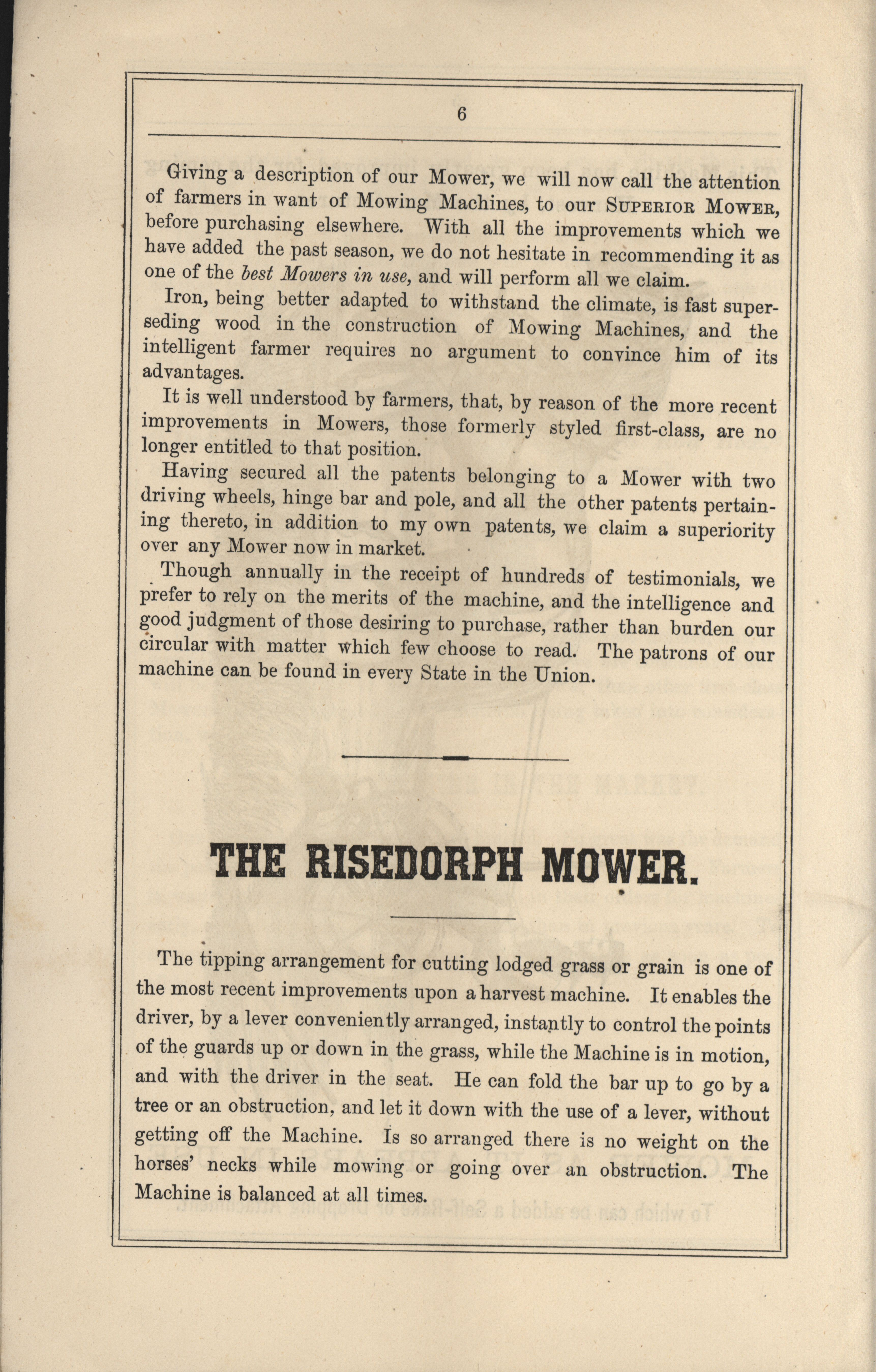 - Illustrated catalog describing the United States Mower offered by William J. Risedorph.