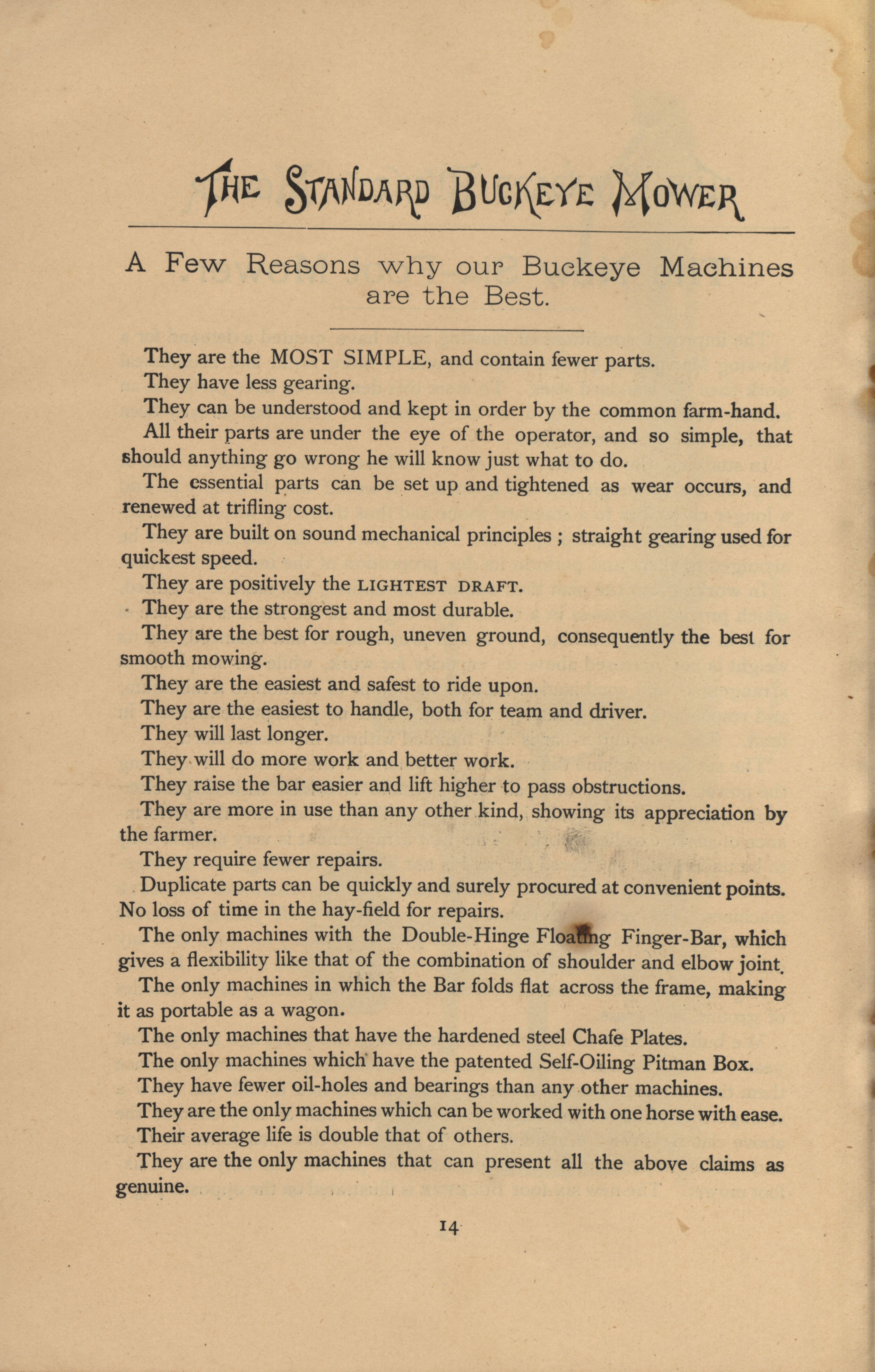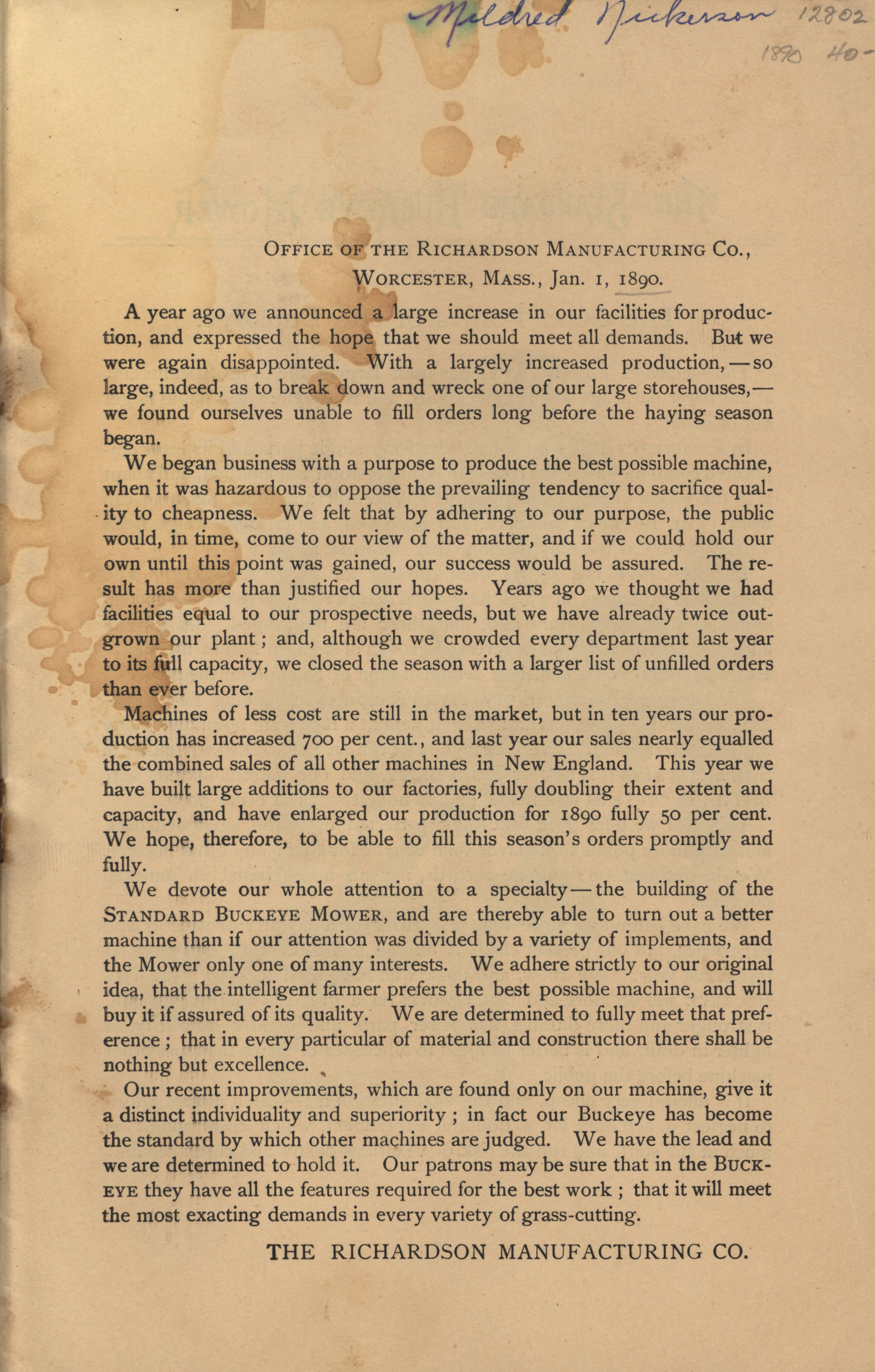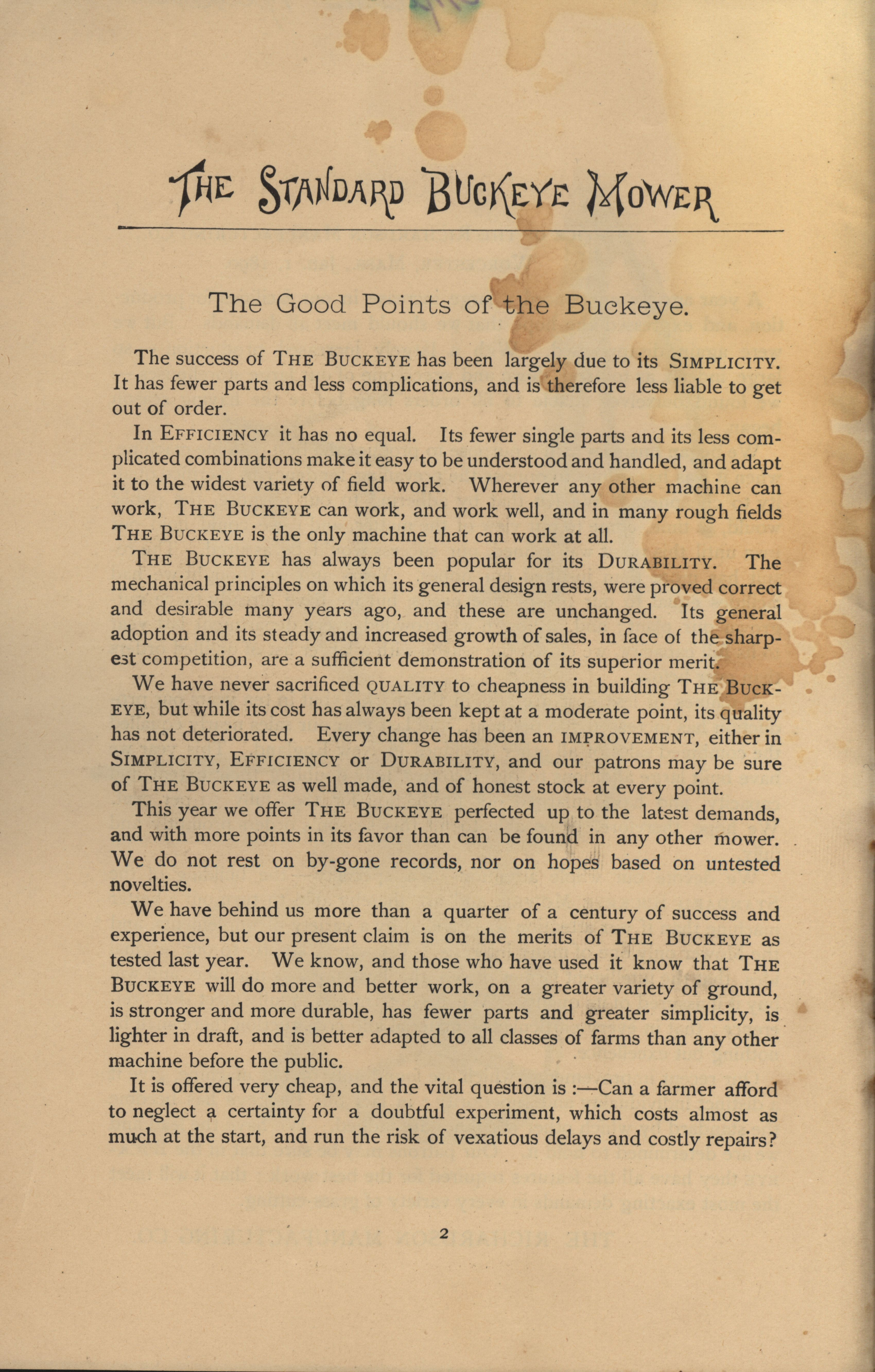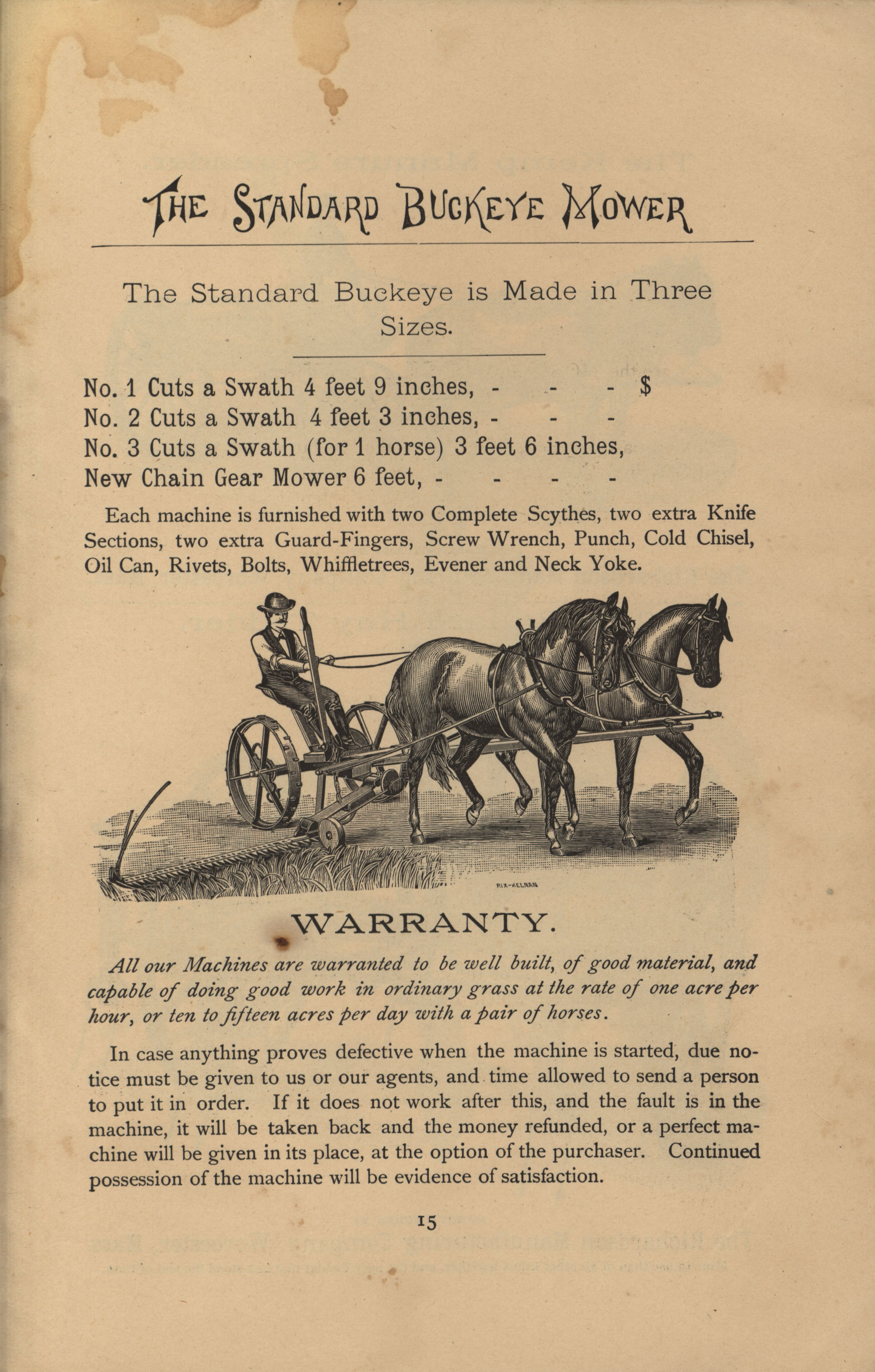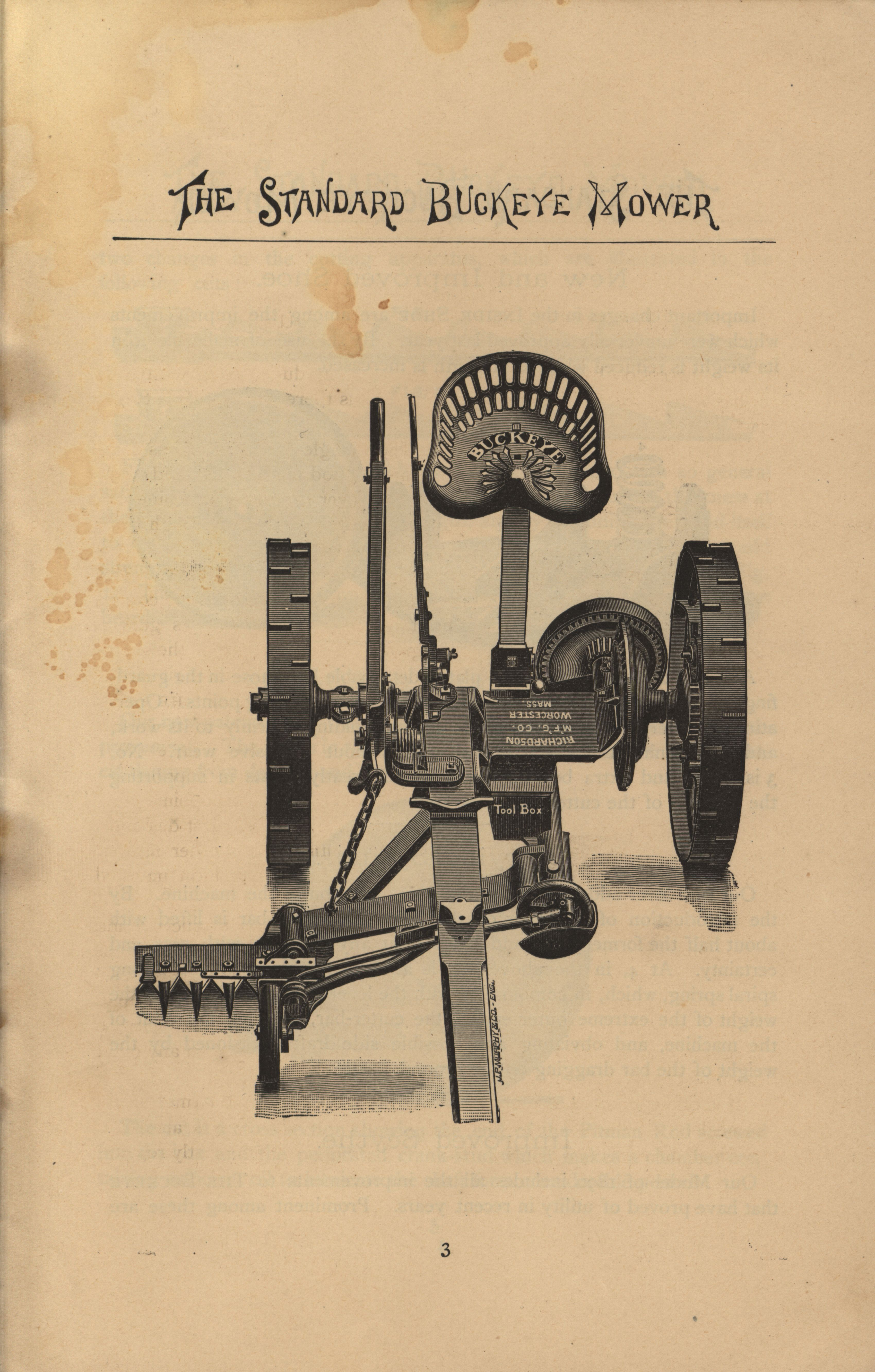 - Illustrated catalog advertising the "Buckeye Mower" produced by the Richardson Manufacturing Company.
