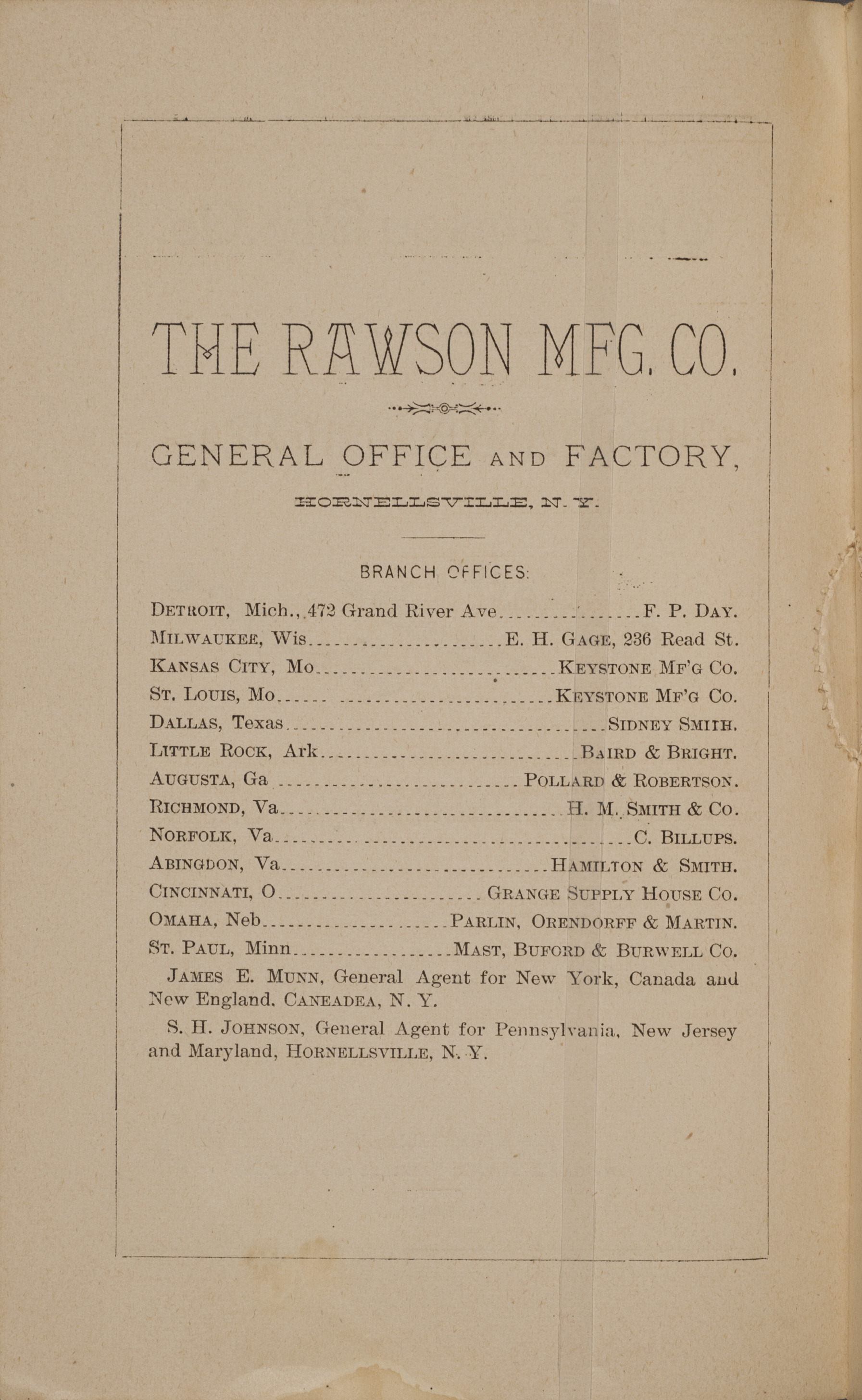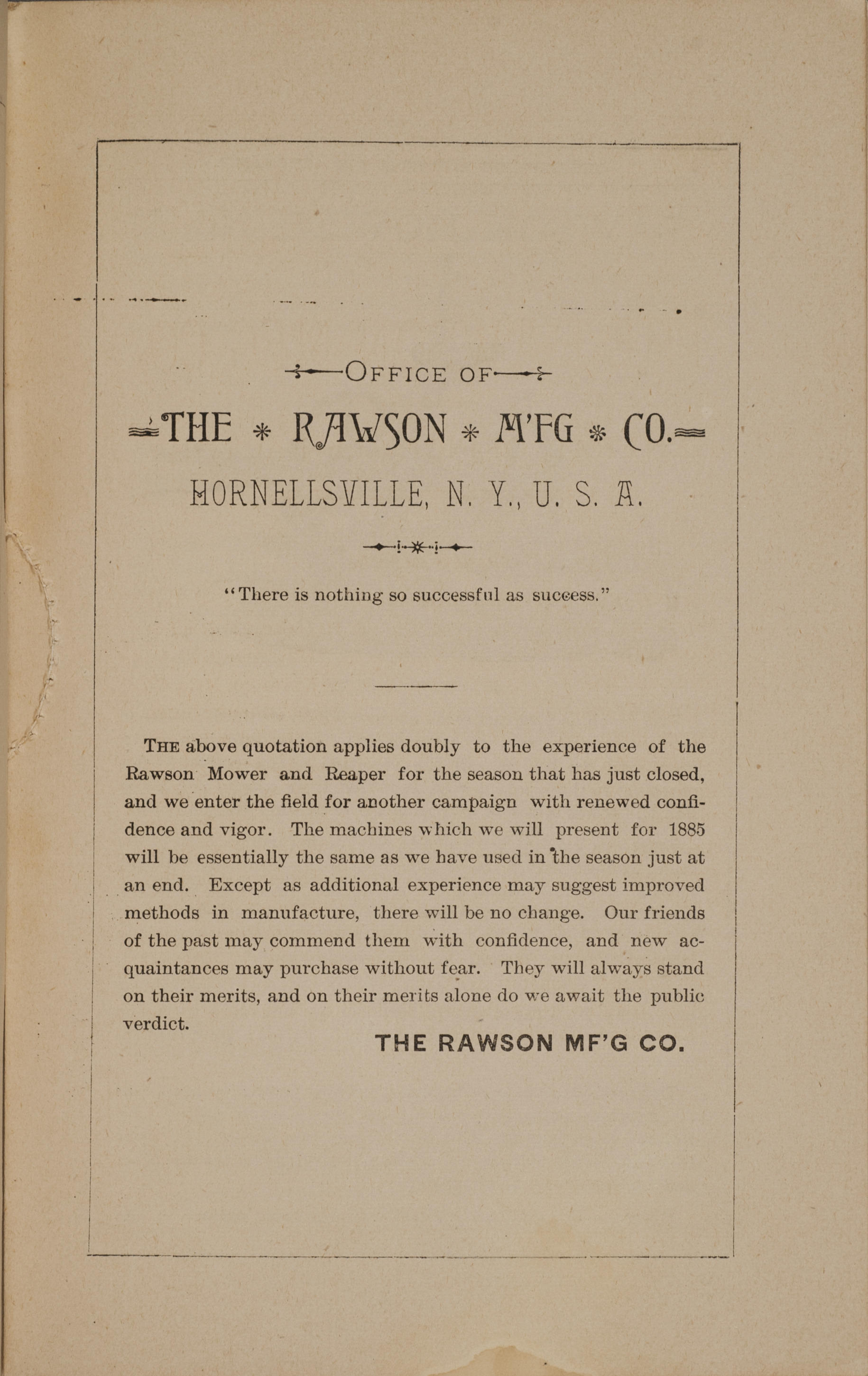 - Rawson Manufacturing Company Mower and Reaper catalog
