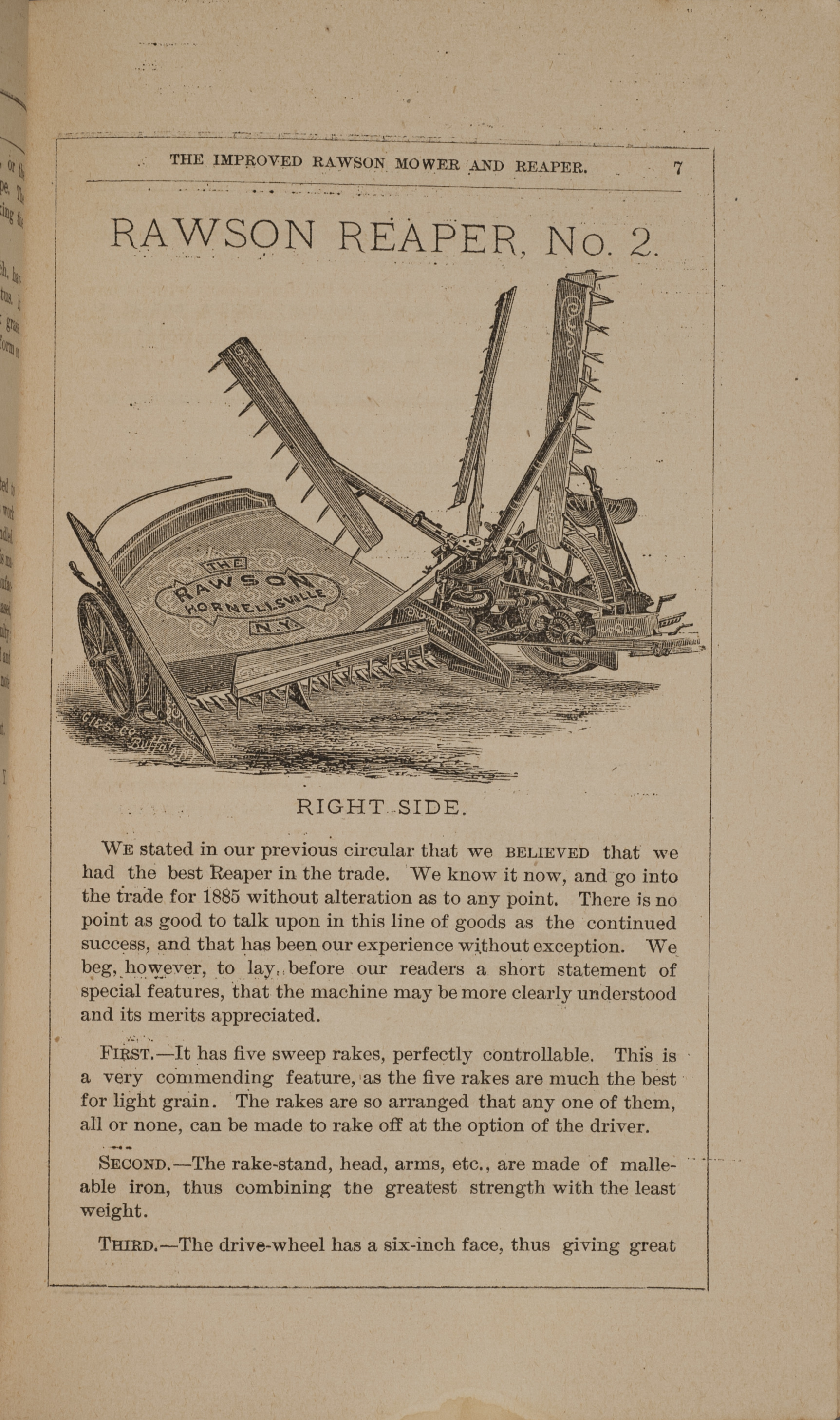 - "Rawson Manufacturing Company Mower and Reaper catalog", Agricultural Machinery Literature Collection, Iowa State University Library Digital Collections