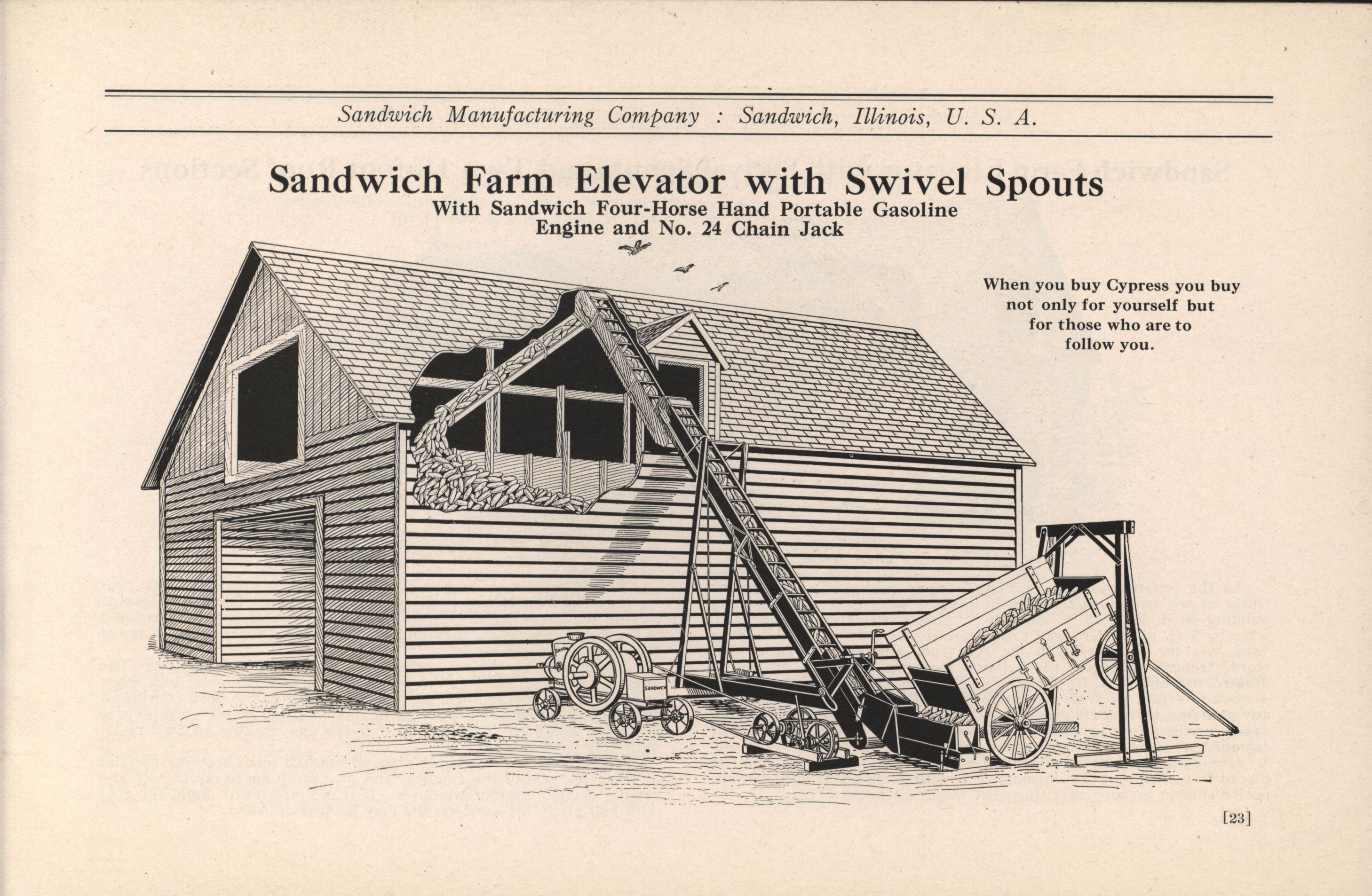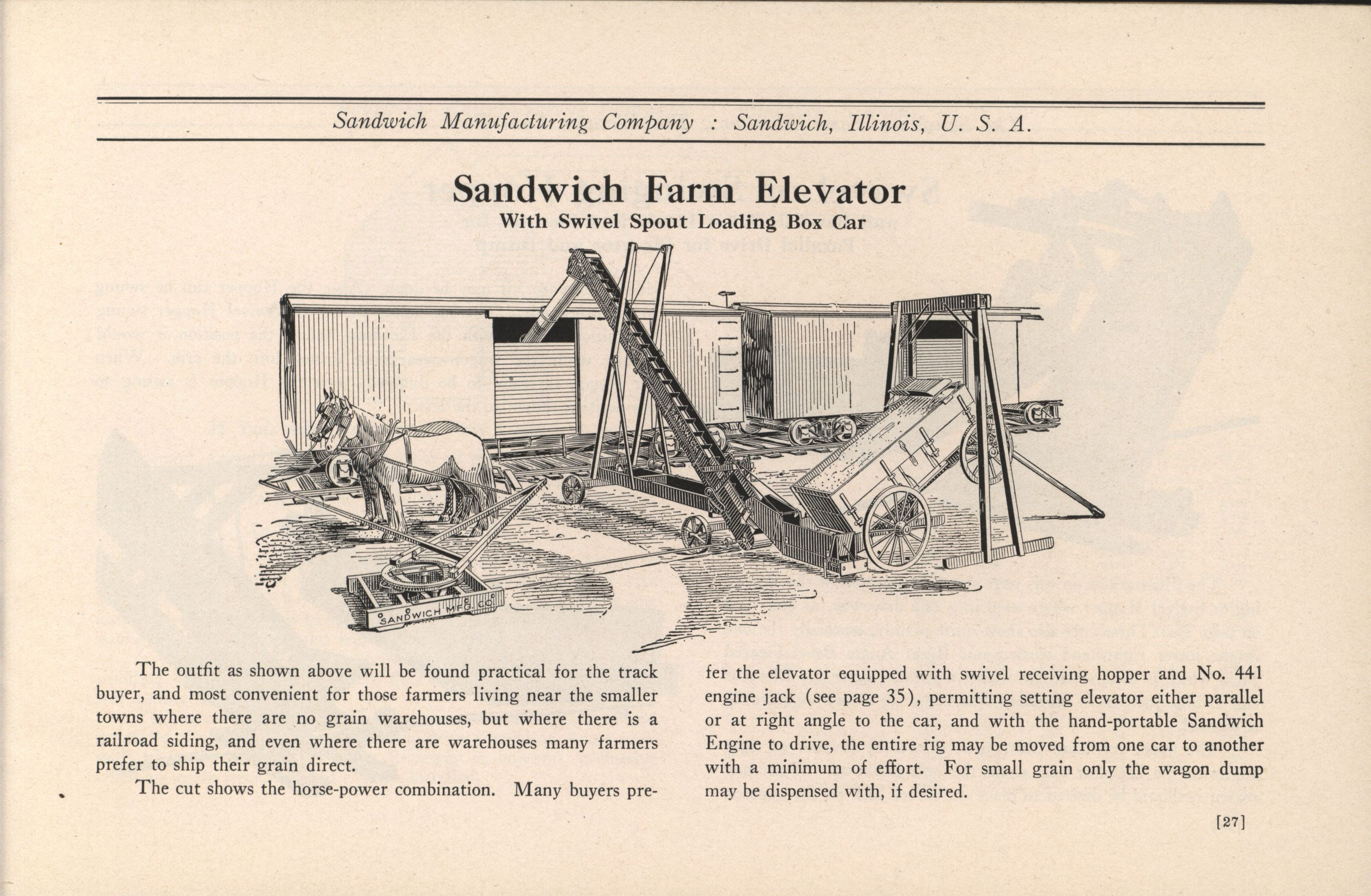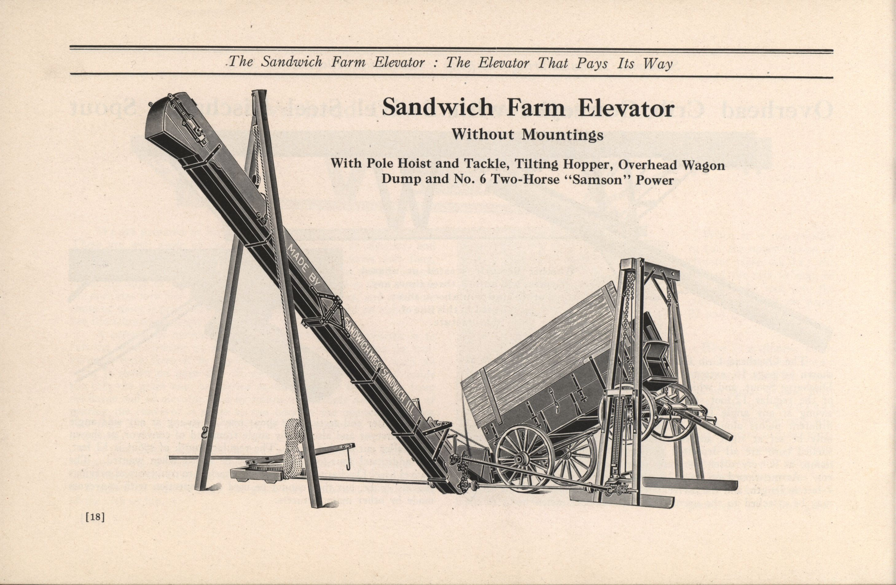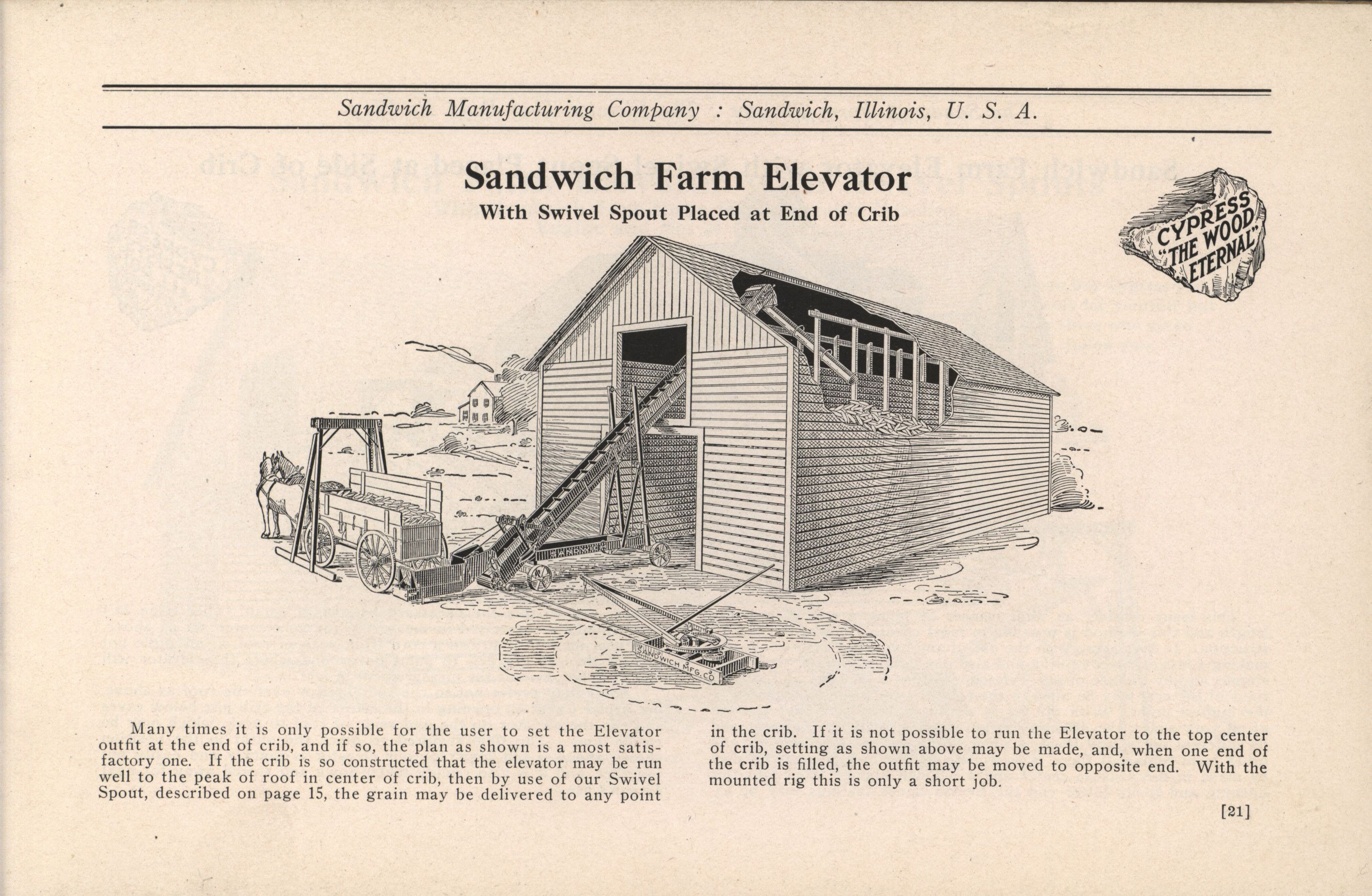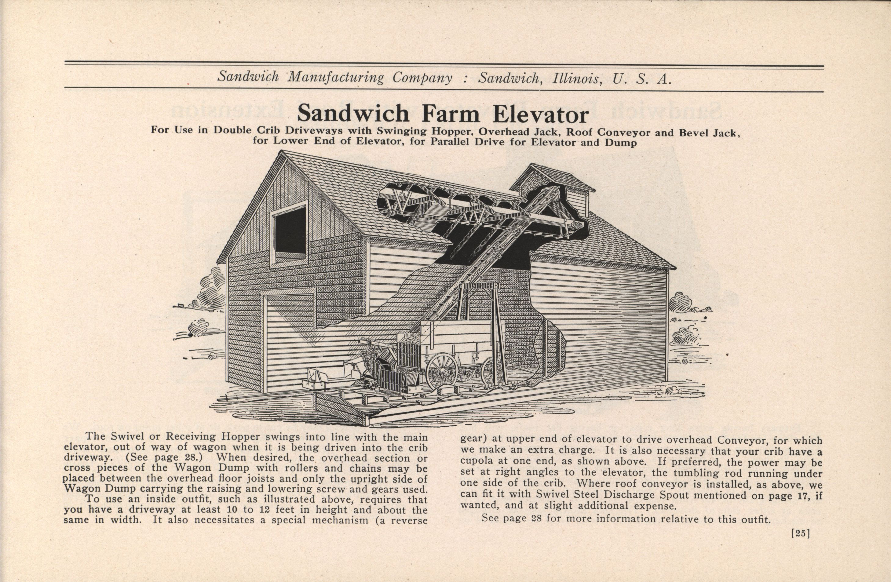 - "Sandwich Manufacturing Company farm elevators catalog", Agricultural Machinery Literature Collection, Iowa State University Library Digital Collections
