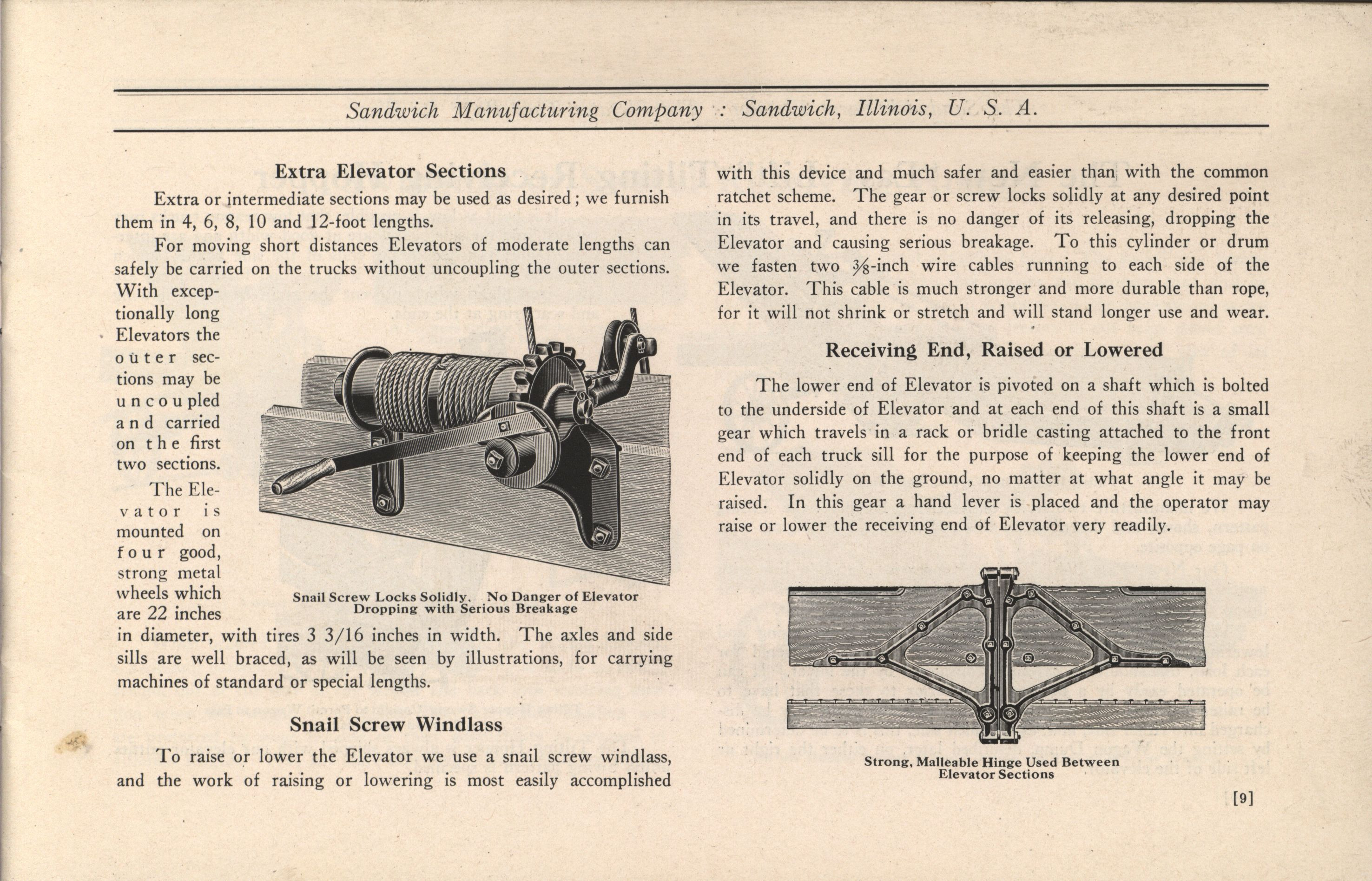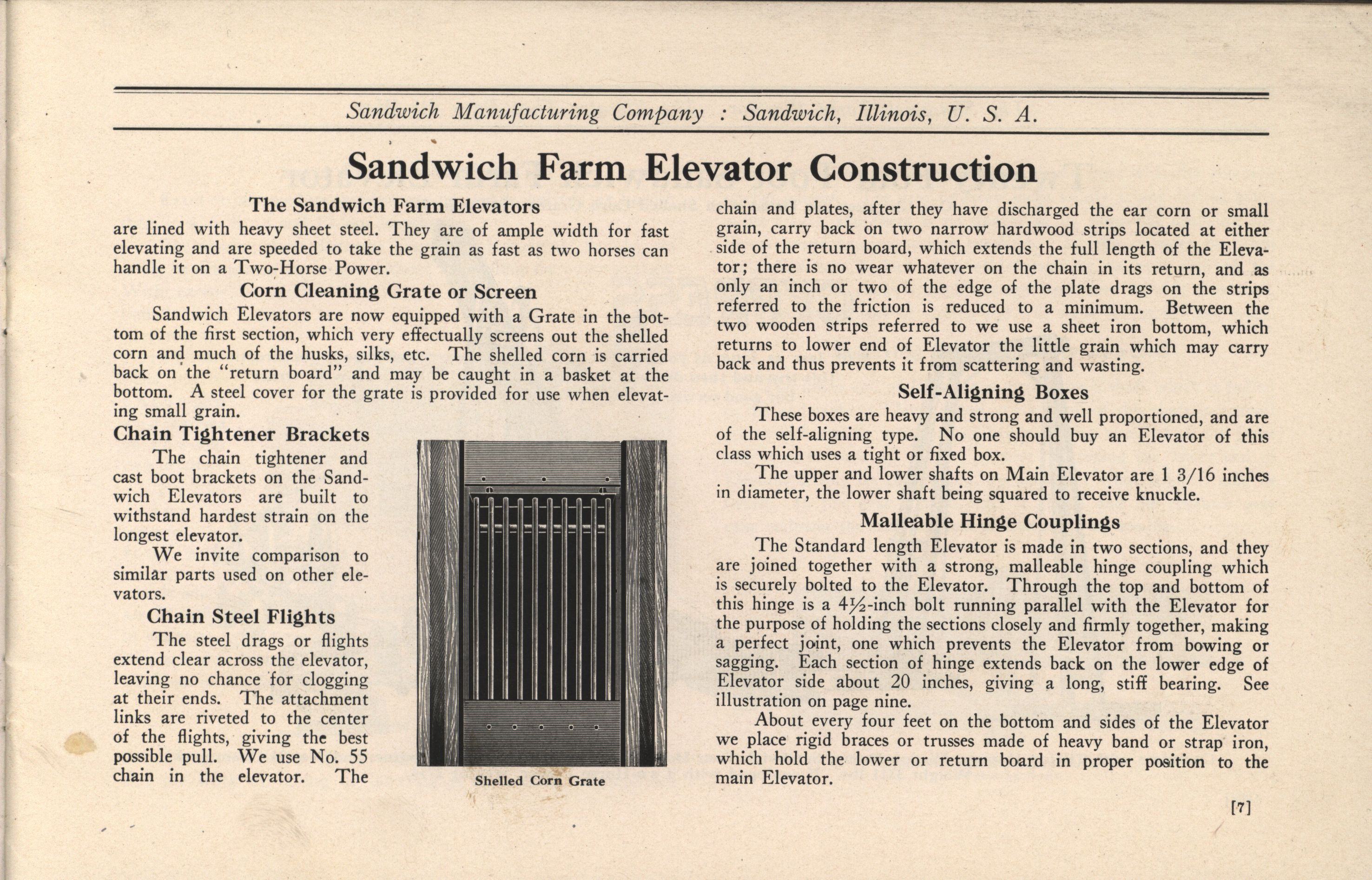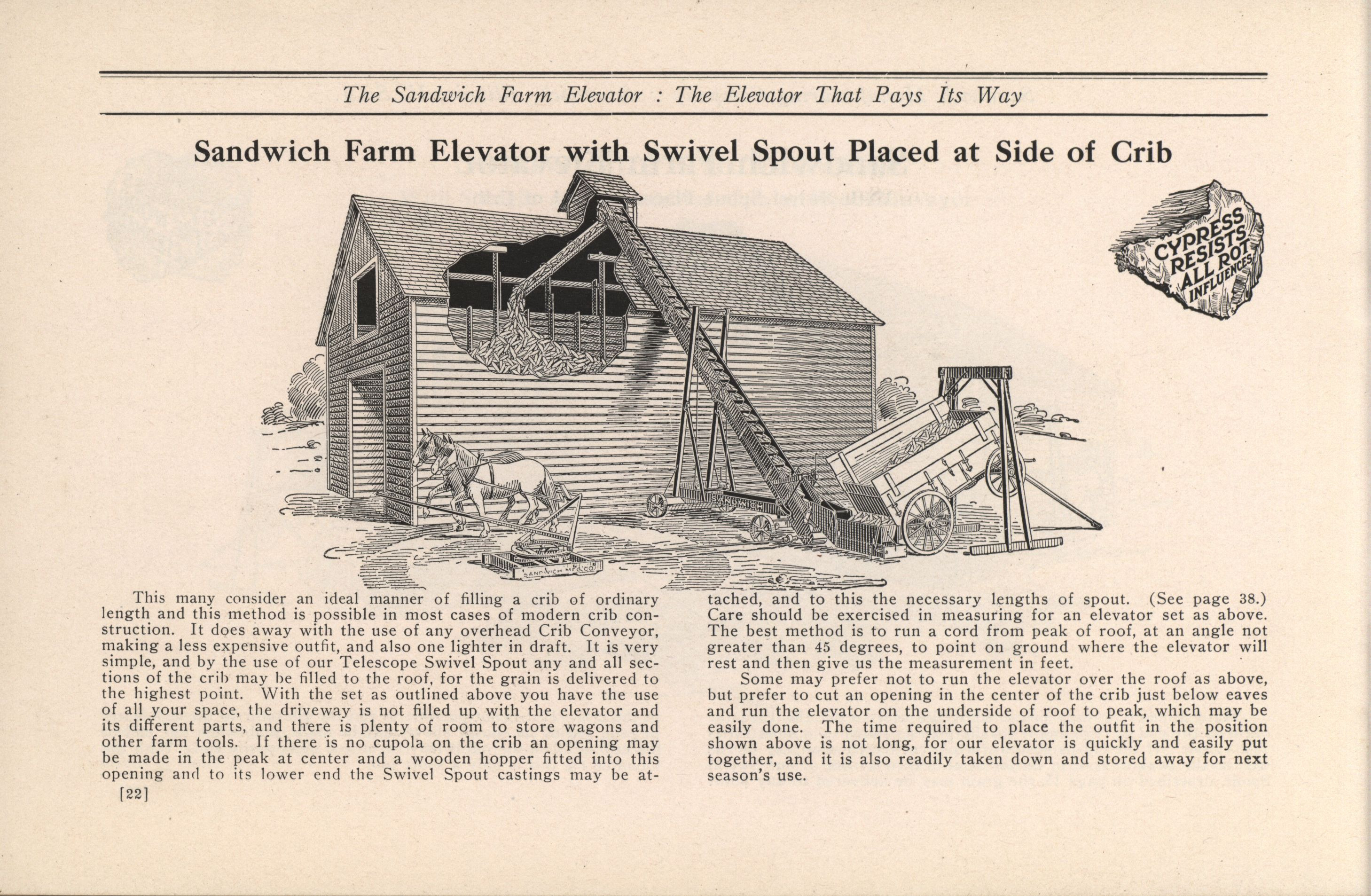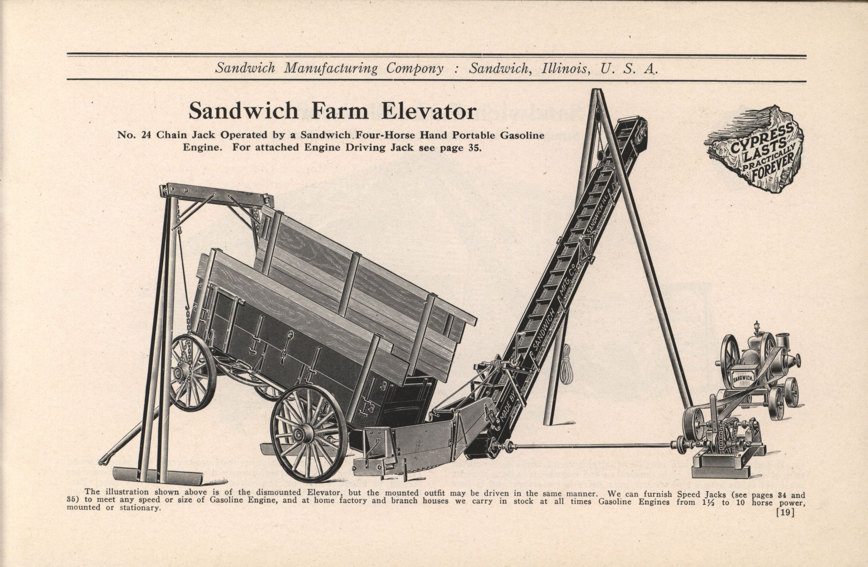 - "Sandwich Manufacturing Company farm elevators catalog", Agricultural Machinery Literature Collection, Iowa State University Library Digital Collections
