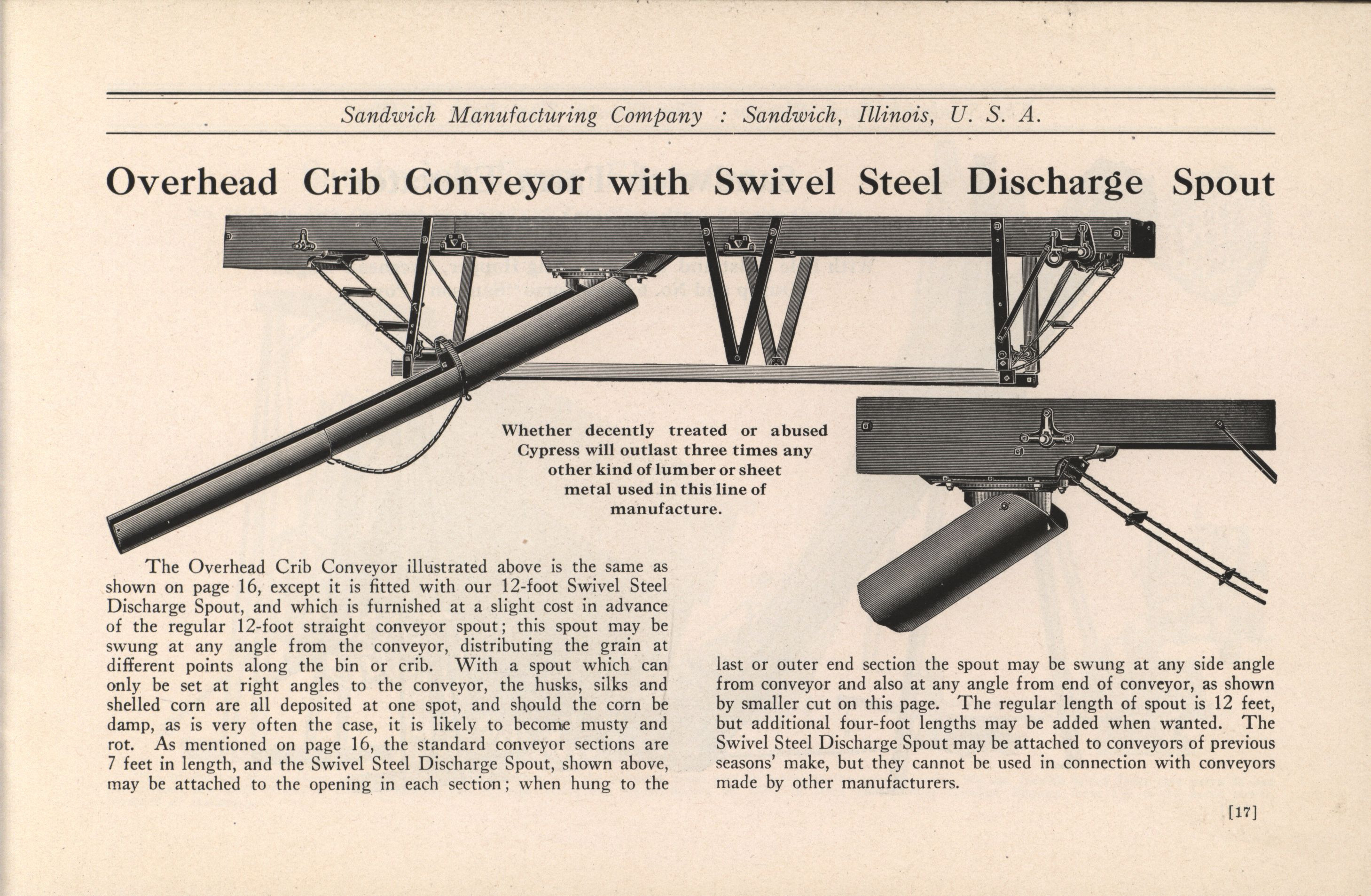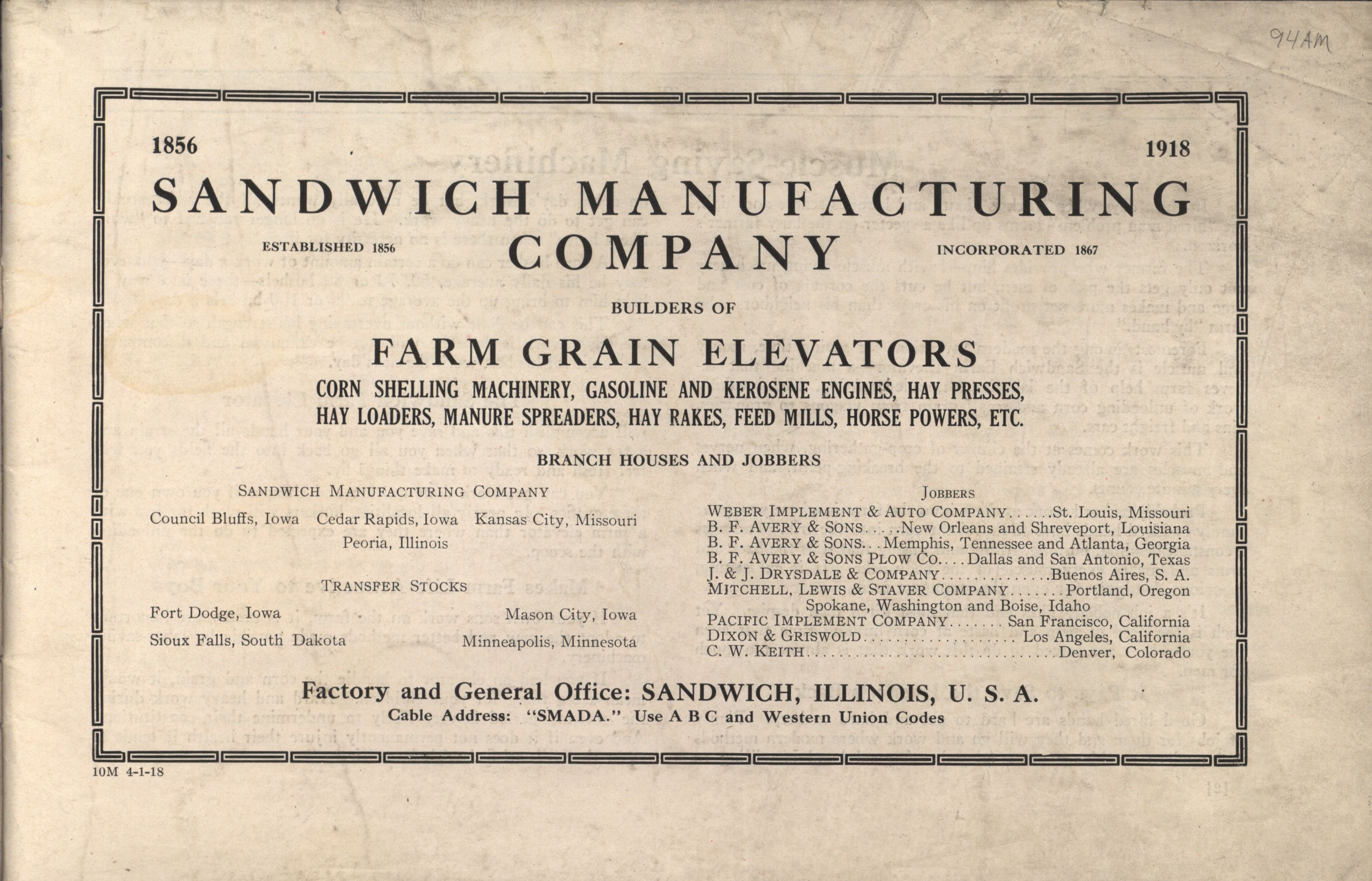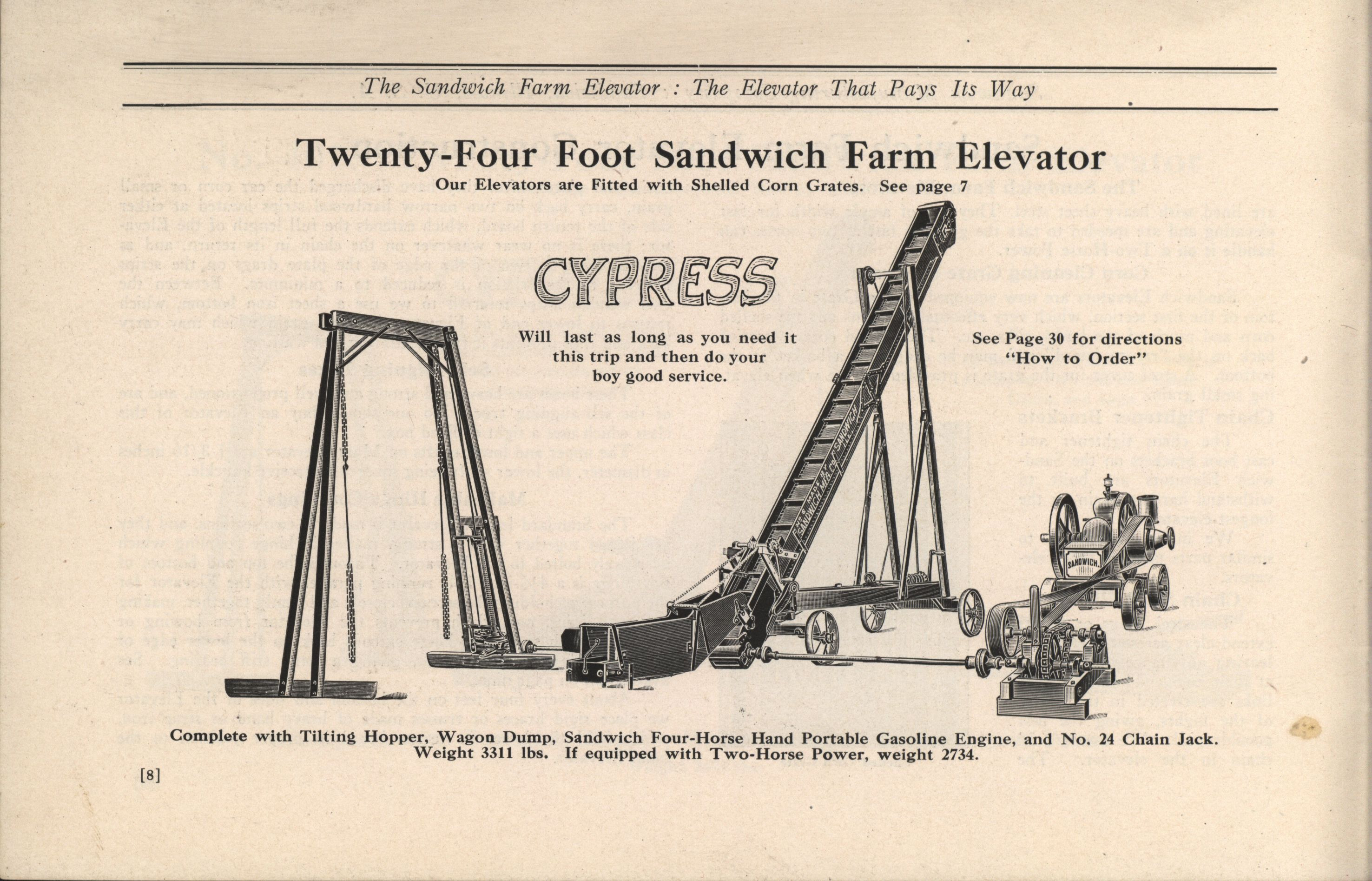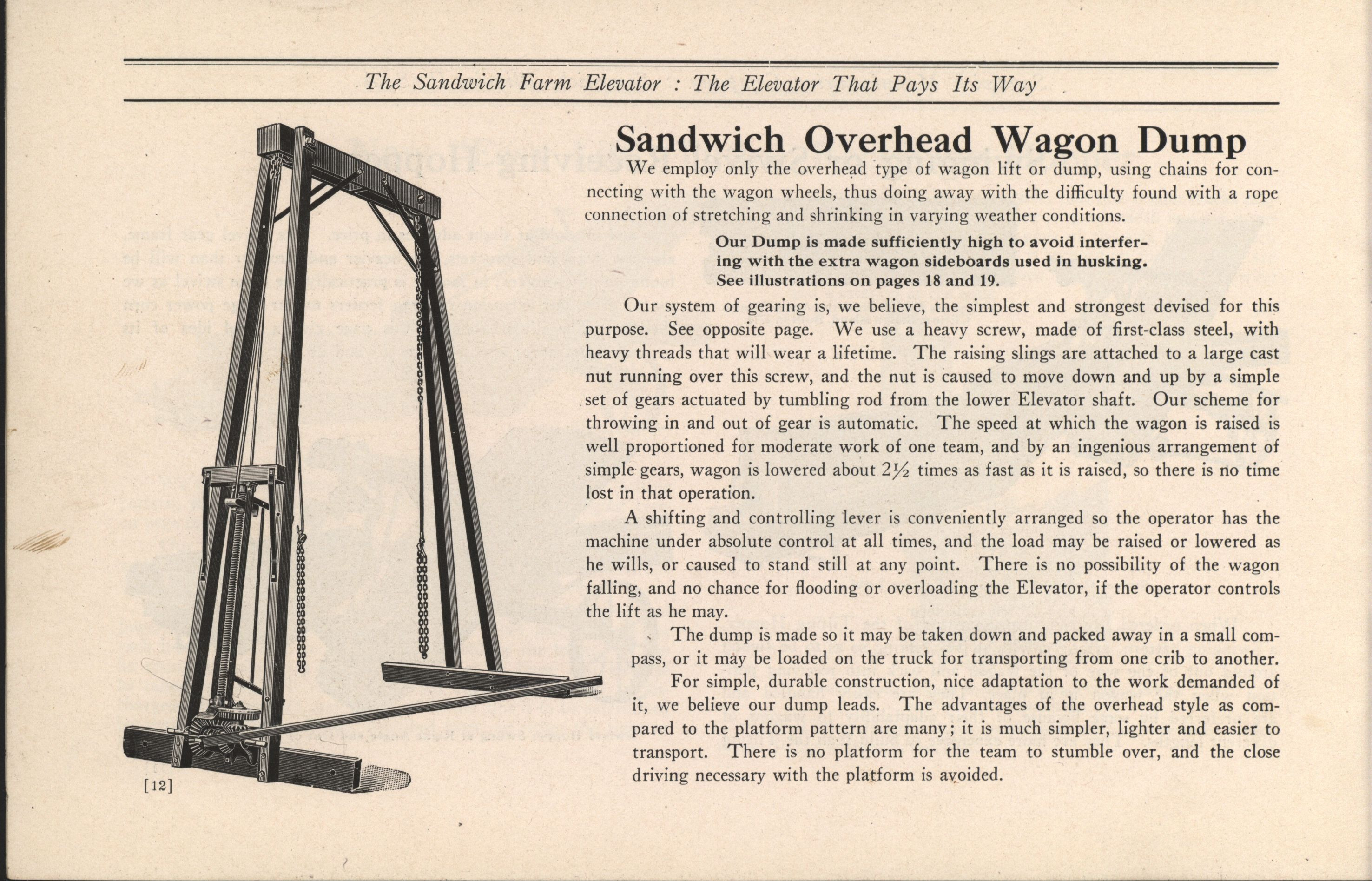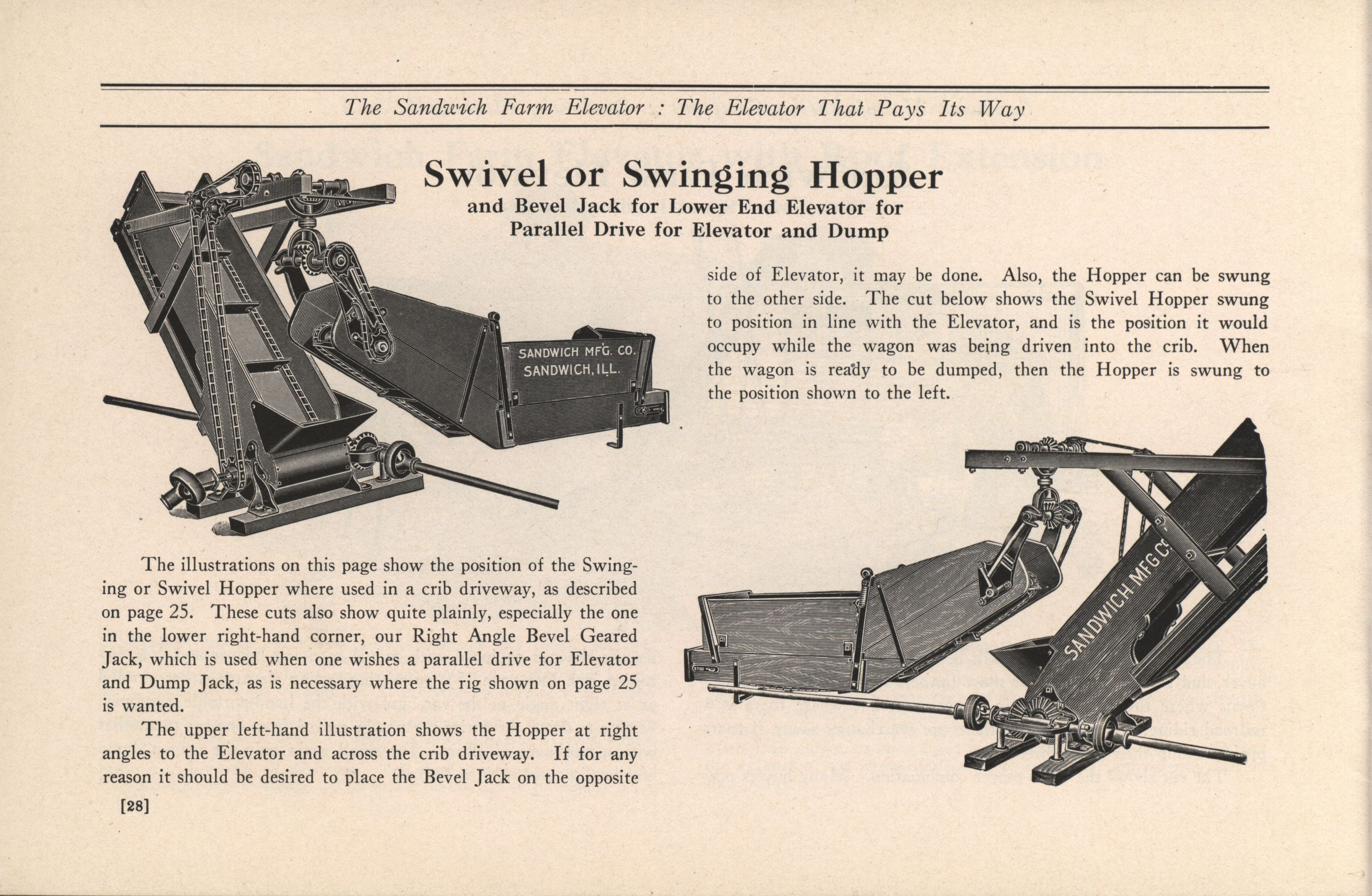 - "Sandwich Manufacturing Company farm elevators catalog", Agricultural Machinery Literature Collection, Iowa State University Library Digital Collections