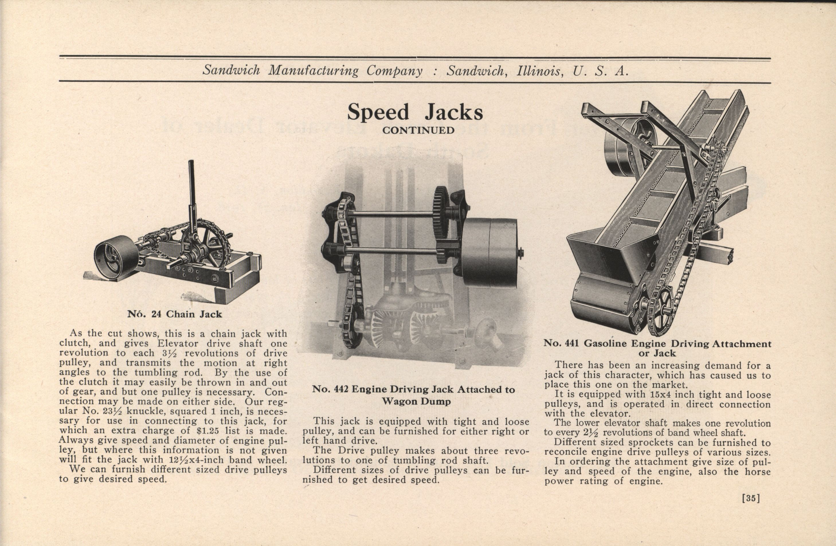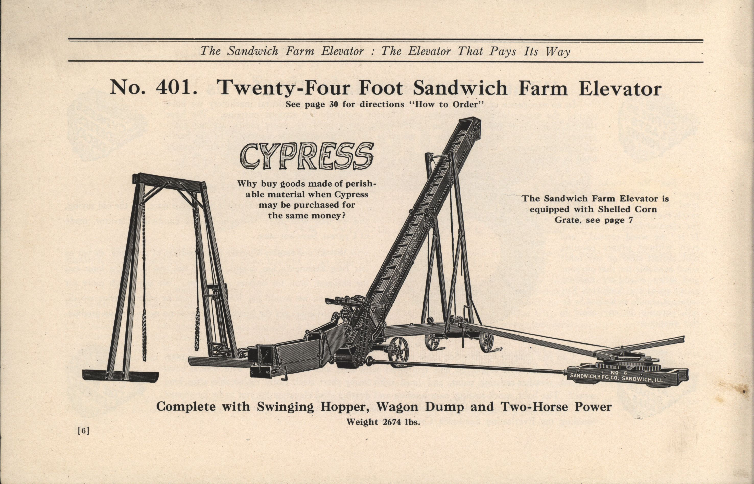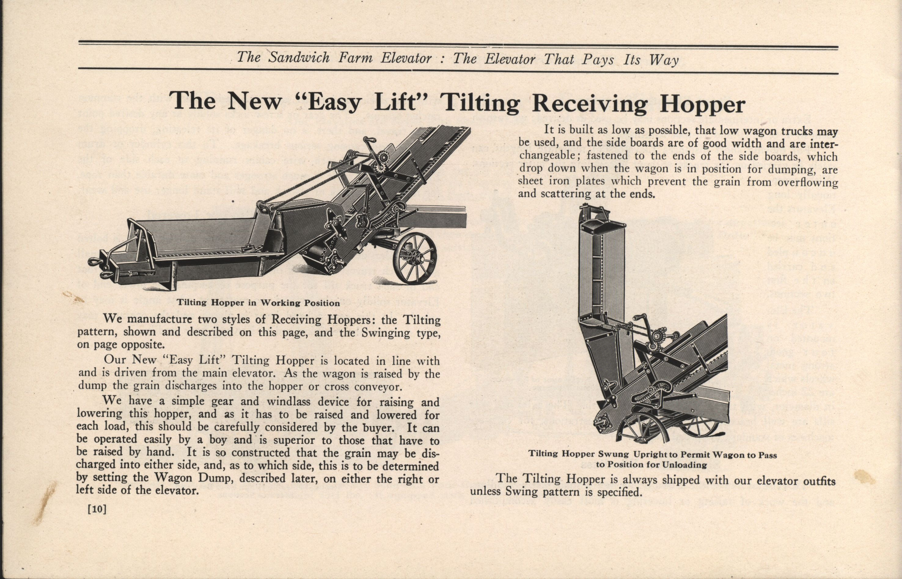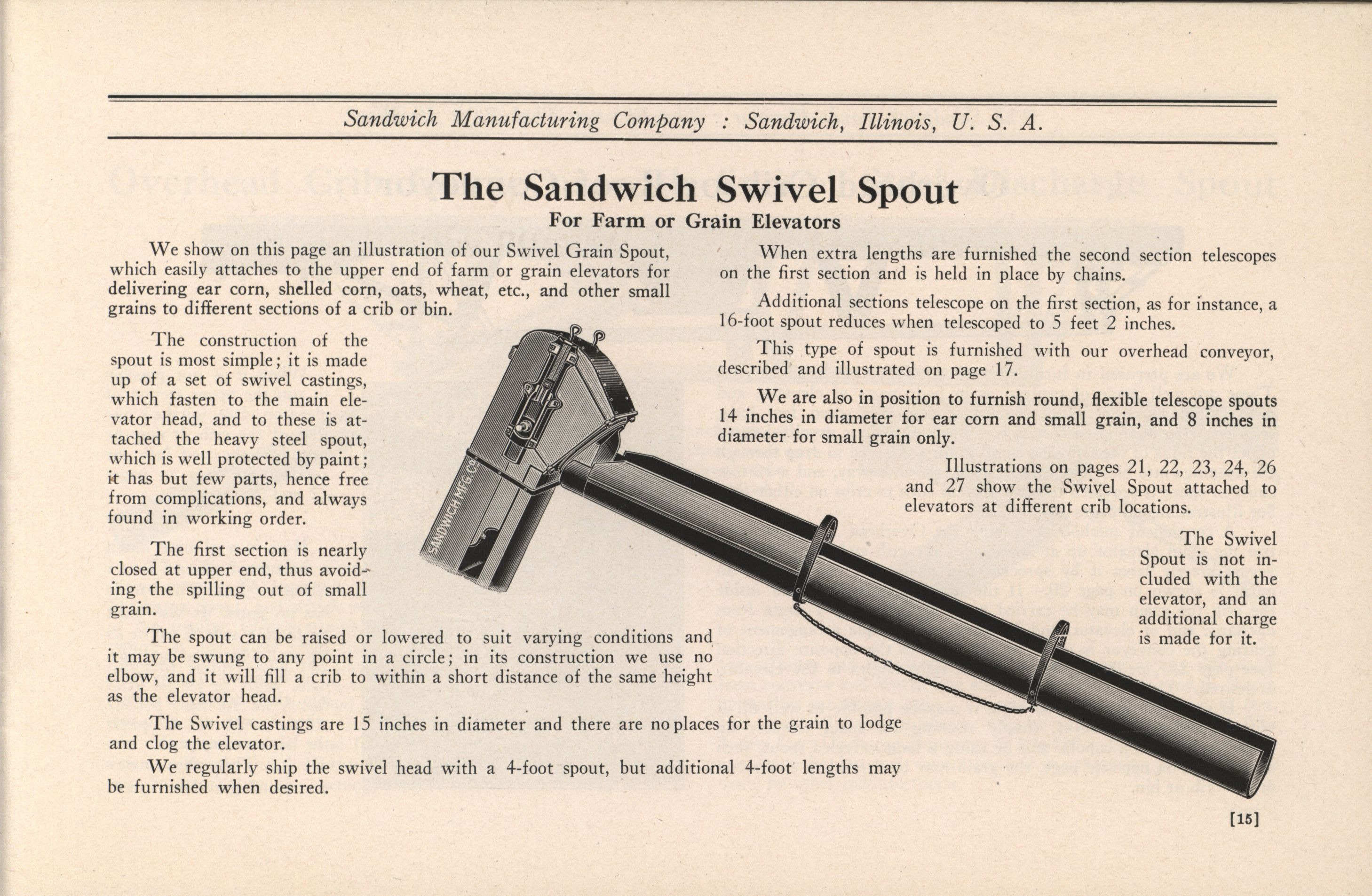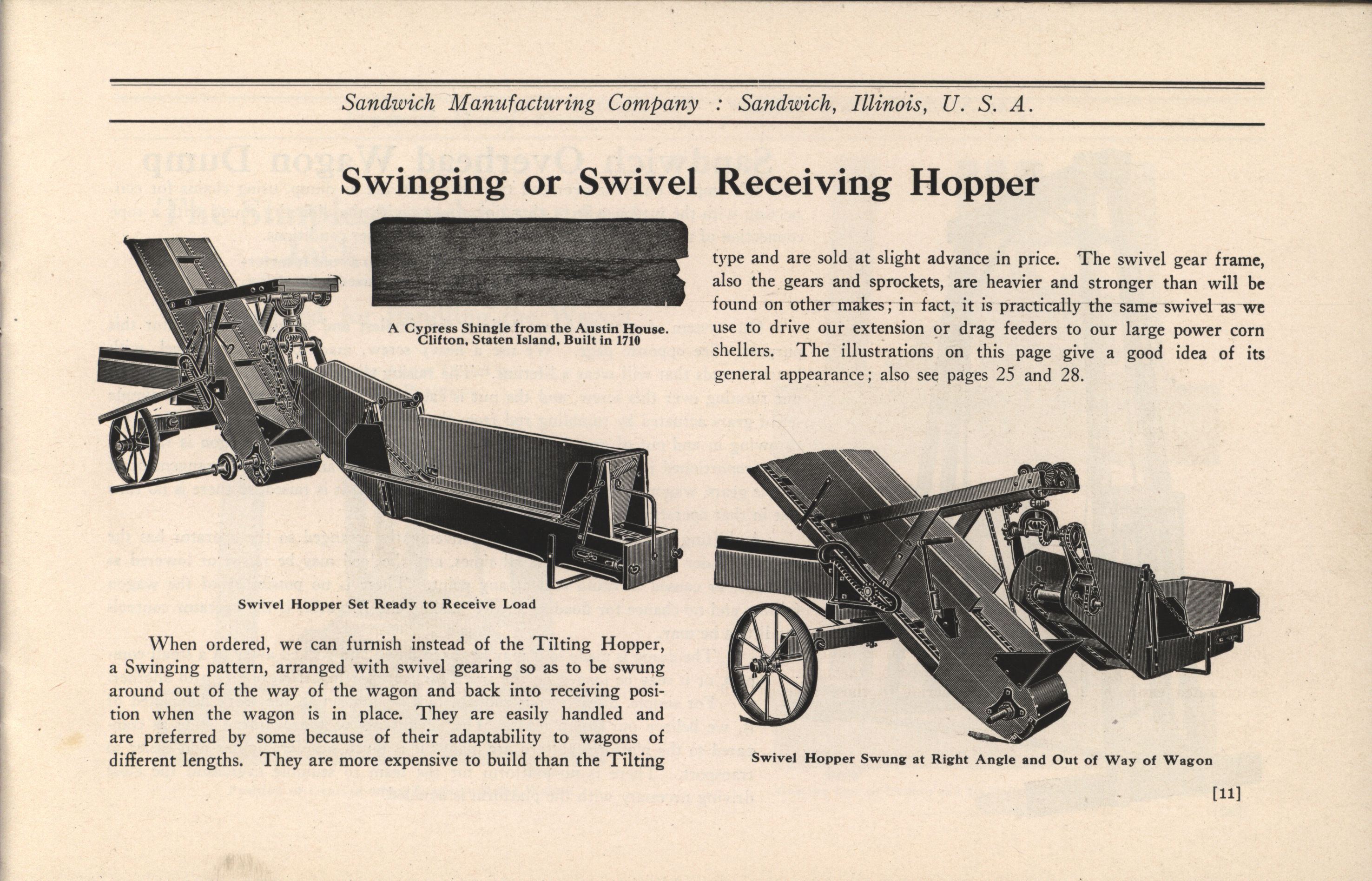 - "Sandwich Manufacturing Company farm elevators catalog", Agricultural Machinery Literature Collection, Iowa State University Library Digital Collections