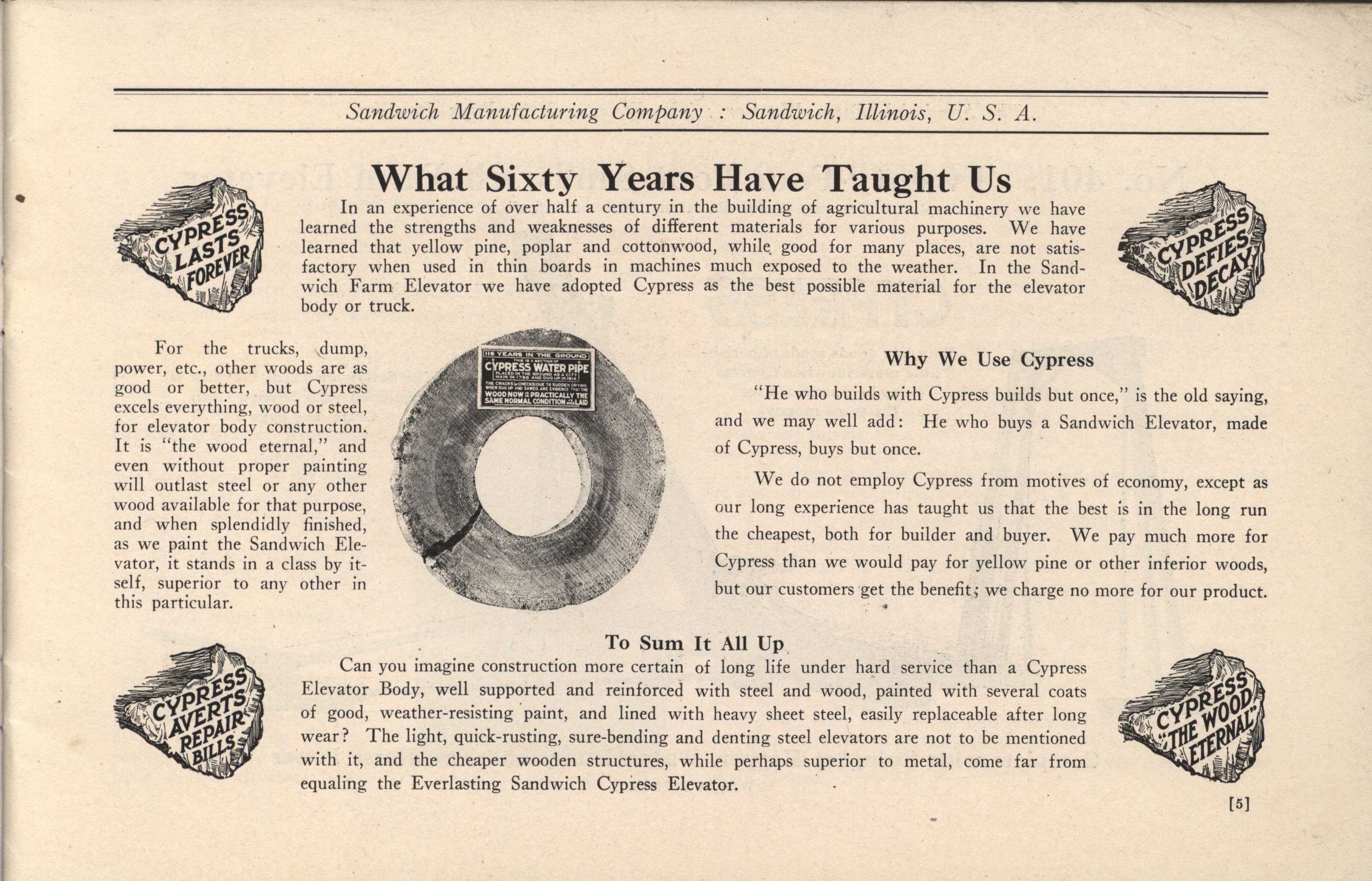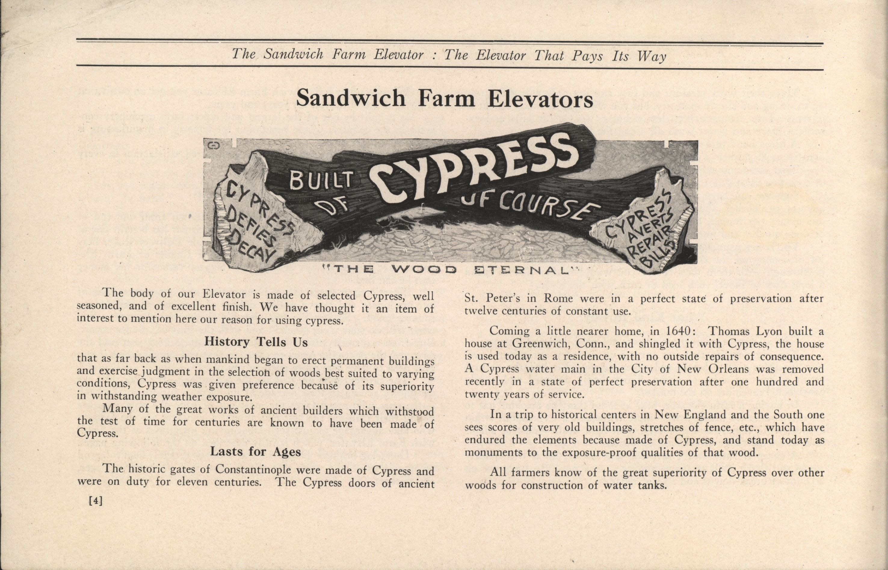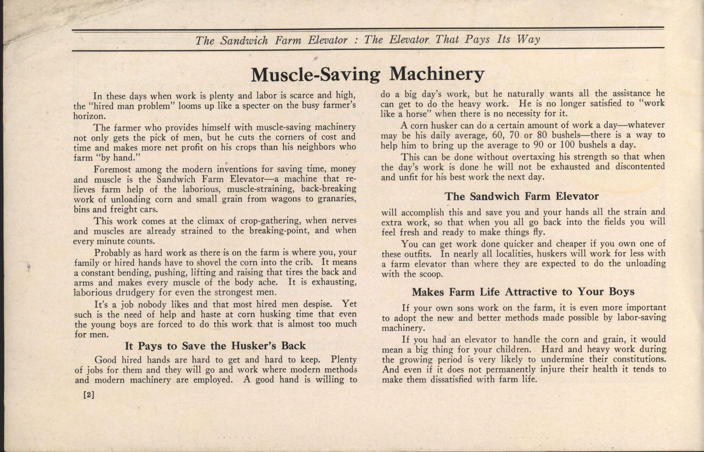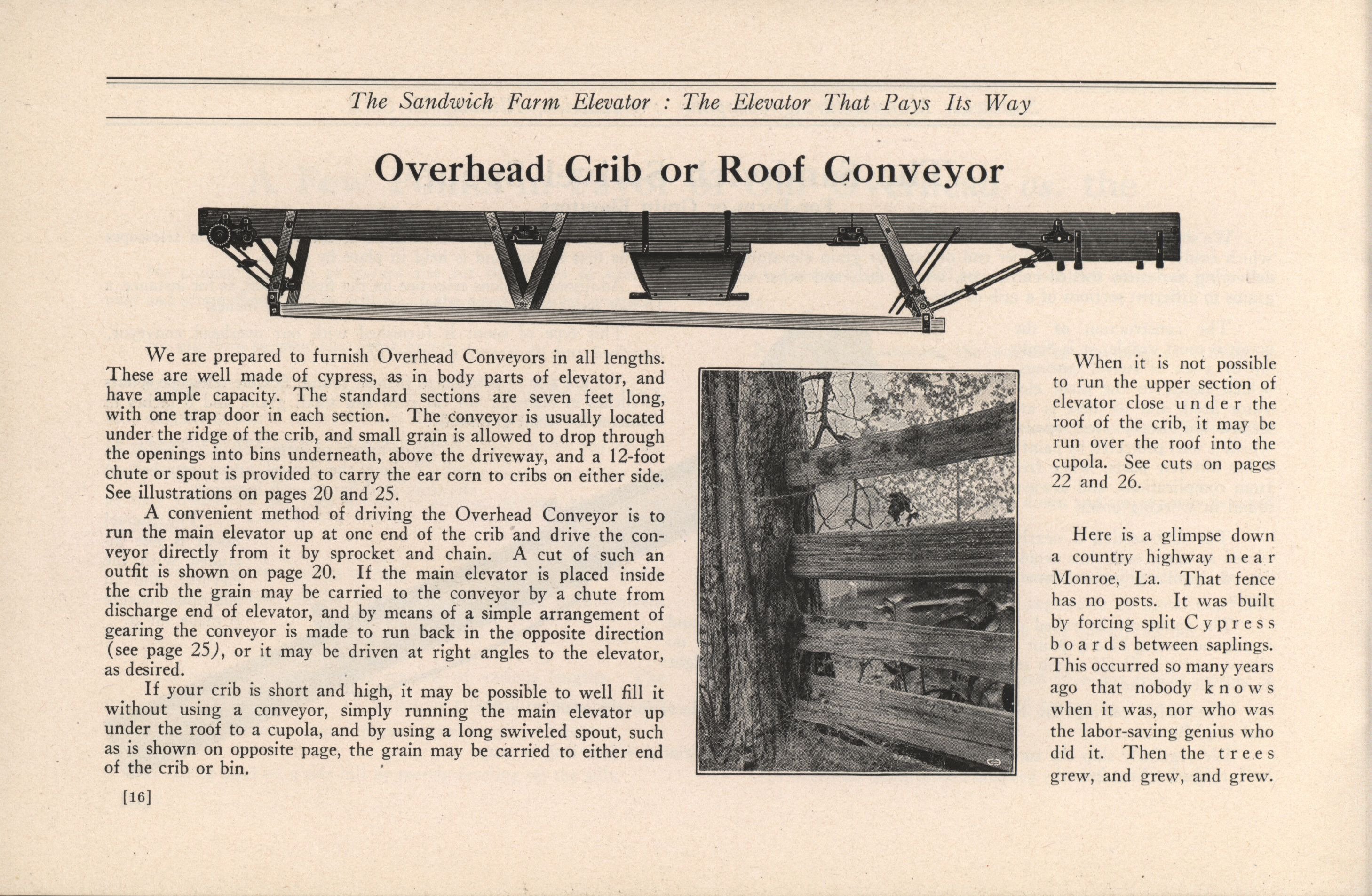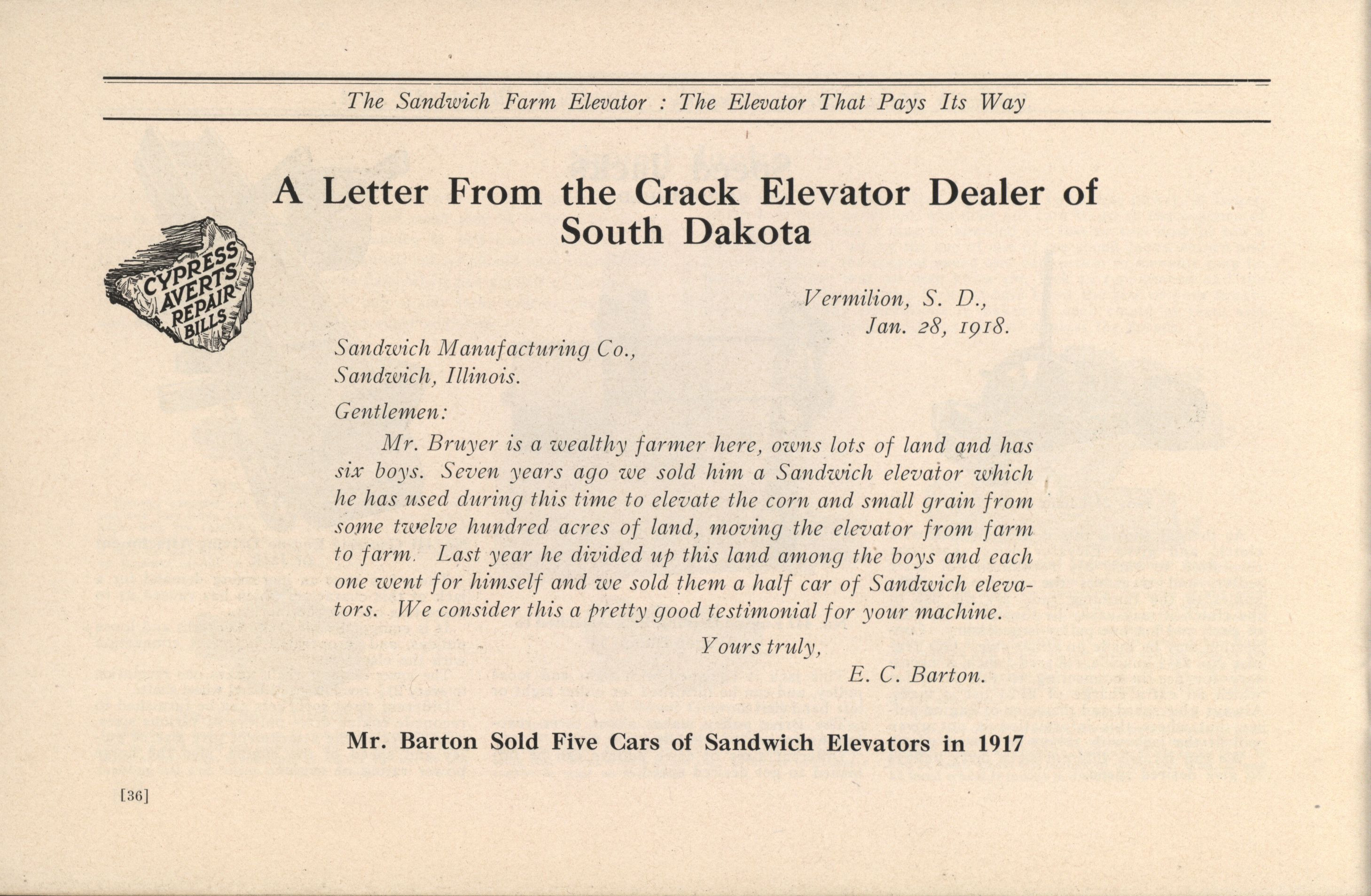 - "Sandwich Manufacturing Company farm elevators catalog", Agricultural Machinery Literature Collection, Iowa State University Library Digital Collections