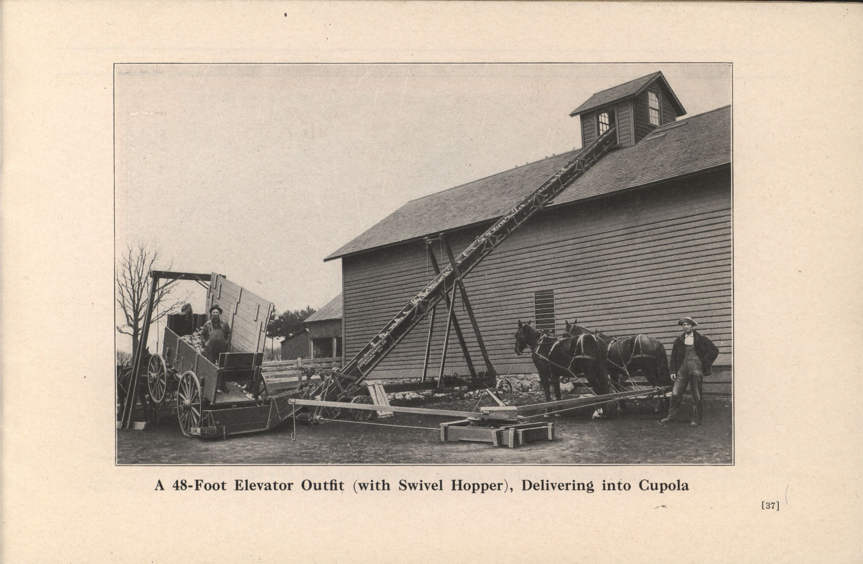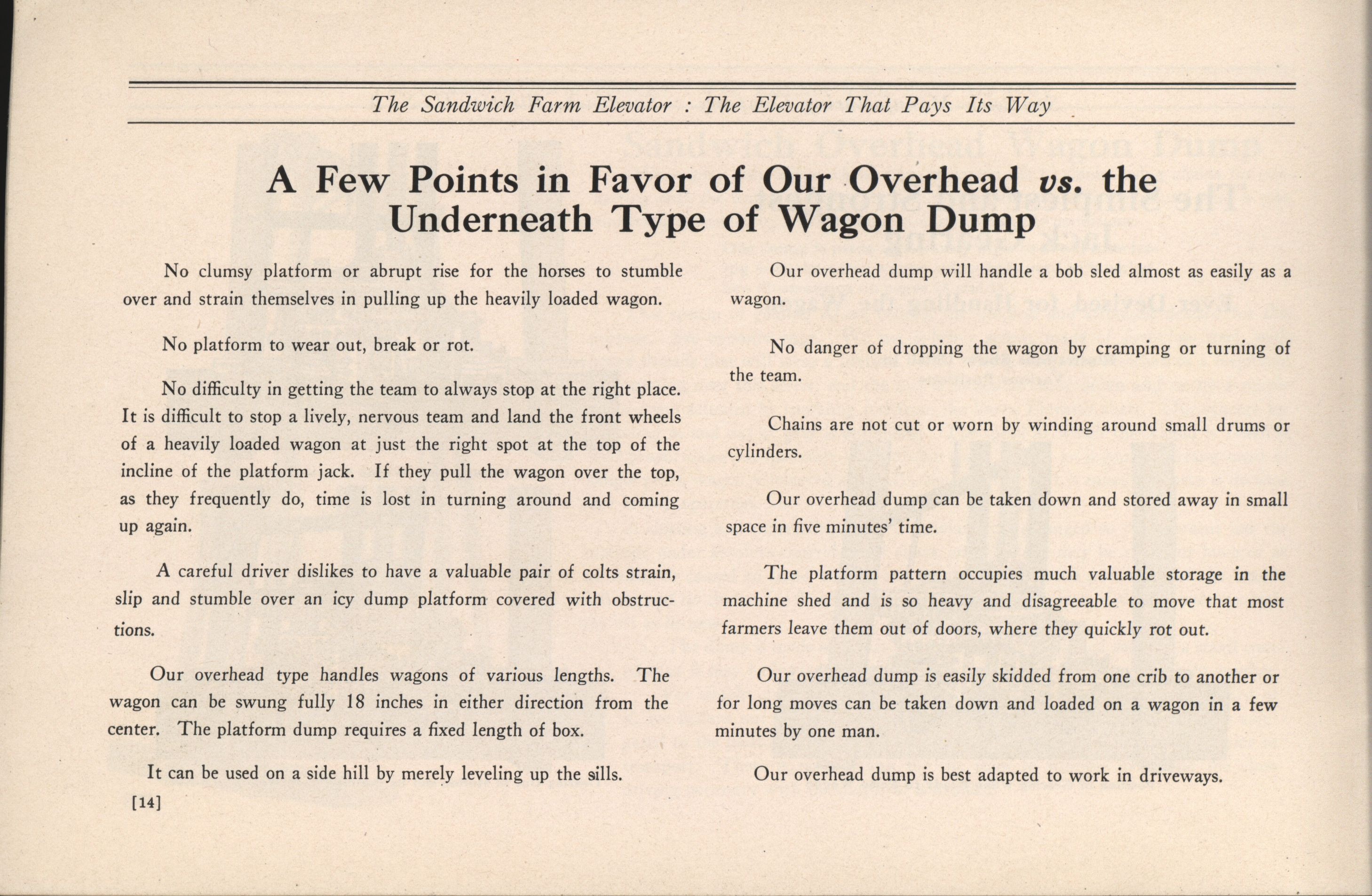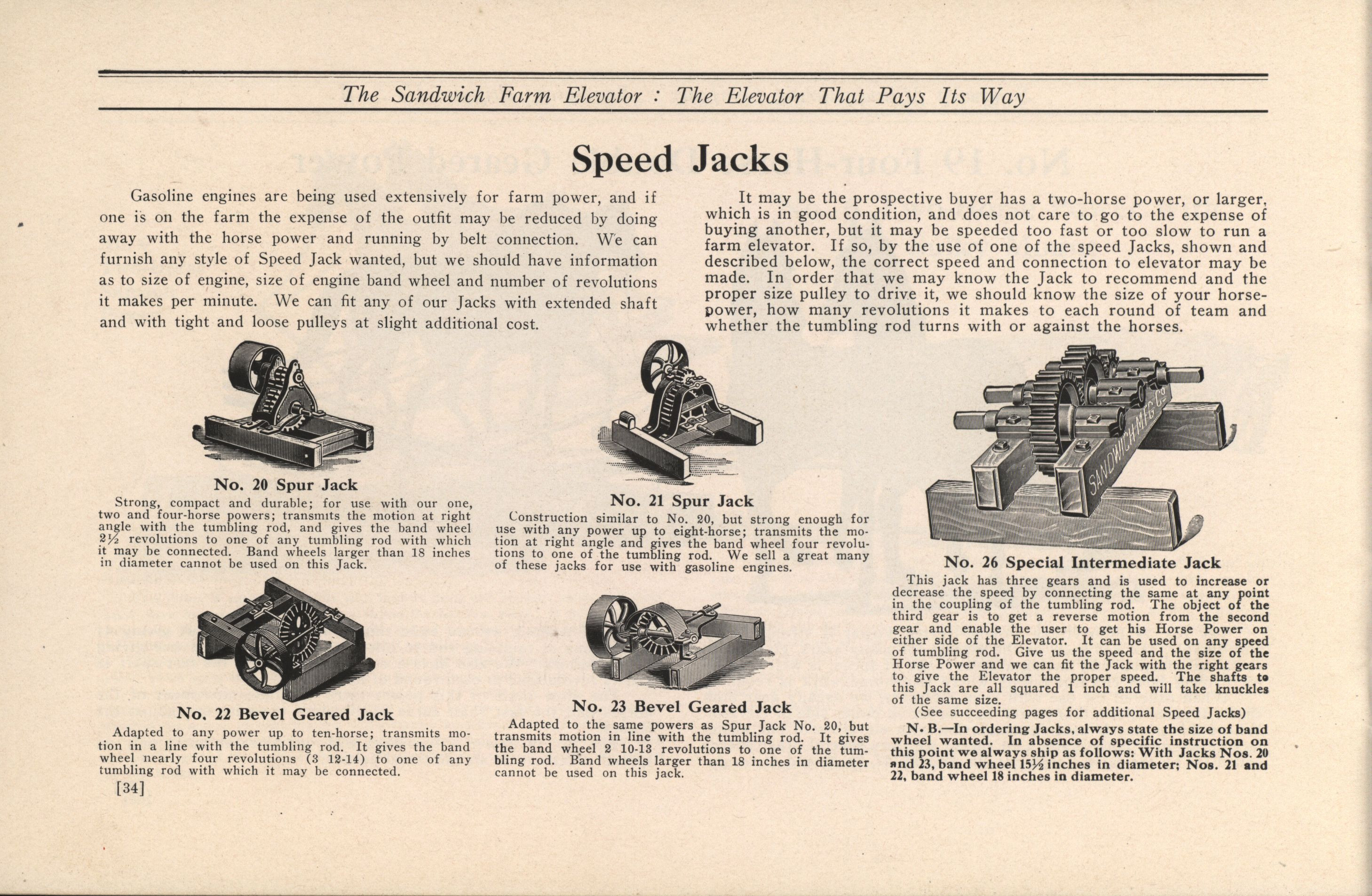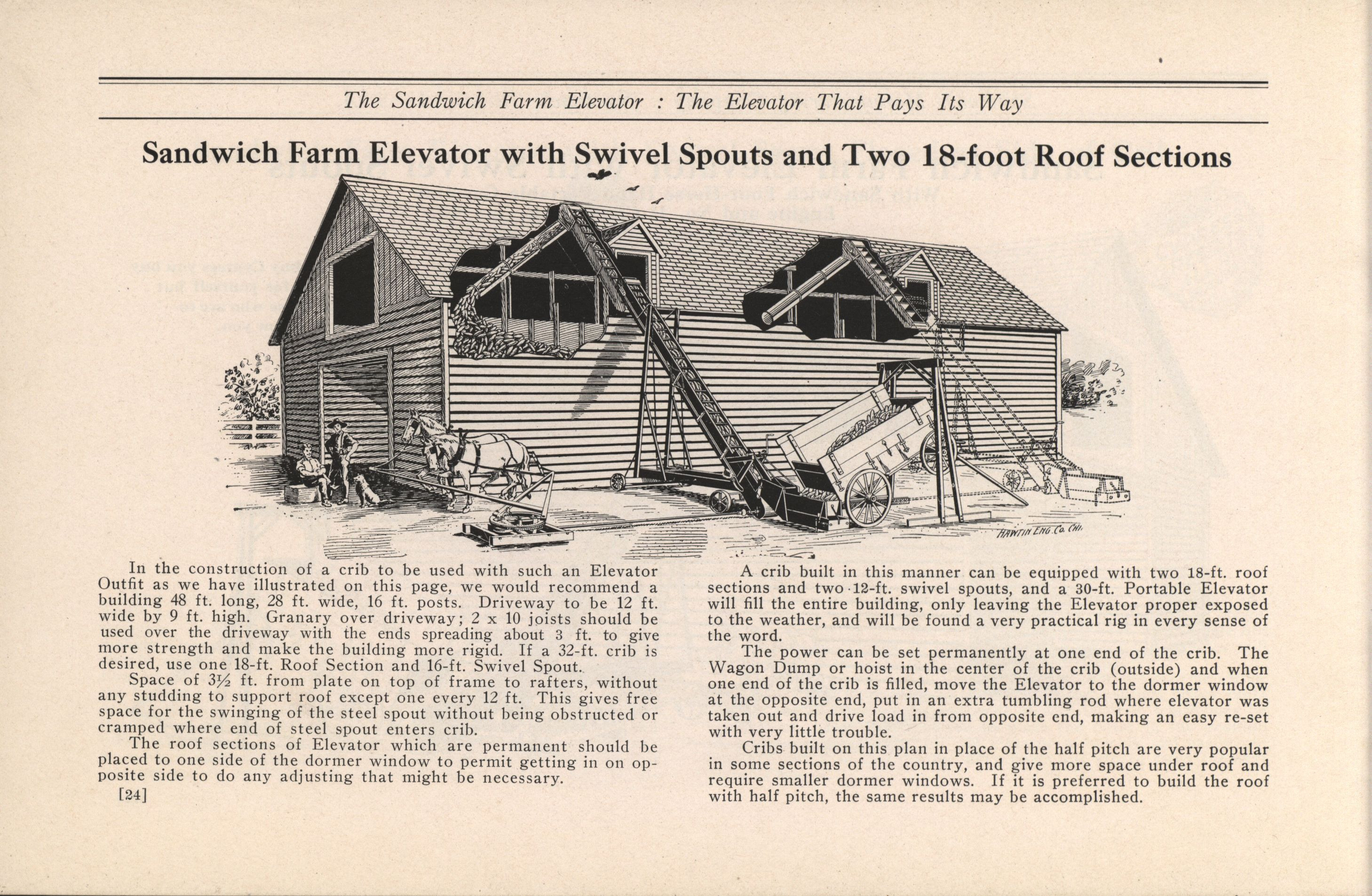 - Illustrated catalog describing the farm elevators offered by the Sandwich Manufacturing Company in 1918.