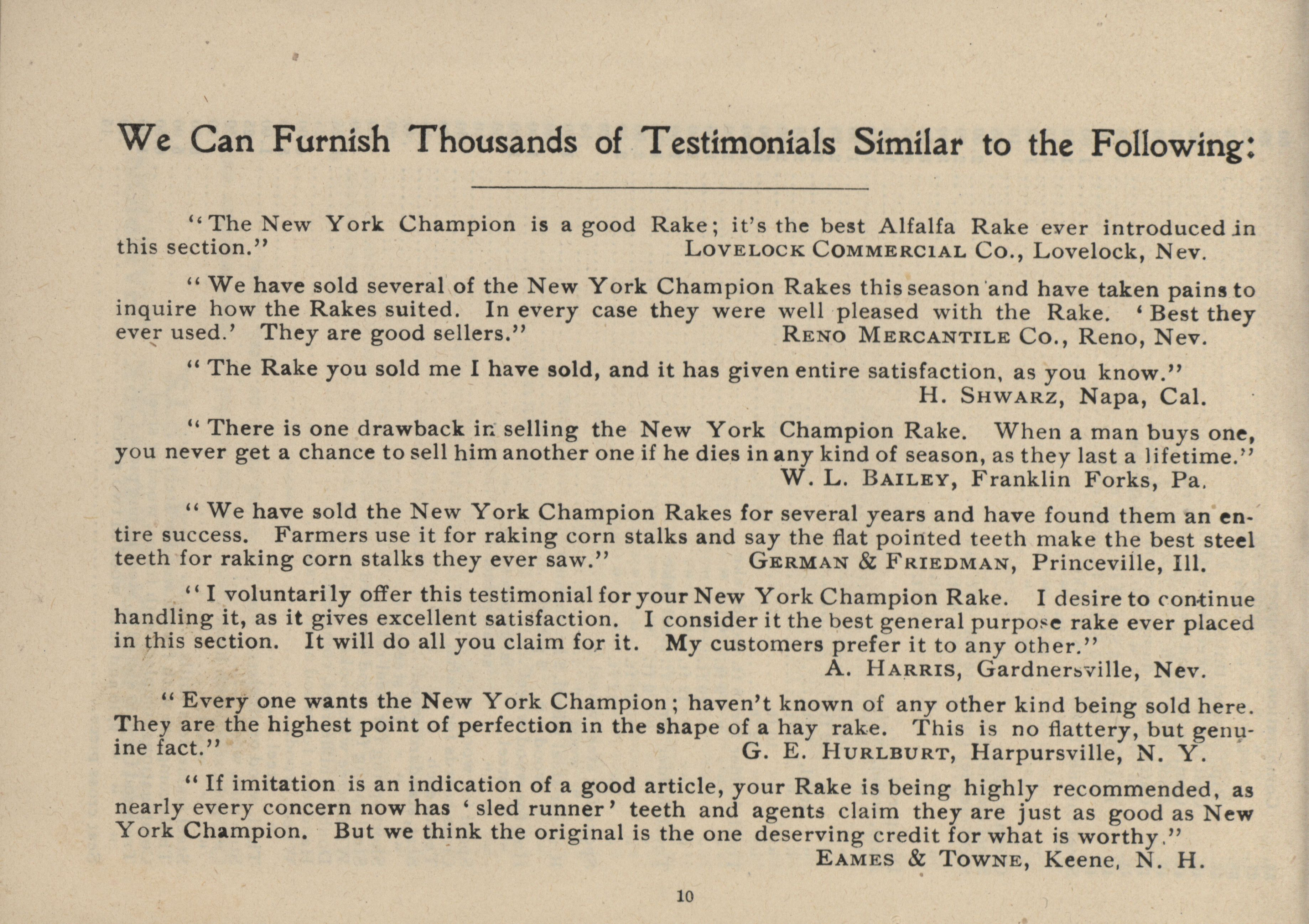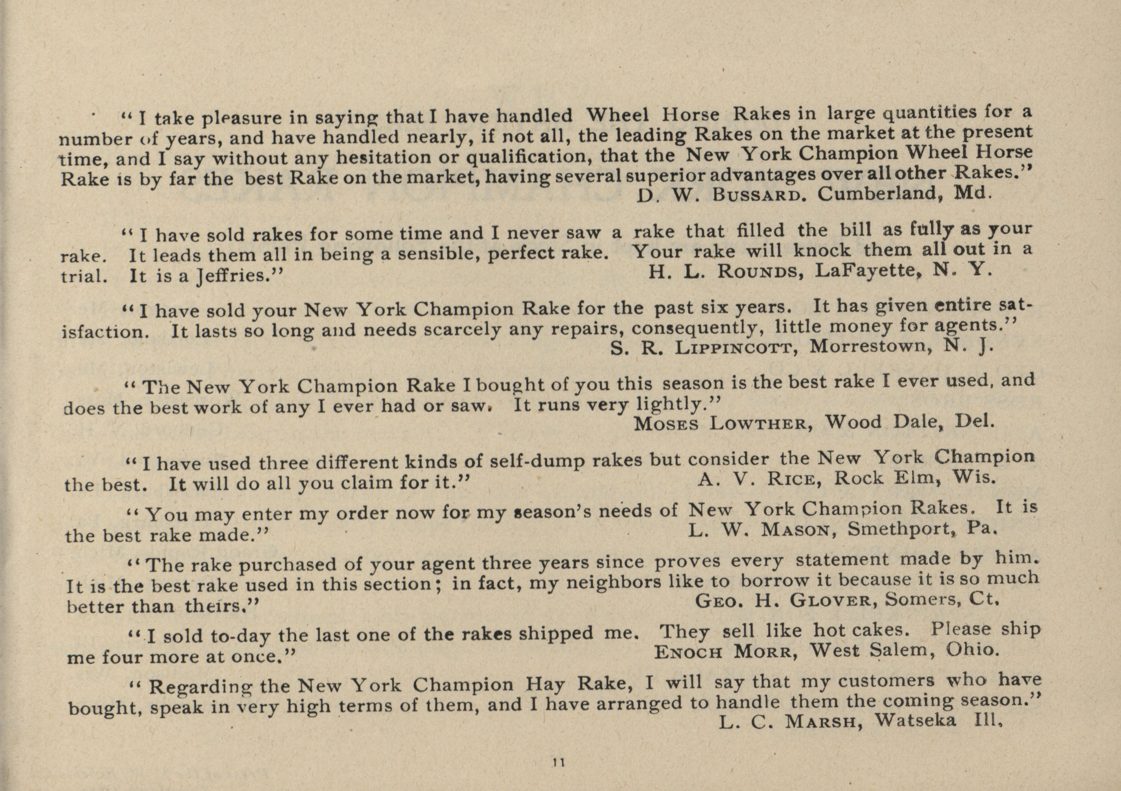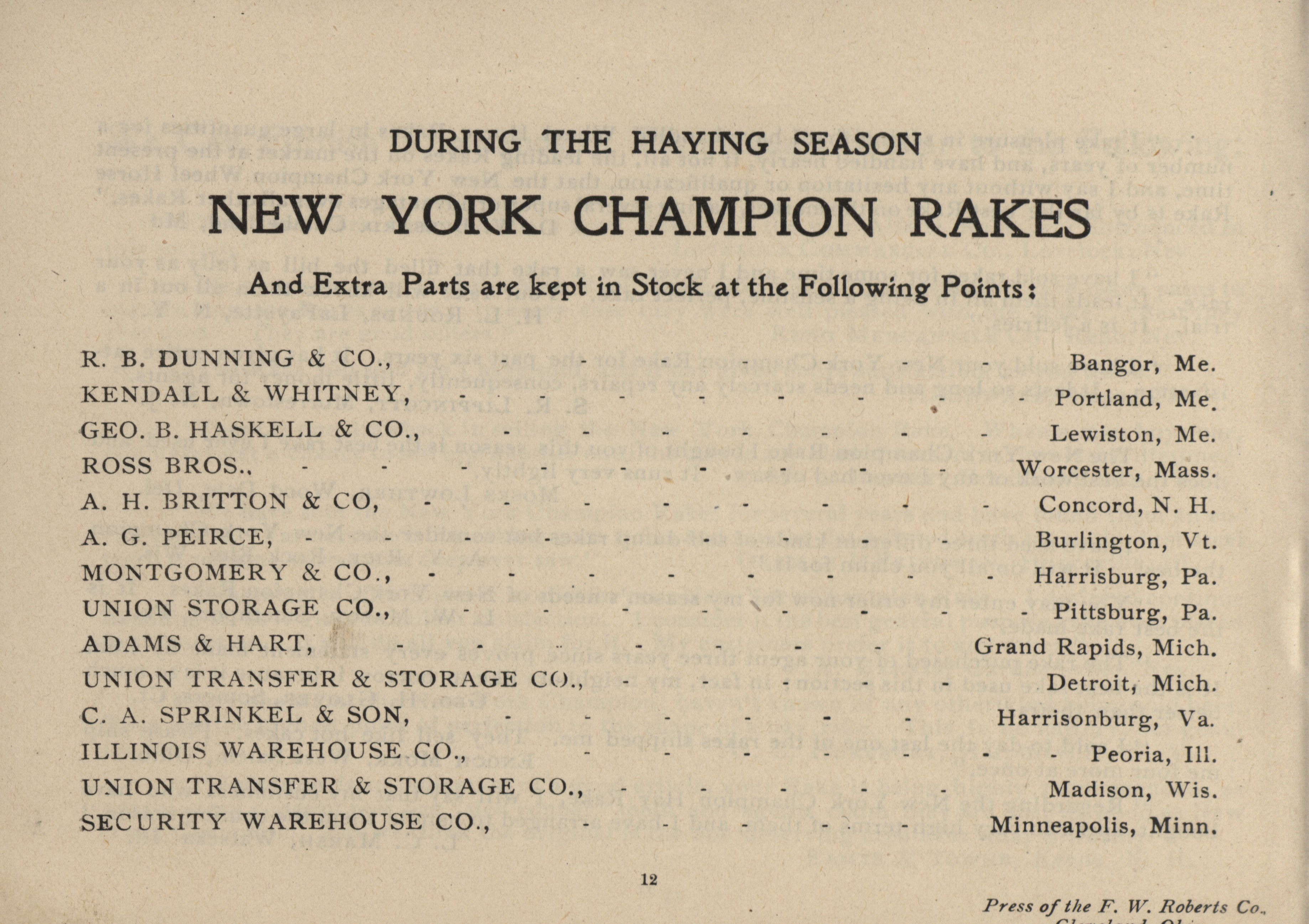 - "Patten and Stafford manufacturer wheel rakes catalog", Agricultural Machinery Literature Collection, Iowa State University Library Digital Collections
