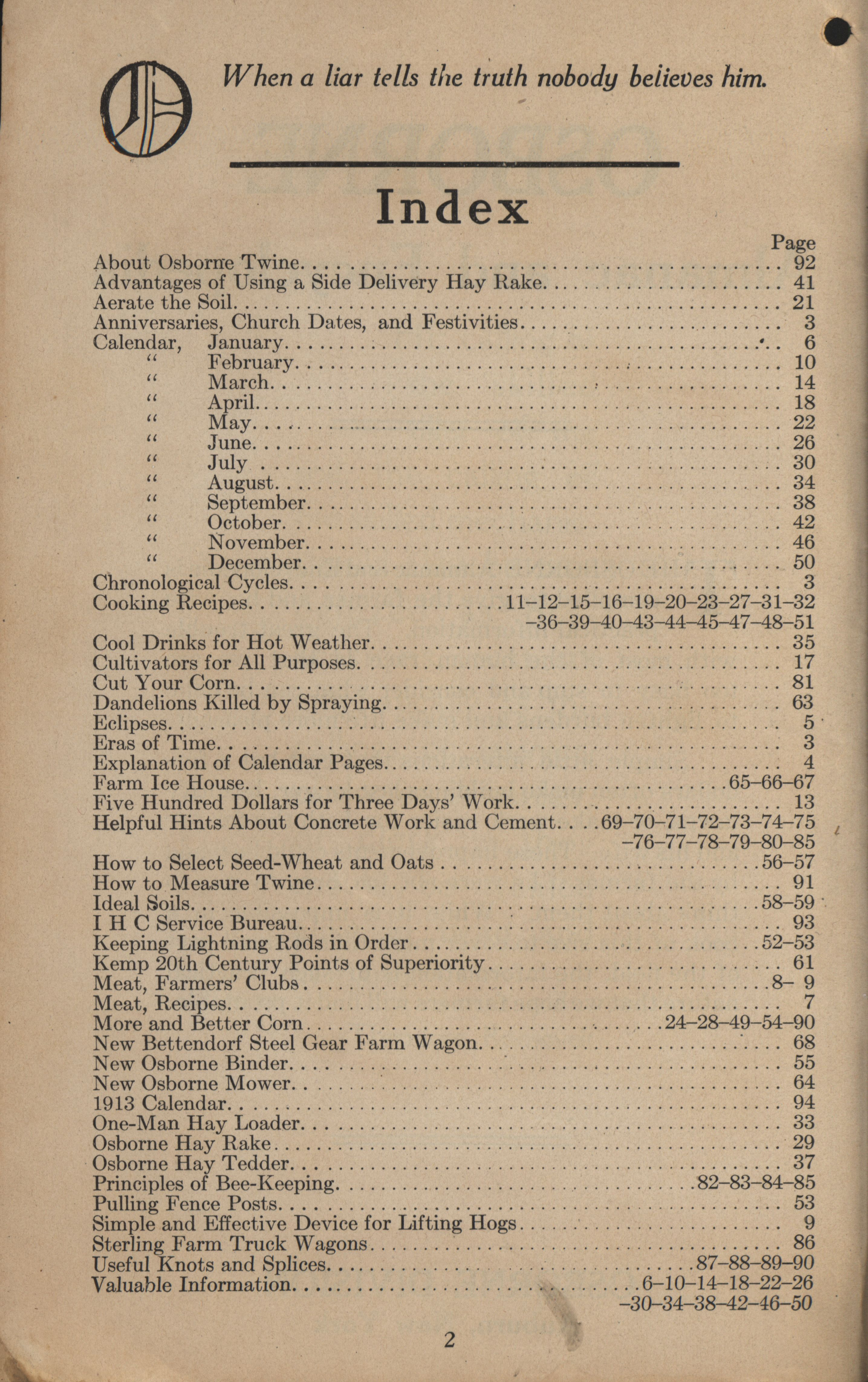 - Illustrated Osborne almanac produced by International Harvester Company of America.