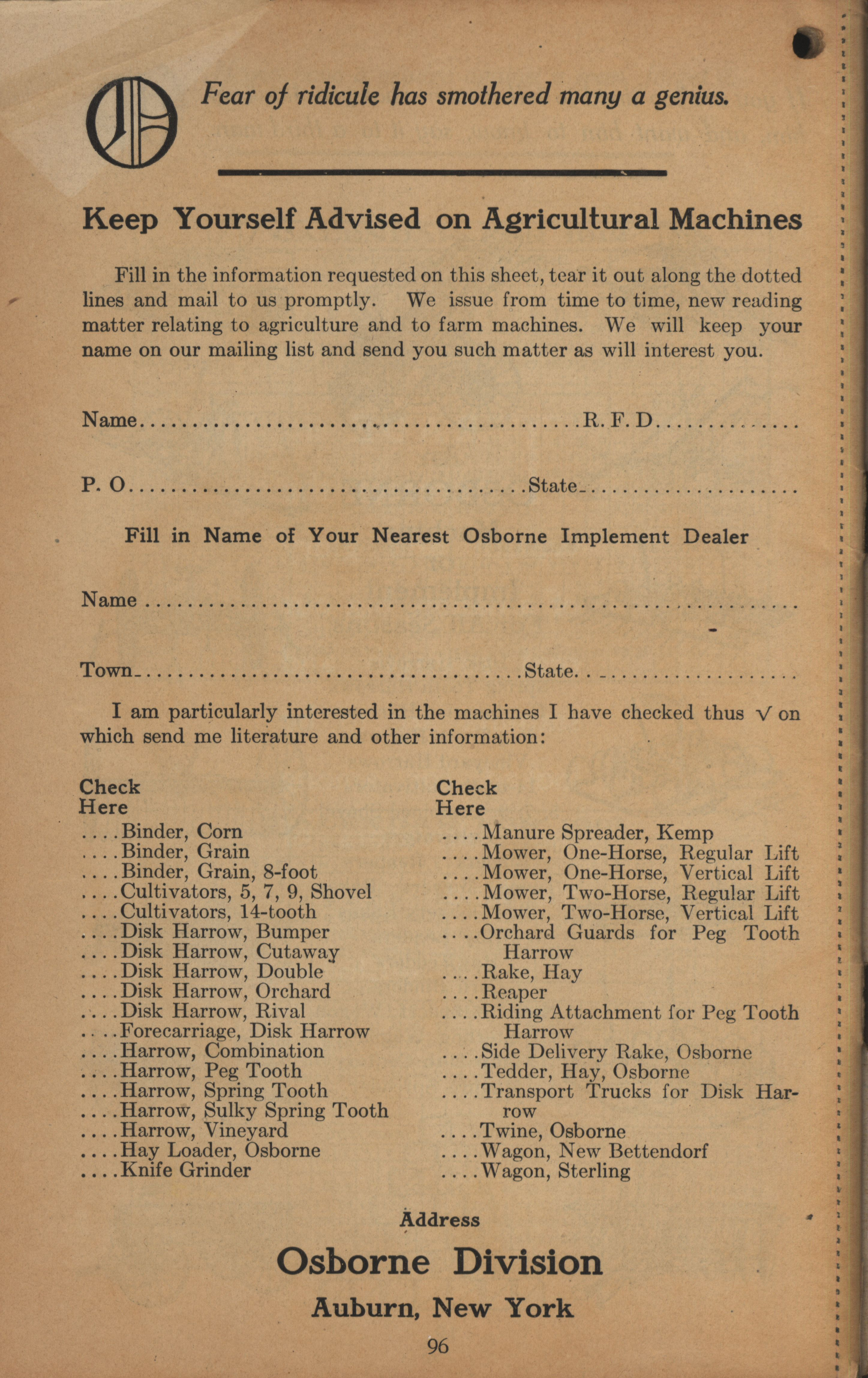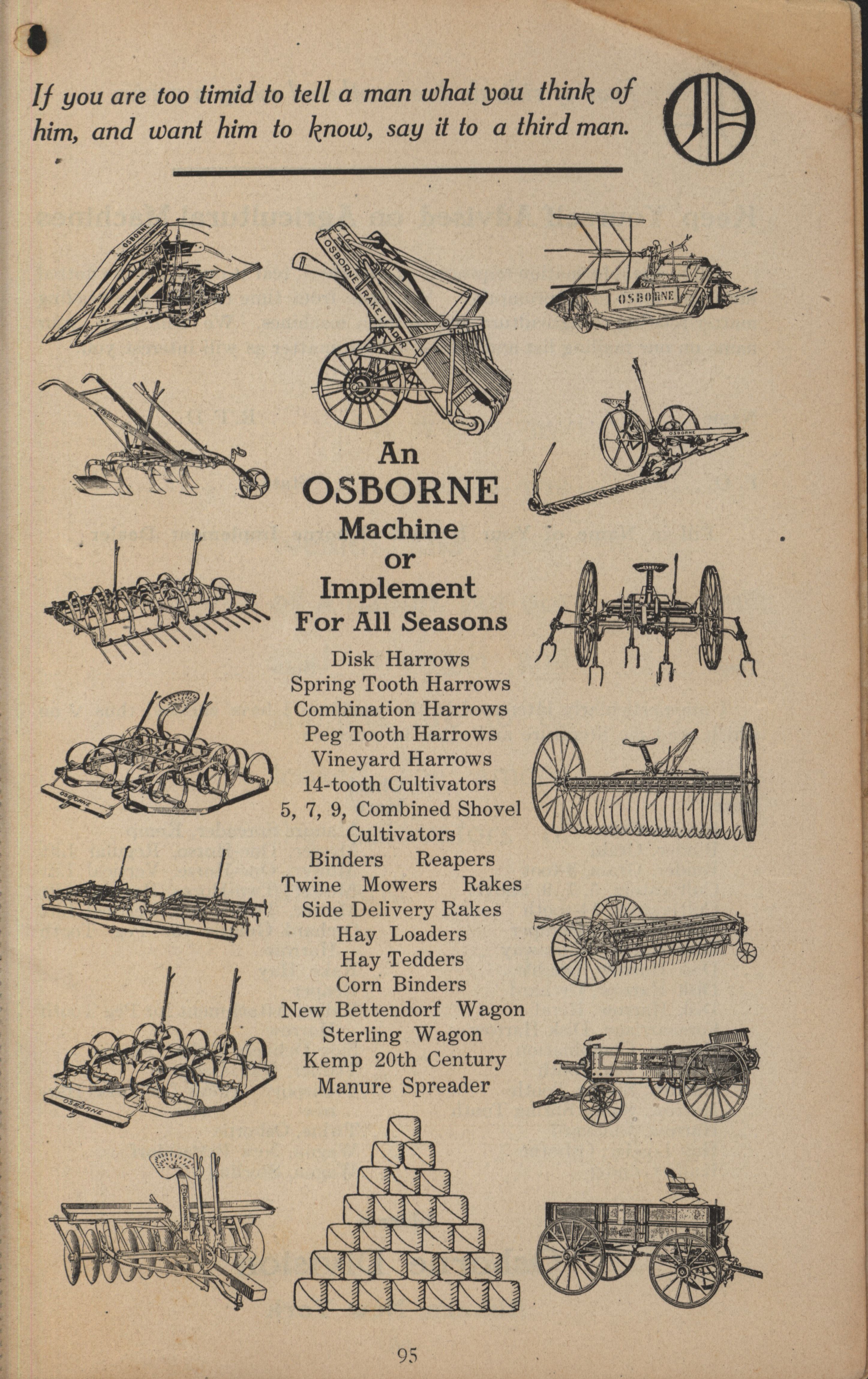 - "International Harvester Company of America Osborne almanac and encyclopedia", Agricultural Machinery Literature Collection, Iowa State University Library Digital Collections